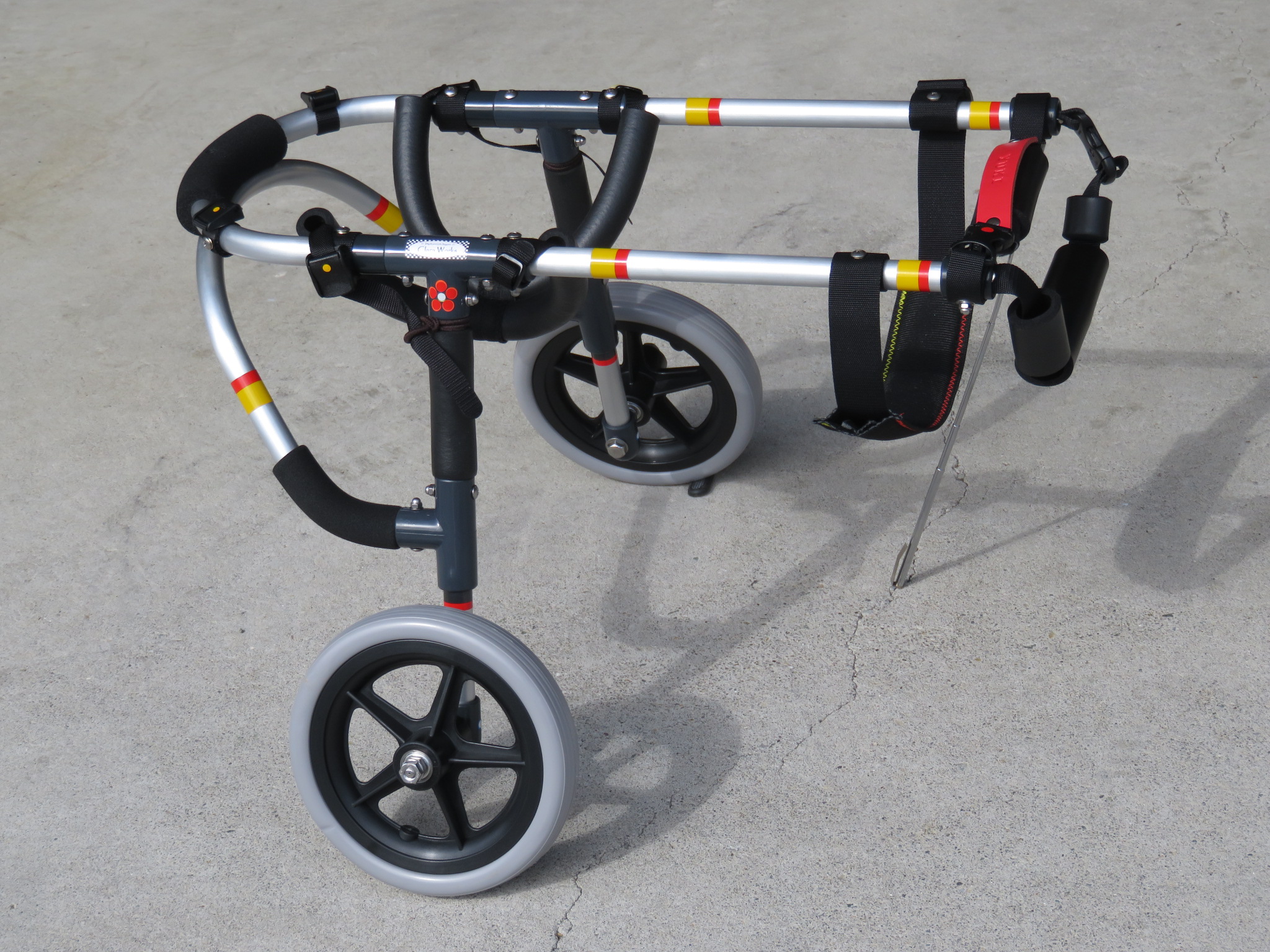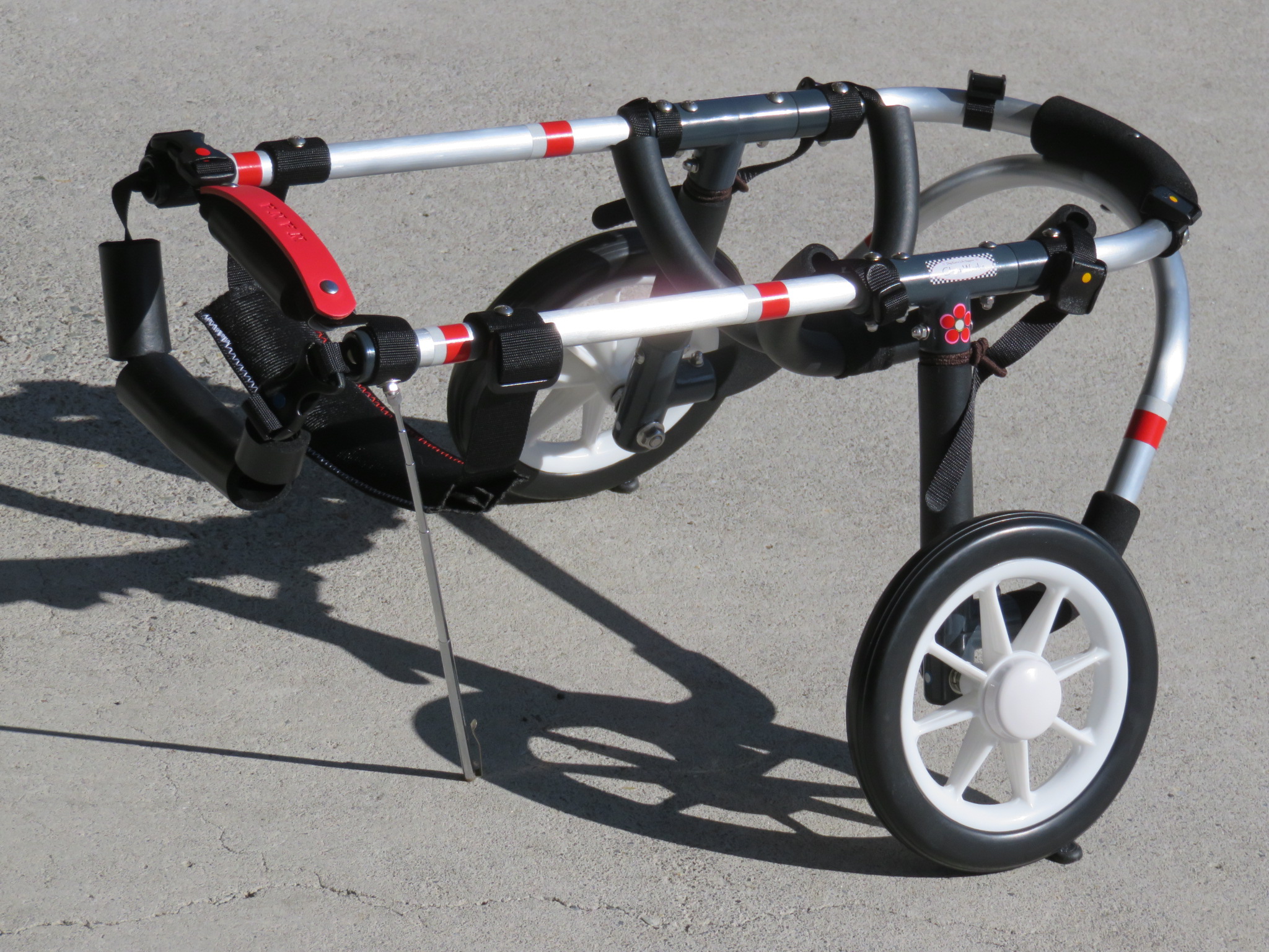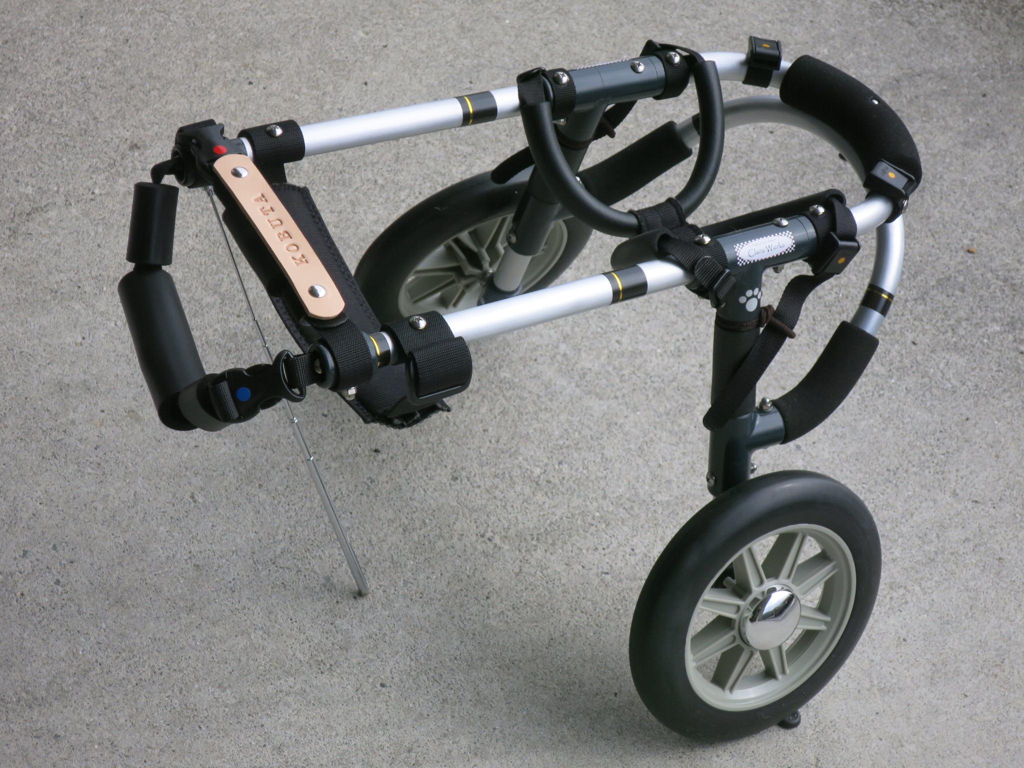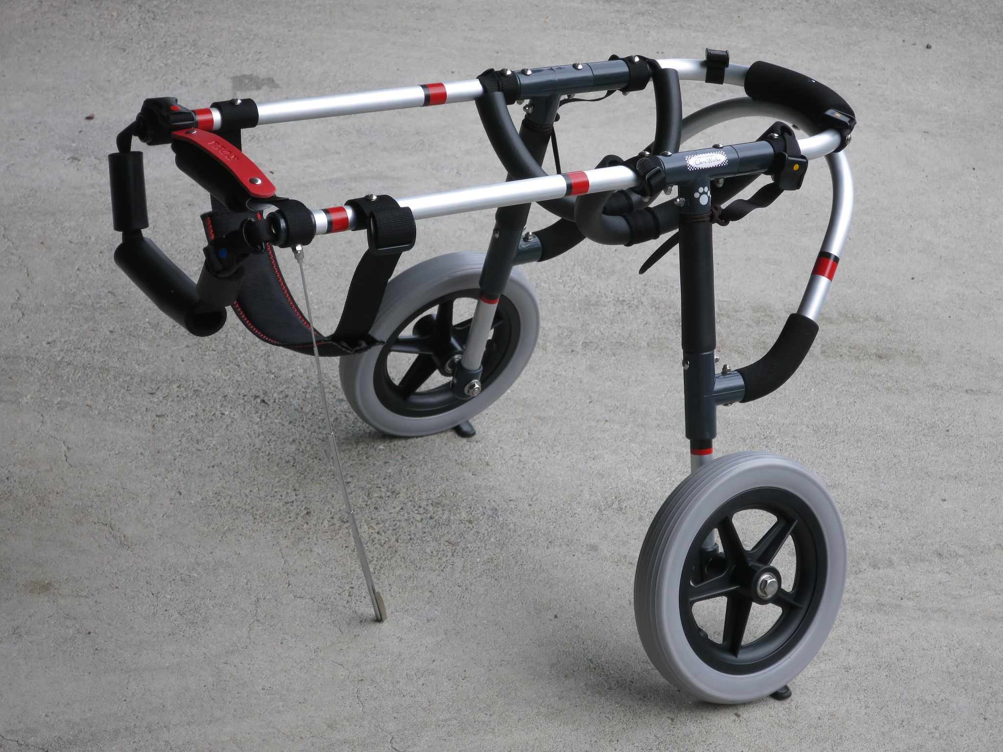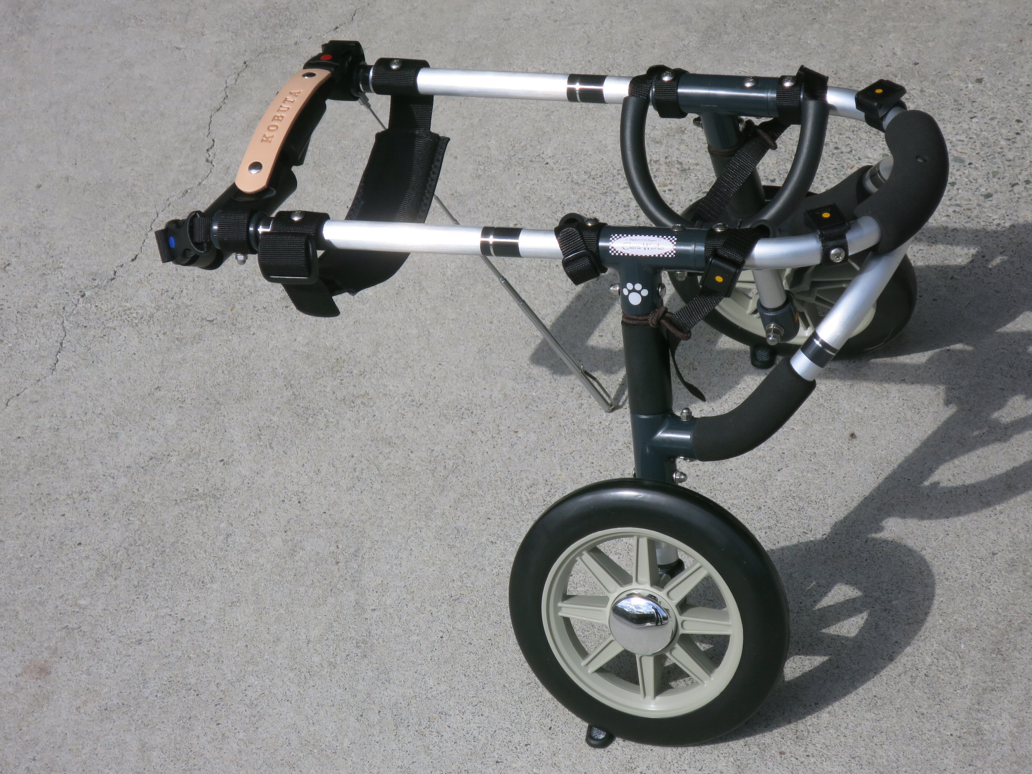 2輪車で歩けそうだけど不安がある、4輪で練習して筋力が戻れば2輪でも歩けそう、そんなワンちゃんのための仕様です