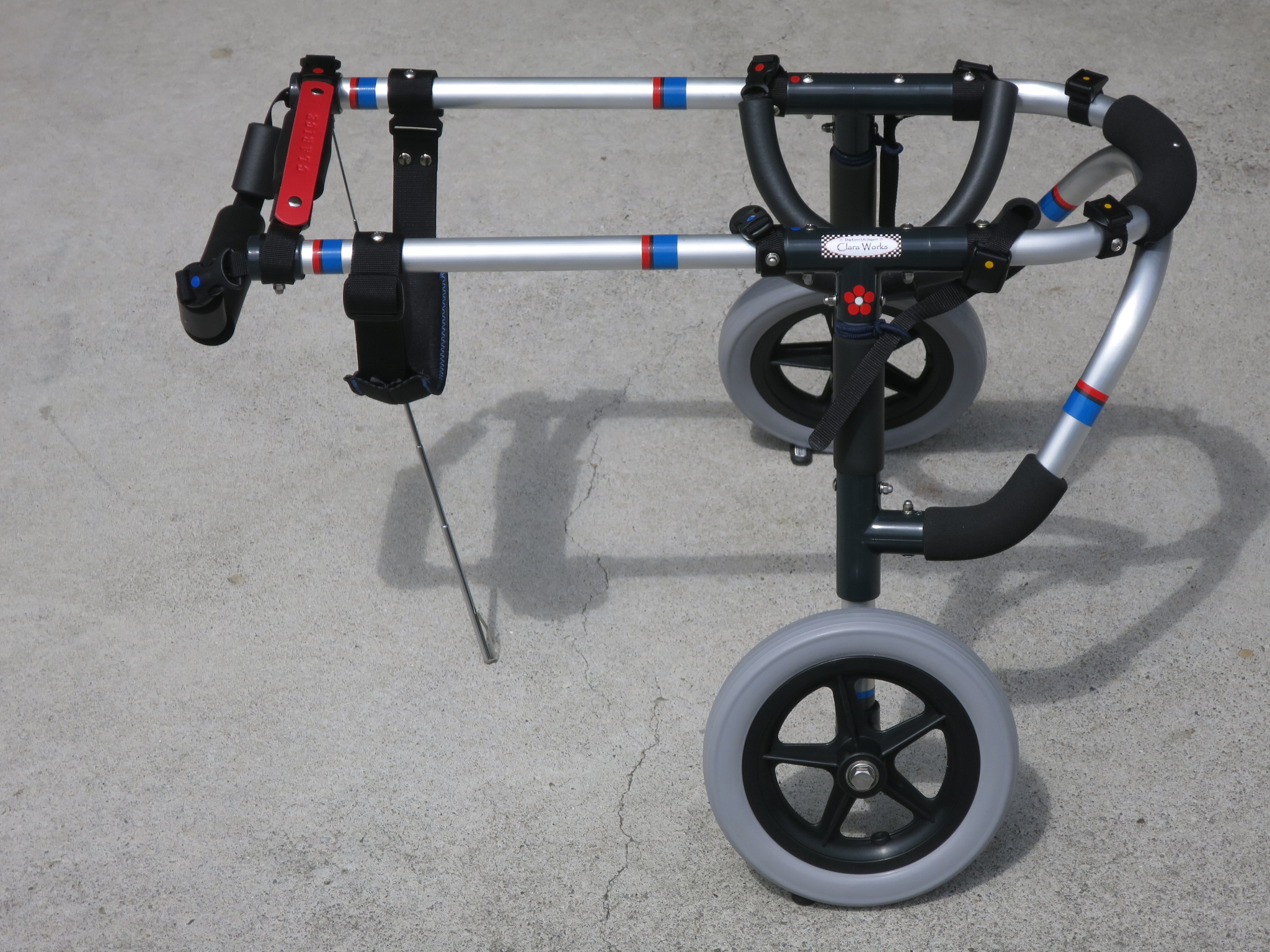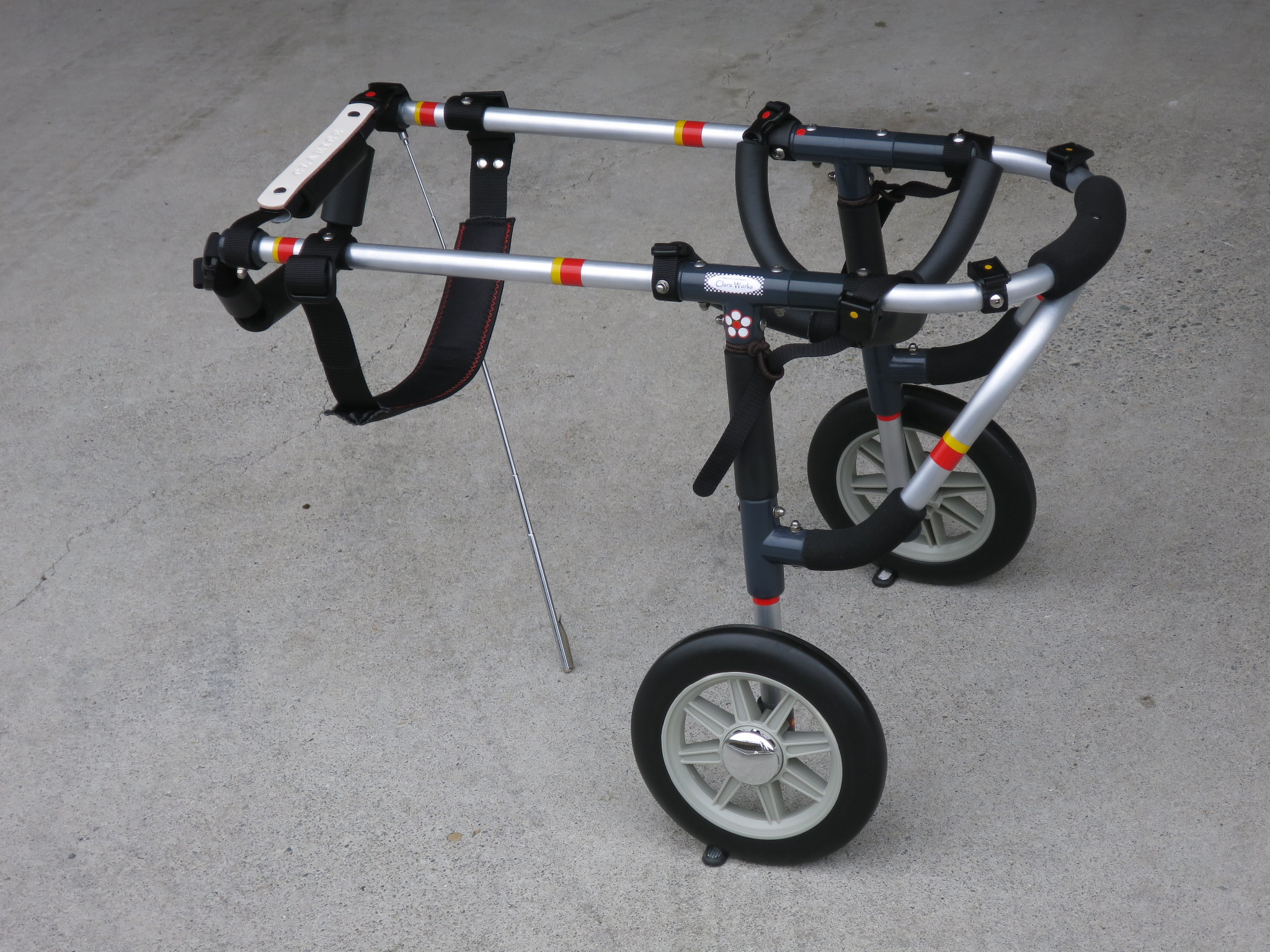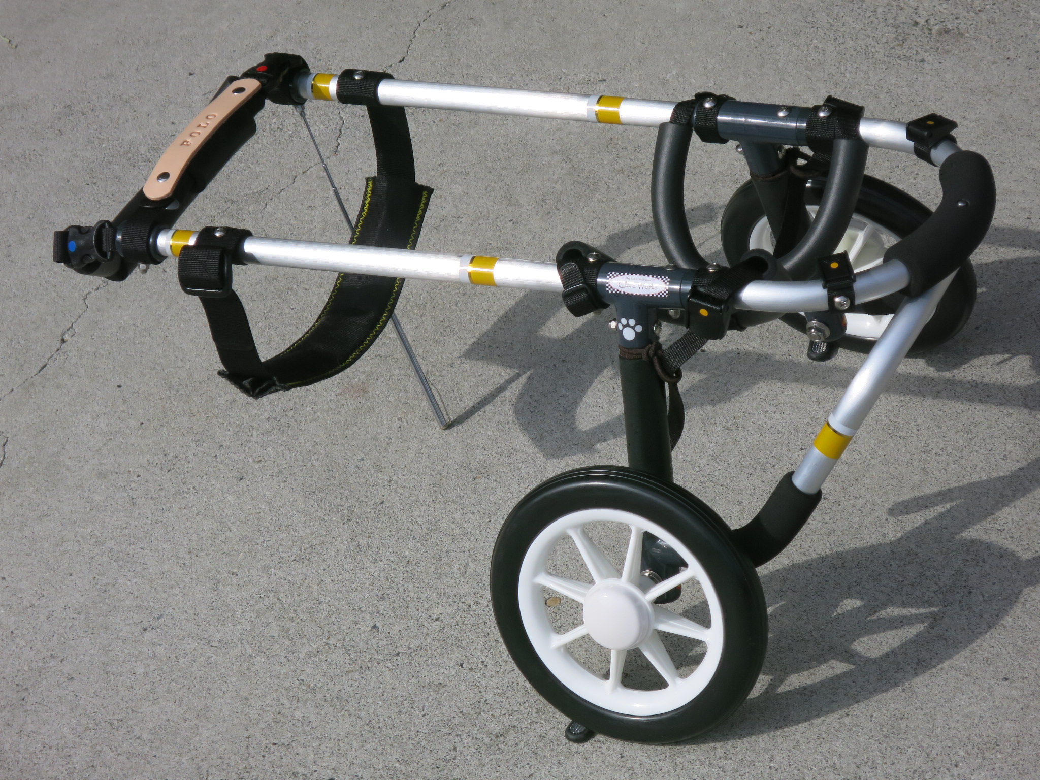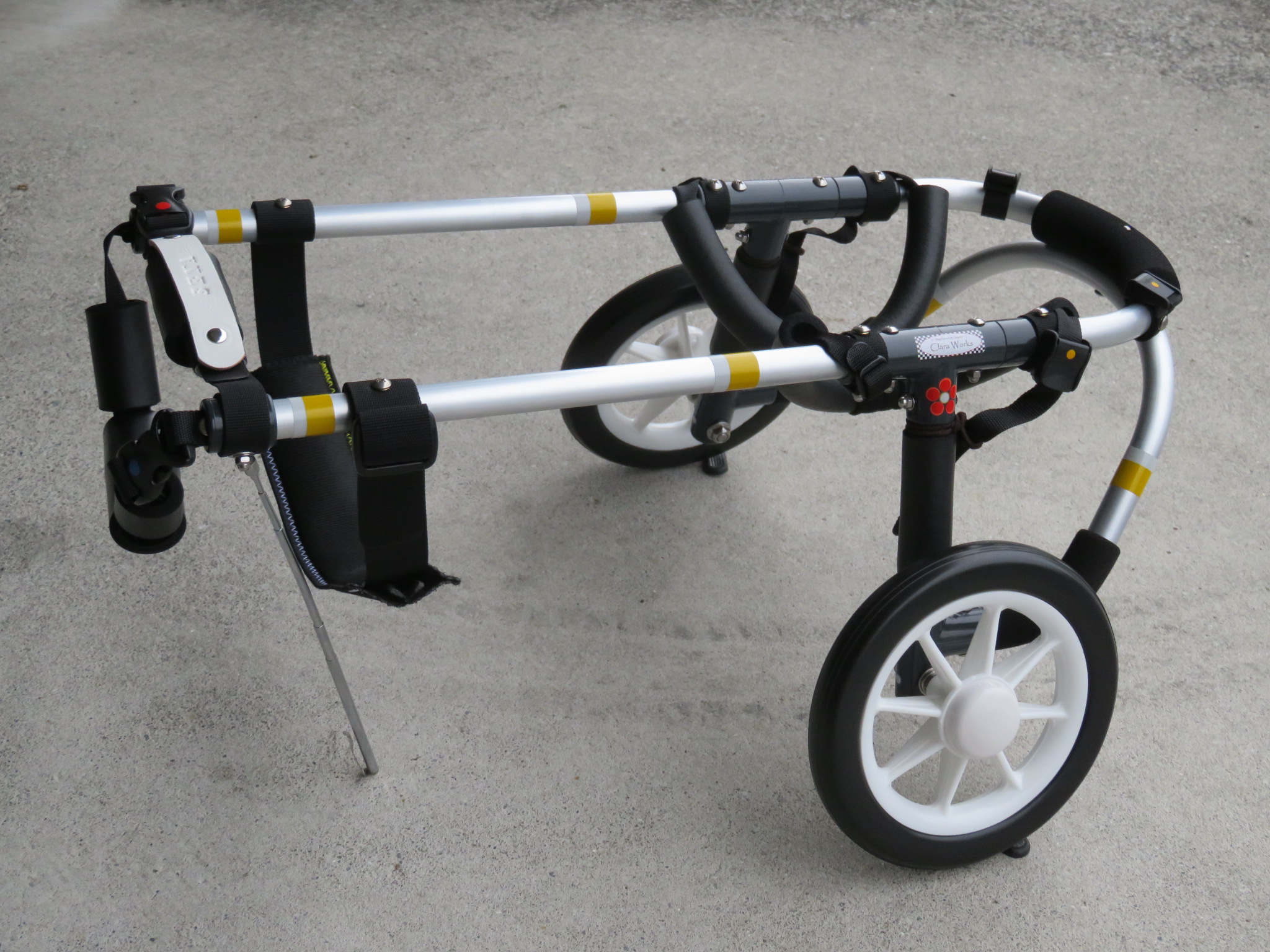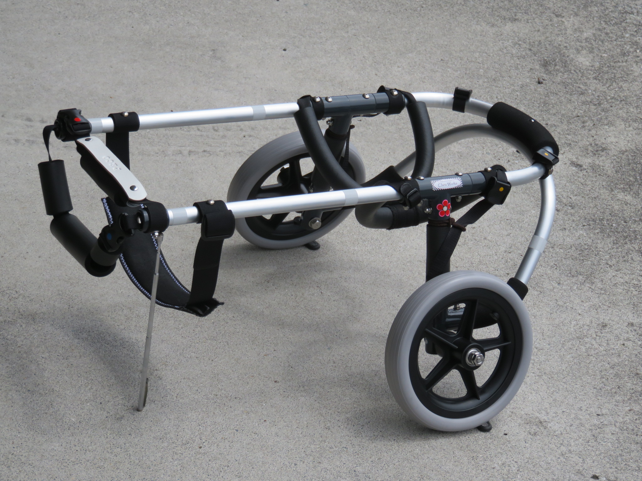 2輪車で歩けそうだけど不安がある、4輪で練習して筋力が戻れば2輪でも歩けそう、そんなワンちゃんのための仕様です