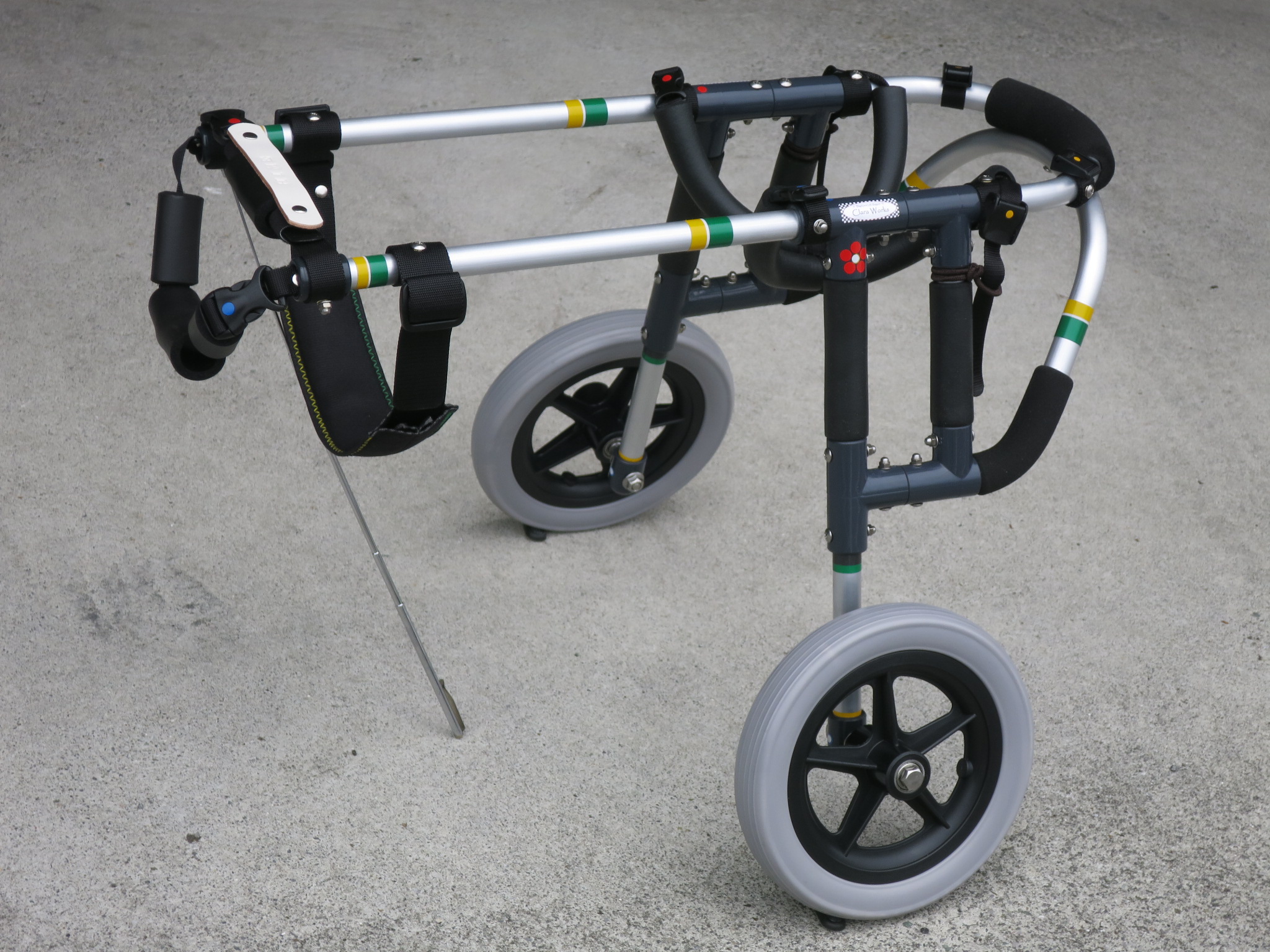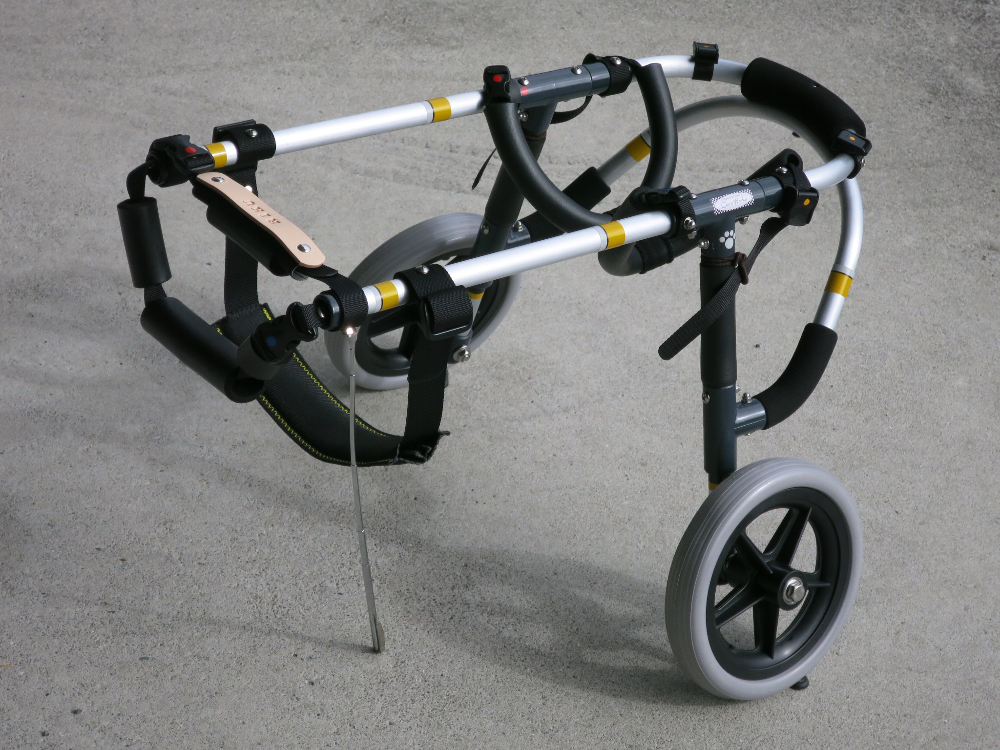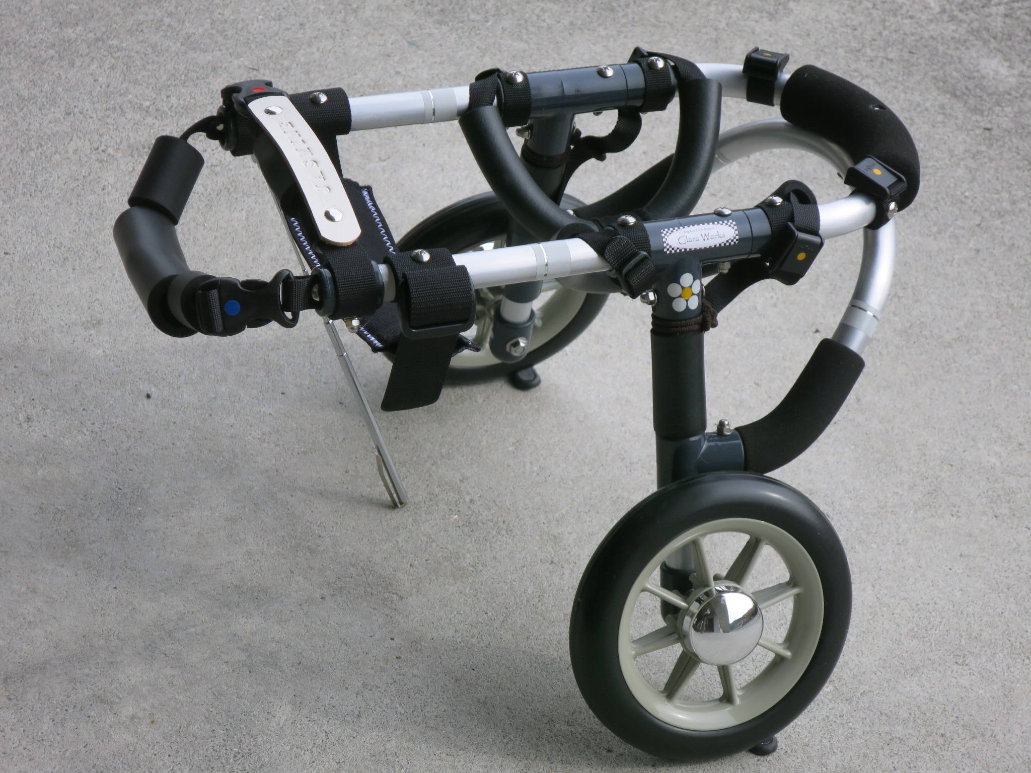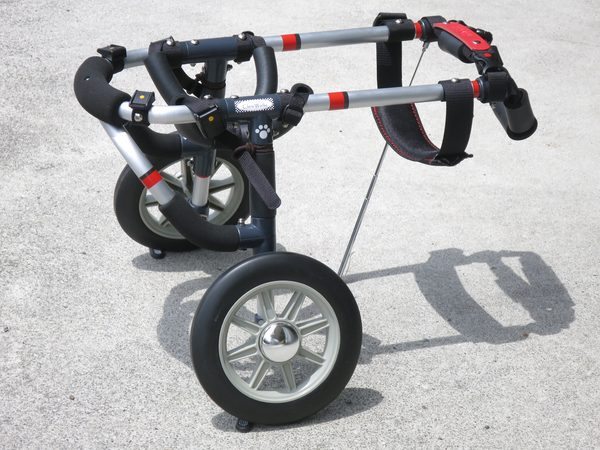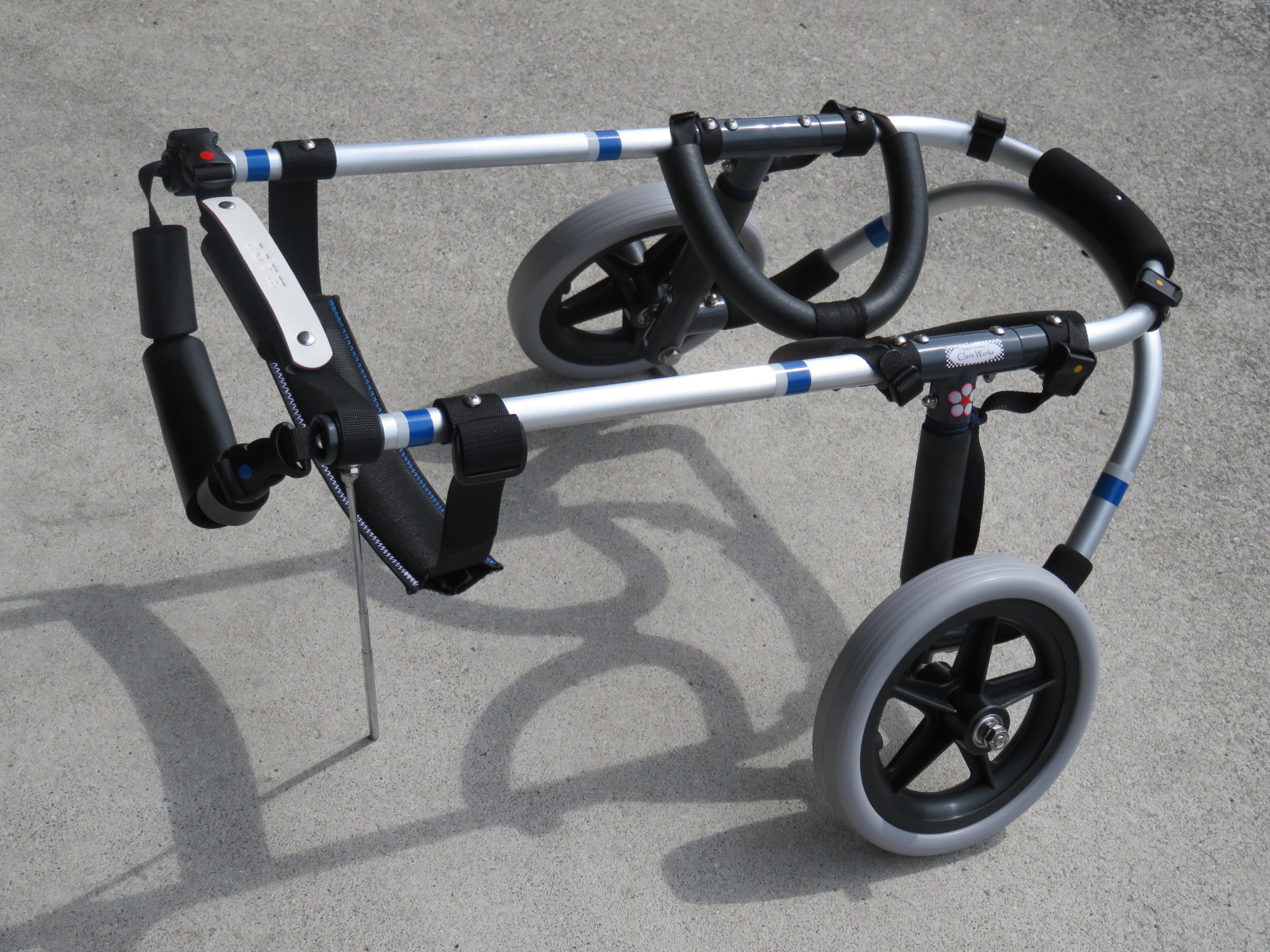 2輪車で歩けそうだけど不安がある、4輪で練習して筋力が戻れば2輪でも歩けそう、そんなワンちゃんのための仕様です