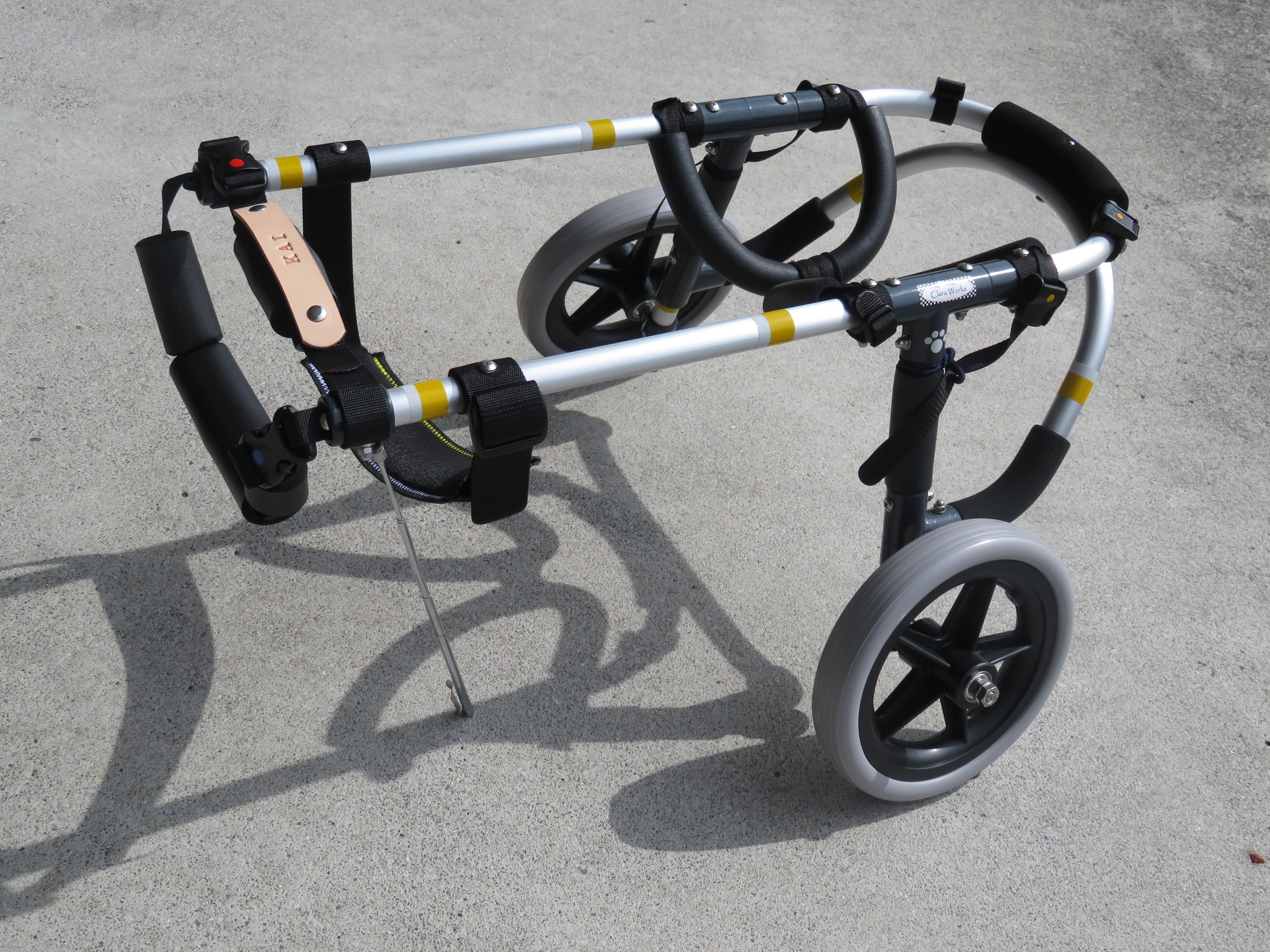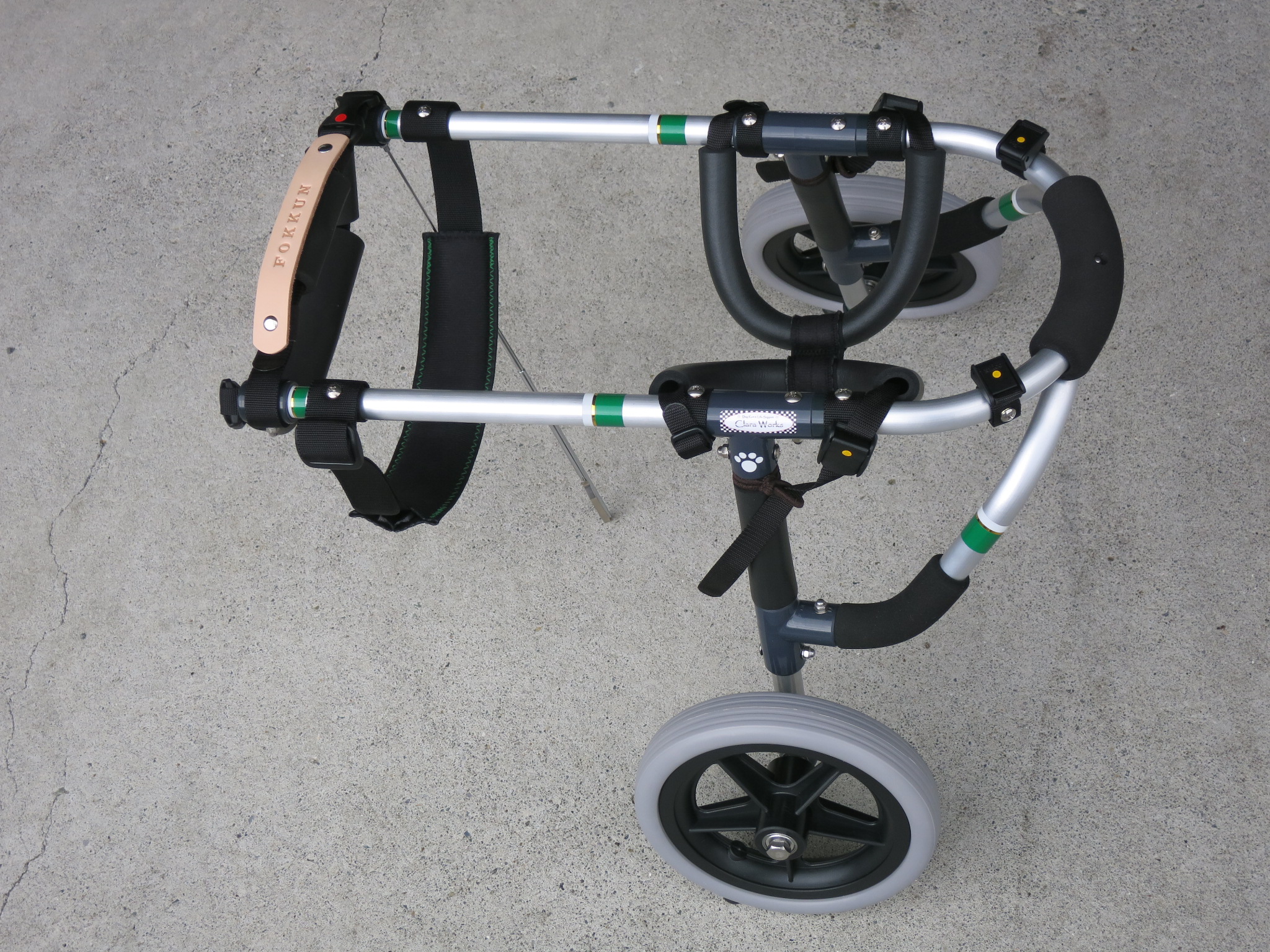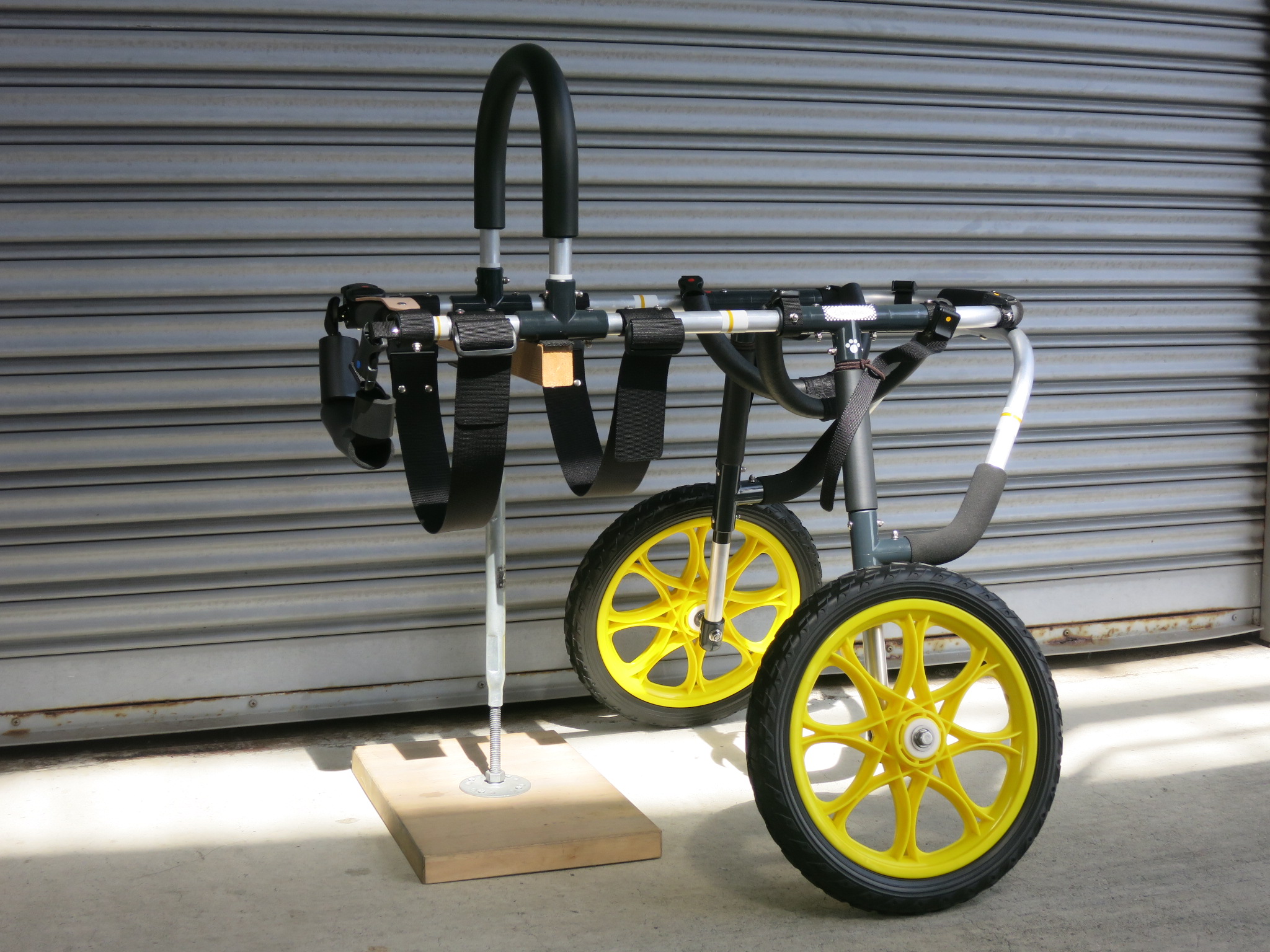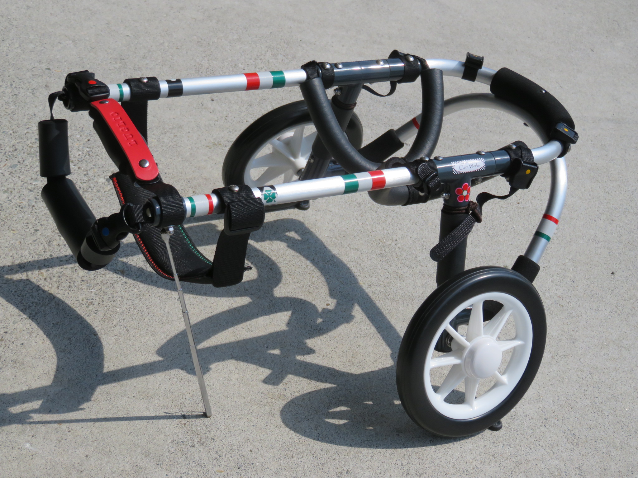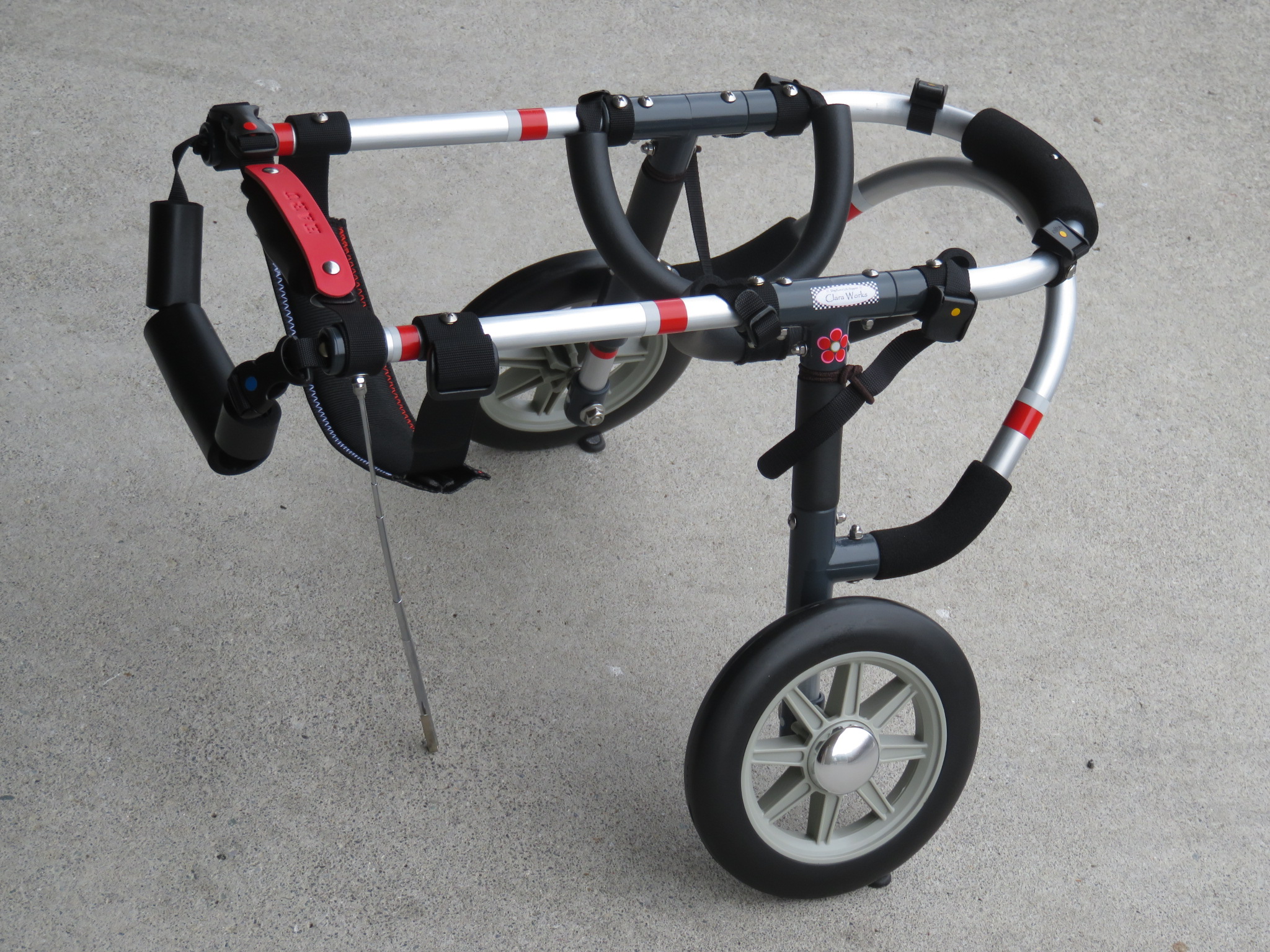 2輪車で歩けそうだけど不安がある、4輪で練習して筋力が戻れば2輪でも歩けそう、そんなワンちゃんのための仕様です