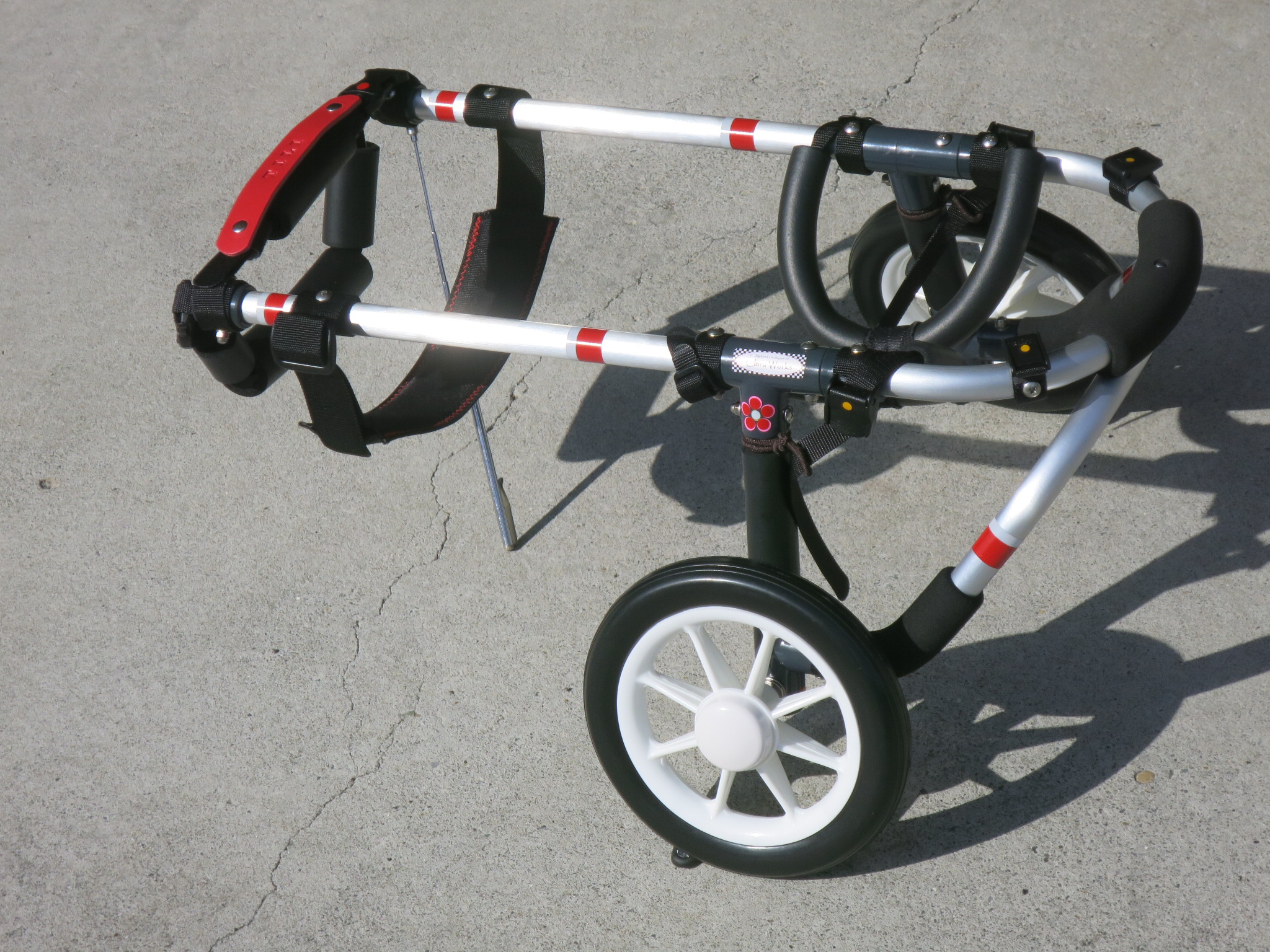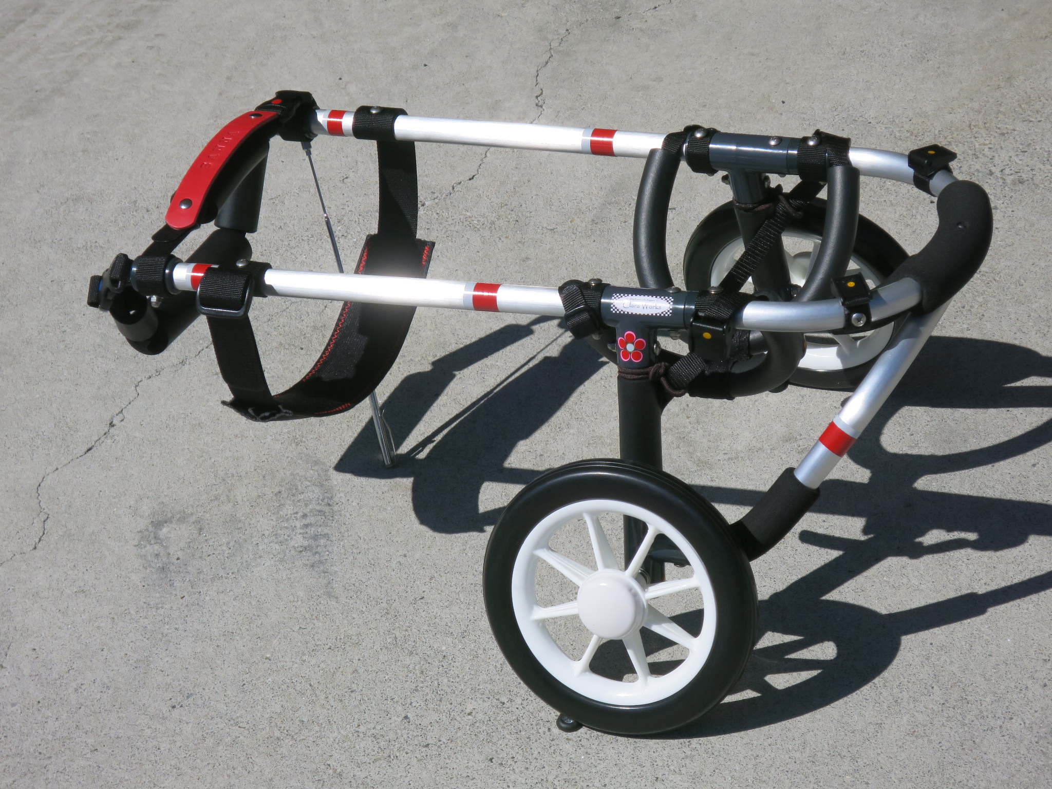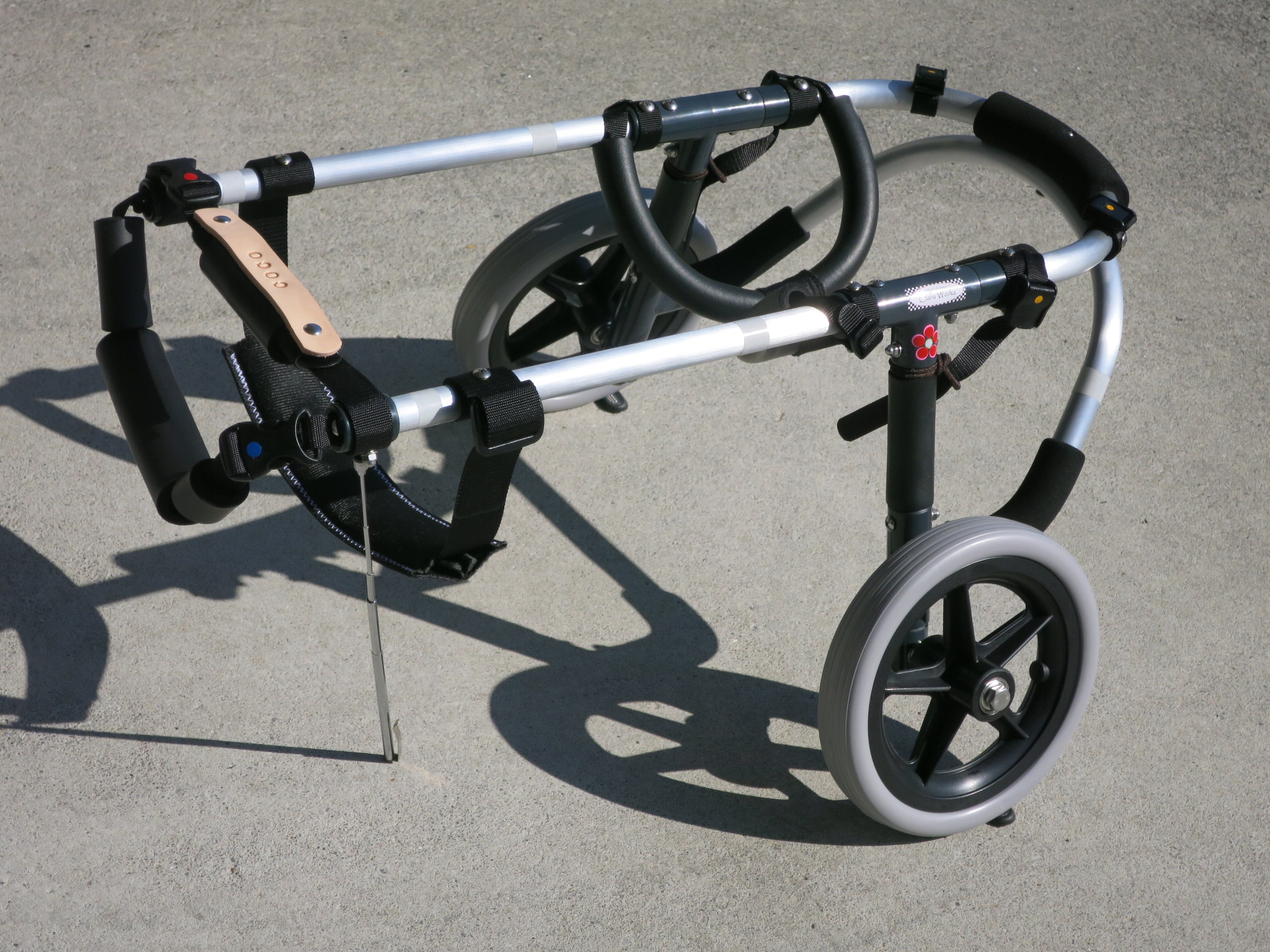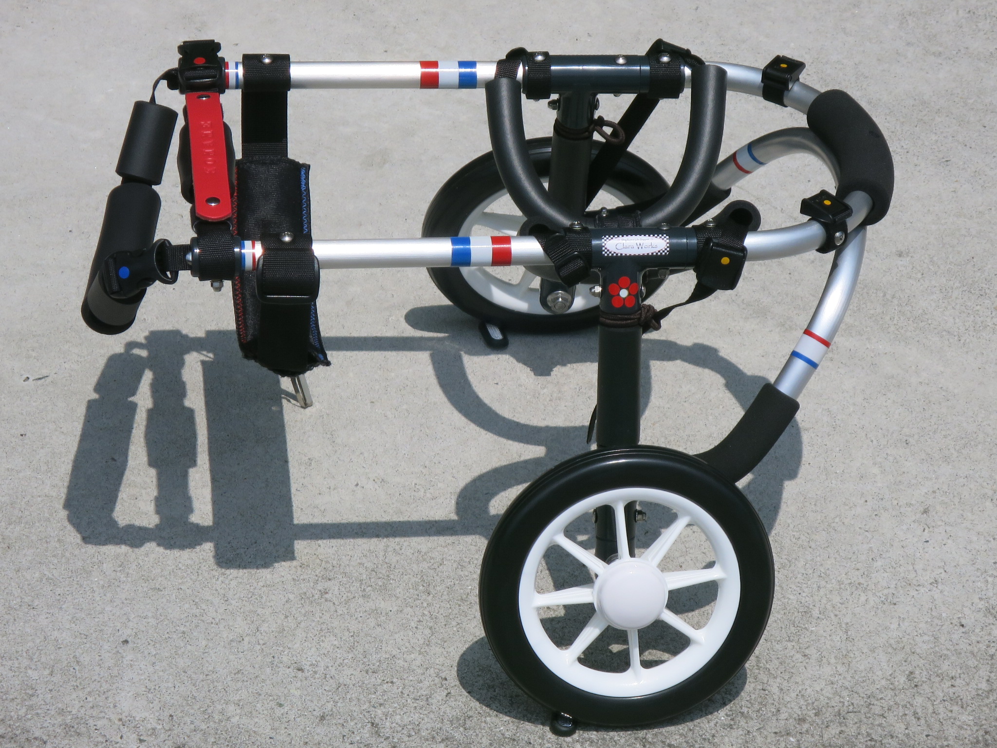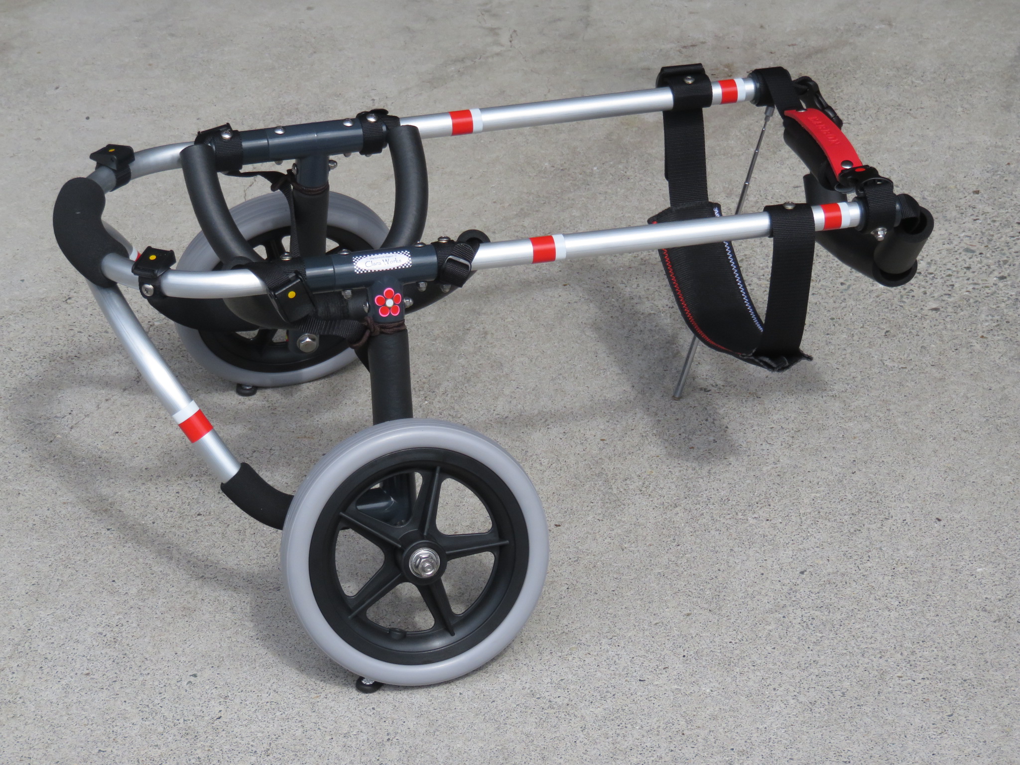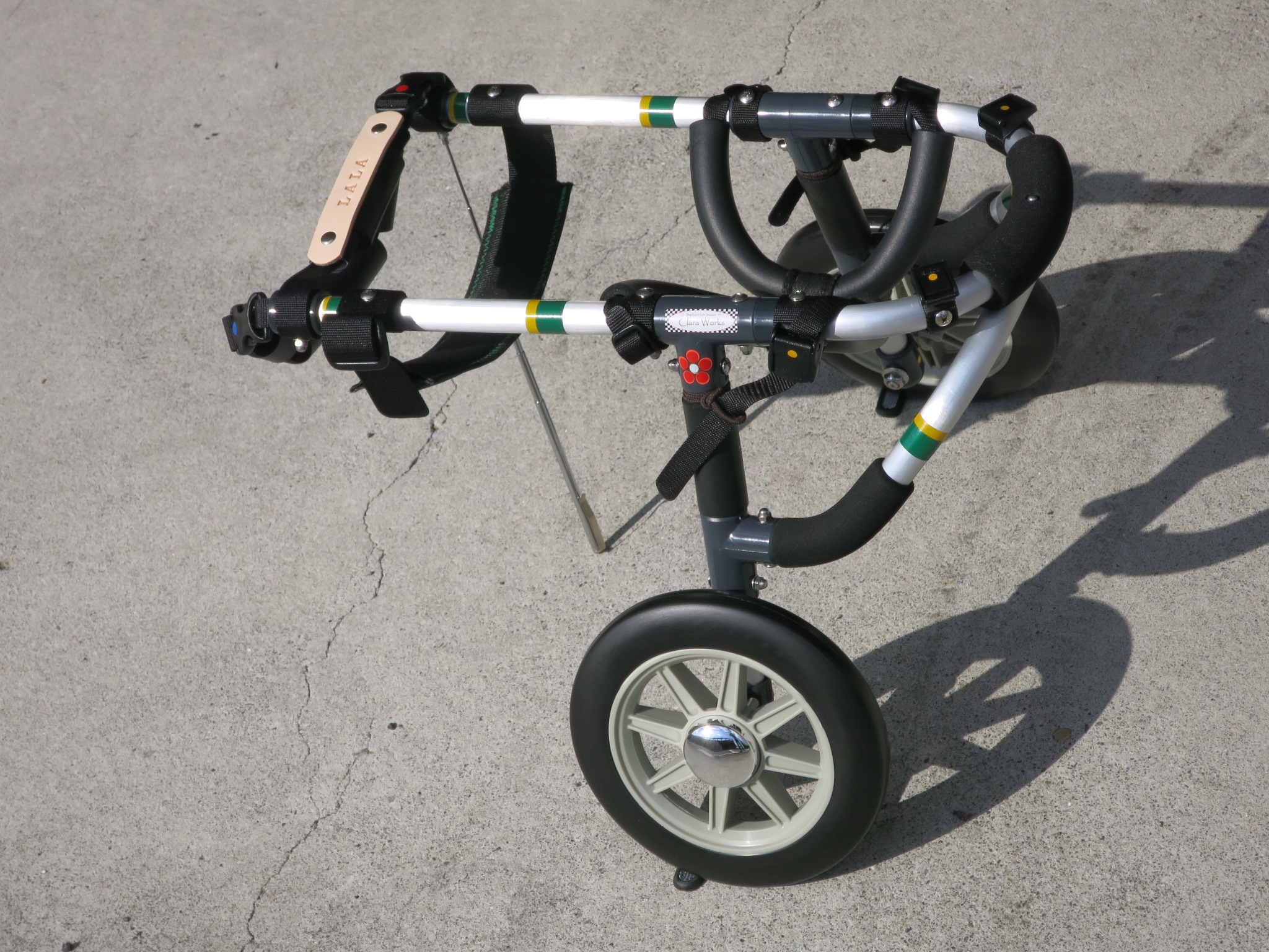 2輪車で歩けそうだけど不安がある、4輪で練習して筋力が戻れば2輪でも歩けそう、そんなワンちゃんのための仕様です
