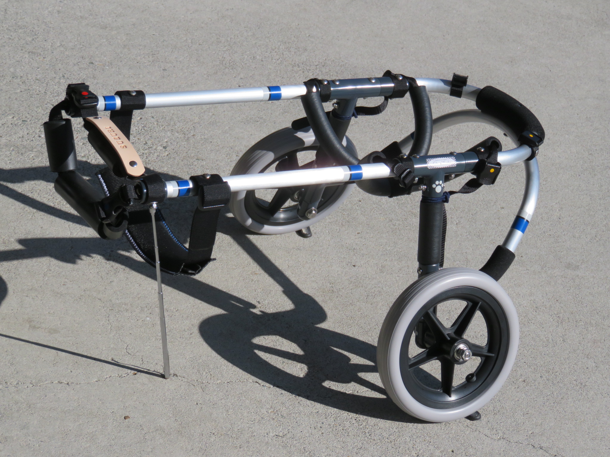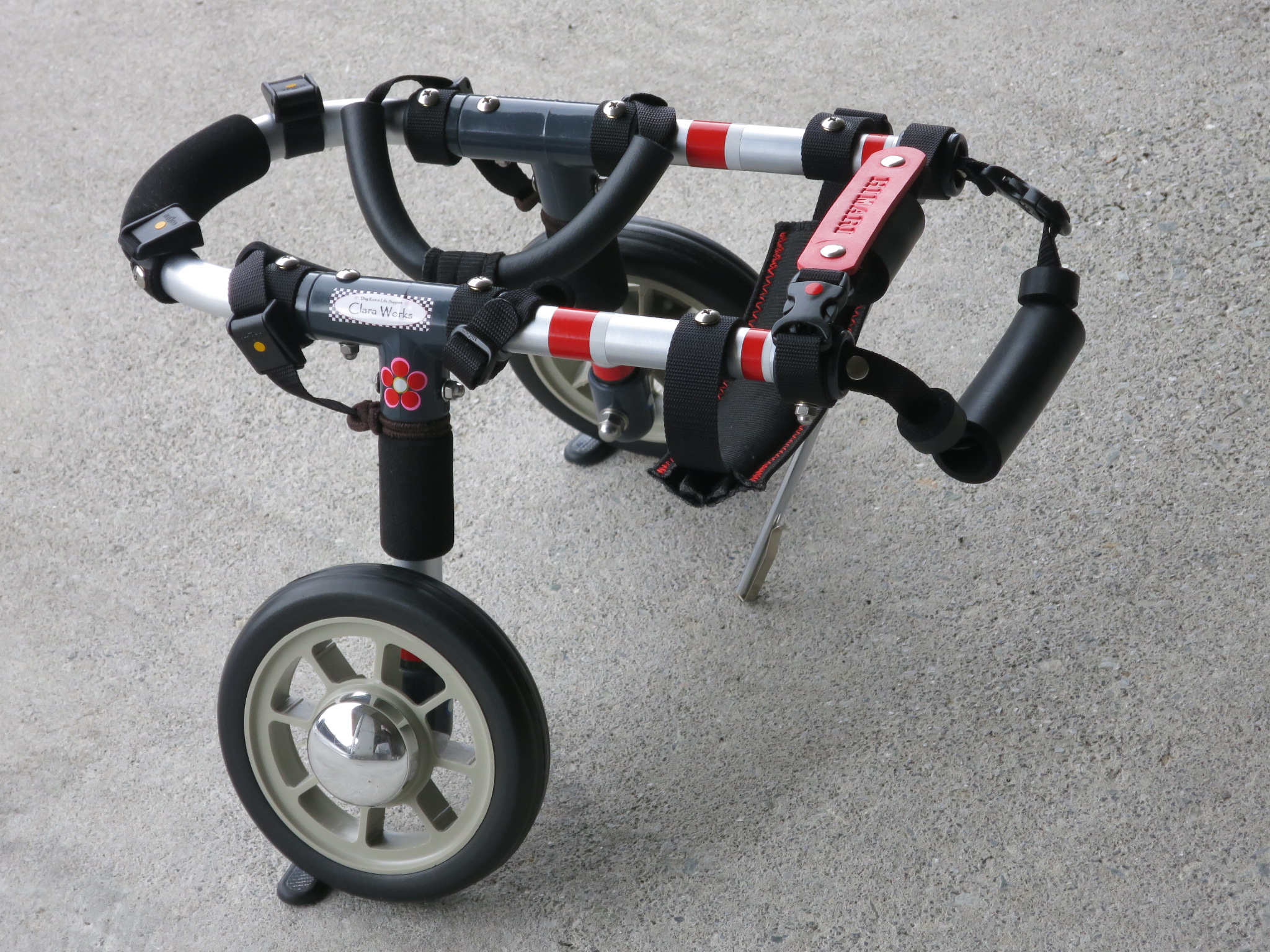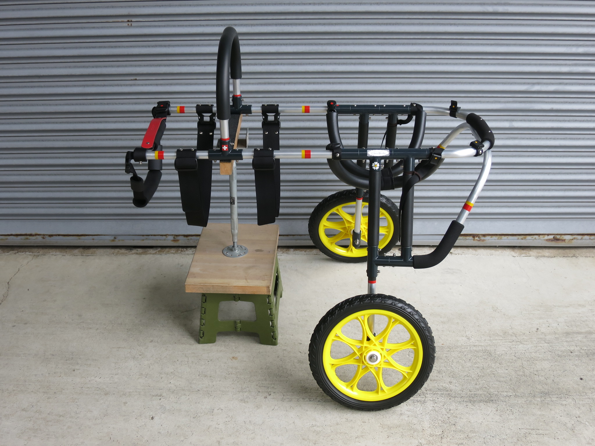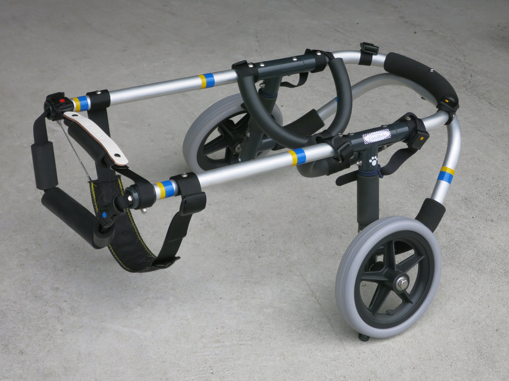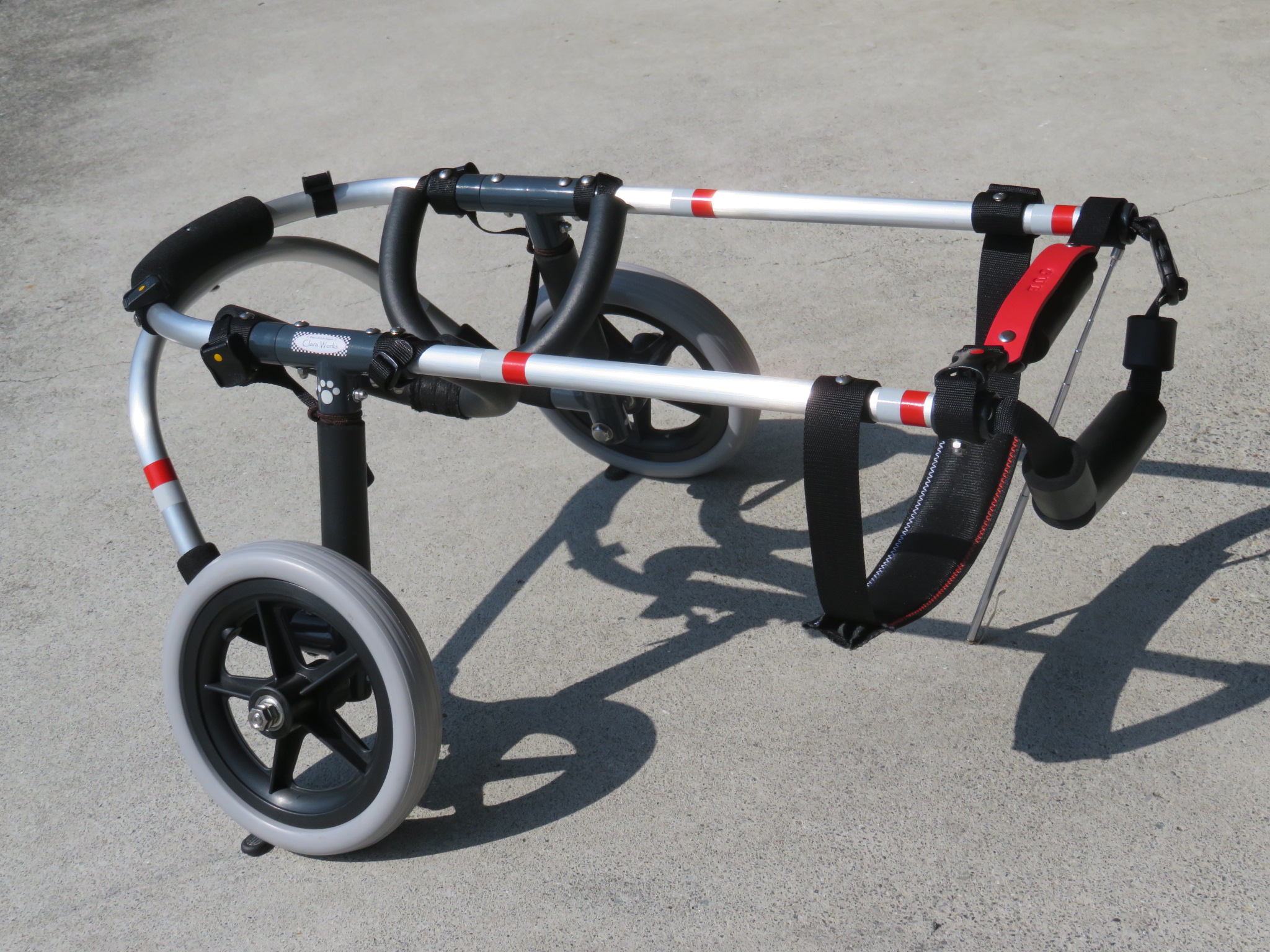 2輪車で歩けそうだけど不安がある、4輪で練習して筋力が戻れば2輪でも歩けそう、そんなワンちゃんのための仕様です