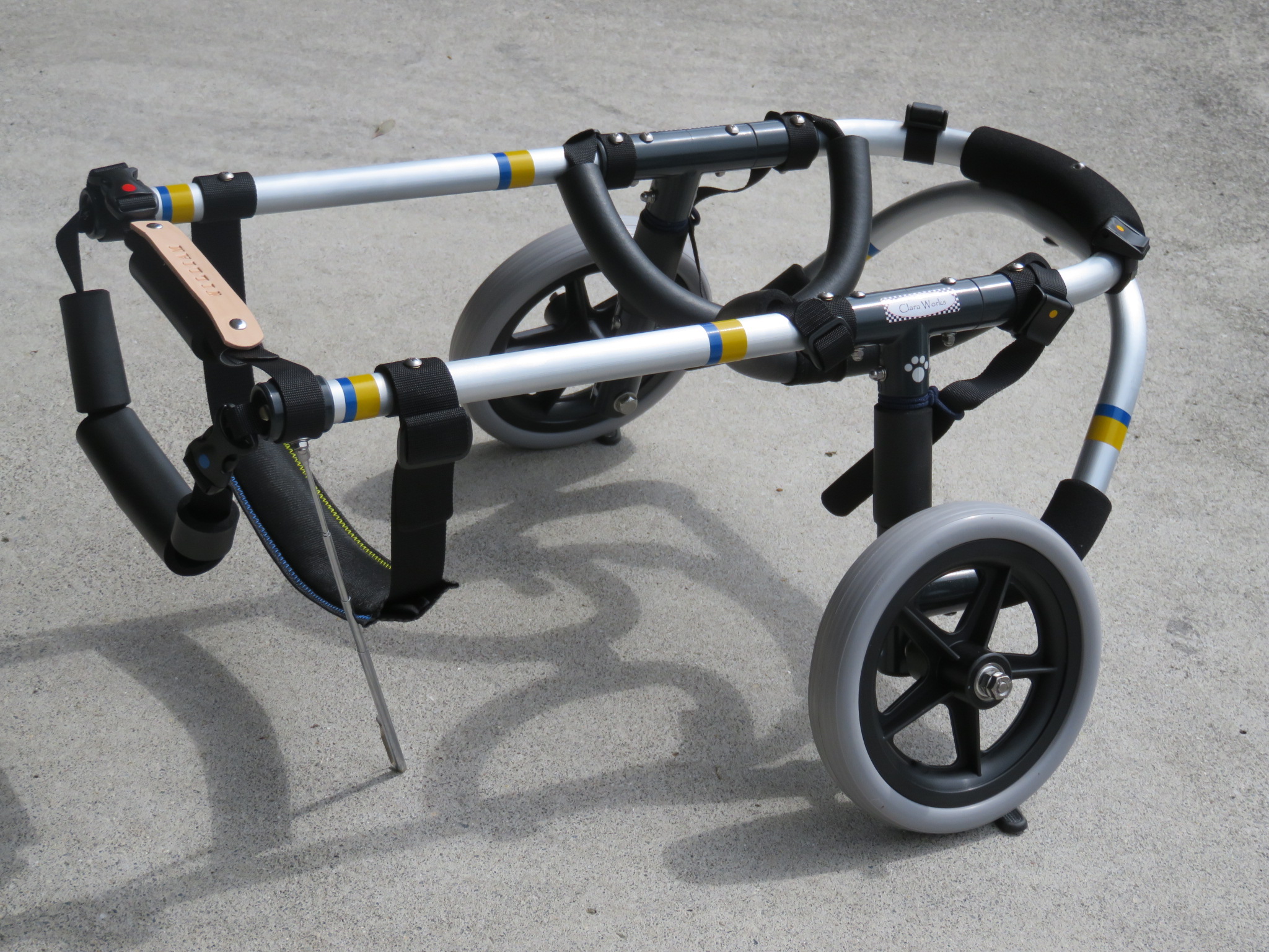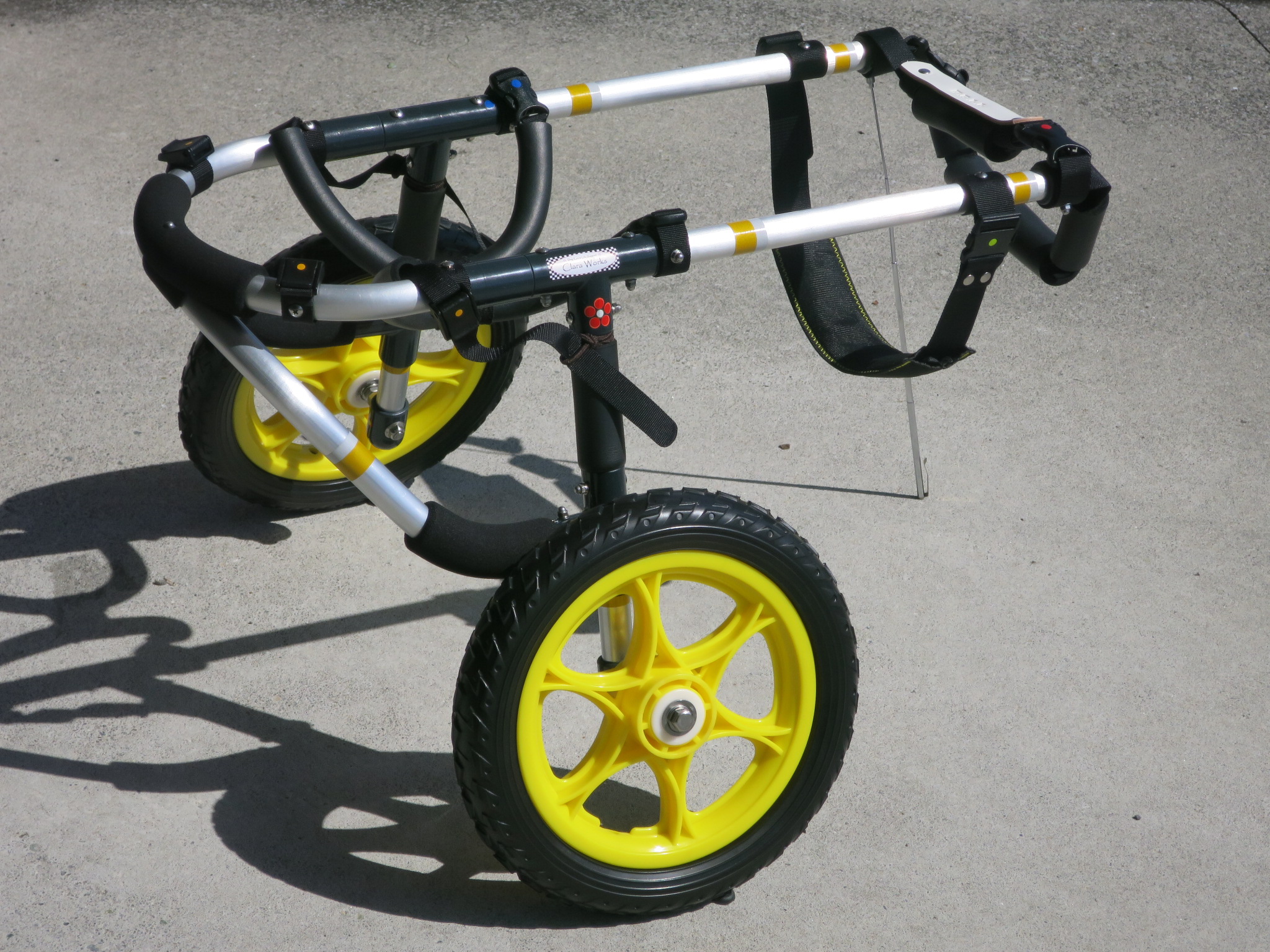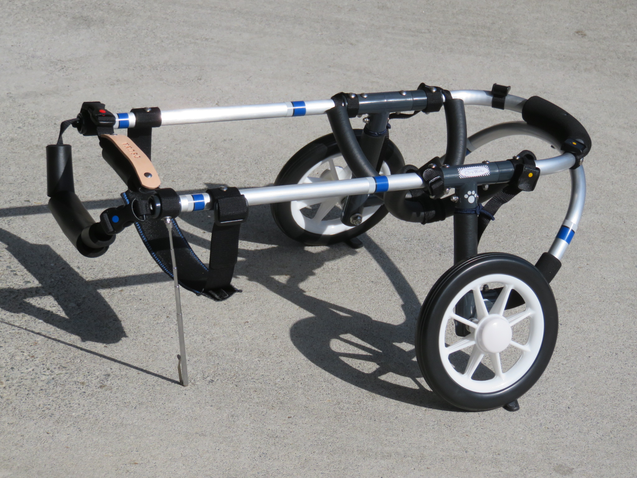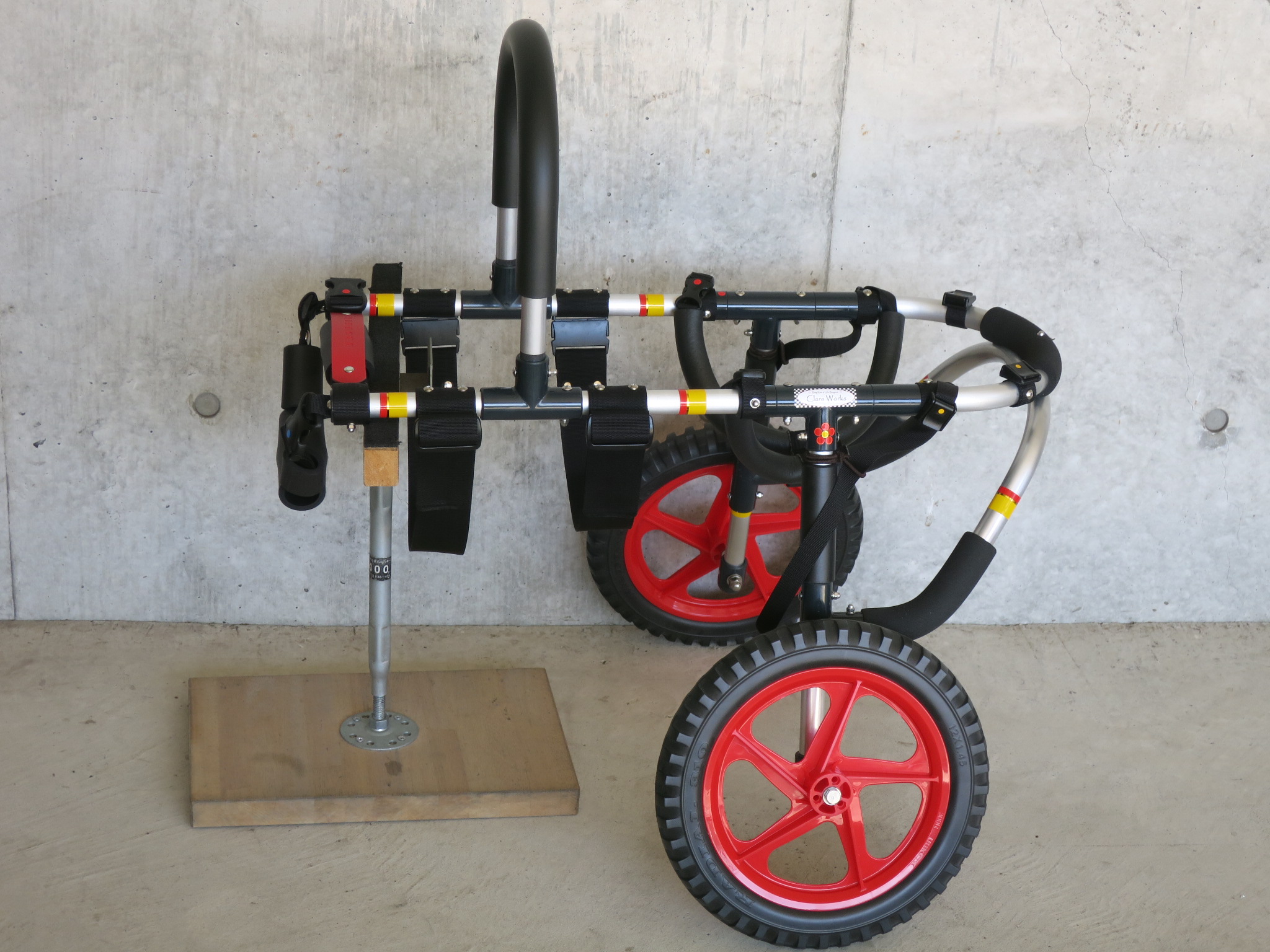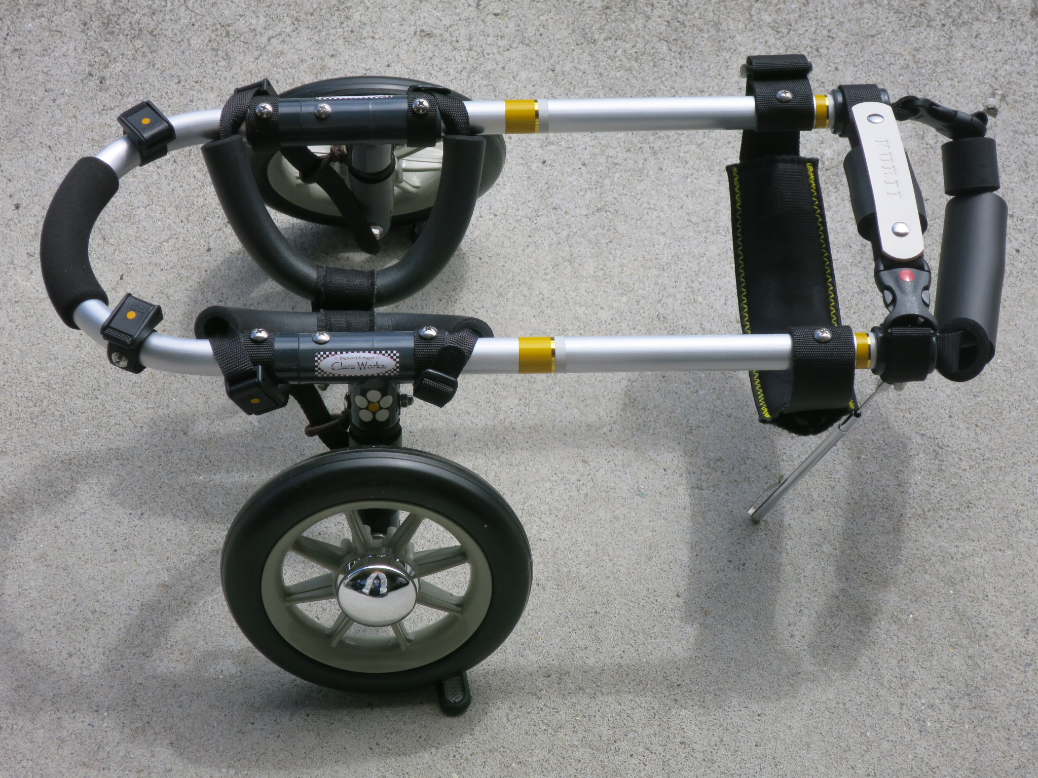 2輪車で歩けそうだけど不安がある、4輪で練習して筋力が戻れば2輪でも歩けそう、そんなワンちゃんのための仕様です
