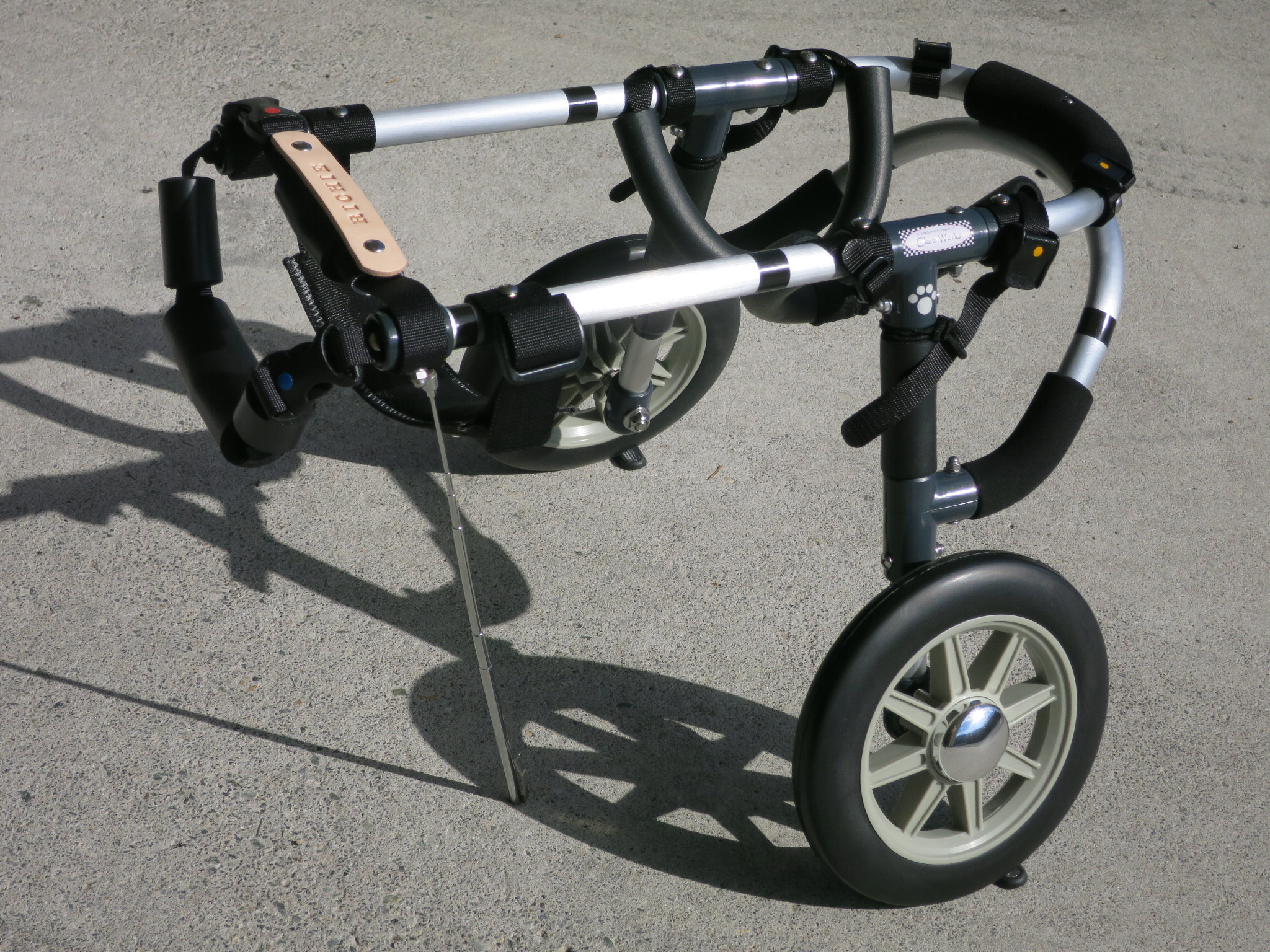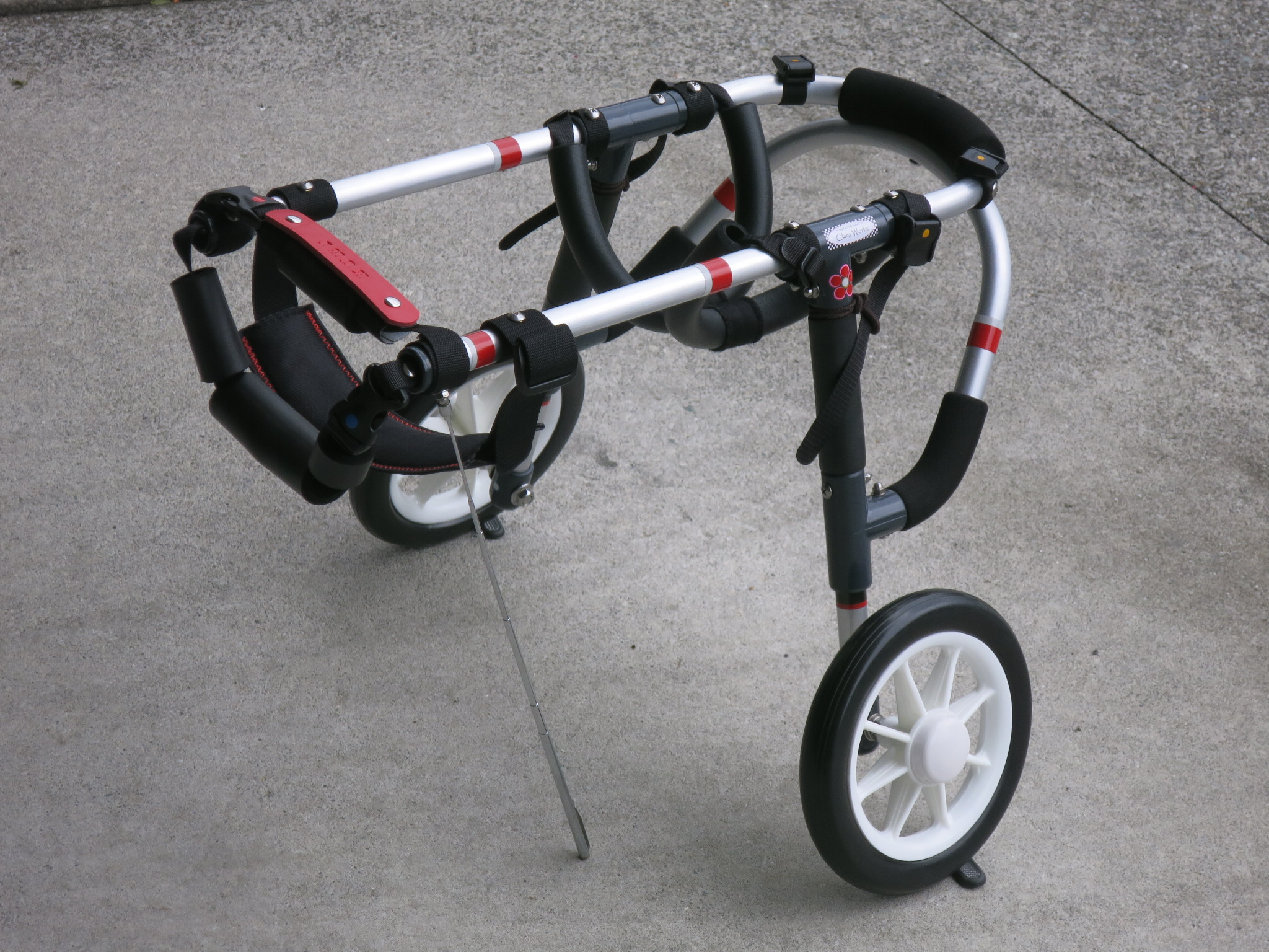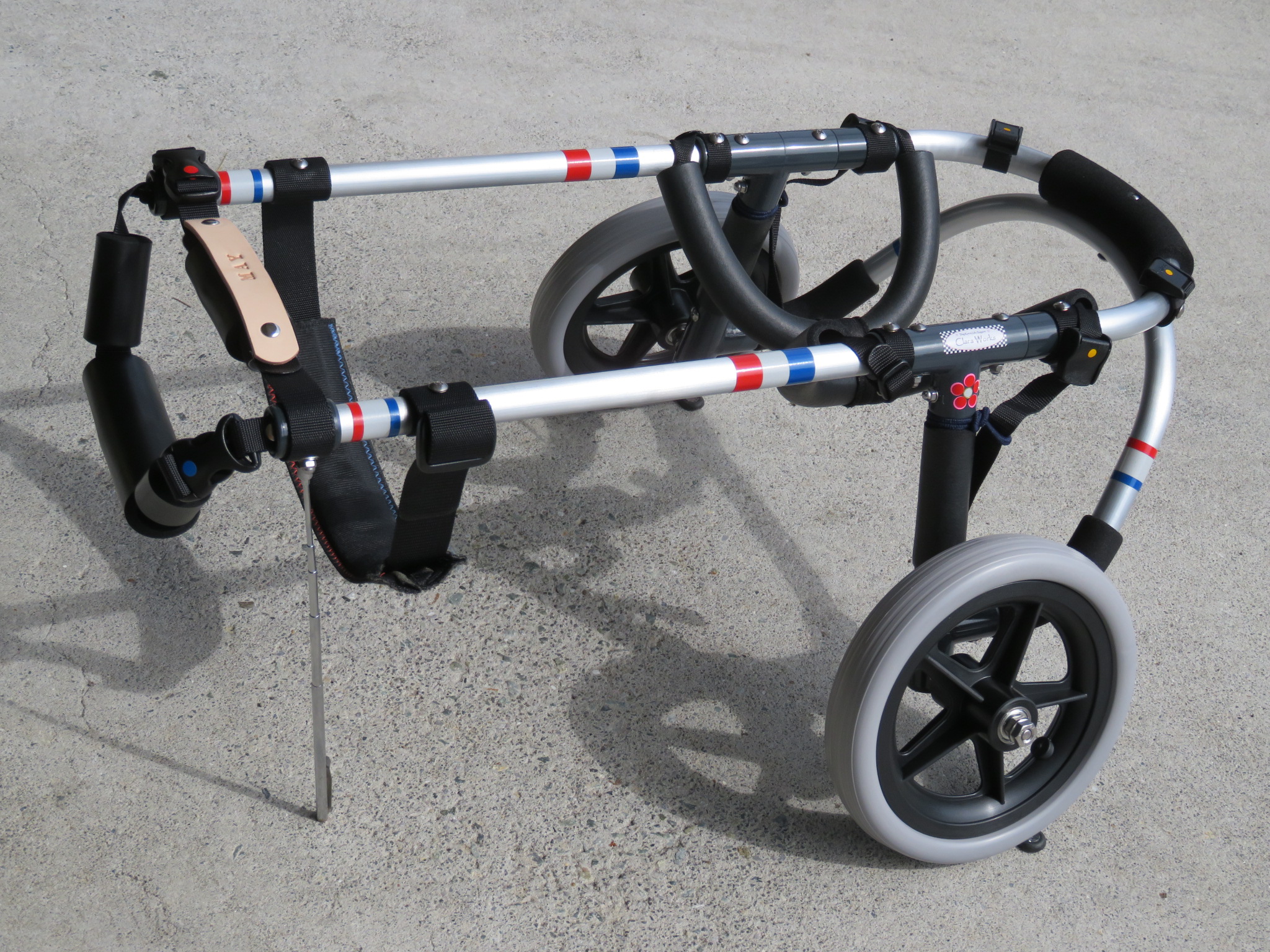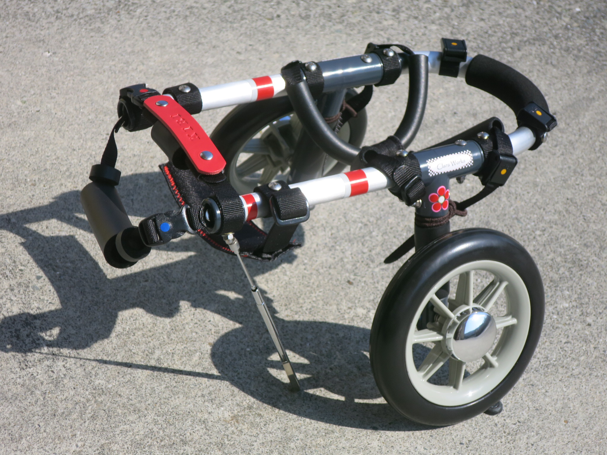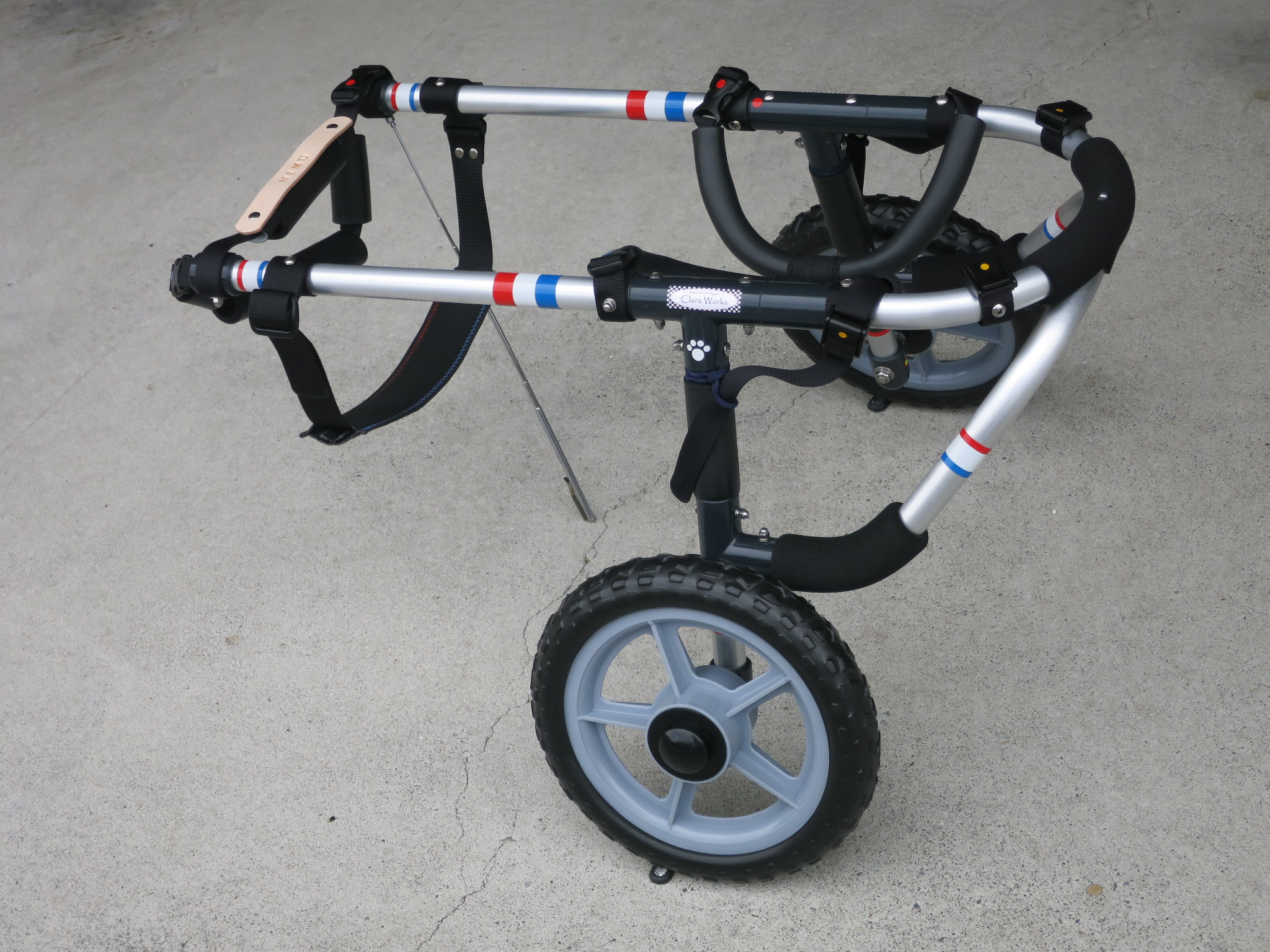 2輪車で歩けそうだけど不安がある、4輪で練習して筋力が戻れば2輪でも歩けそう、そんなワンちゃんのための仕様です