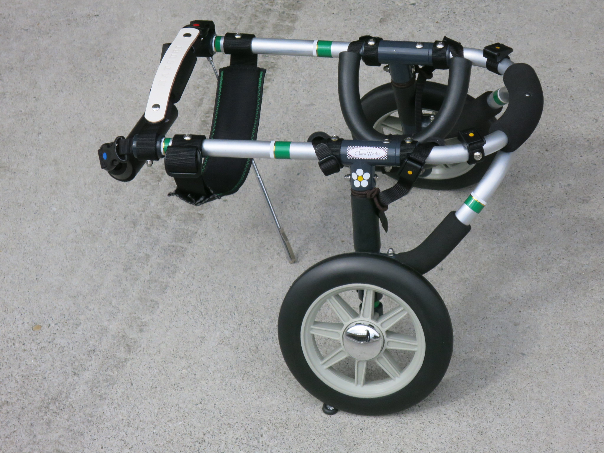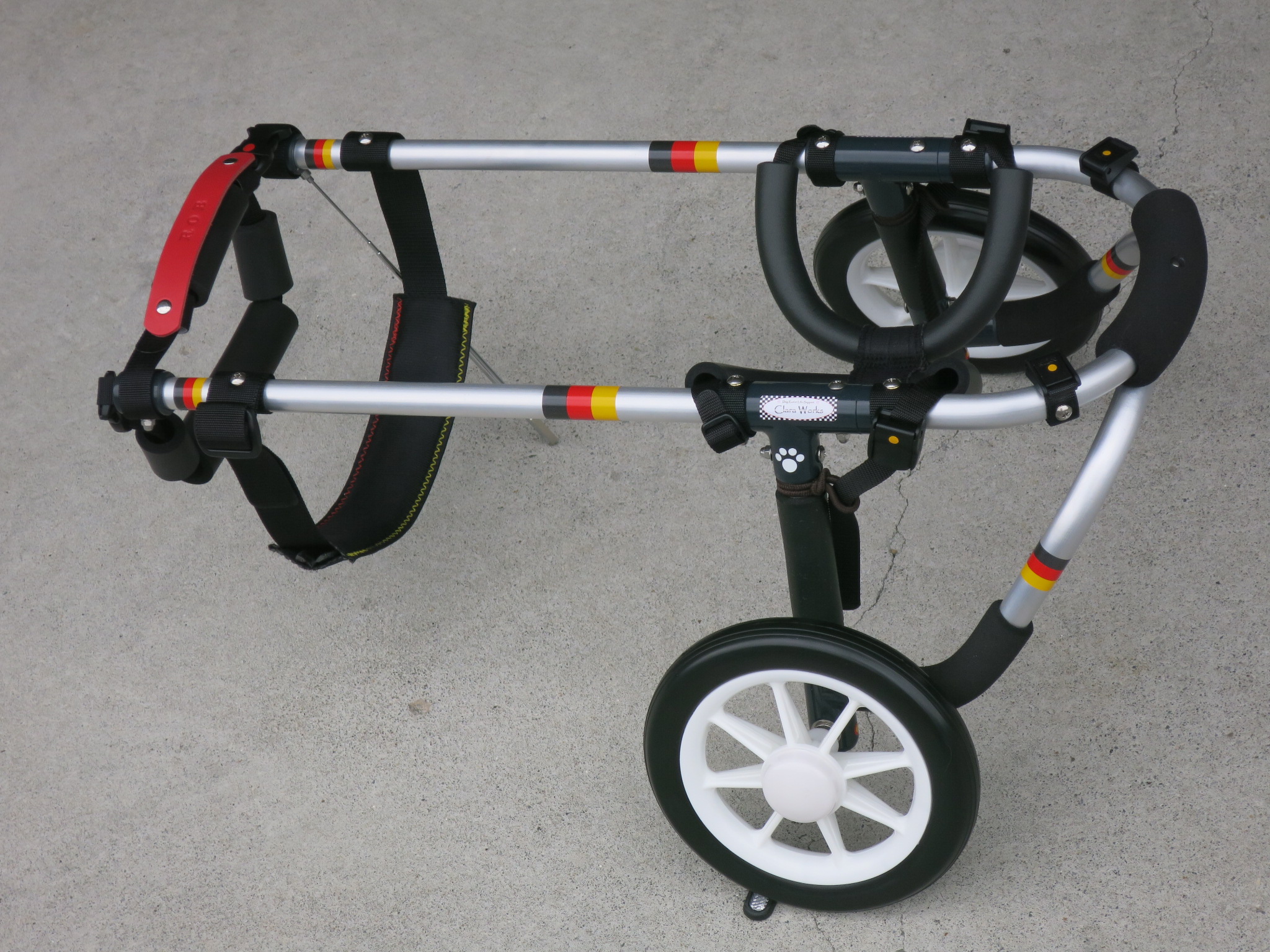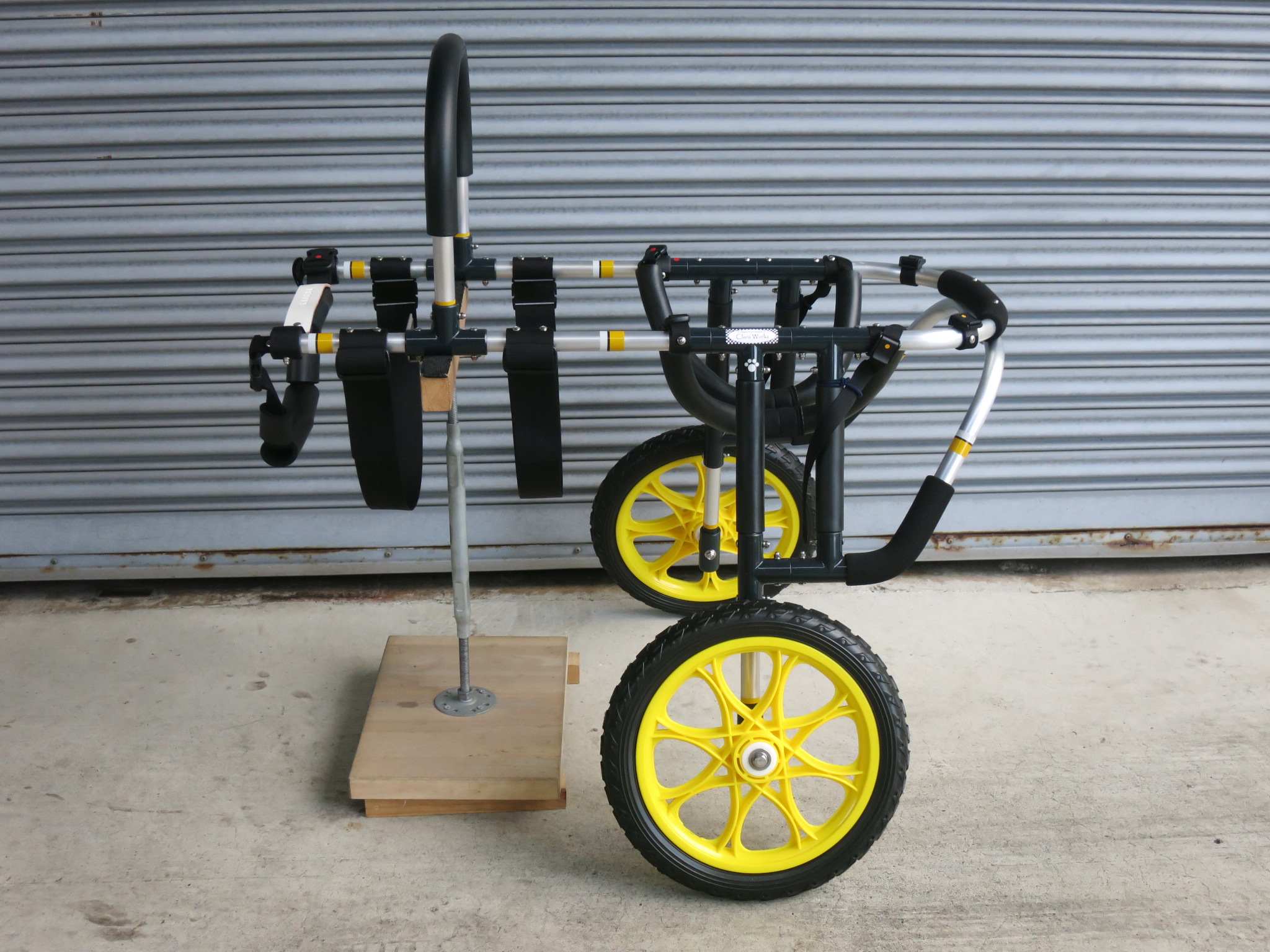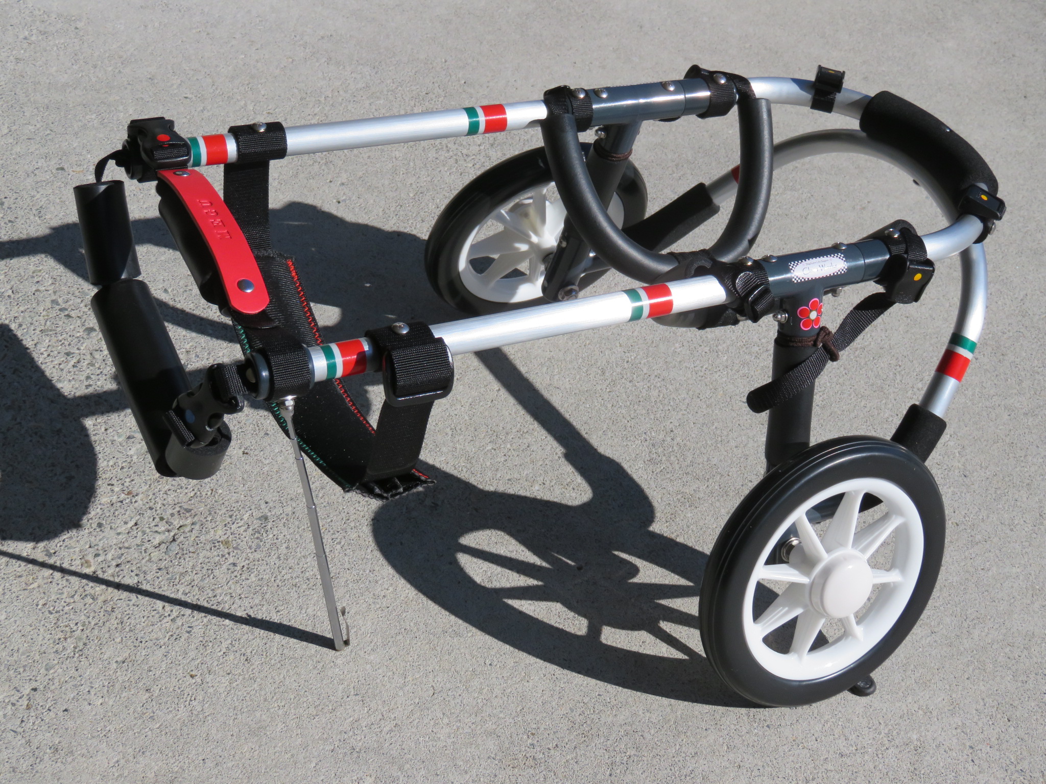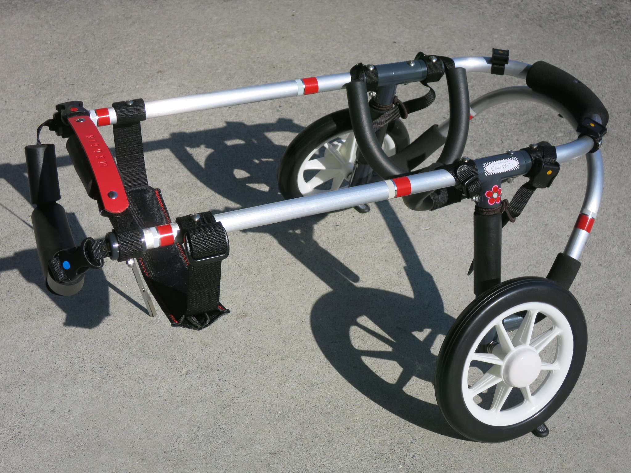 2輪車で歩けそうだけど不安がある、4輪で練習して筋力が戻れば2輪でも歩けそう、そんなワンちゃんのための仕様です