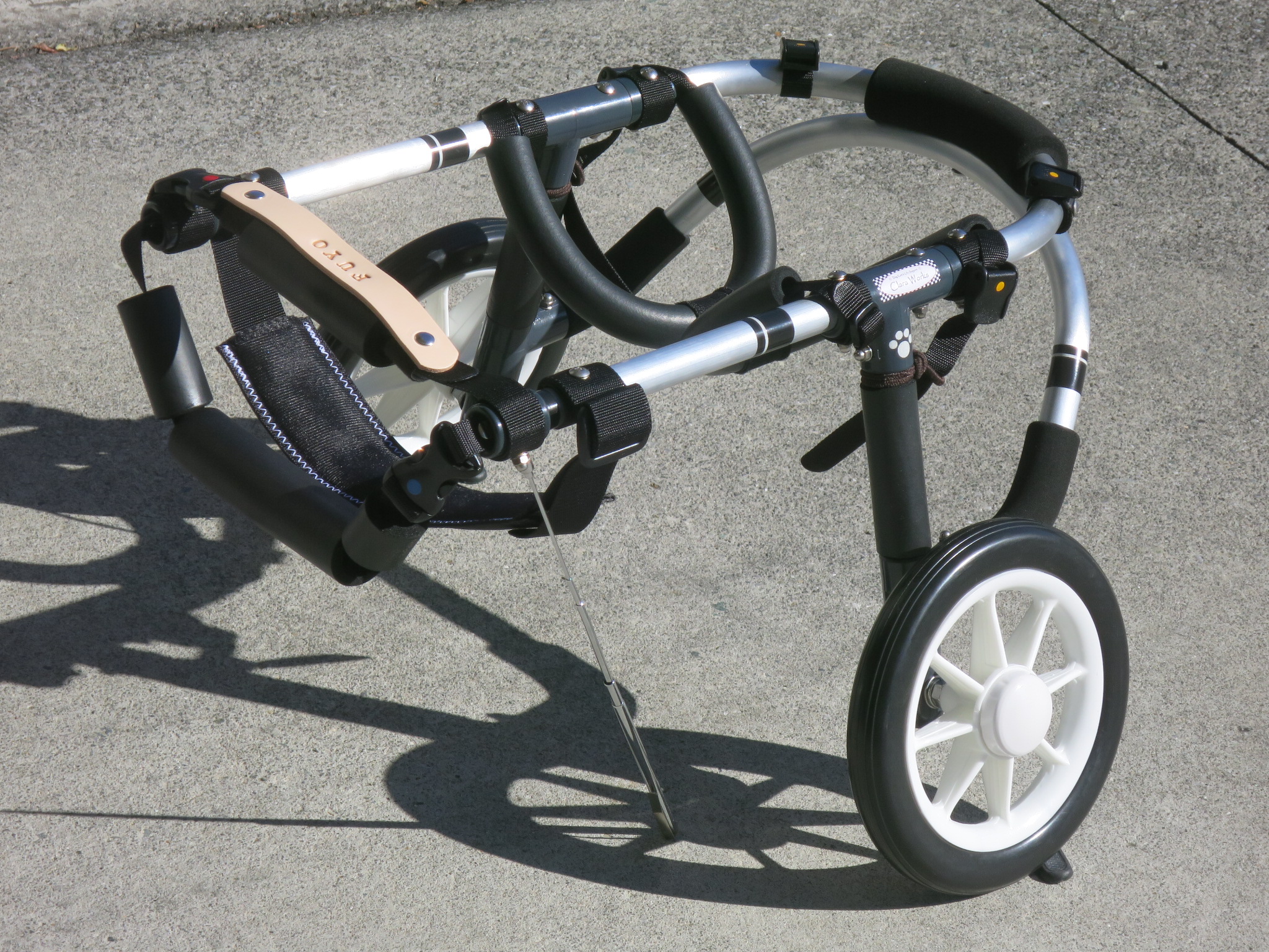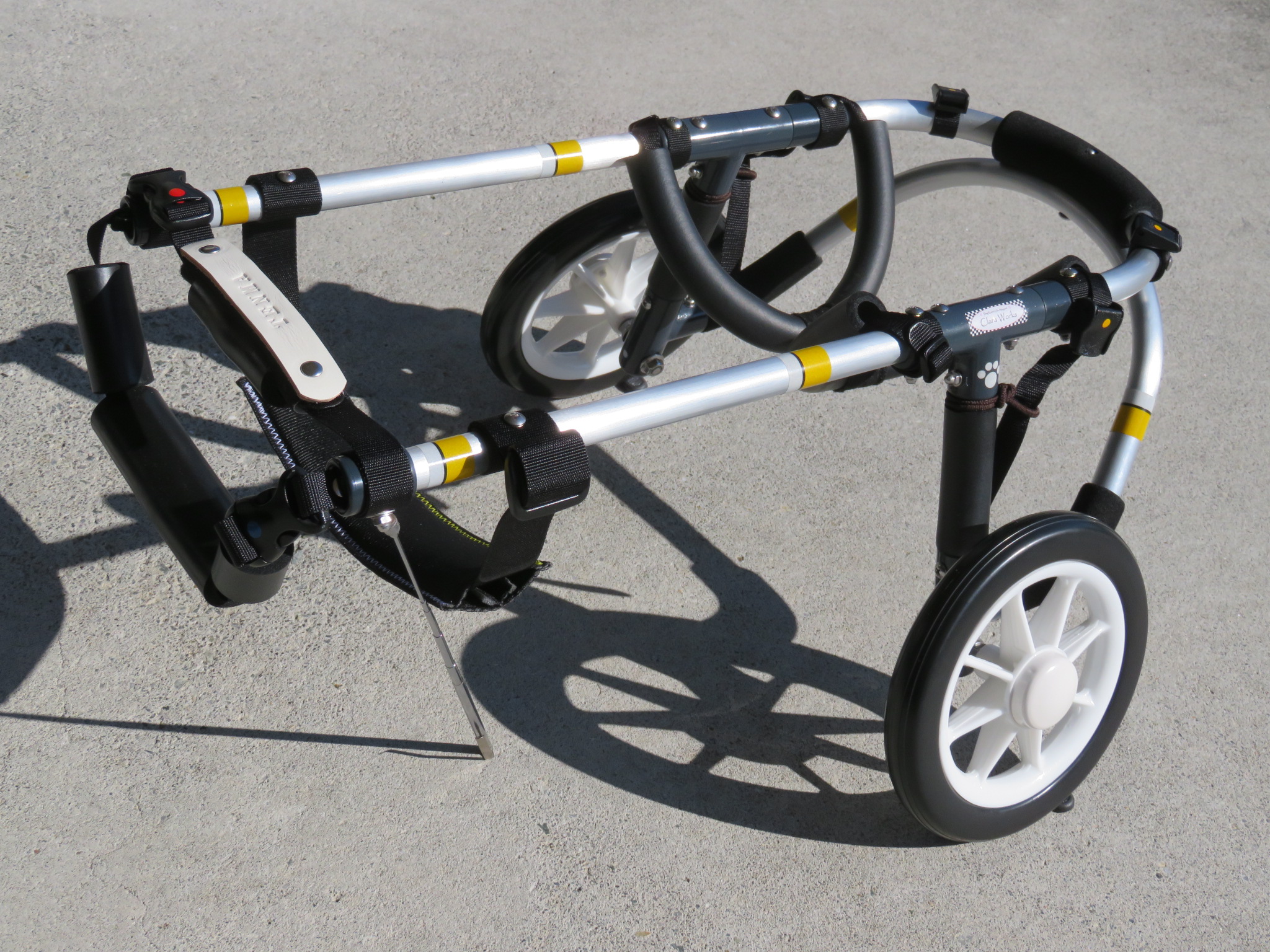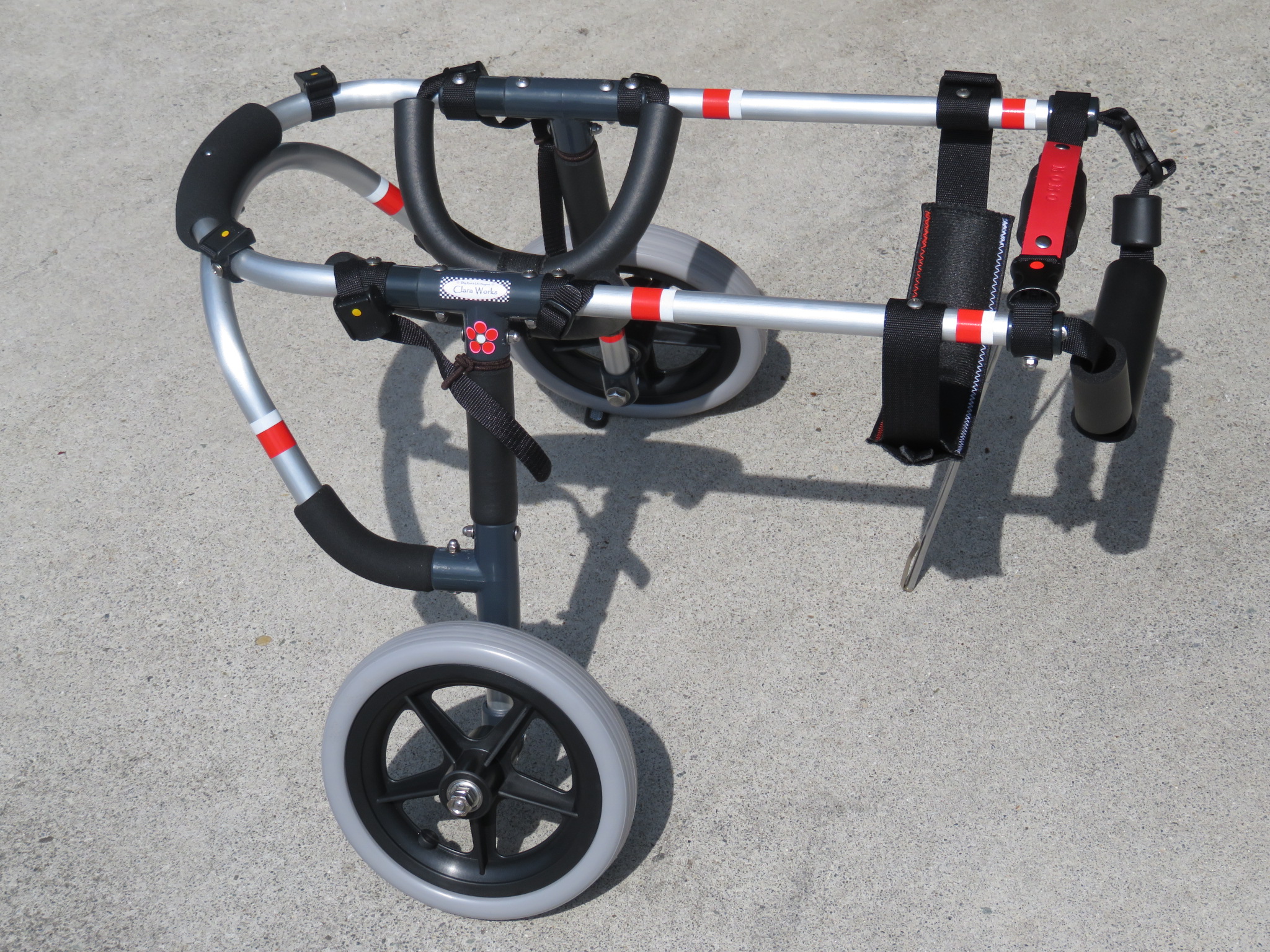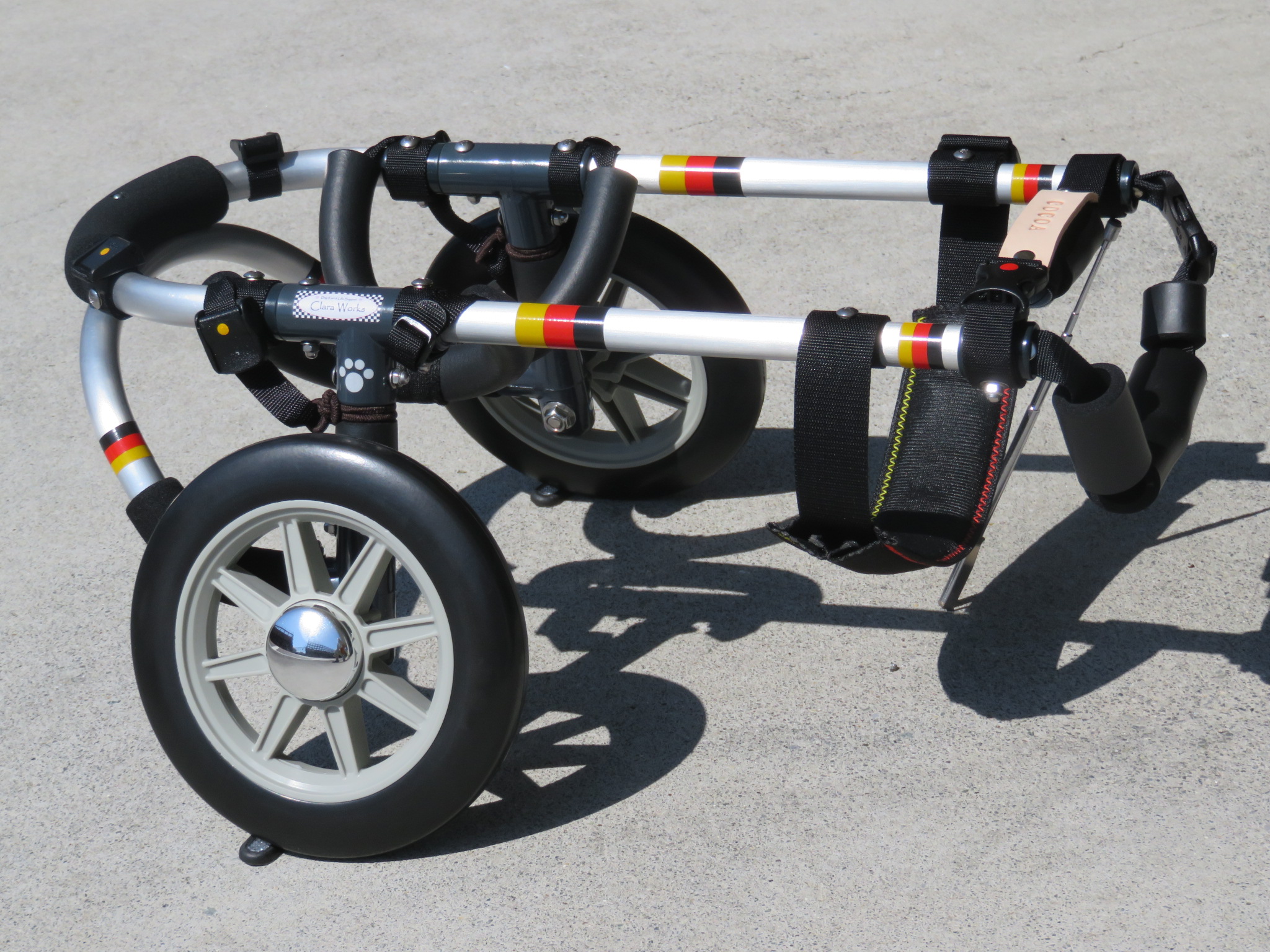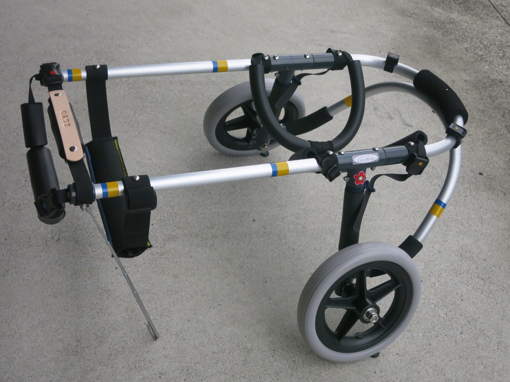 2輪車で歩けそうだけど不安がある、4輪で練習して筋力が戻れば2輪でも歩けそう、そんなワンちゃんのための仕様です