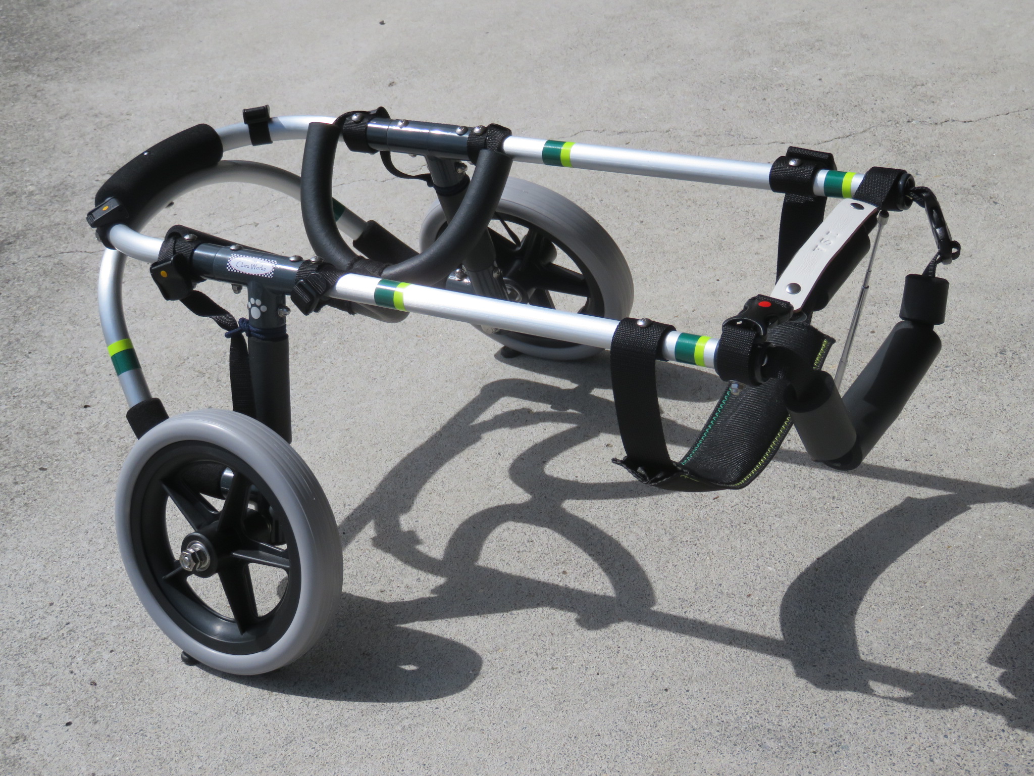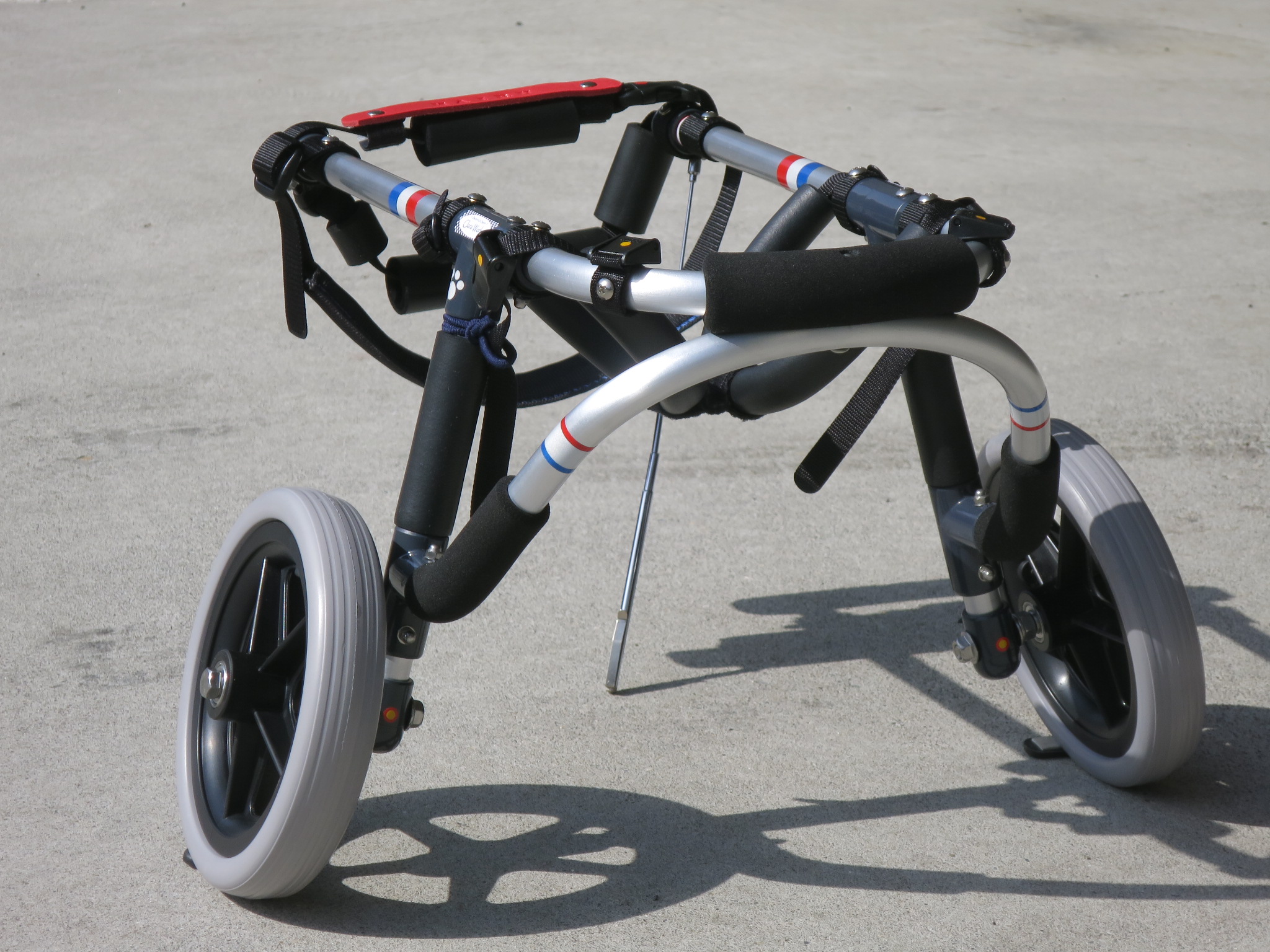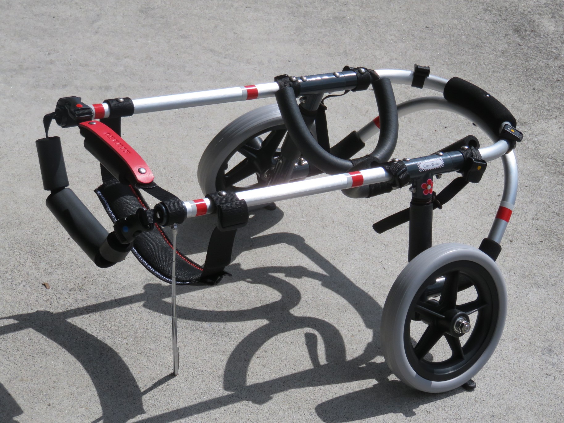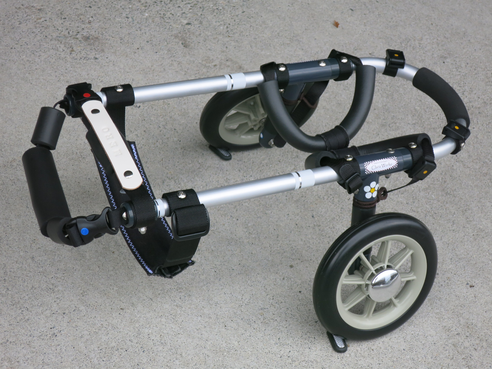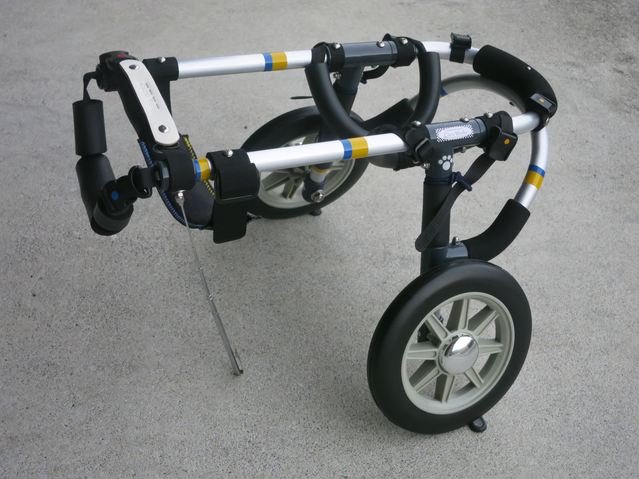 2輪車で歩けそうだけど不安がある、4輪で練習して筋力が戻れば2輪でも歩けそう、そんなワンちゃんのための仕様です