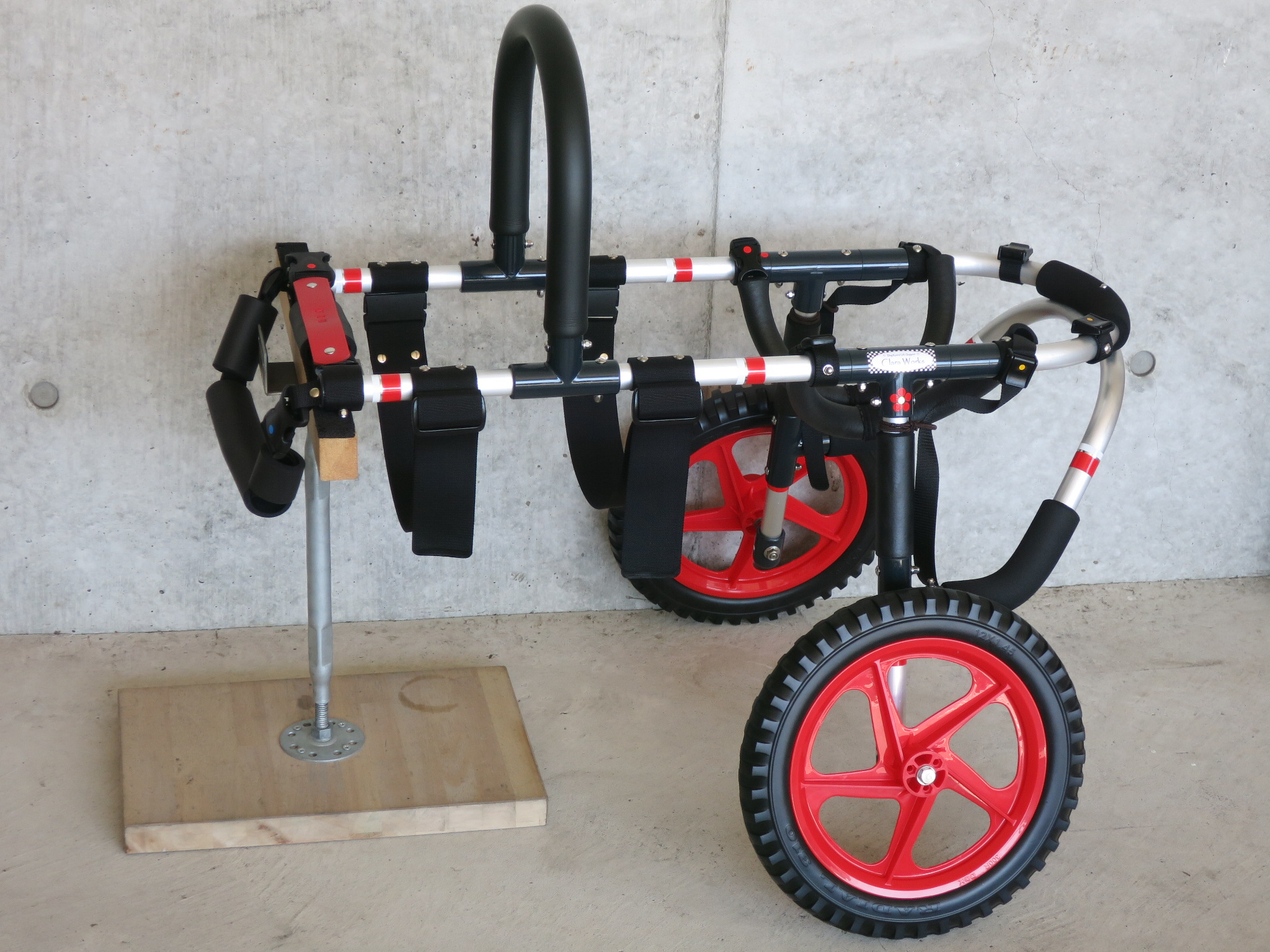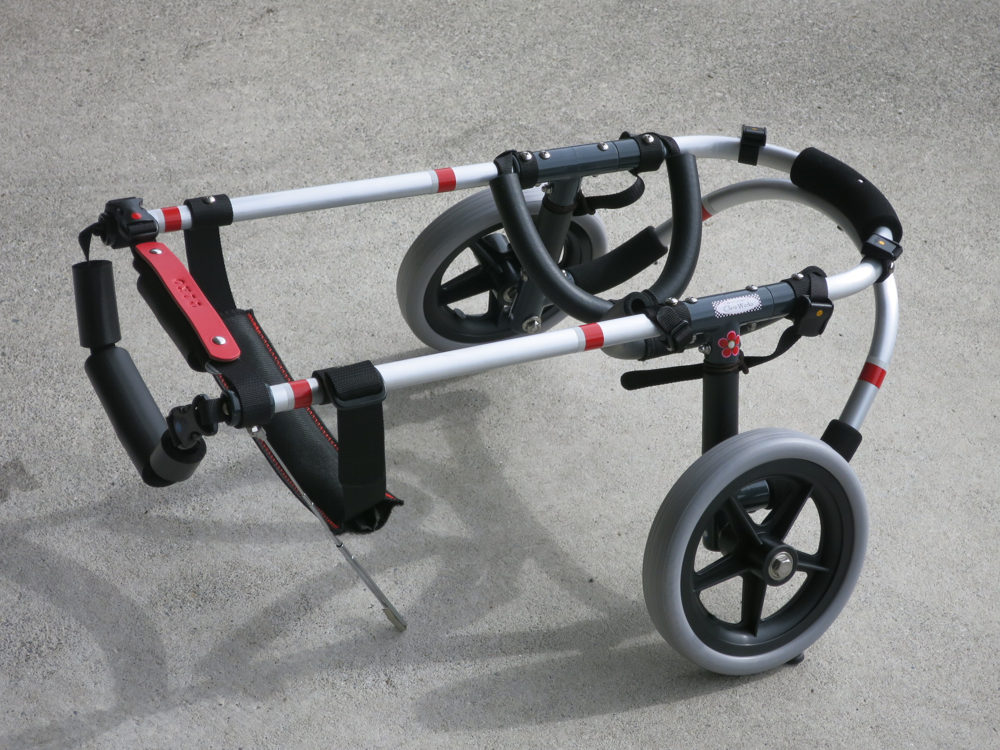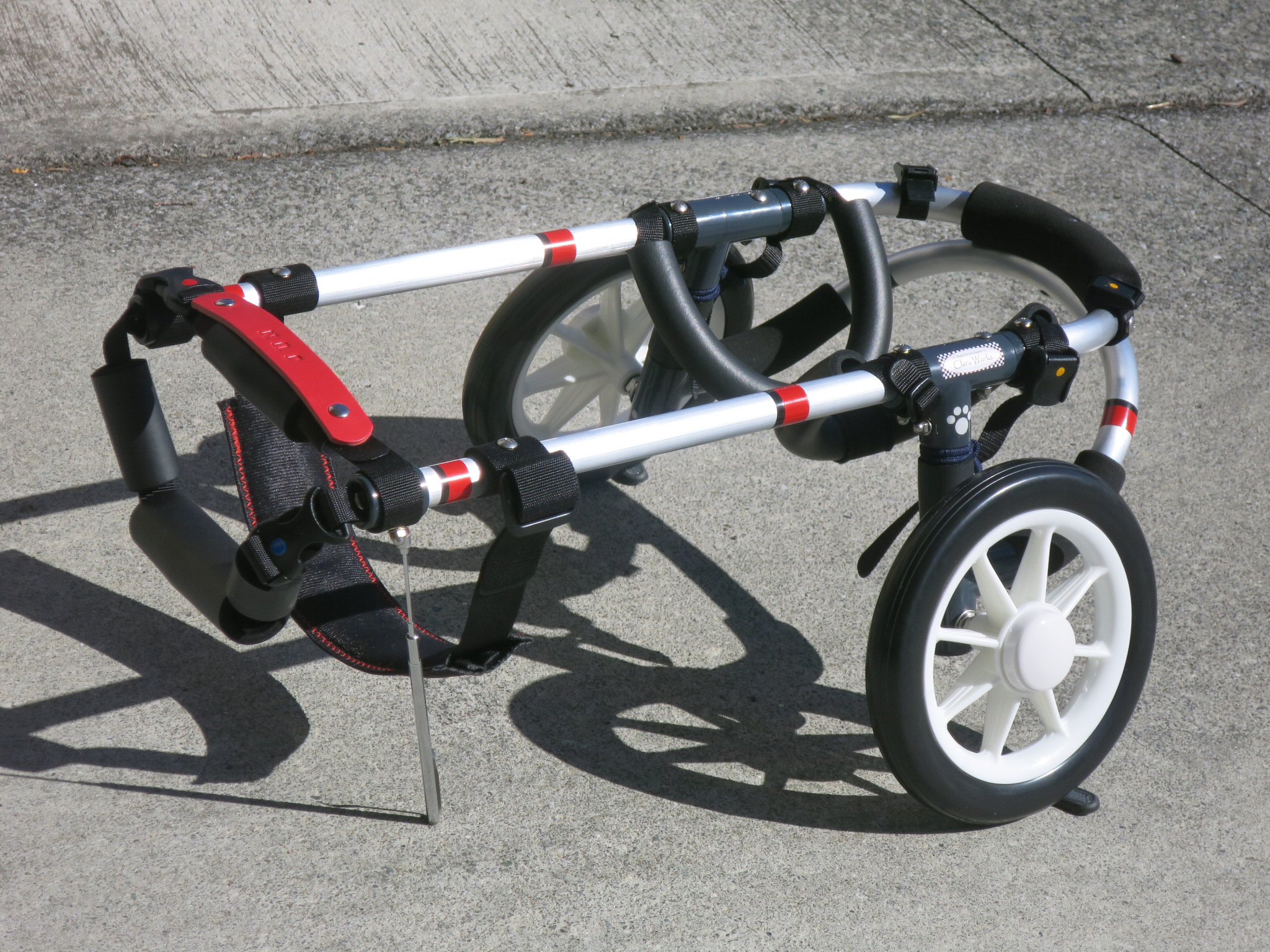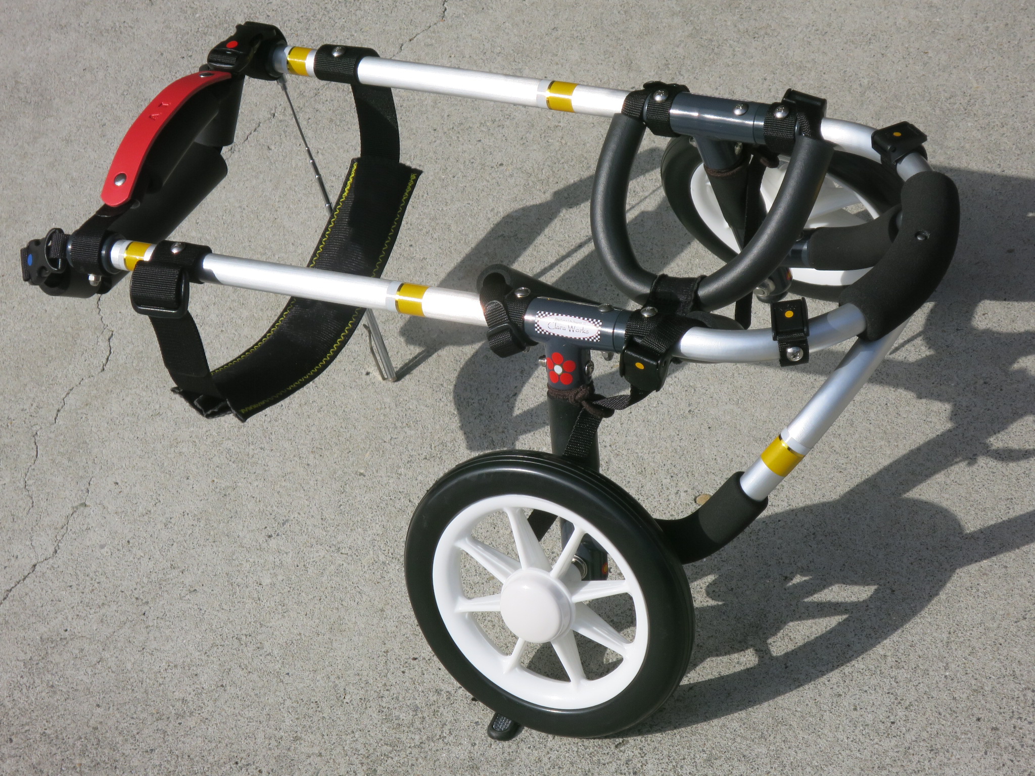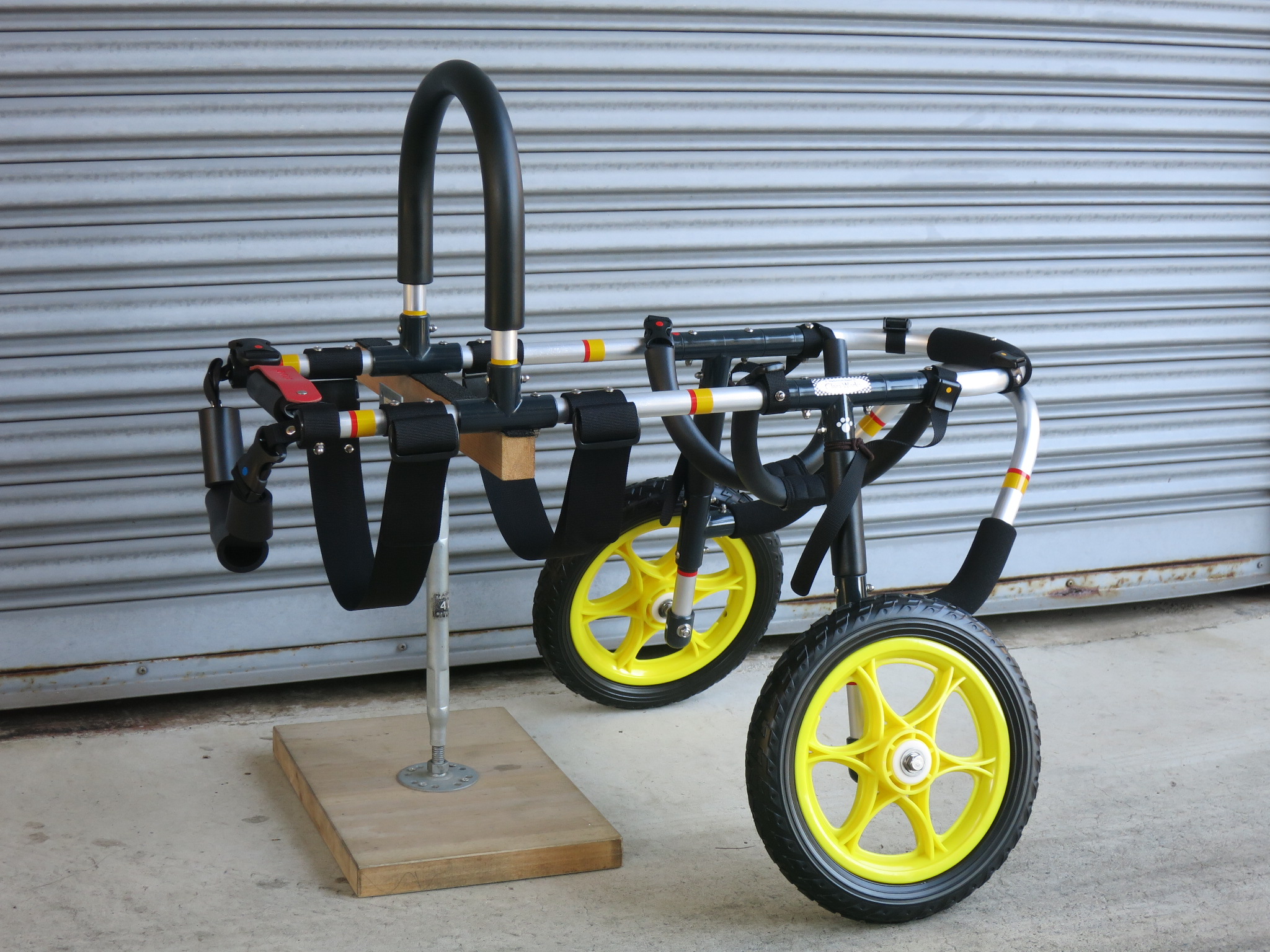 2輪車で歩けそうだけど不安がある、4輪で練習して筋力が戻れば2輪でも歩けそう、そんなワンちゃんのための仕様です