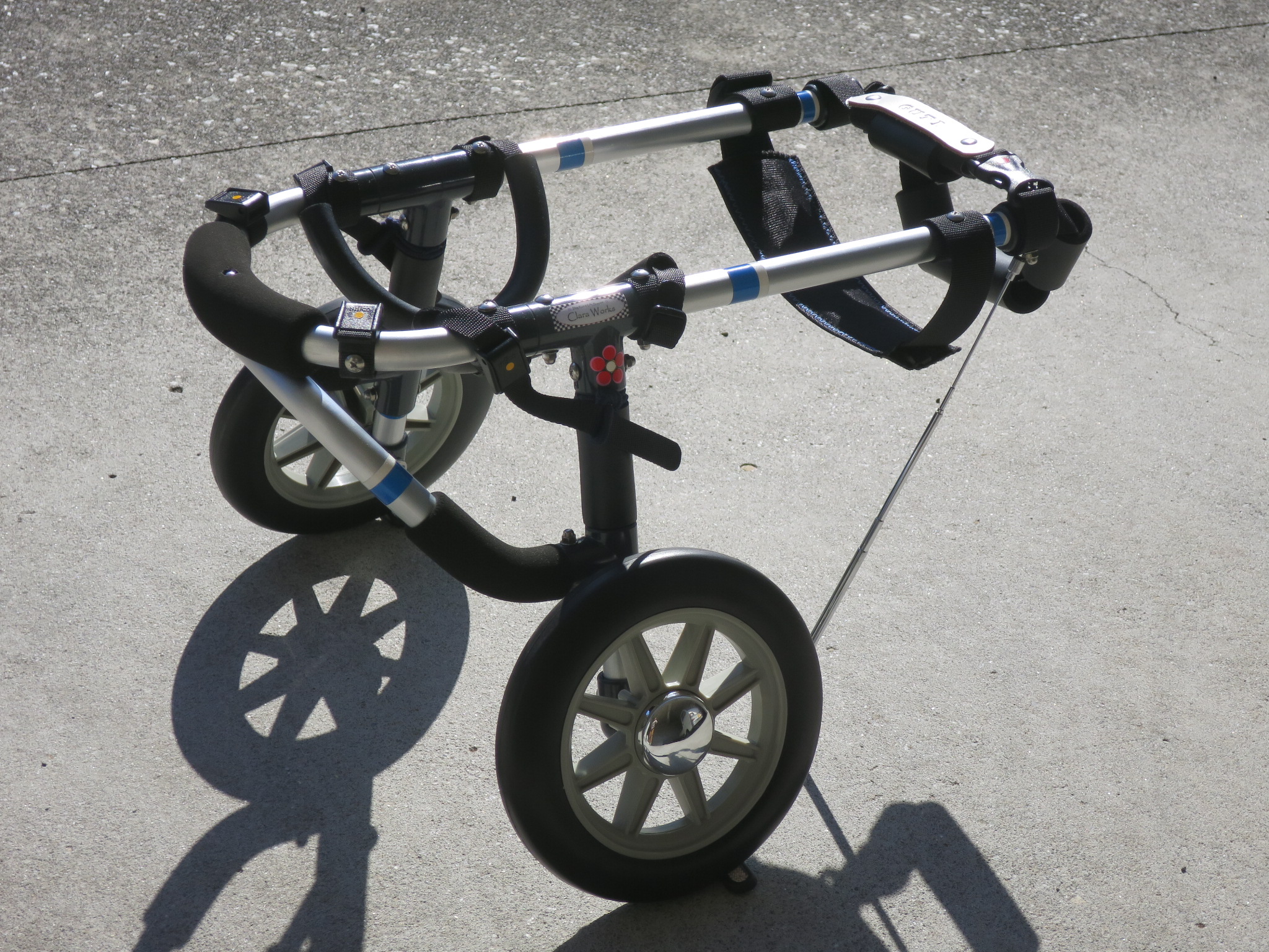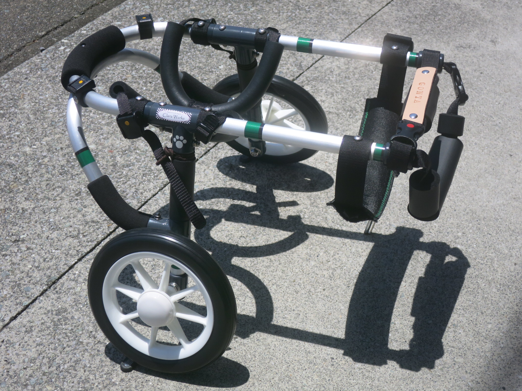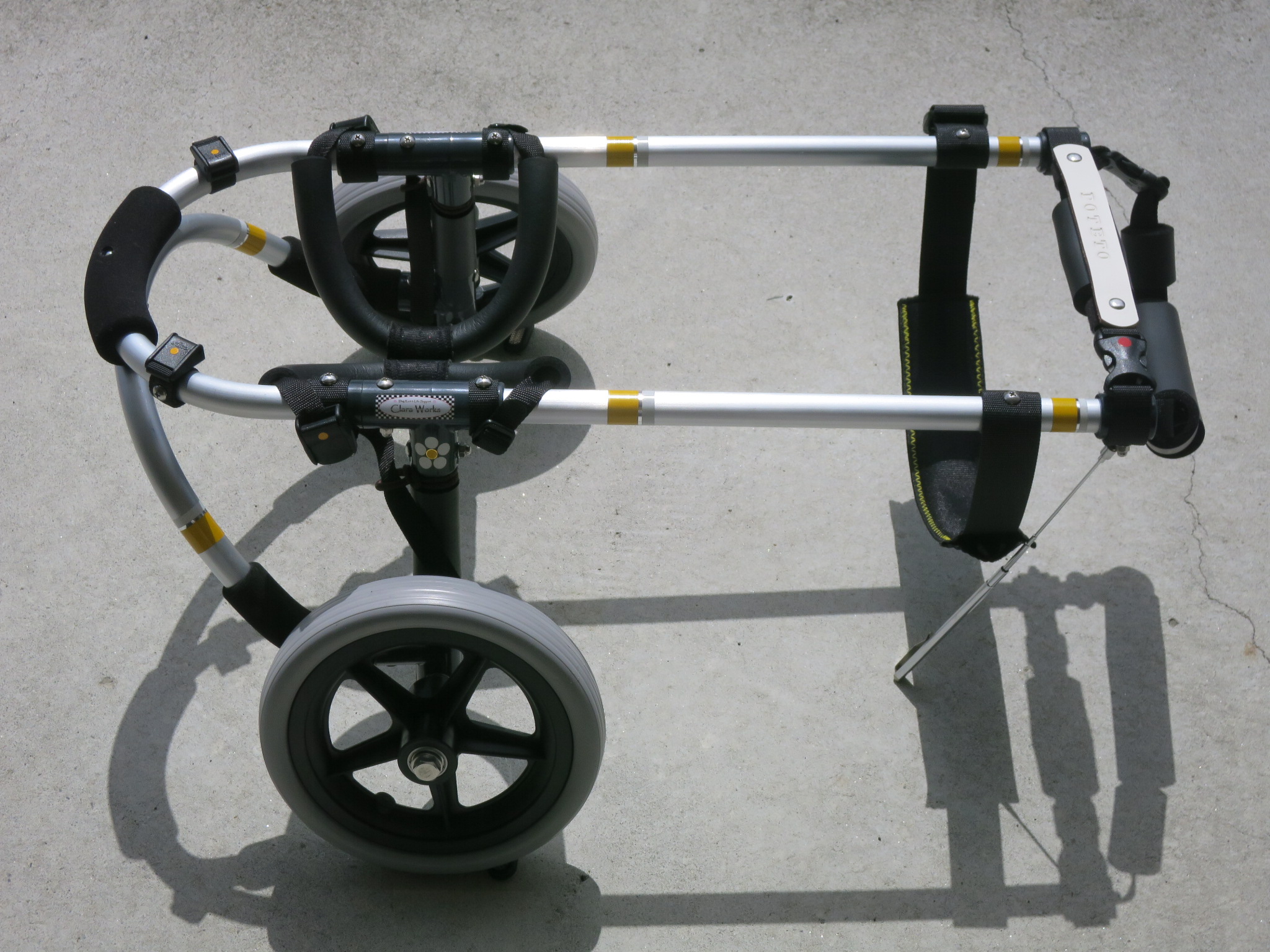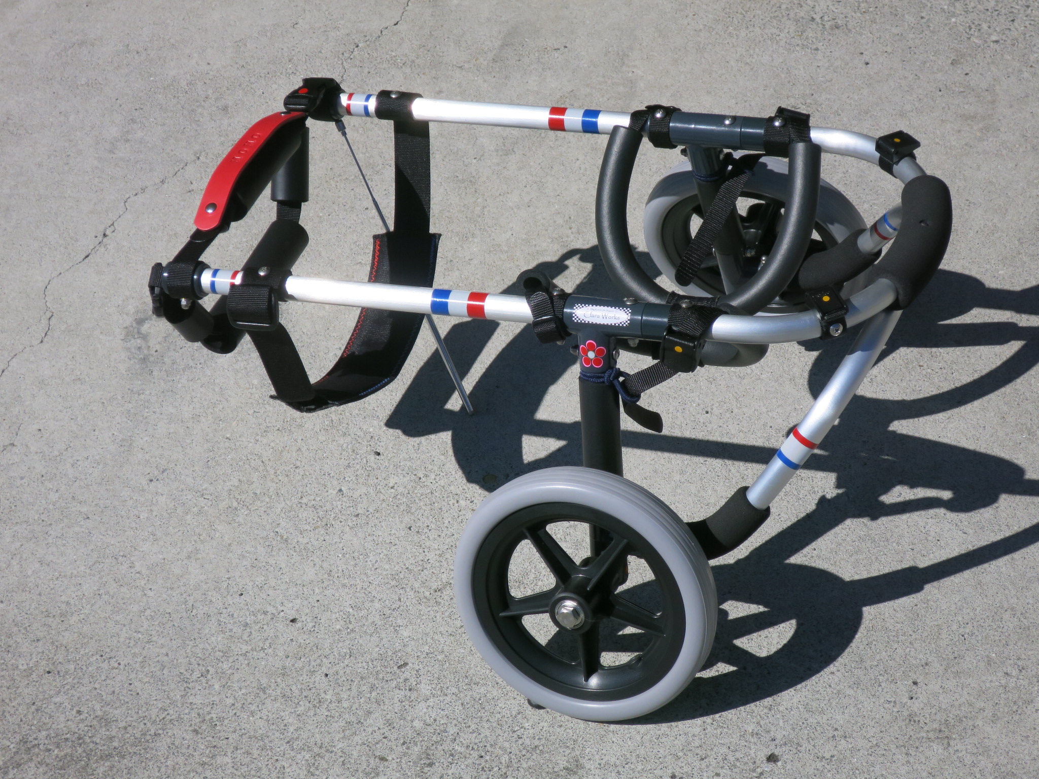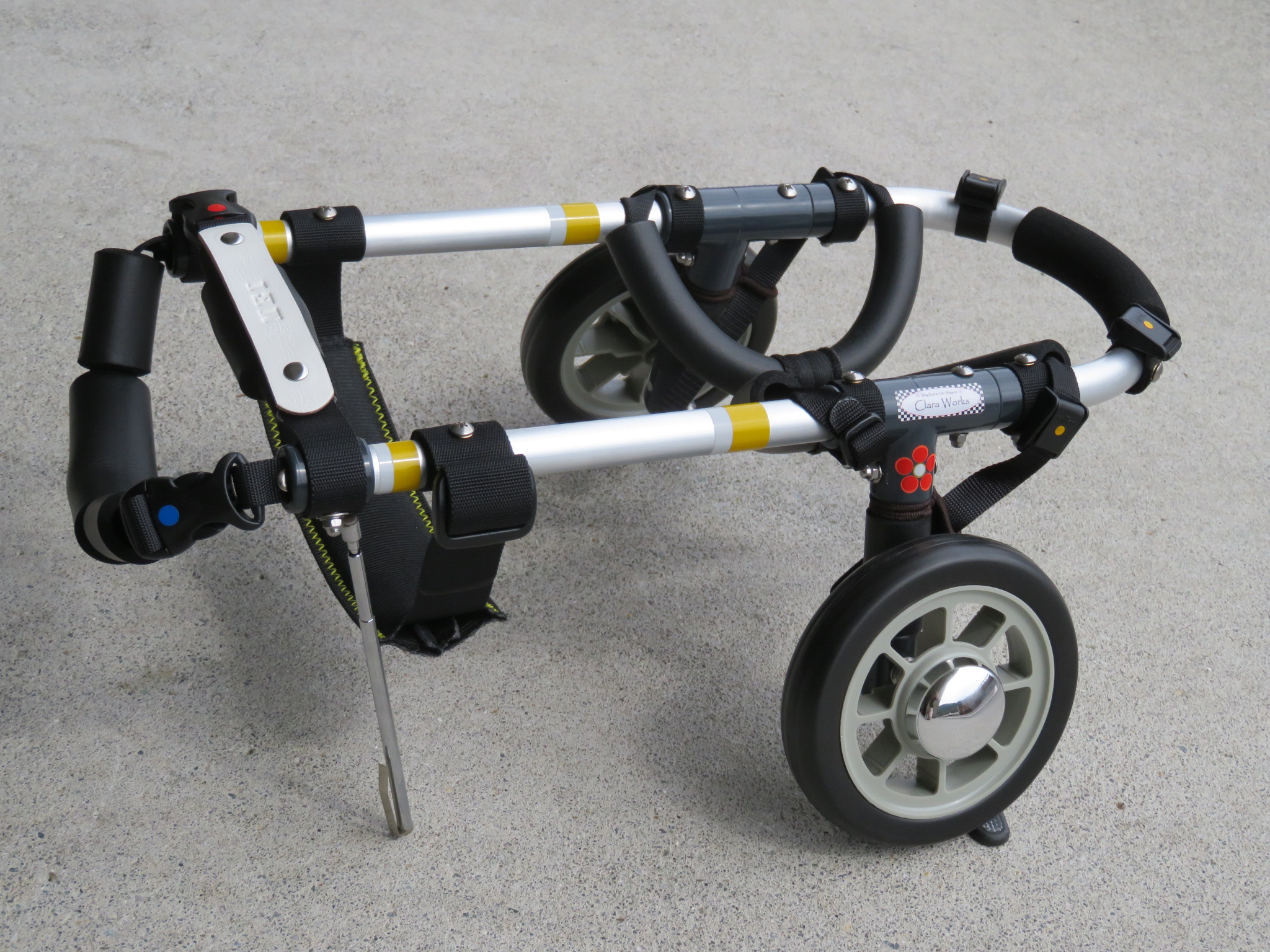 2輪車で歩けそうだけど不安がある、4輪で練習して筋力が戻れば2輪でも歩けそう、そんなワンちゃんのための仕様です
