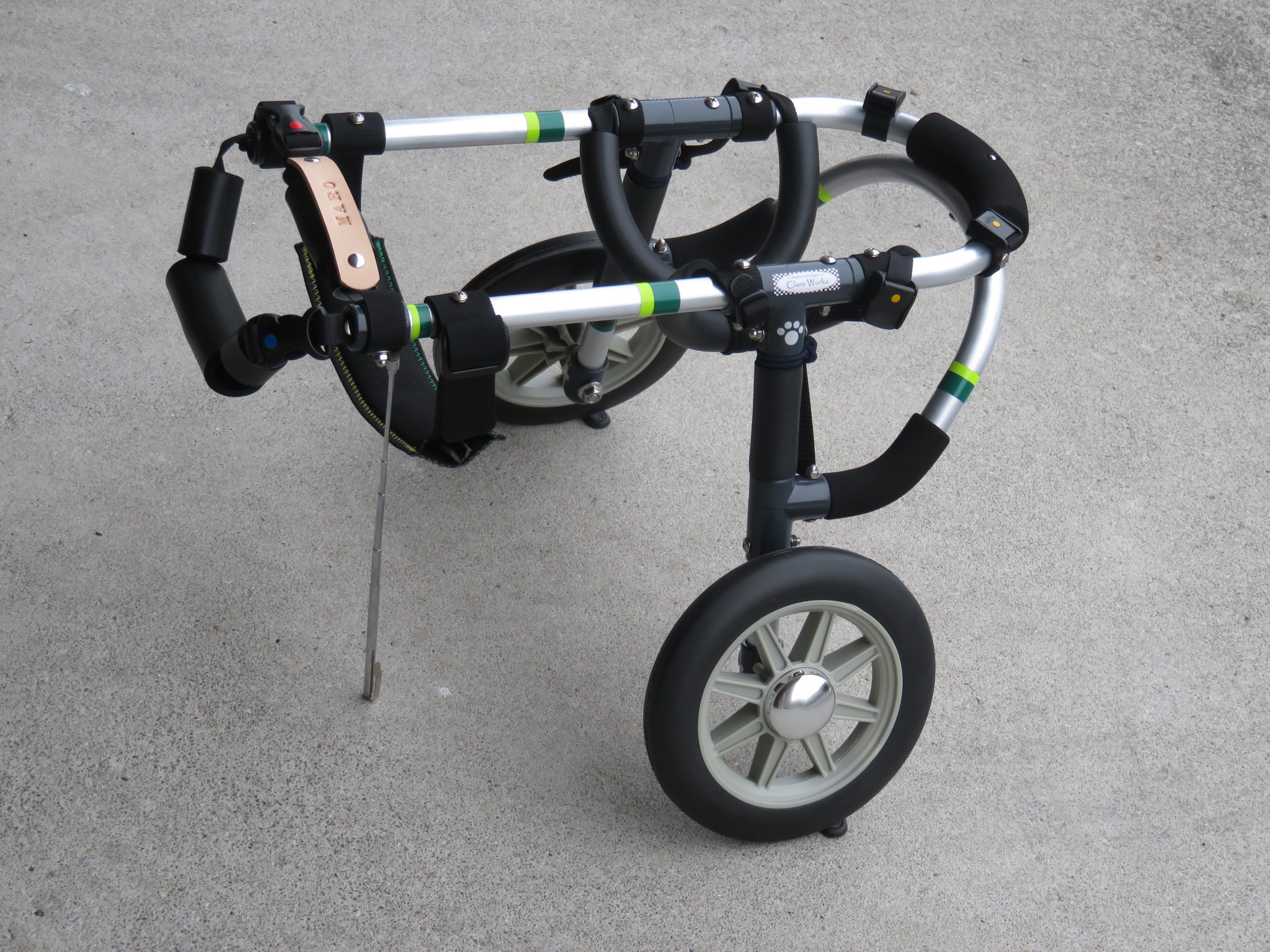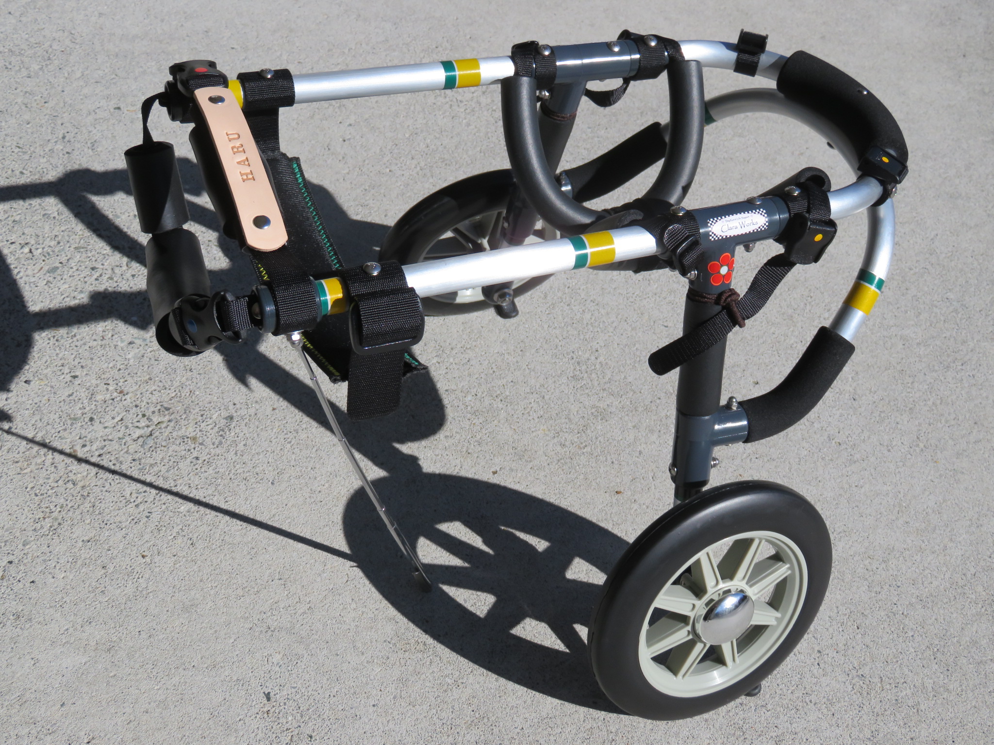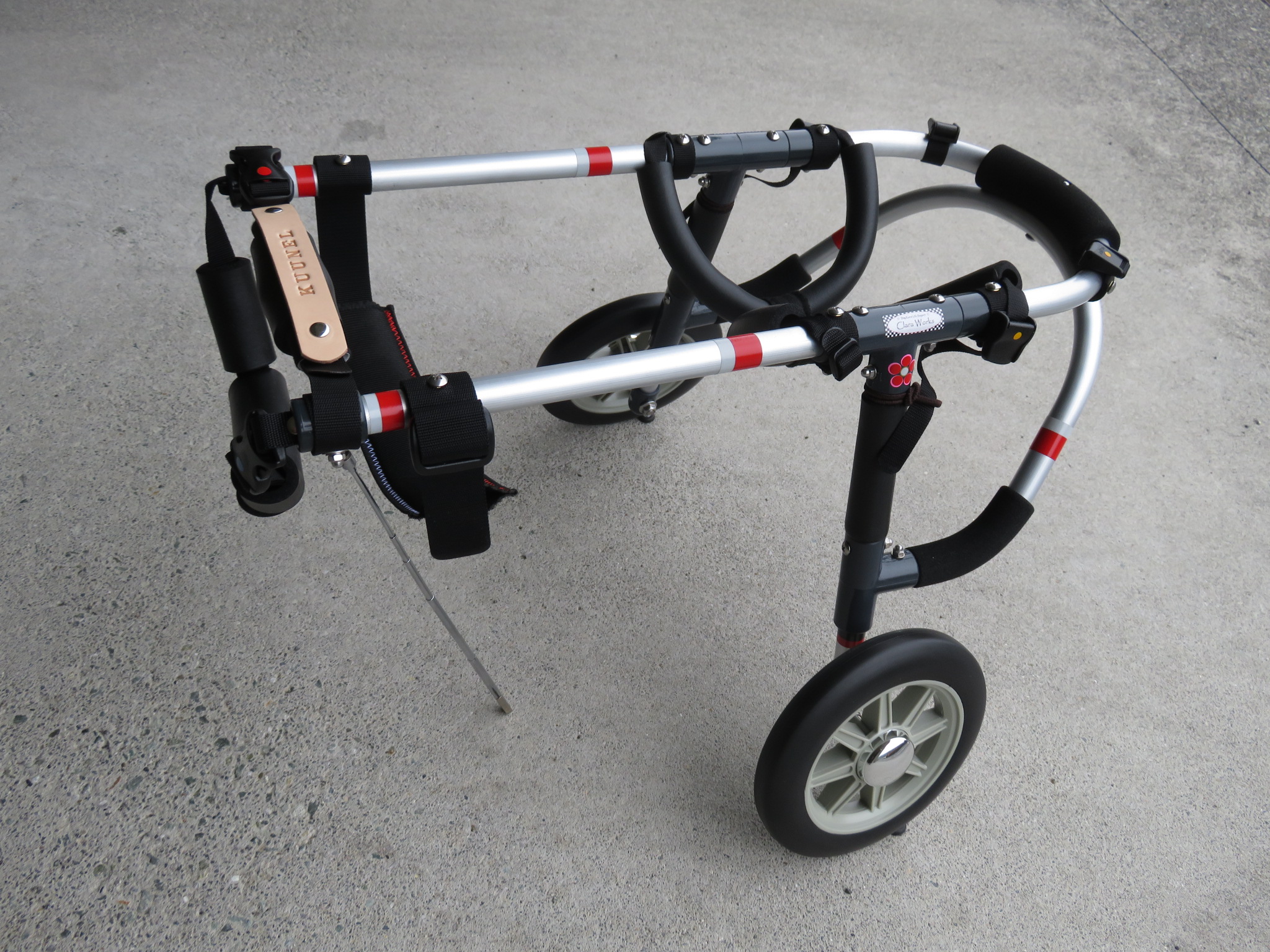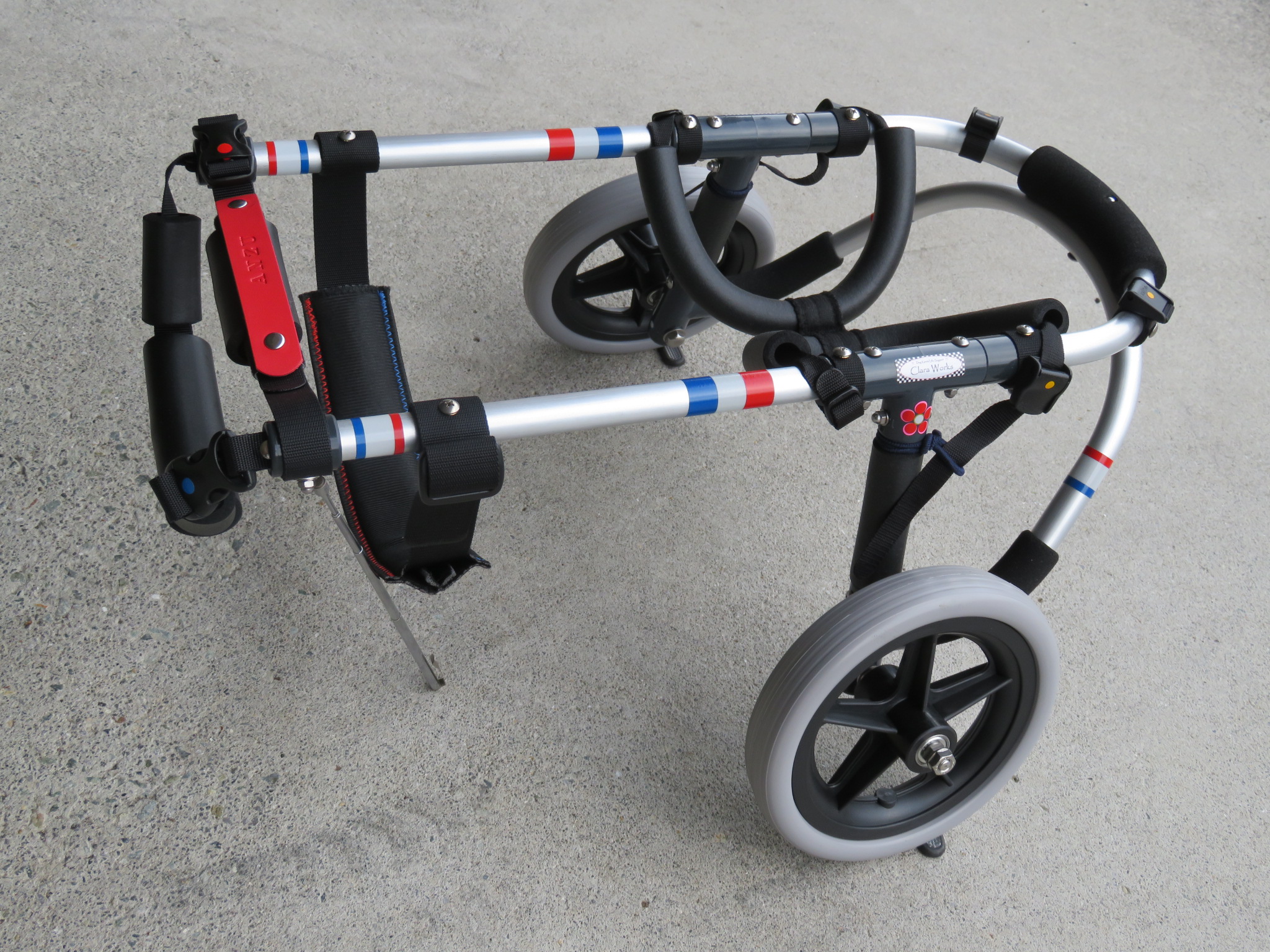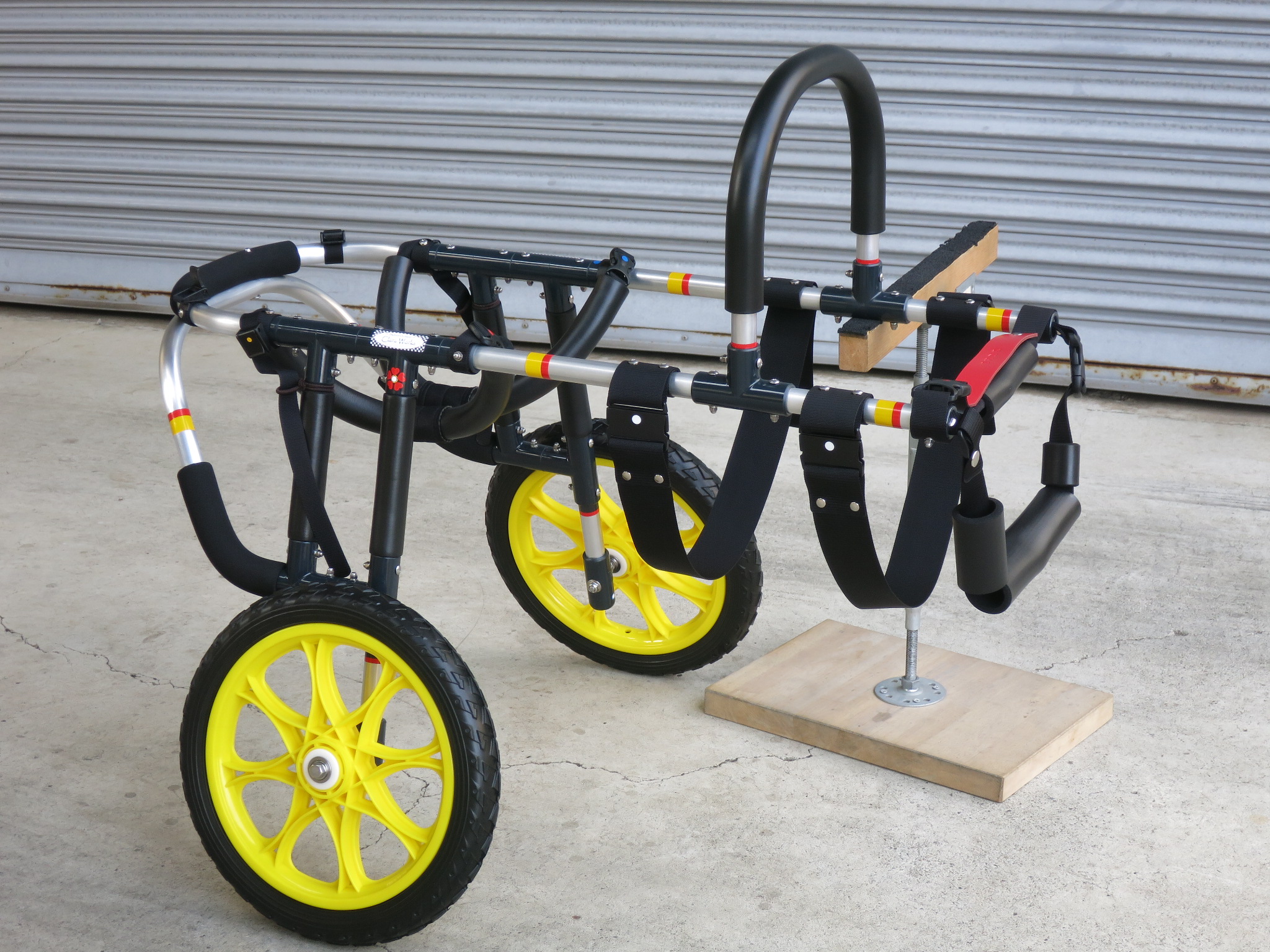 2輪車で歩けそうだけど不安がある、4輪で練習して筋力が戻れば2輪でも歩けそう、そんなワンちゃんのための仕様です