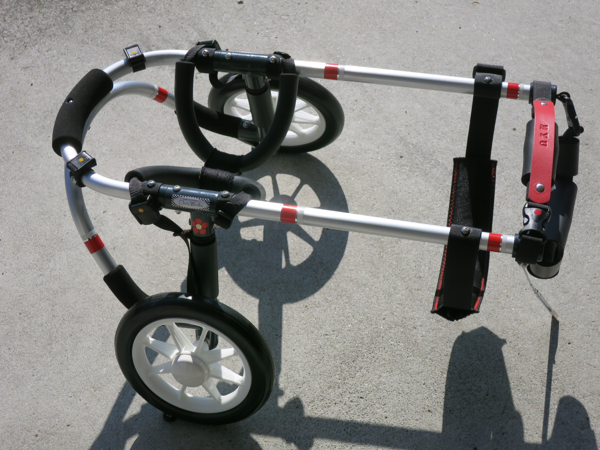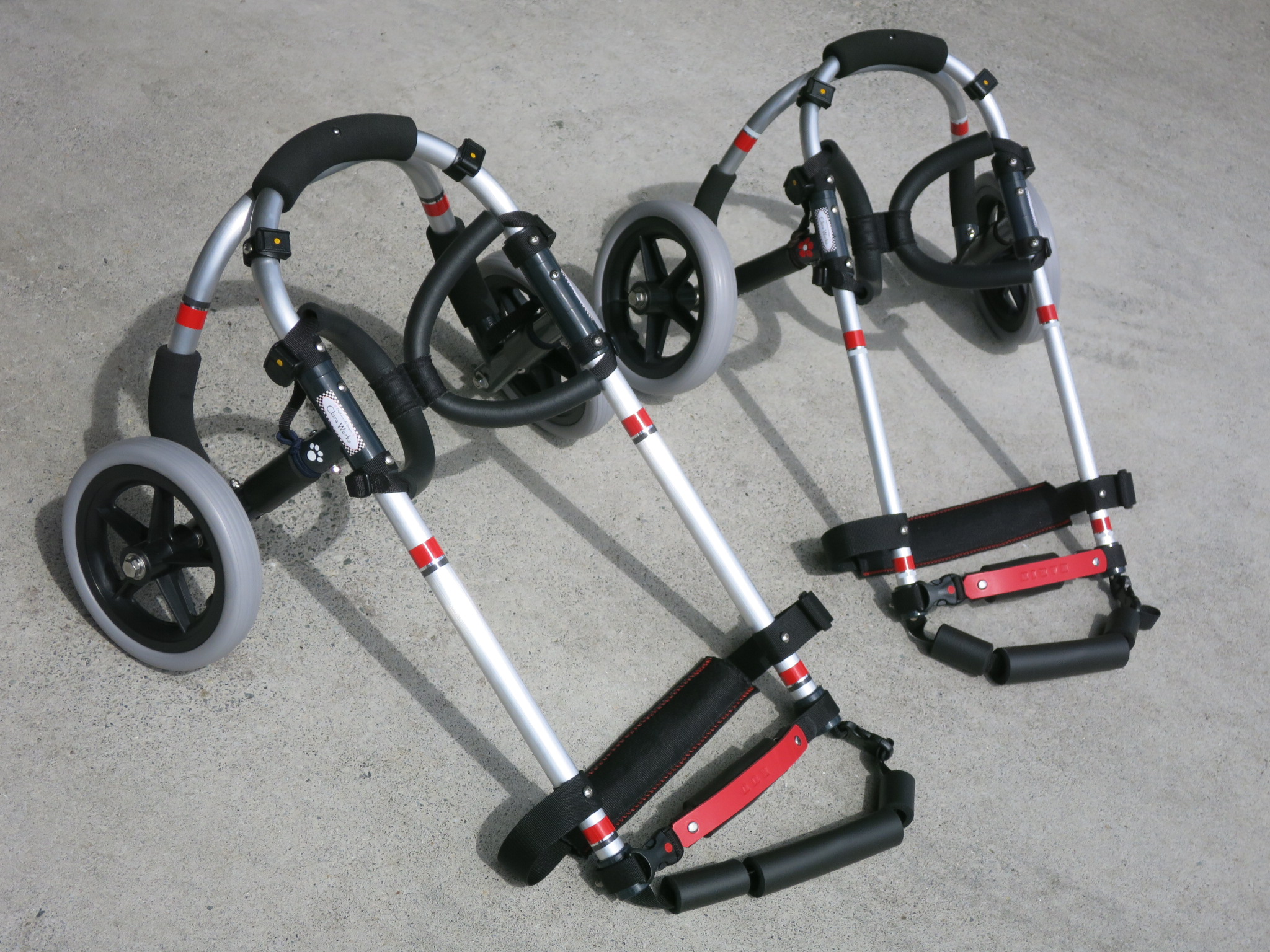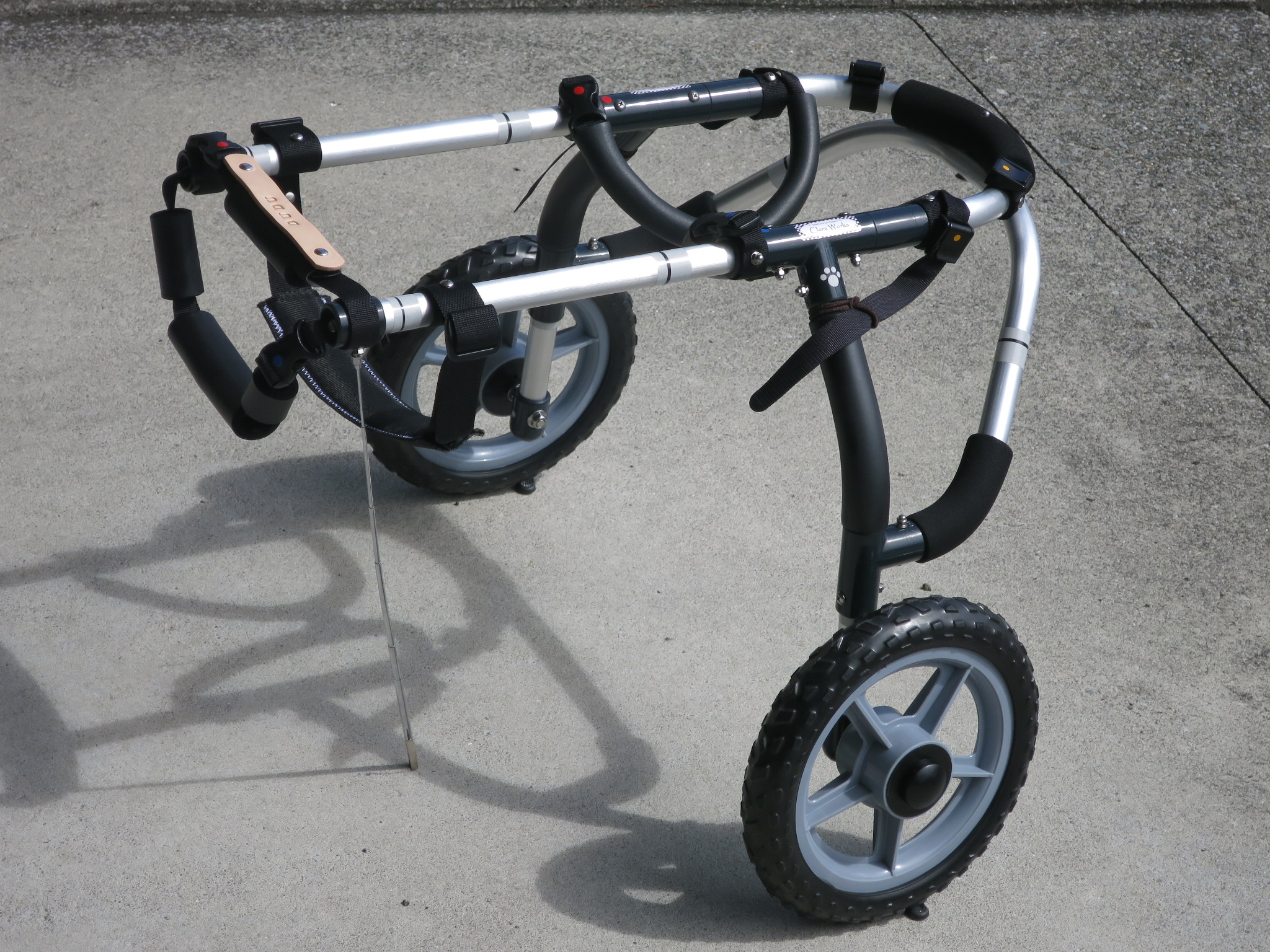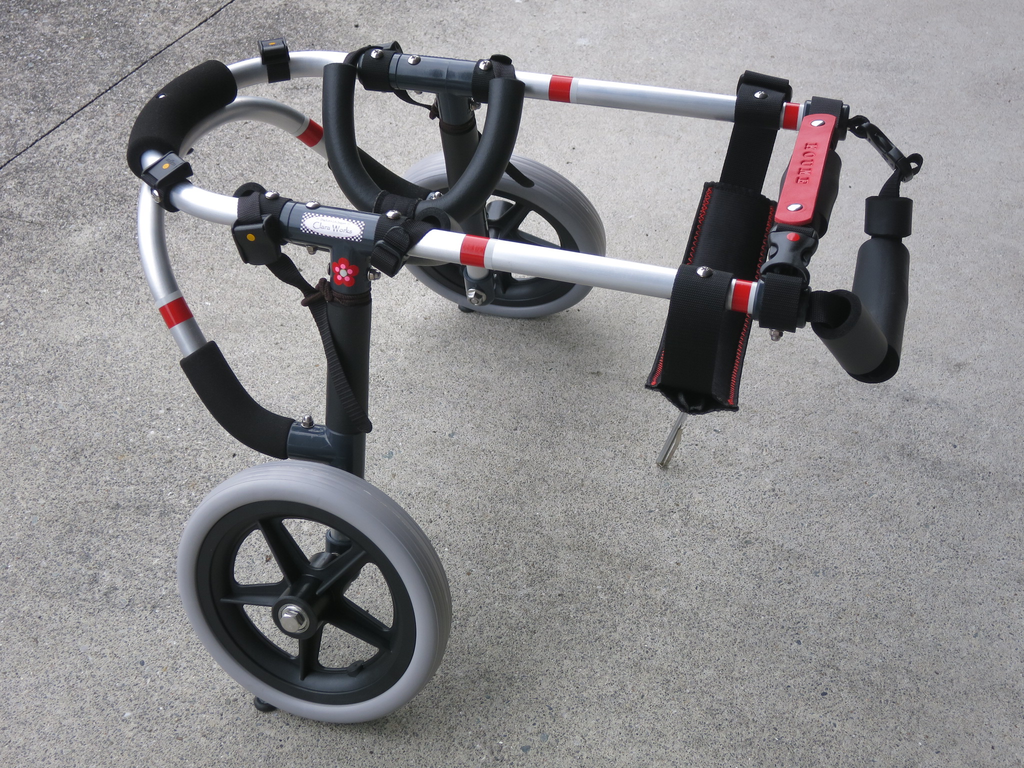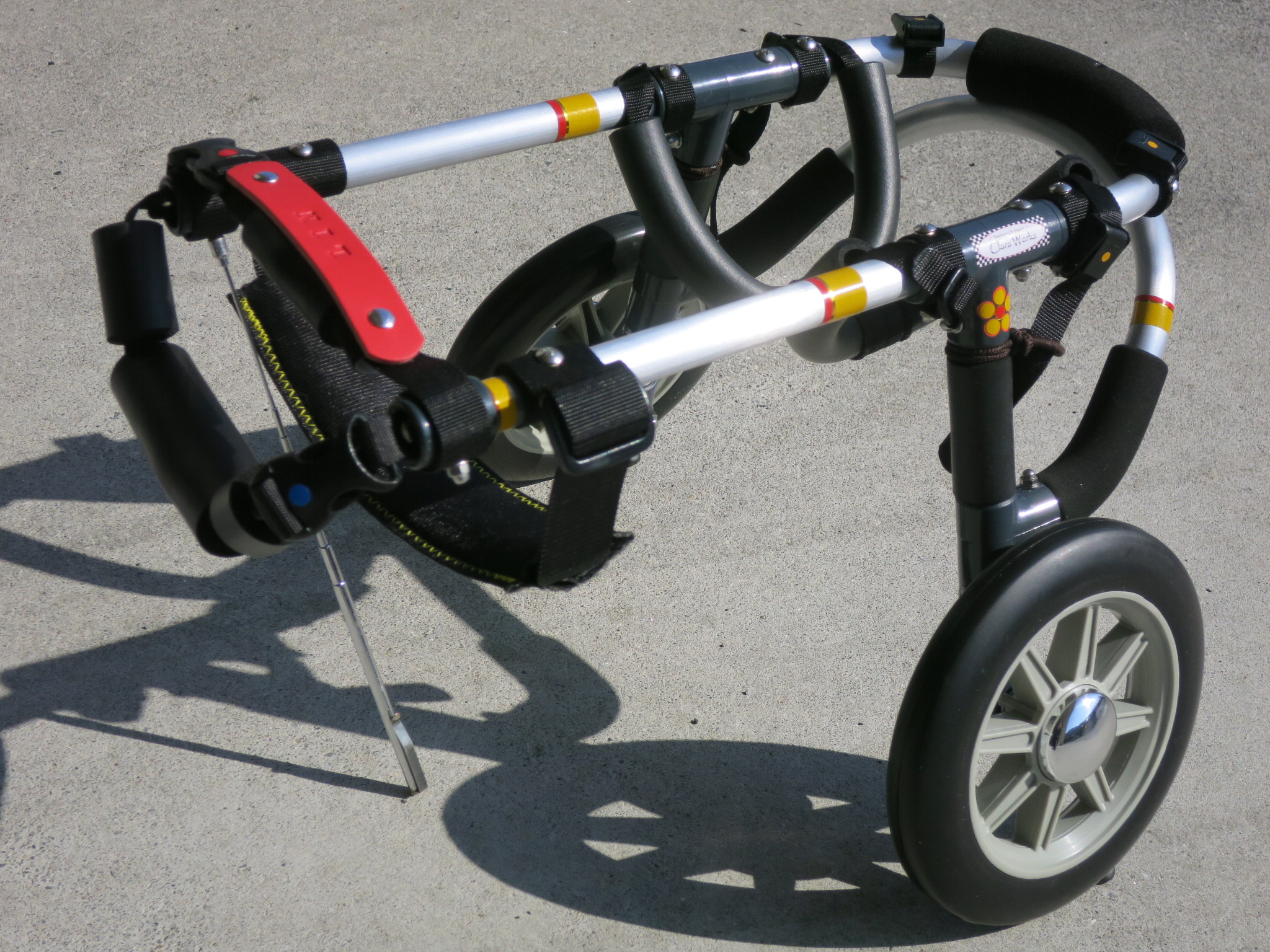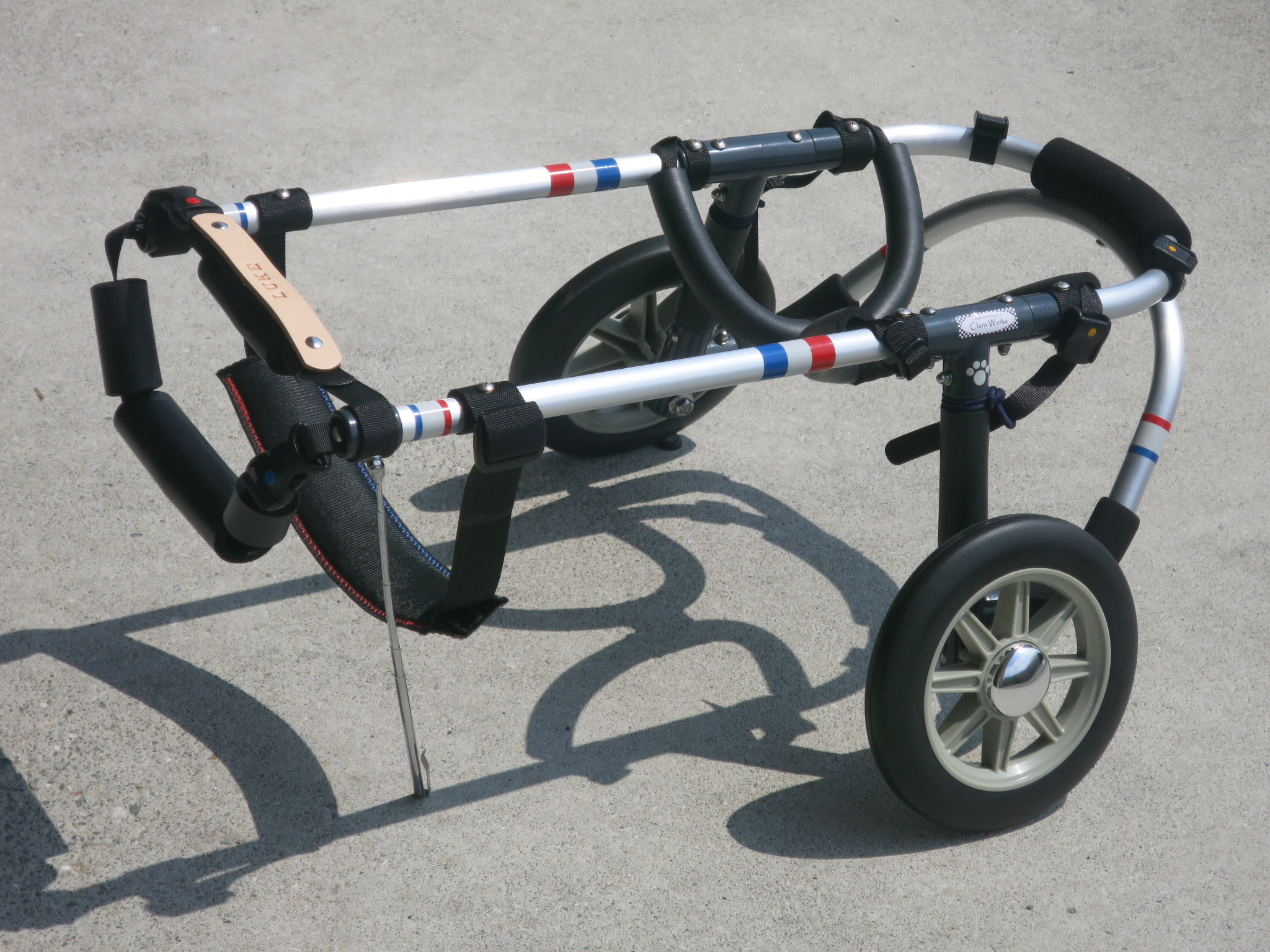 2輪車で歩けそうだけど不安がある、4輪で練習して筋力が戻れば2輪でも歩けそう、そんなワンちゃんのための仕様です