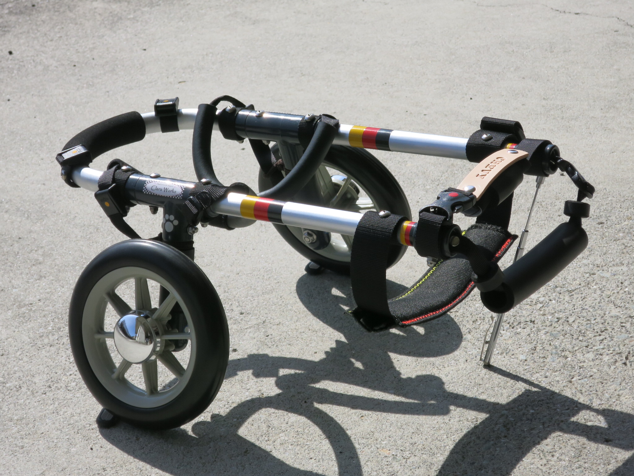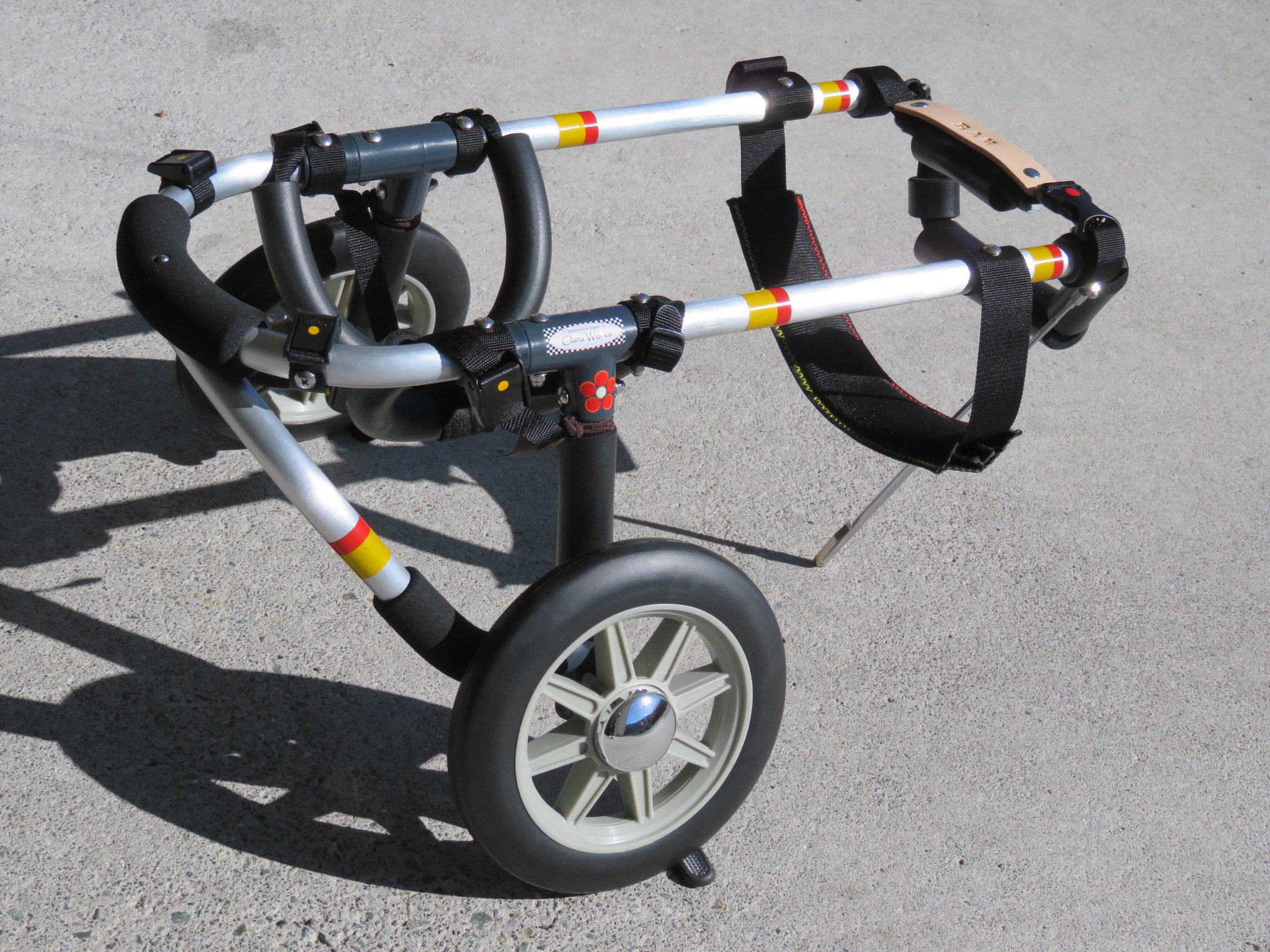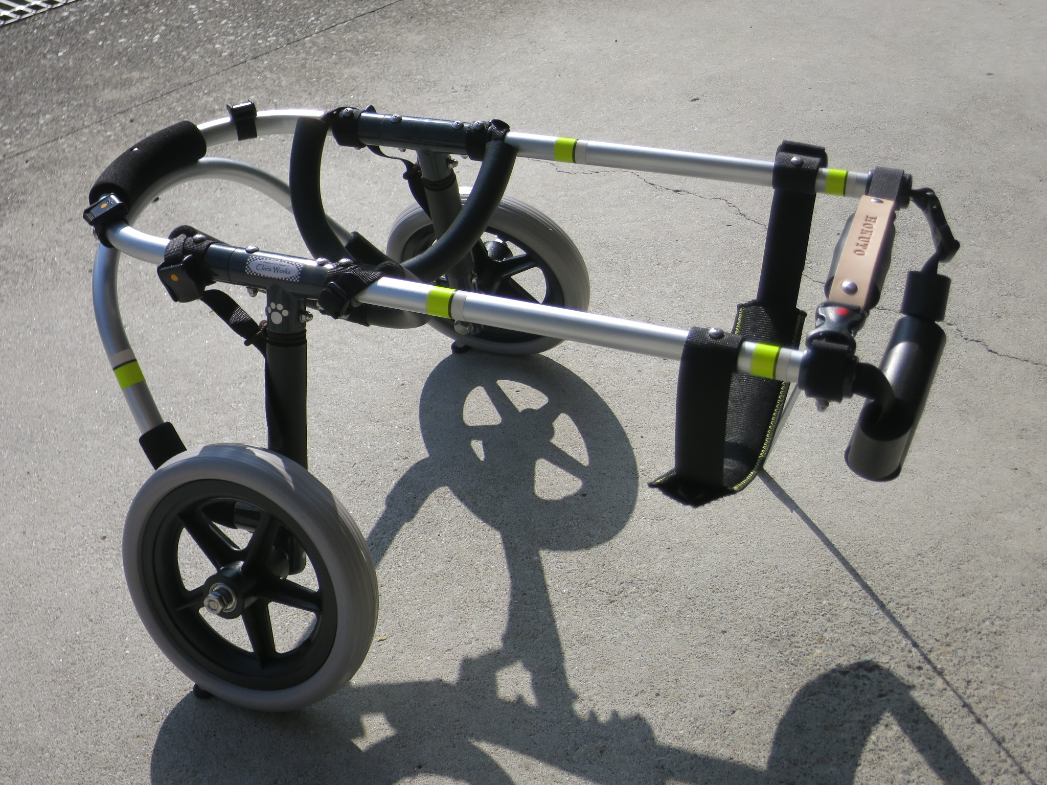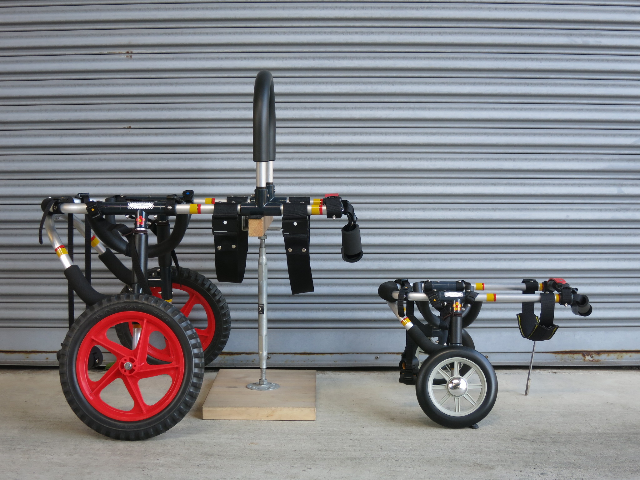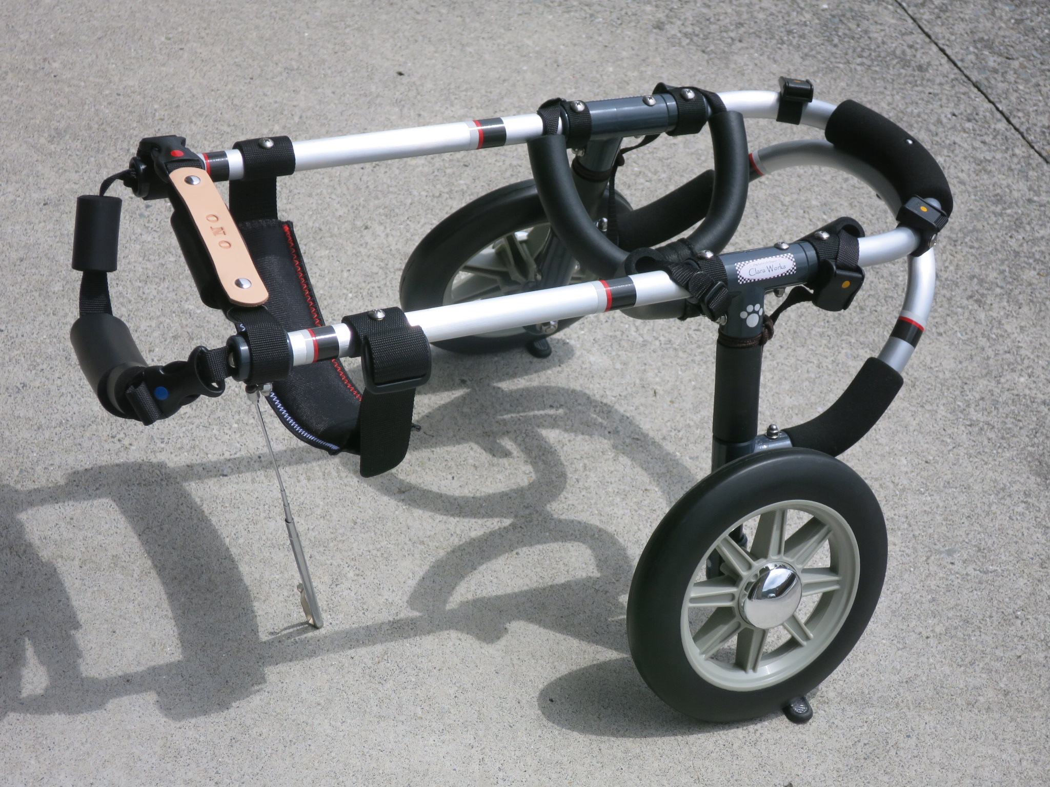 2輪車で歩けそうだけど不安がある、4輪で練習して筋力が戻れば2輪でも歩けそう、そんなワンちゃんのための仕様です