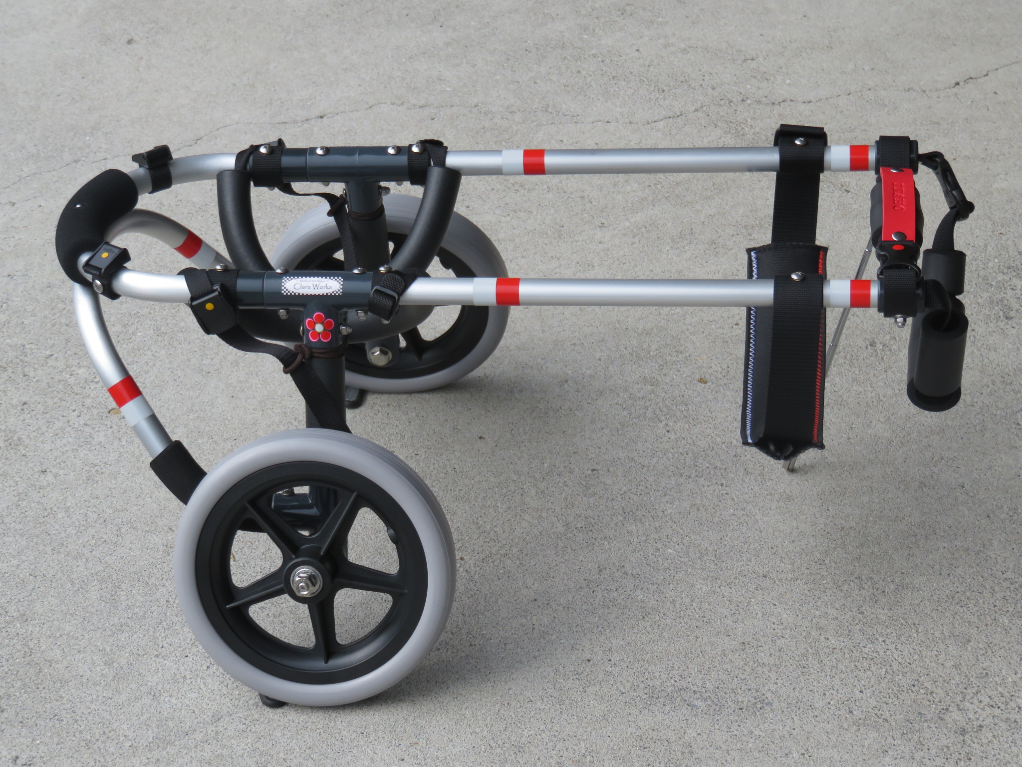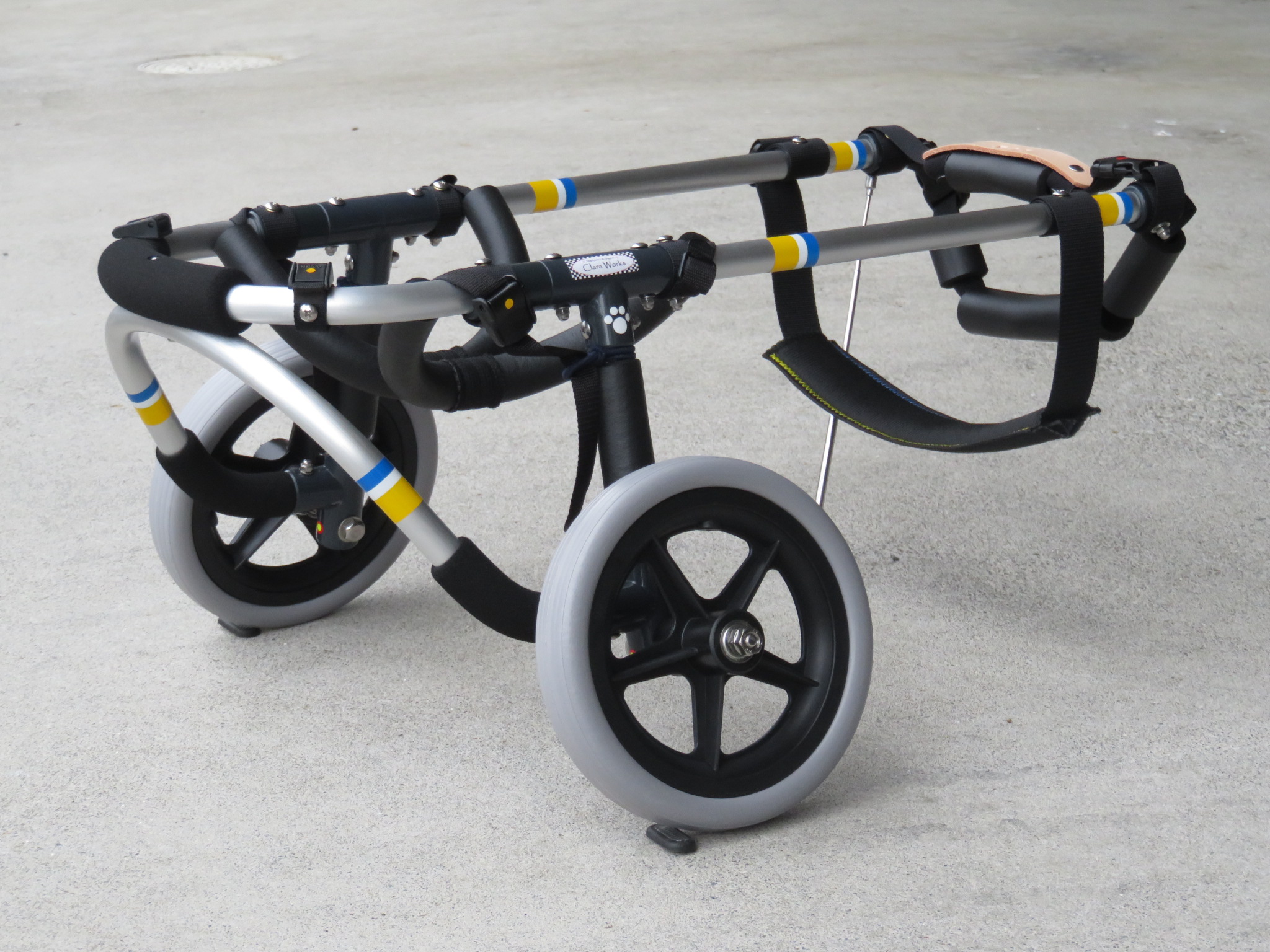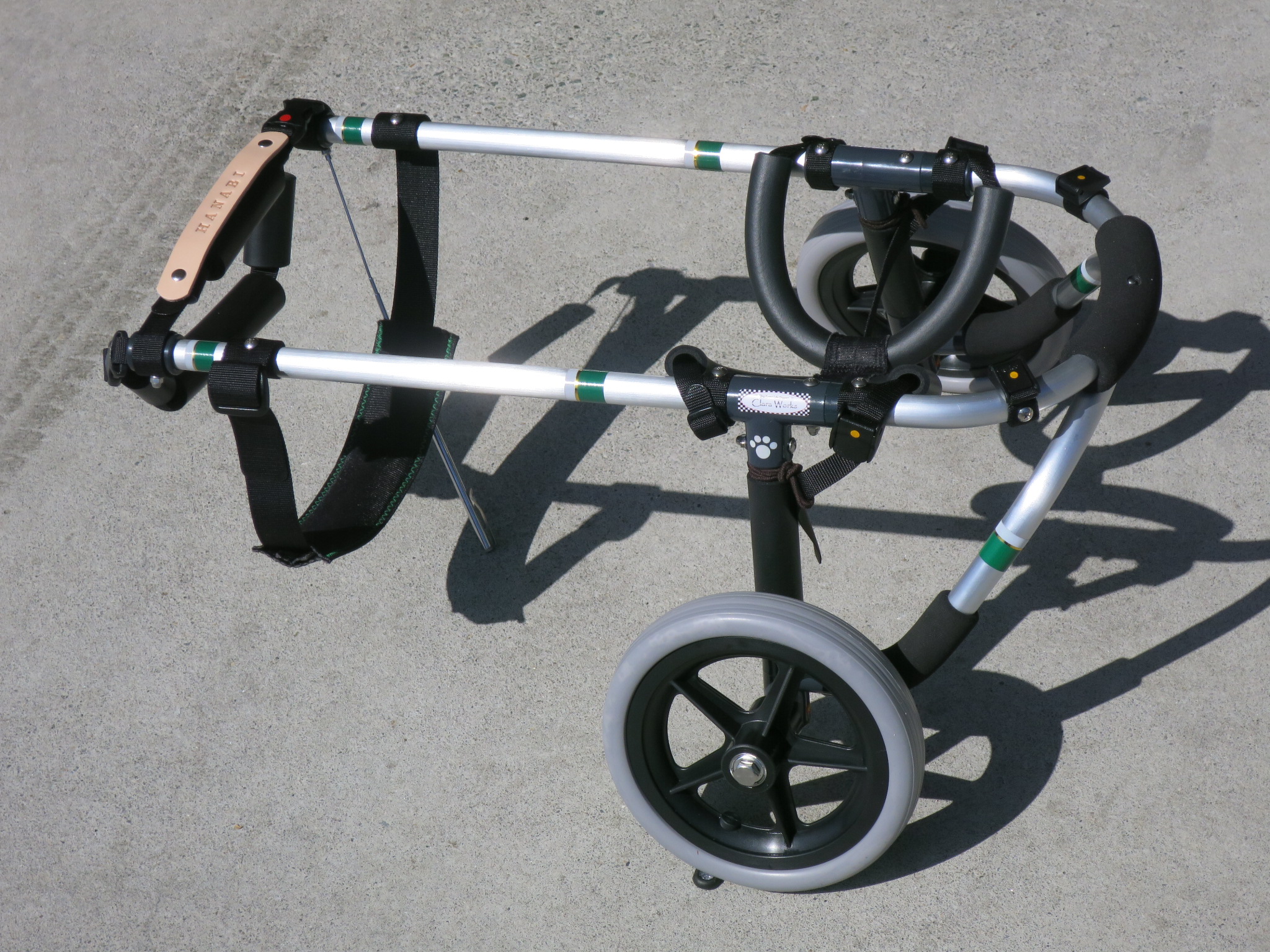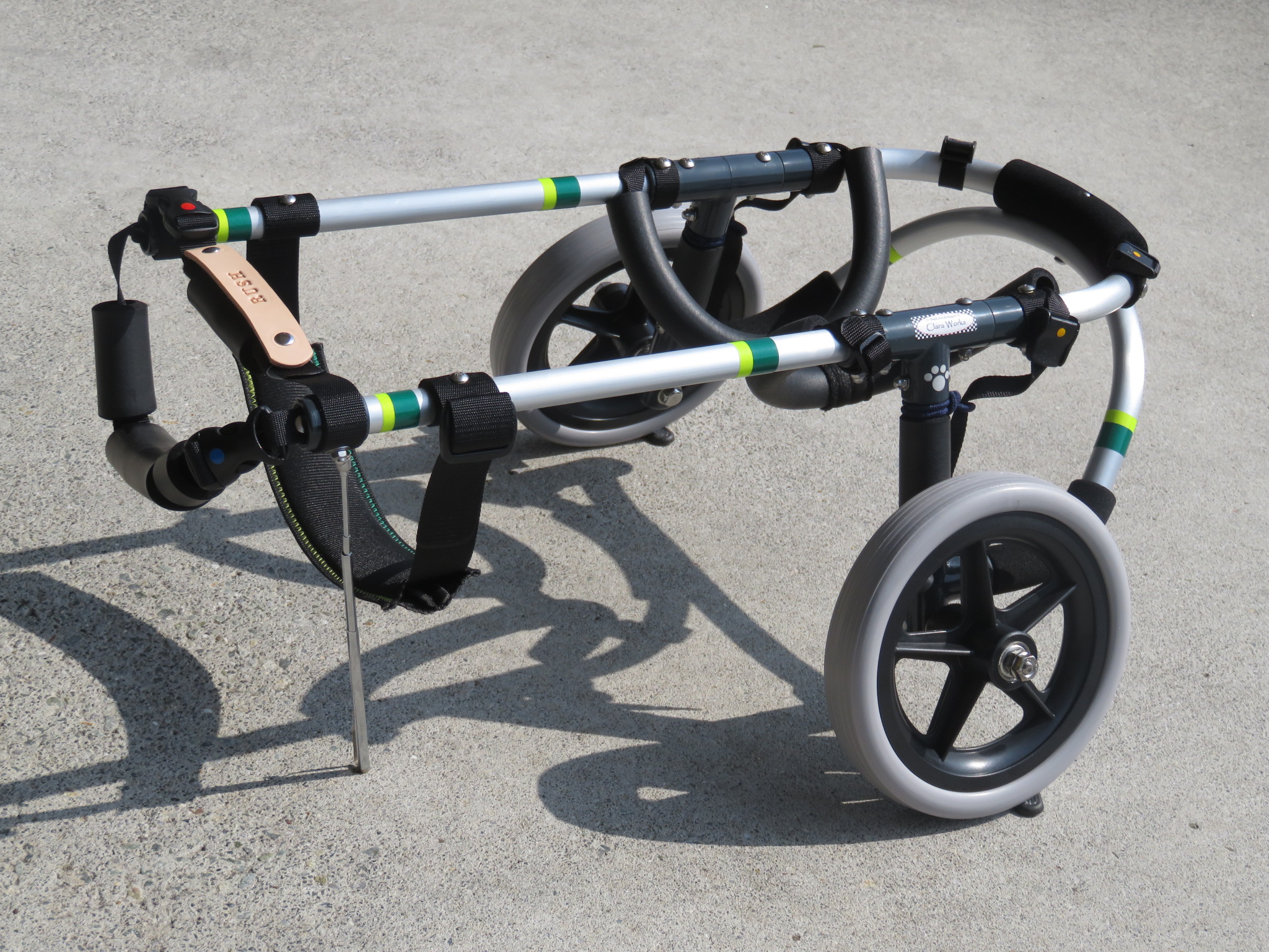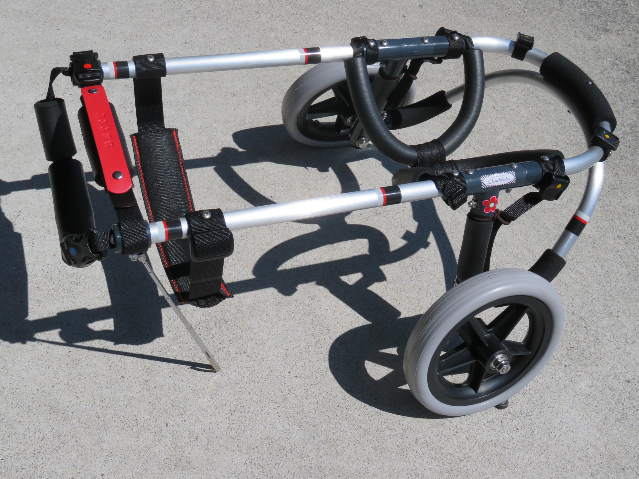 2輪車で歩けそうだけど不安がある、4輪で練習して筋力が戻れば2輪でも歩けそう、そんなワンちゃんのための仕様です
