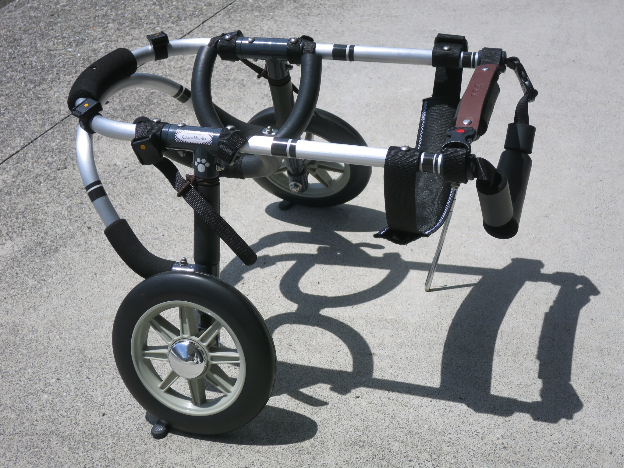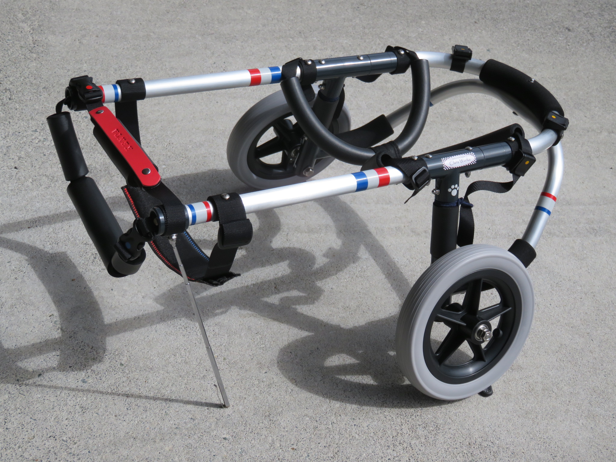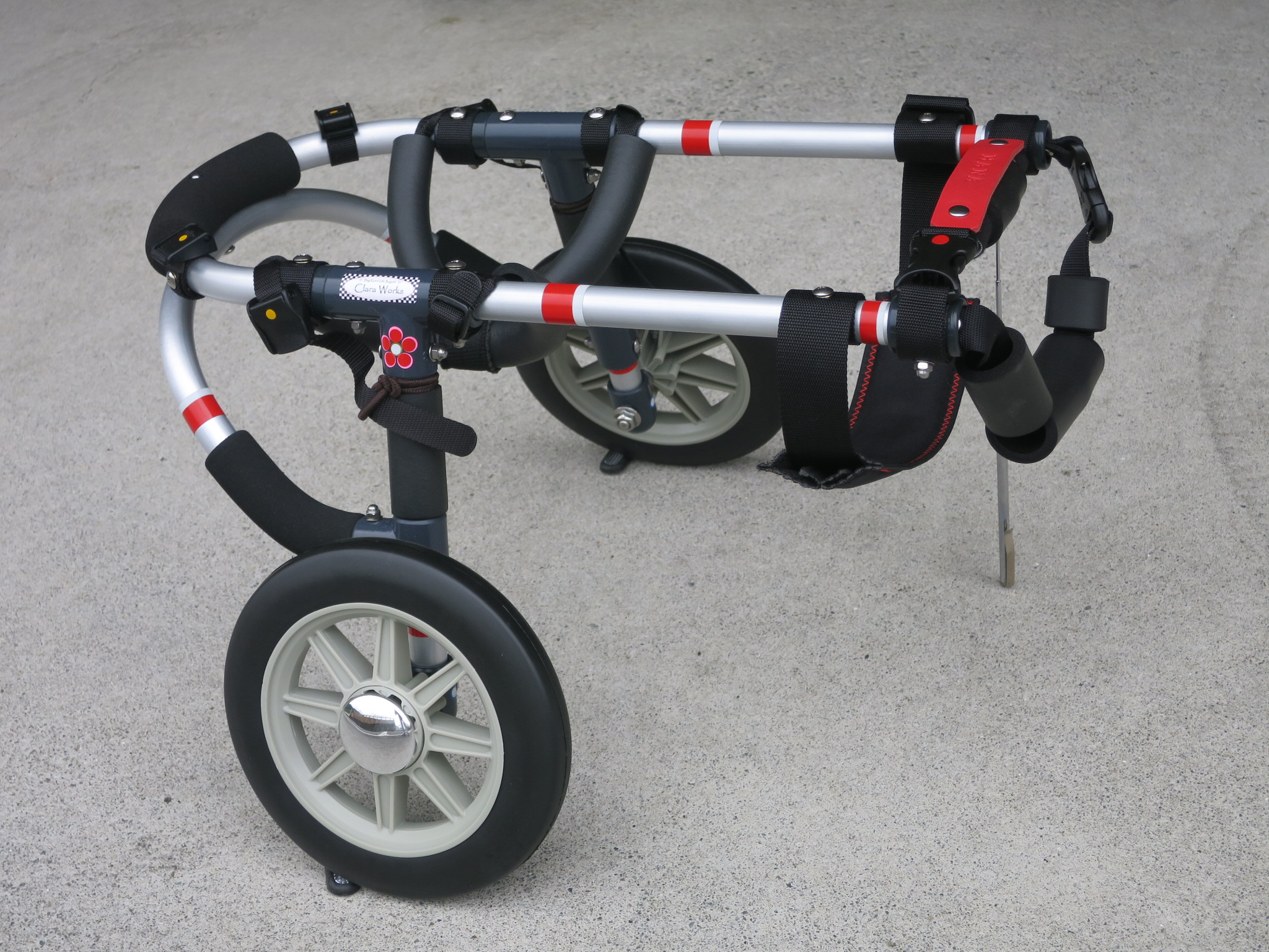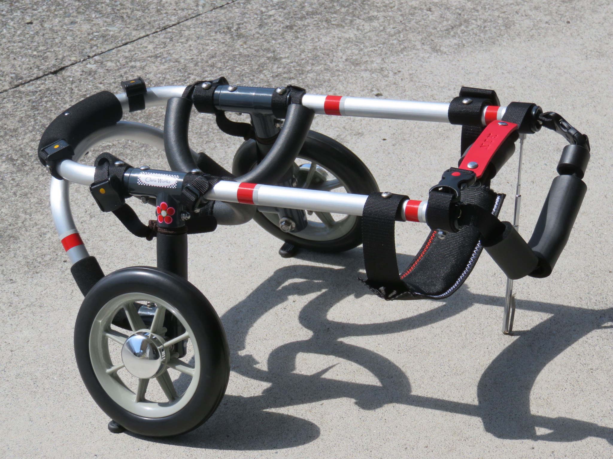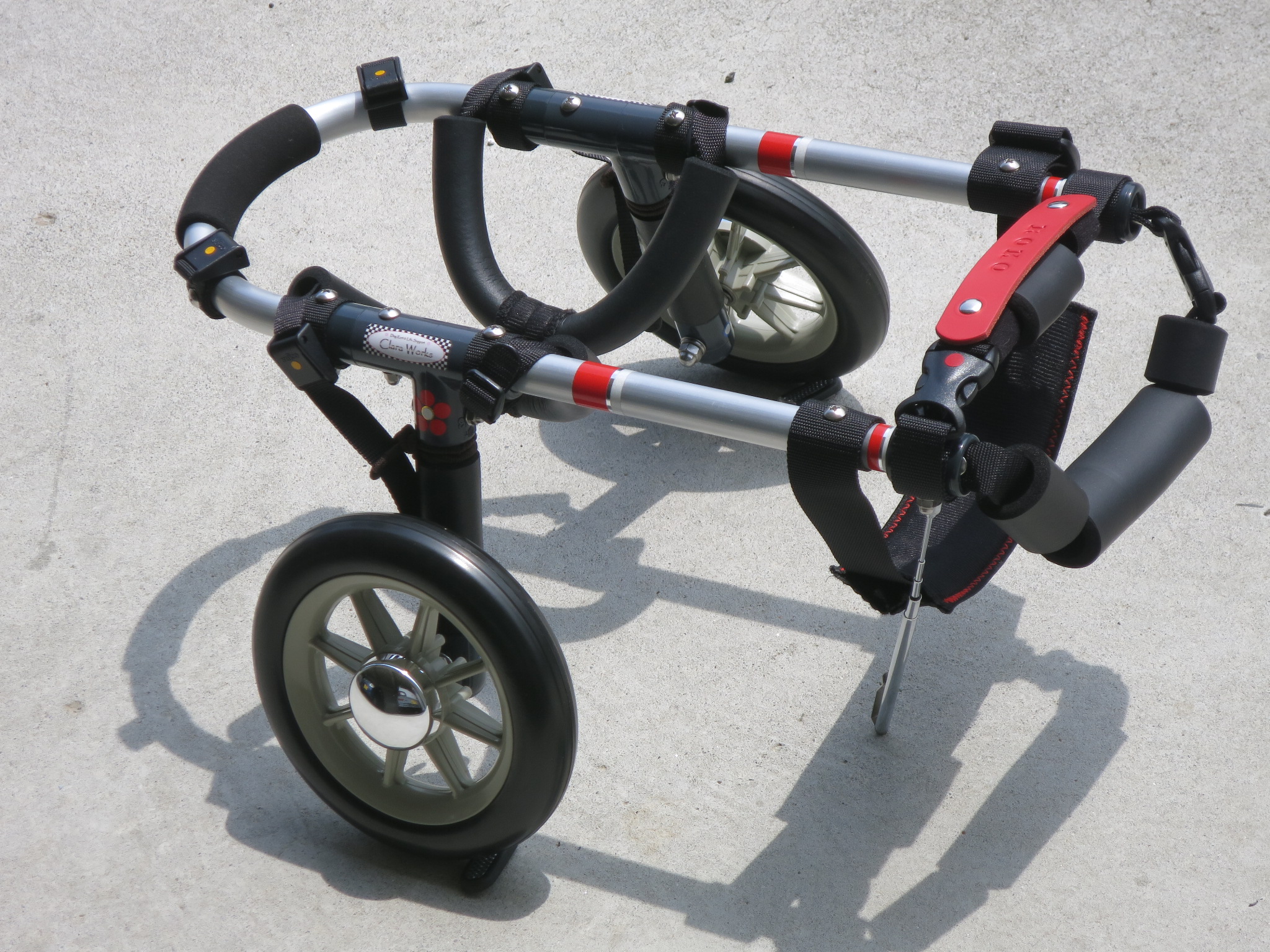 2輪車で歩けそうだけど不安がある、4輪で練習して筋力が戻れば2輪でも歩けそう、そんなワンちゃんのための仕様です