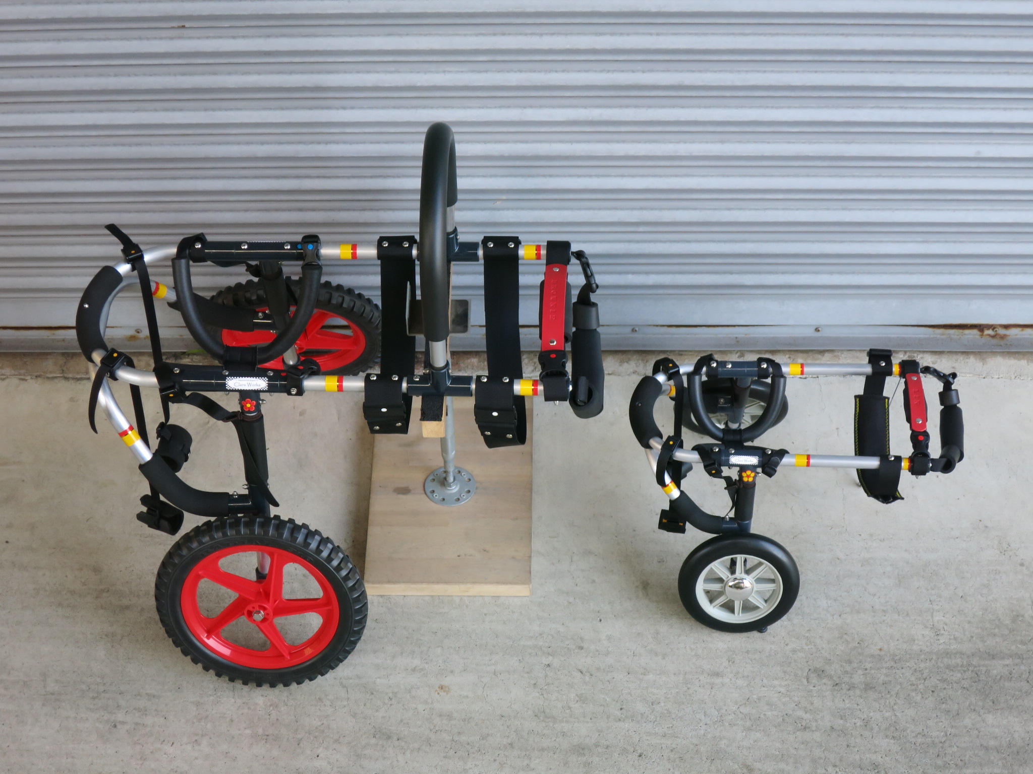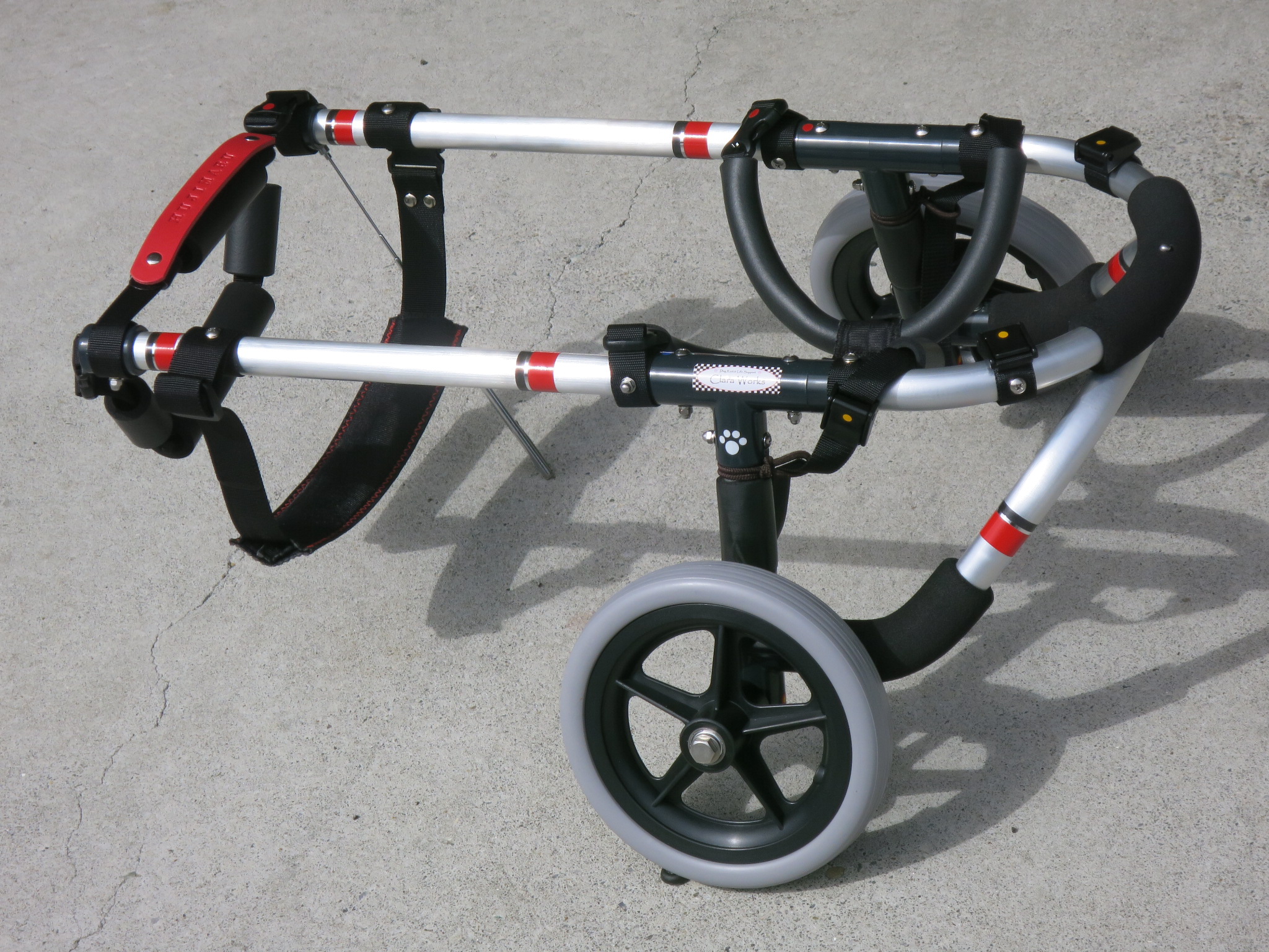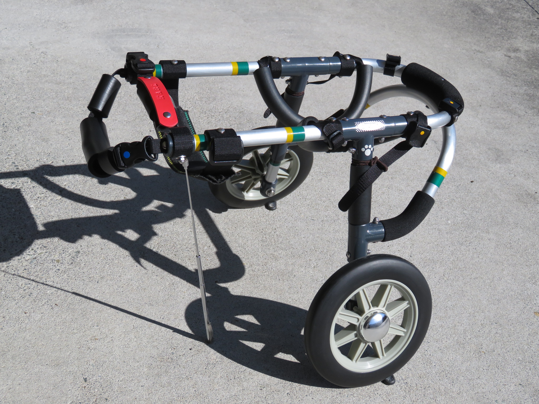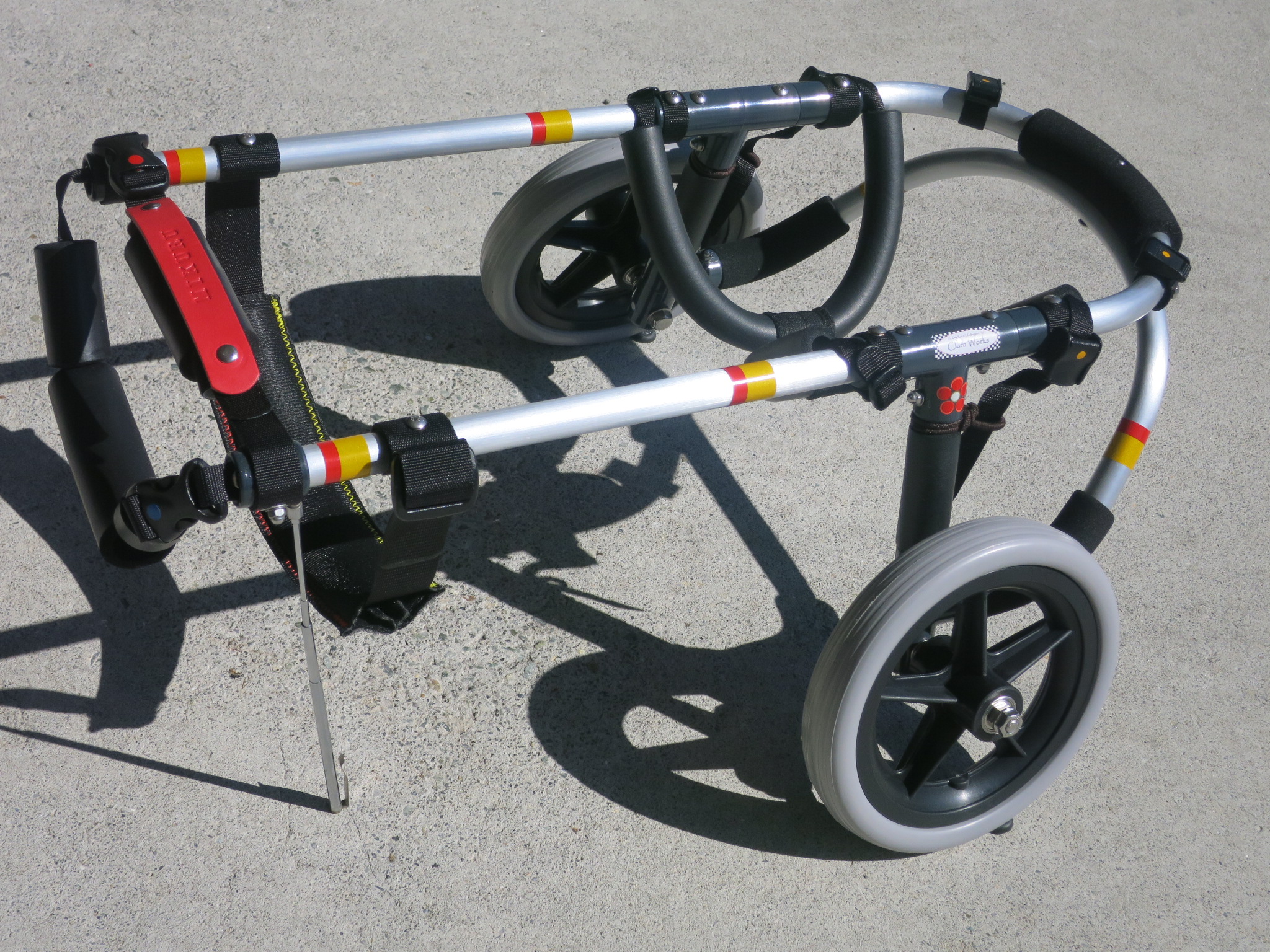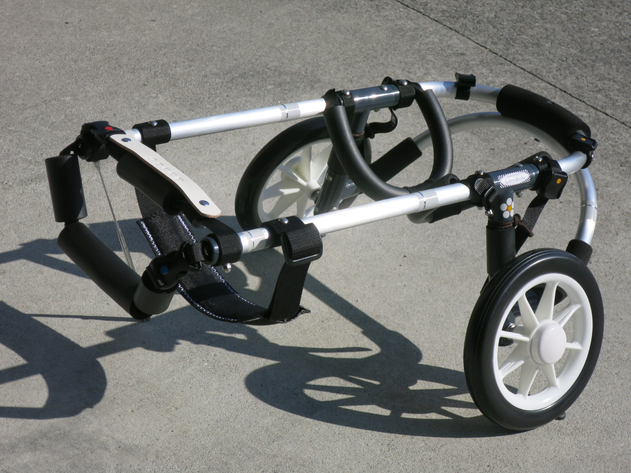 2輪車で歩けそうだけど不安がある、4輪で練習して筋力が戻れば2輪でも歩けそう、そんなワンちゃんのための仕様です
