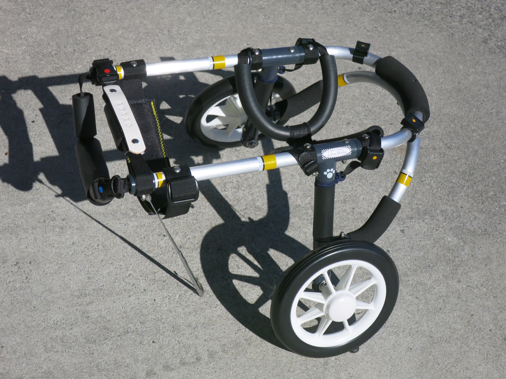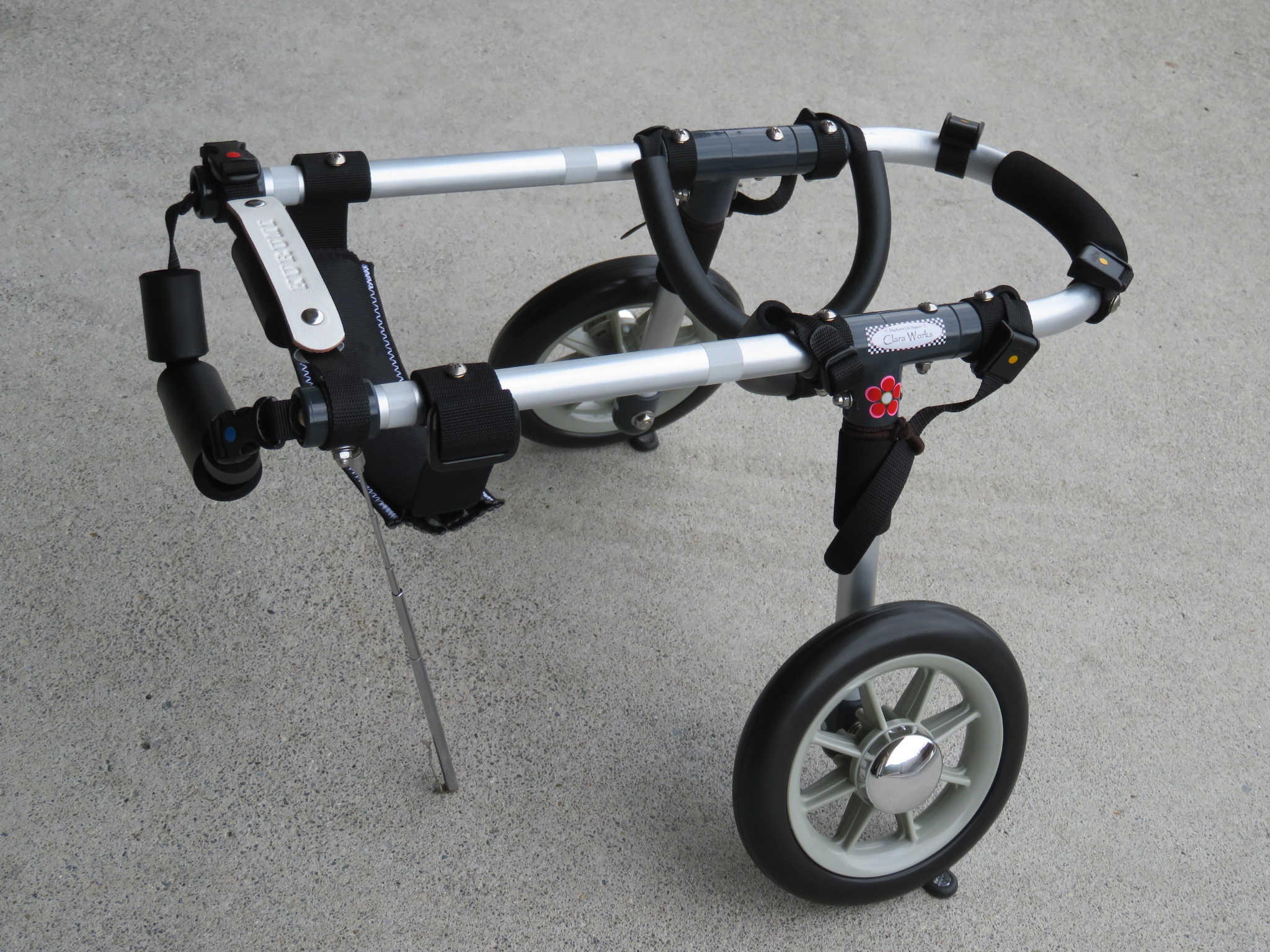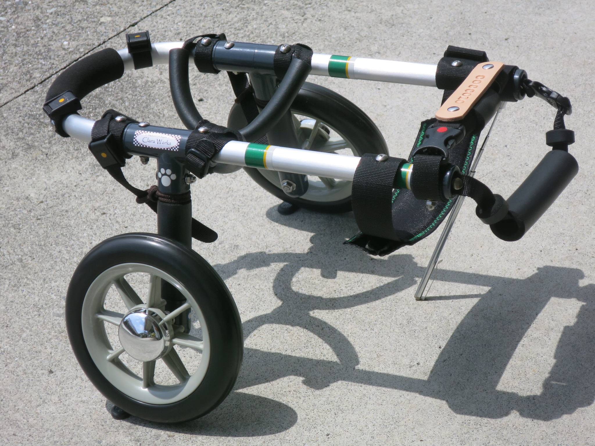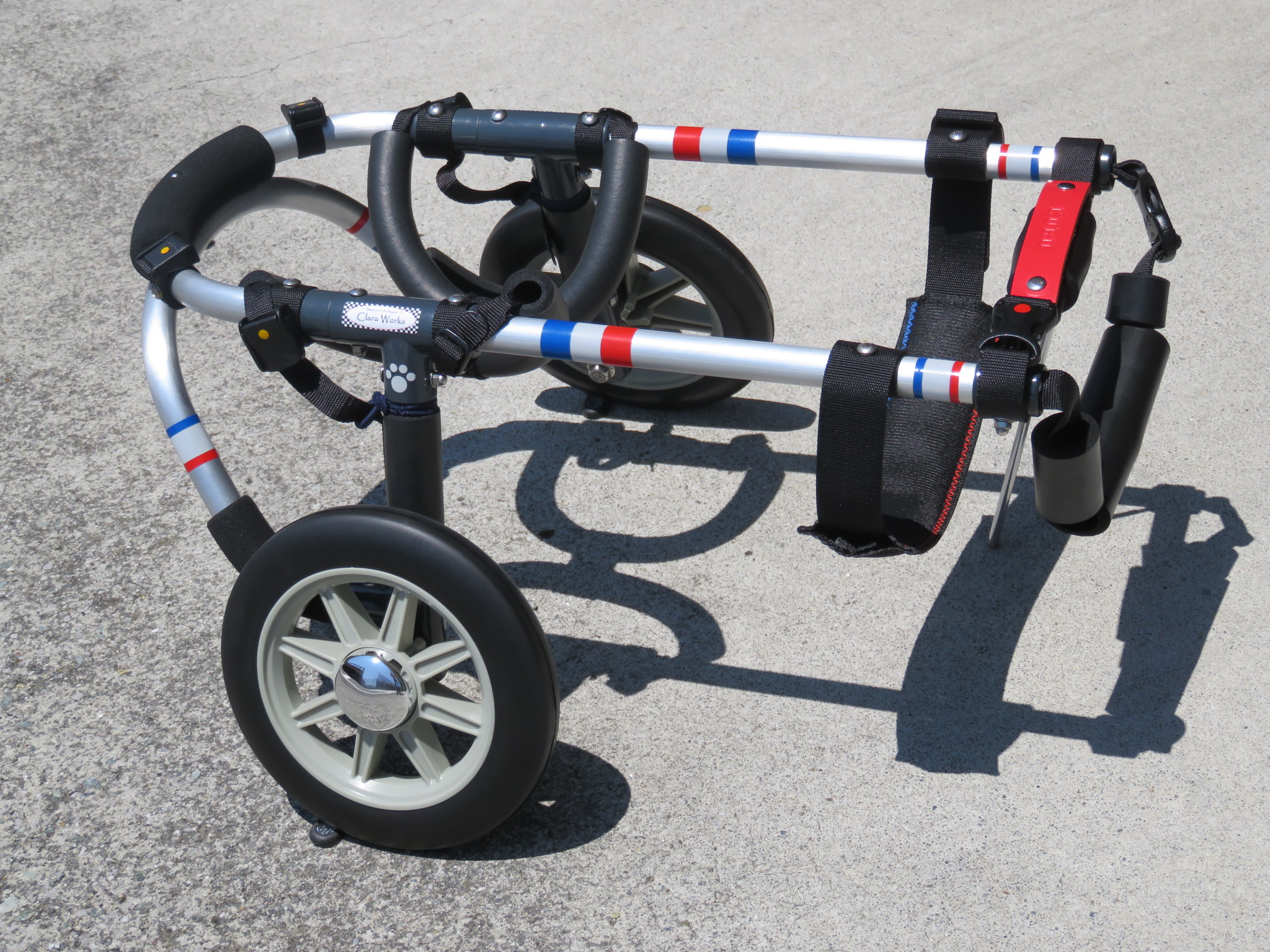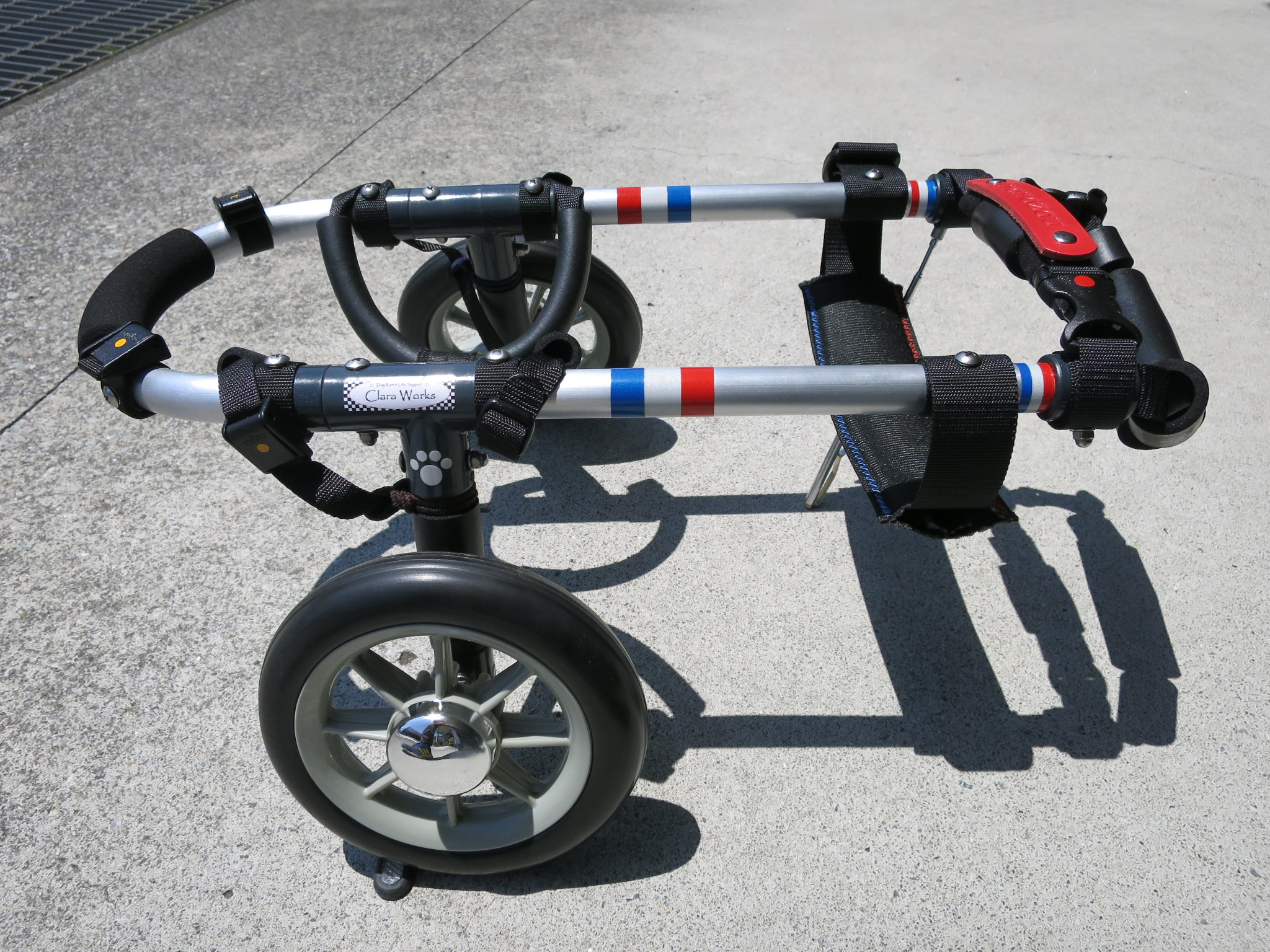 2輪車で歩けそうだけど不安がある、4輪で練習して筋力が戻れば2輪でも歩けそう、そんなワンちゃんのための仕様です