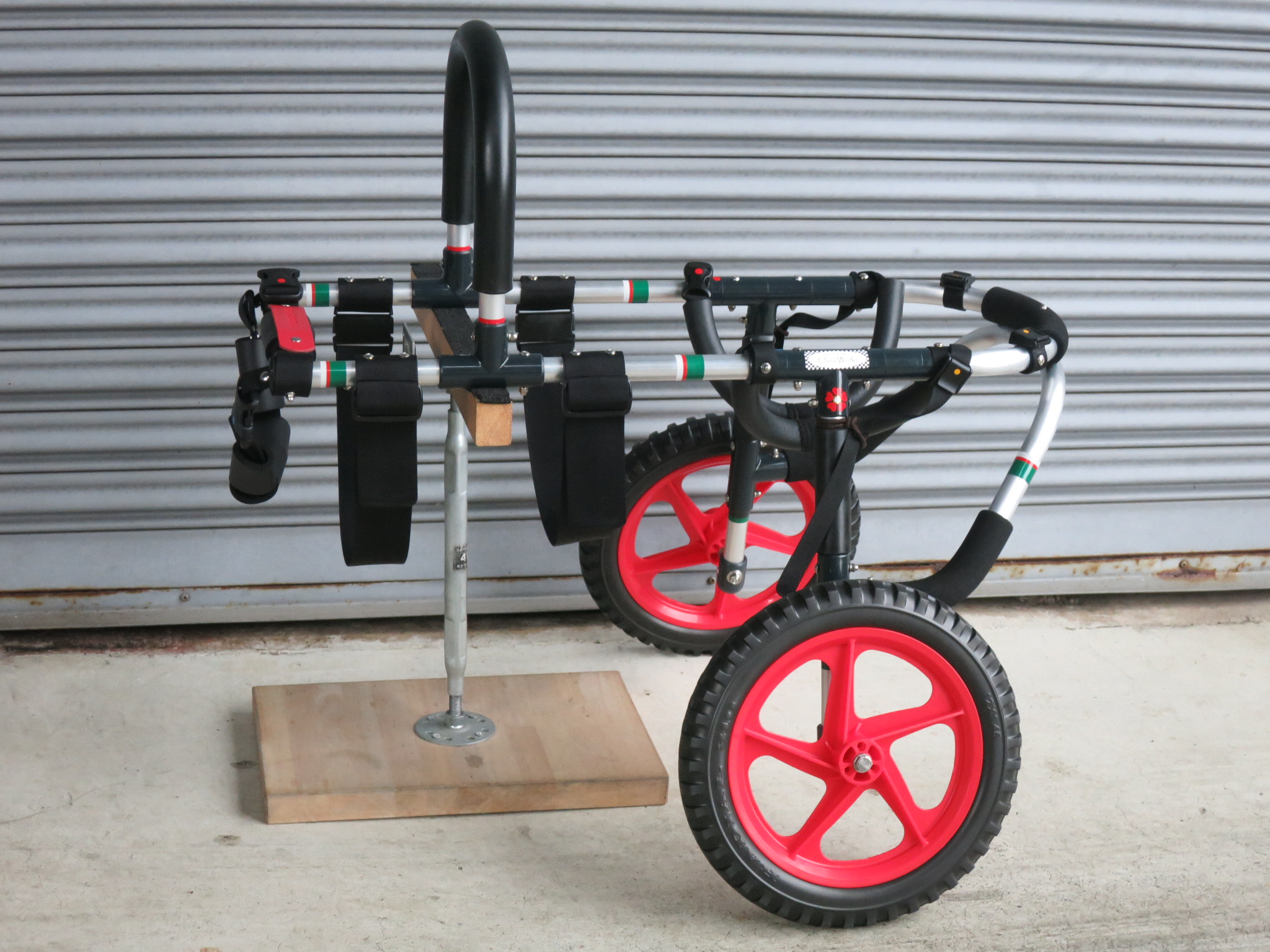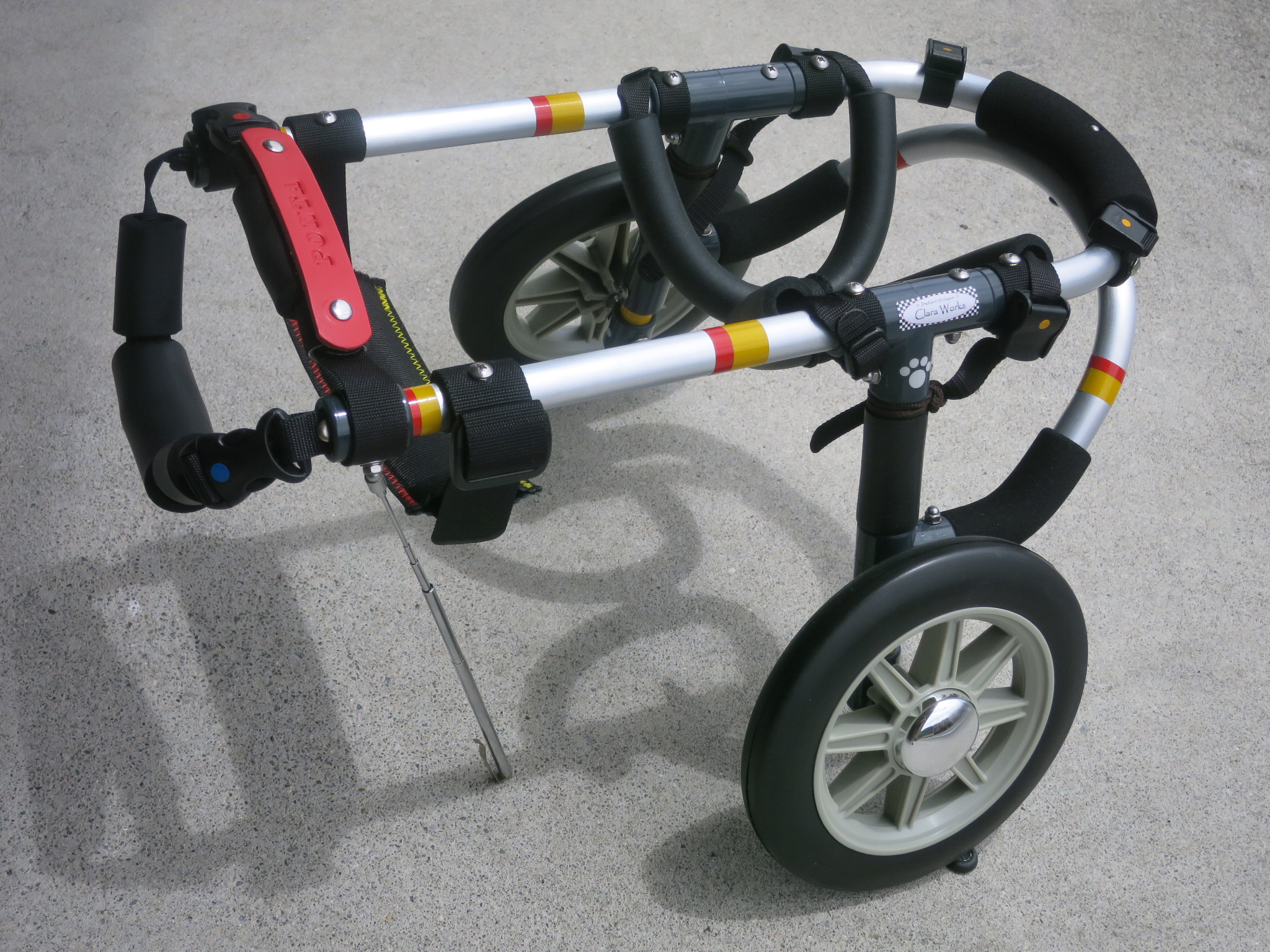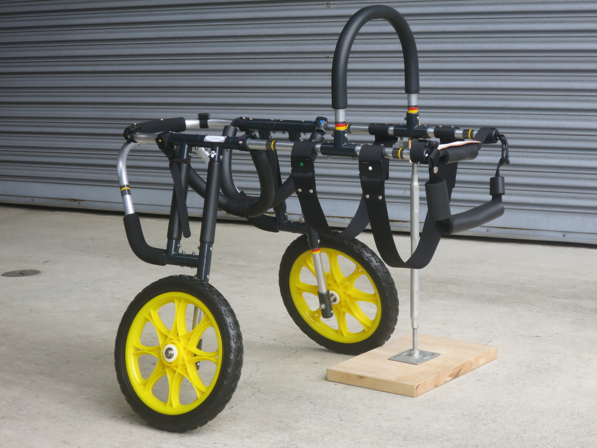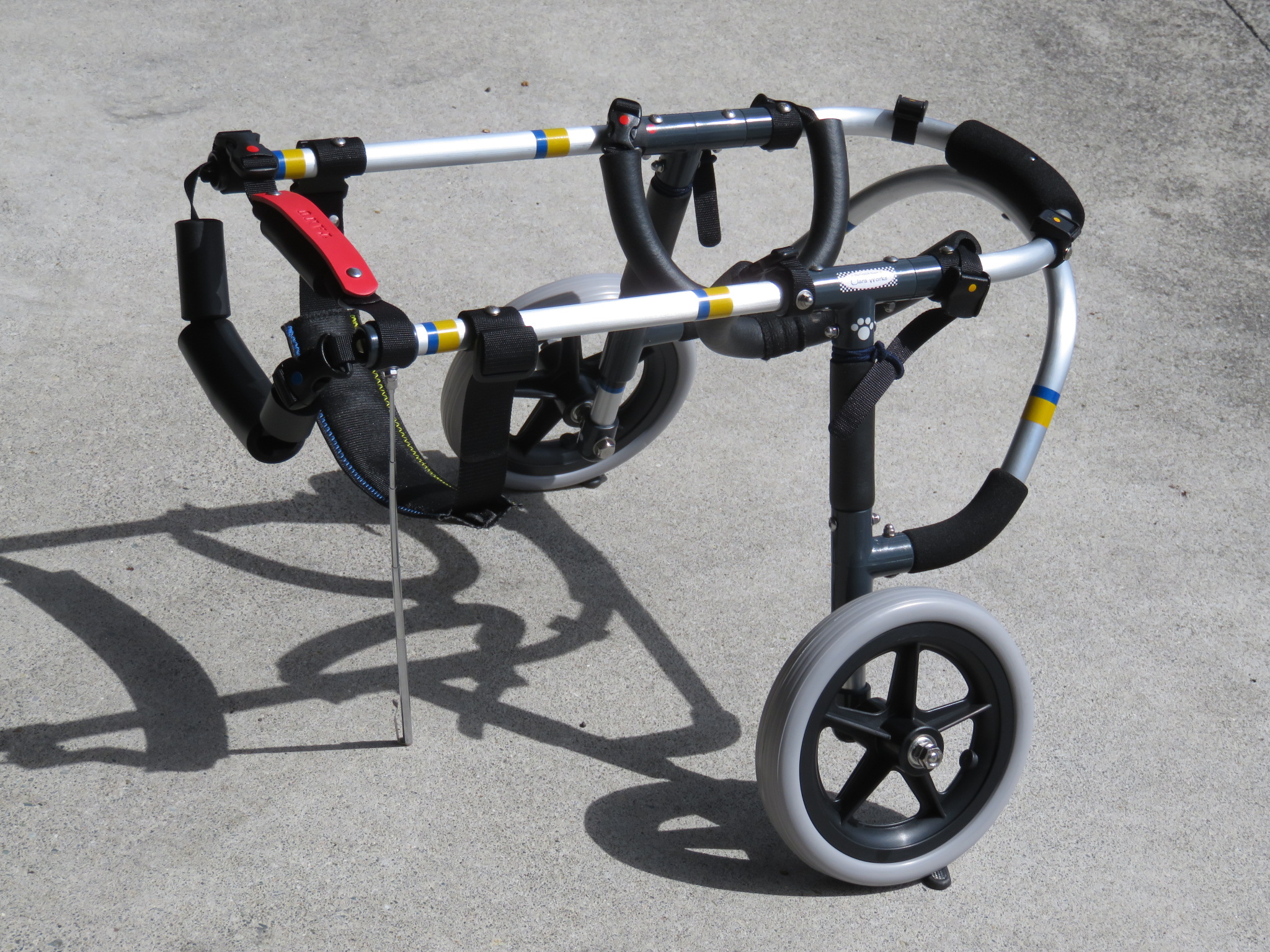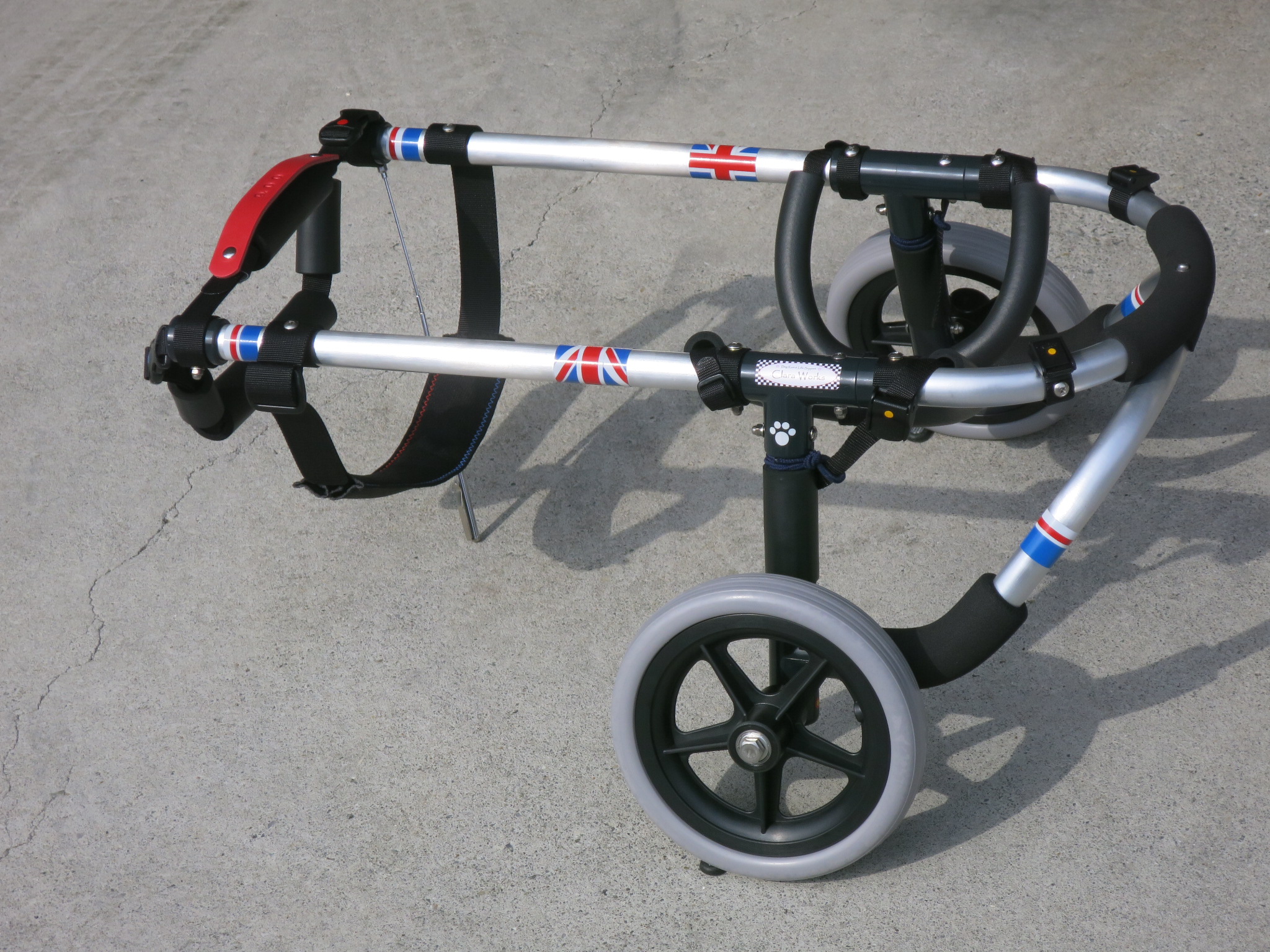 2輪車で歩けそうだけど不安がある、4輪で練習して筋力が戻れば2輪でも歩けそう、そんなワンちゃんのための仕様です