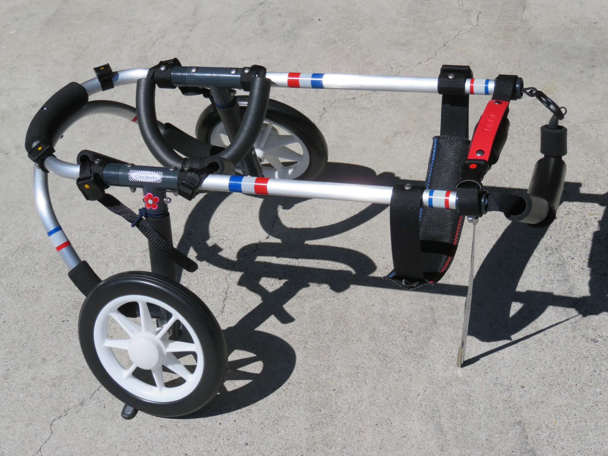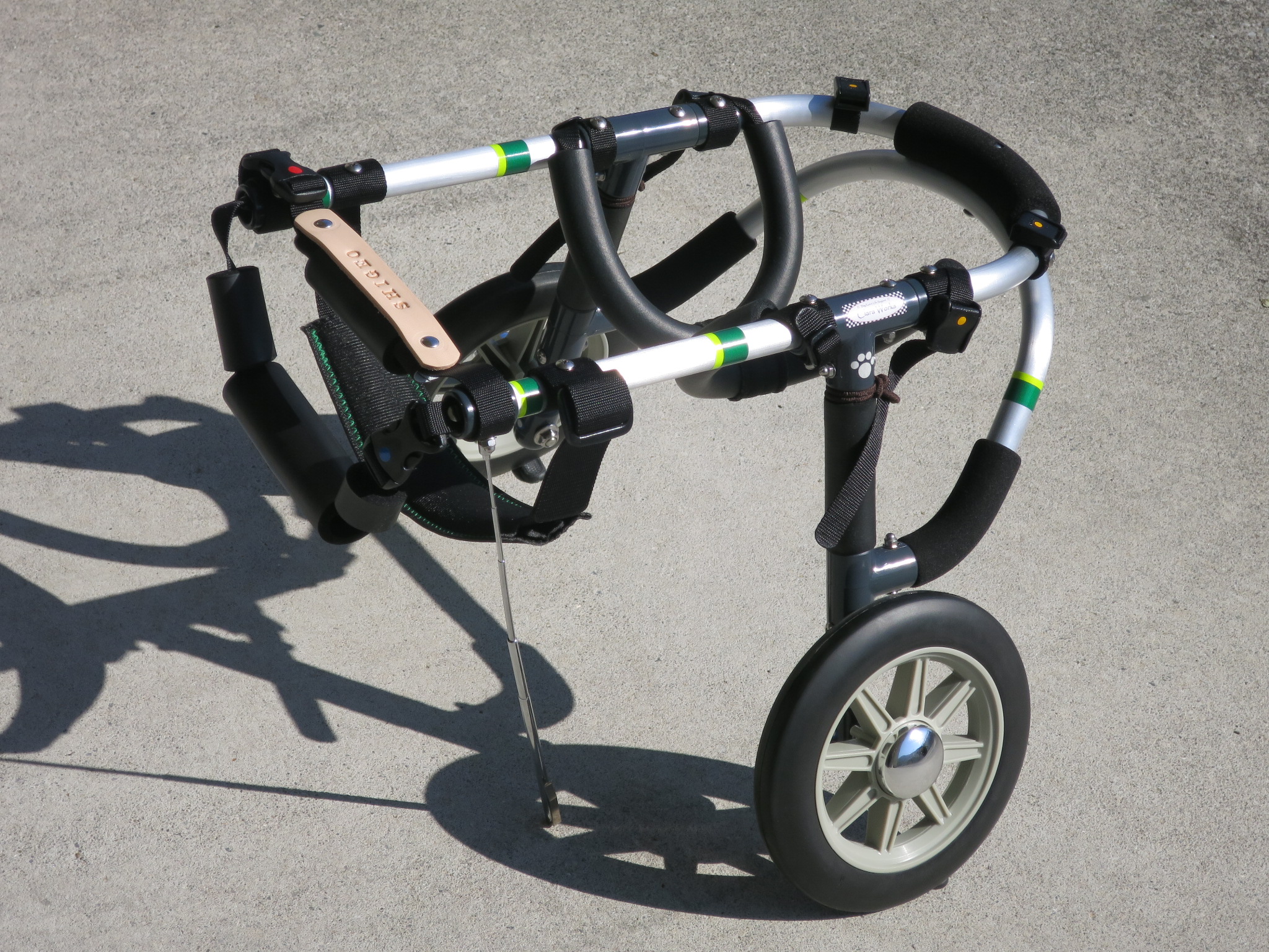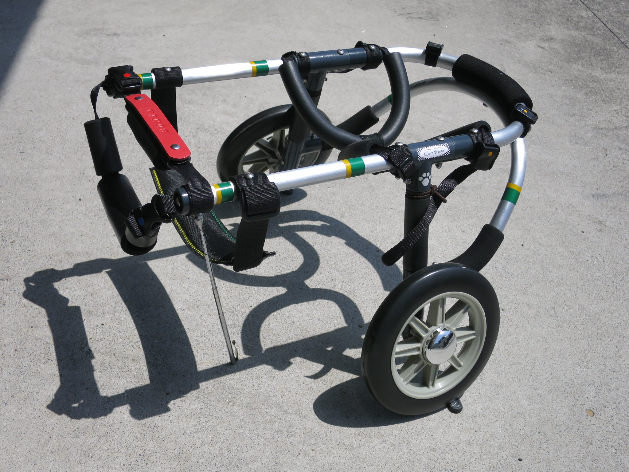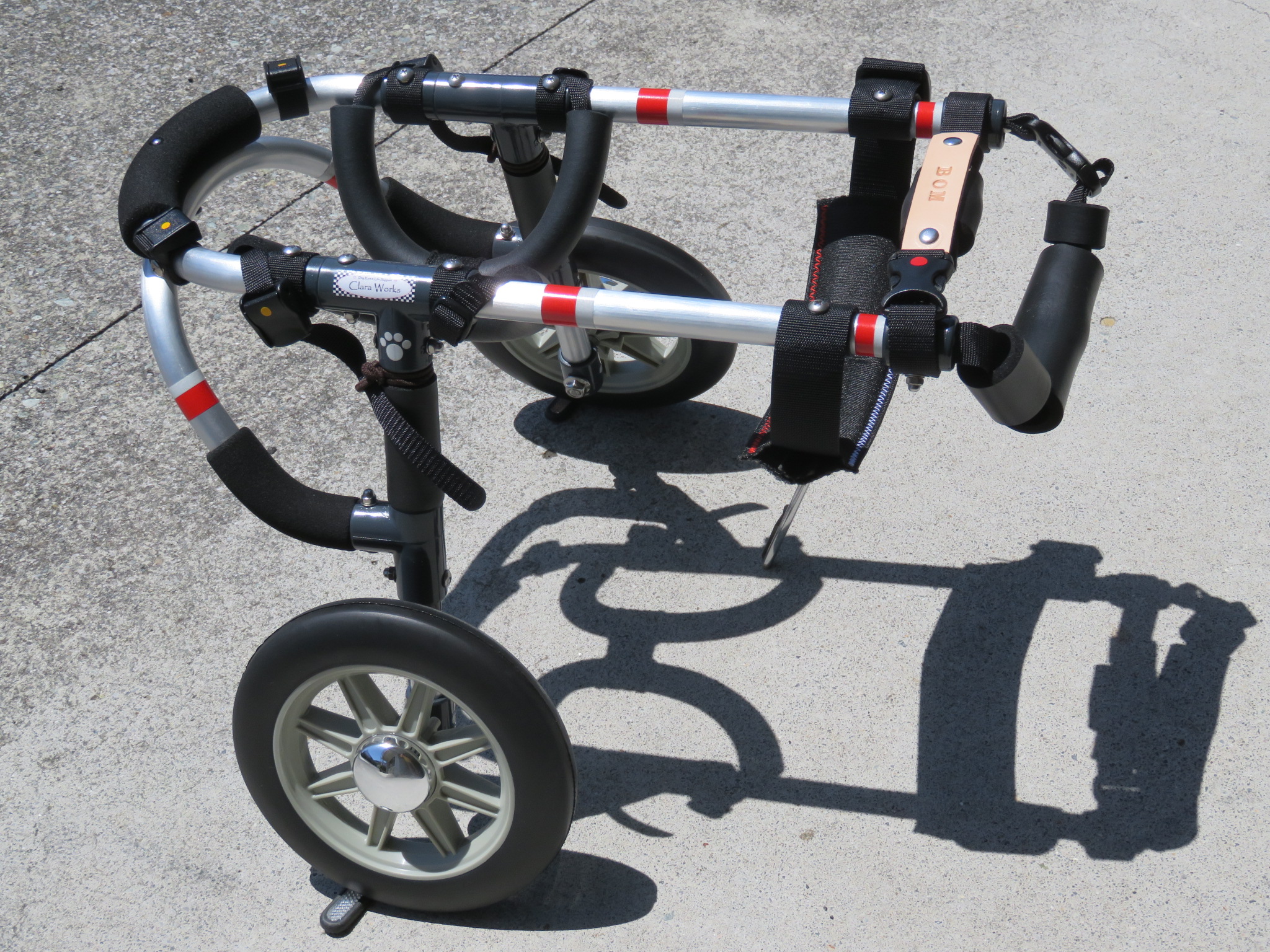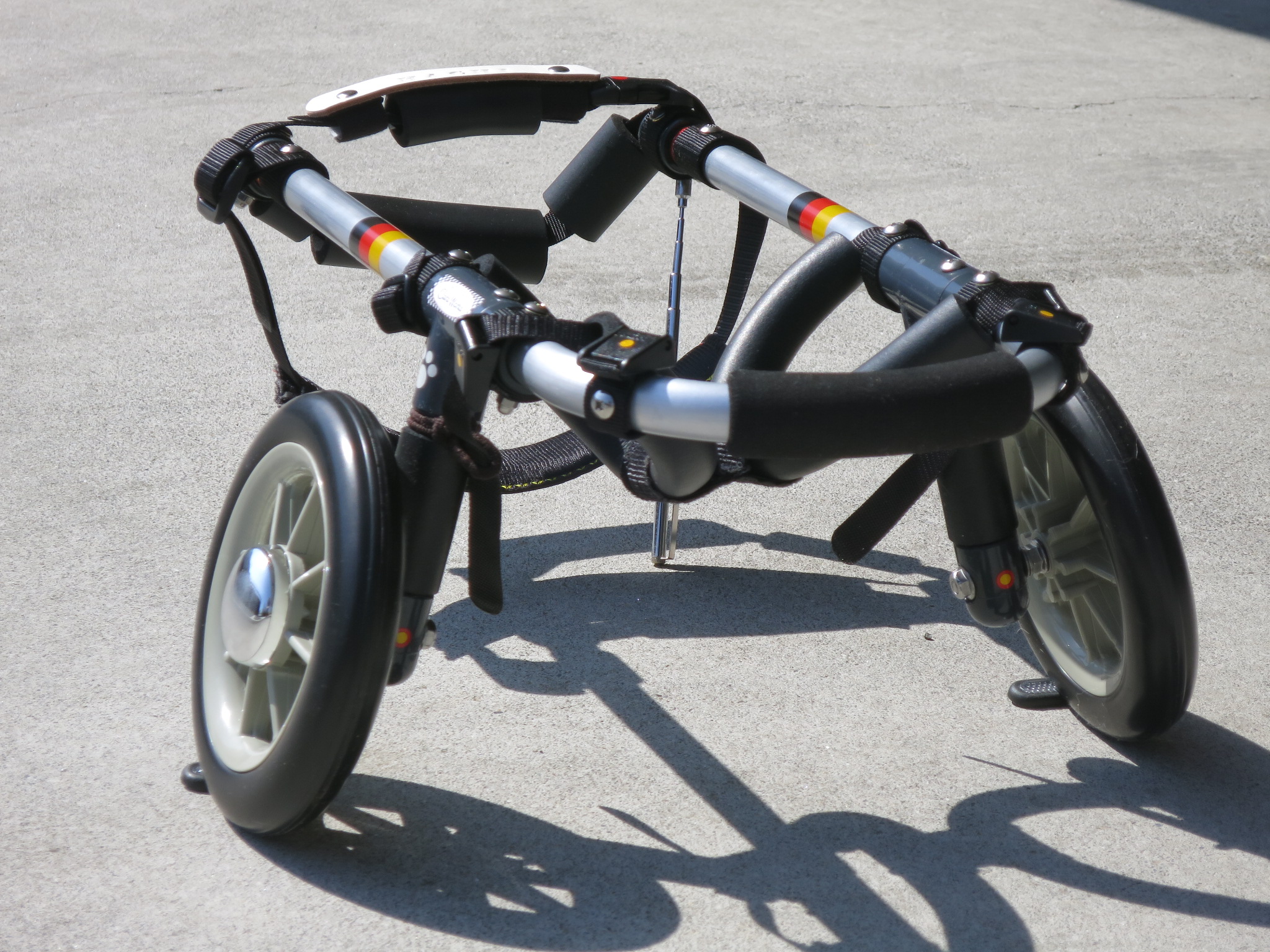 2輪車で歩けそうだけど不安がある、4輪で練習して筋力が戻れば2輪でも歩けそう、そんなワンちゃんのための仕様です