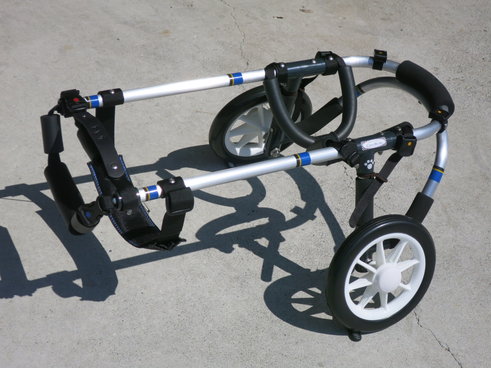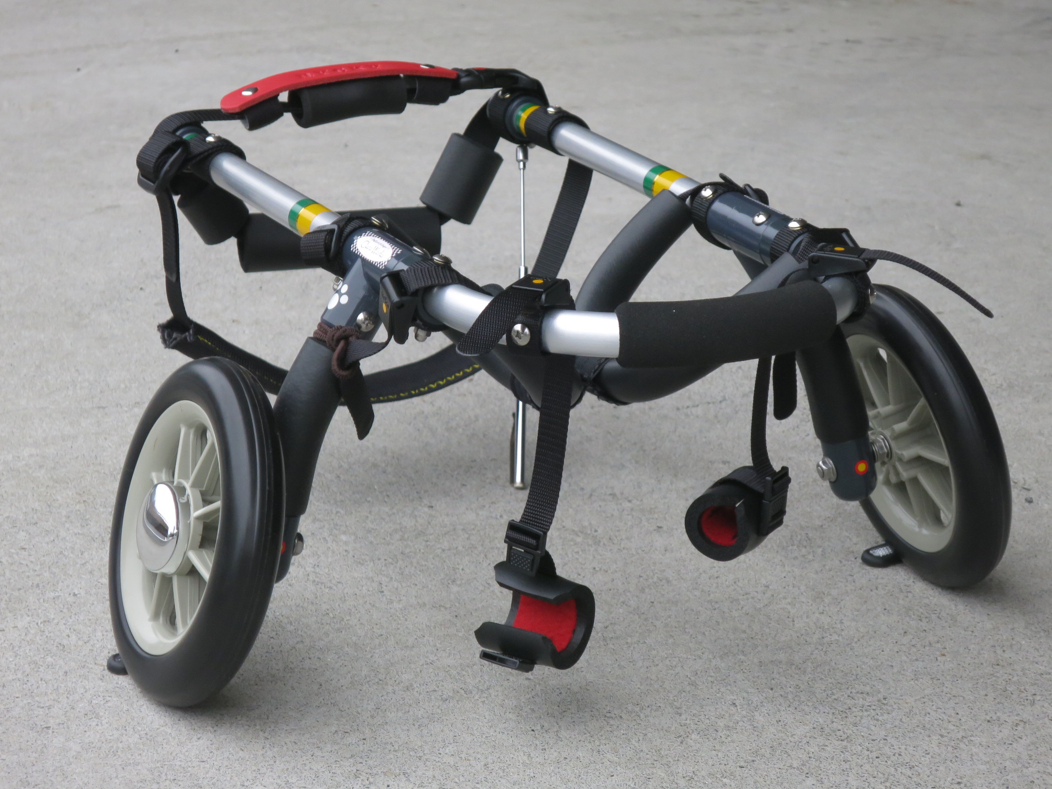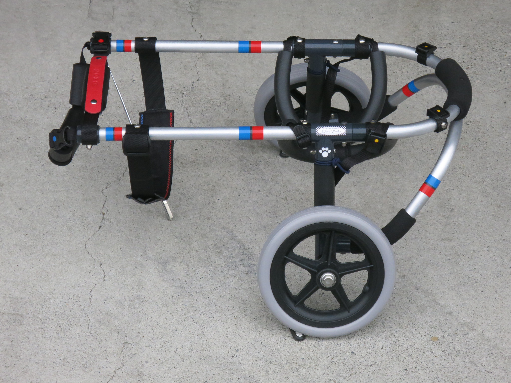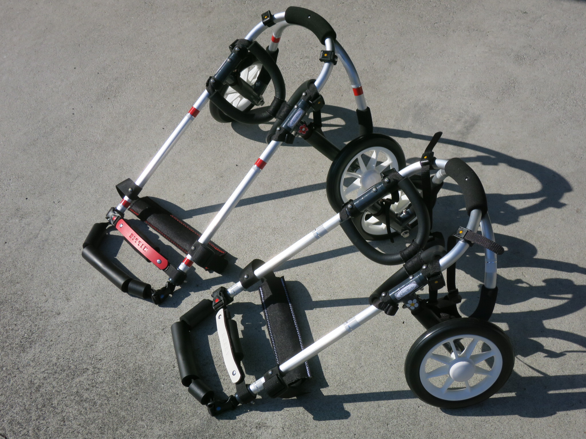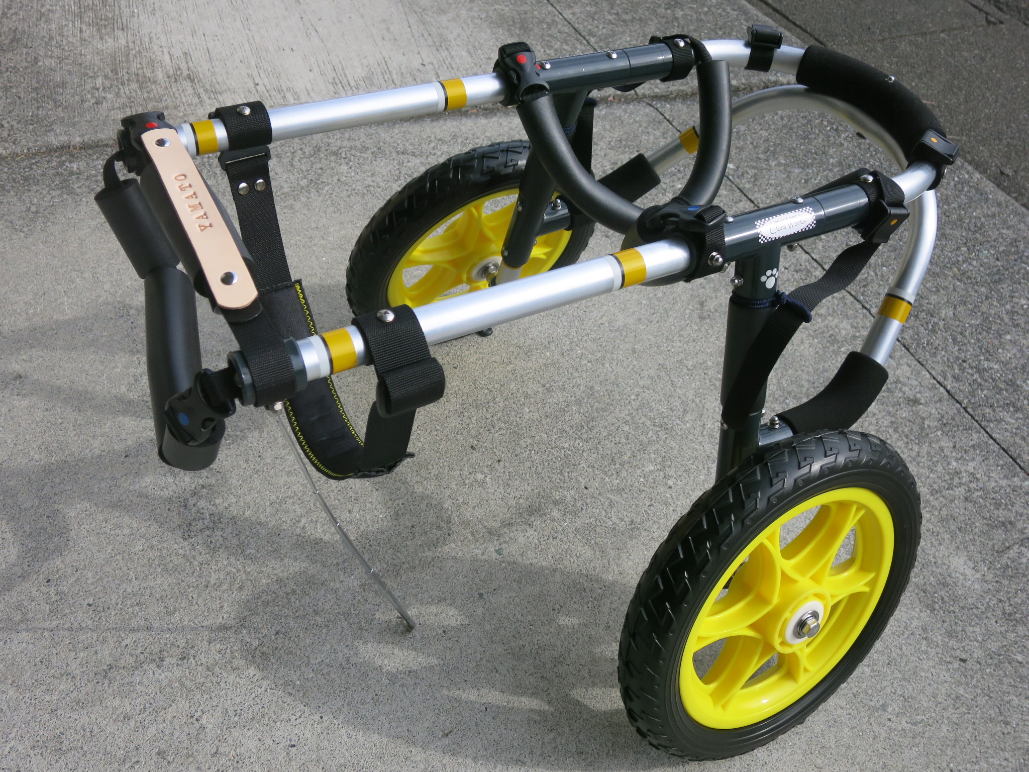 2輪車で歩けそうだけど不安がある、4輪で練習して筋力が戻れば2輪でも歩けそう、そんなワンちゃんのための仕様です