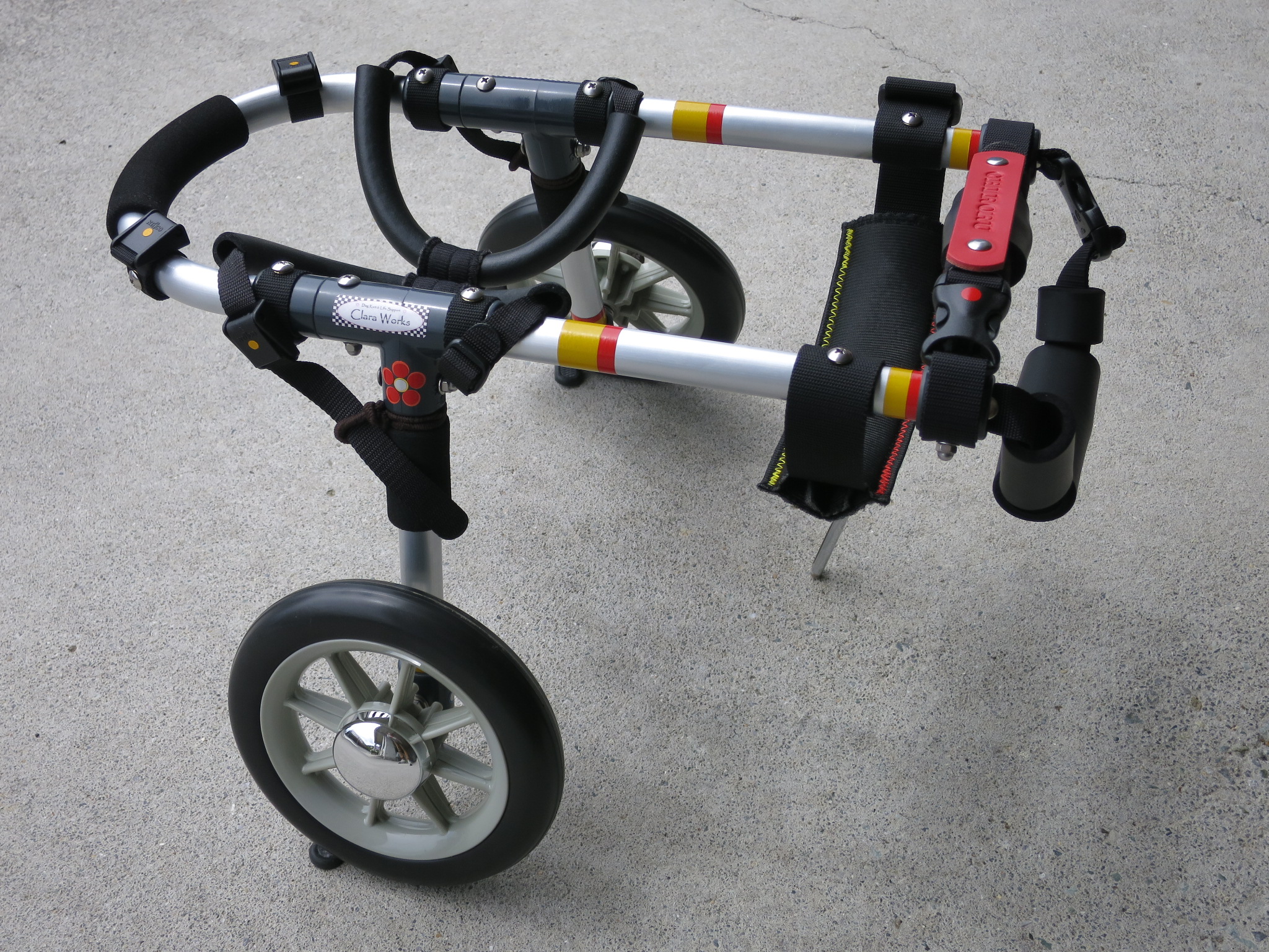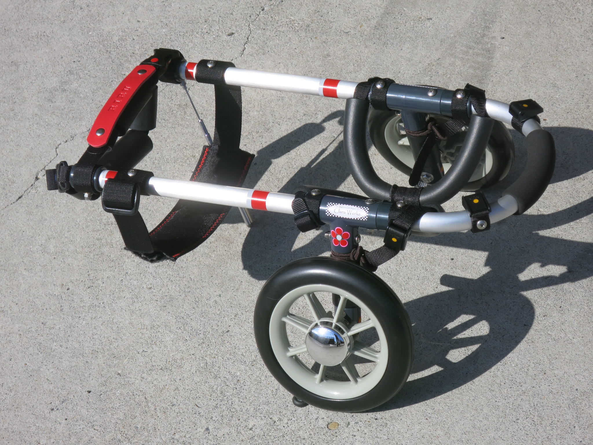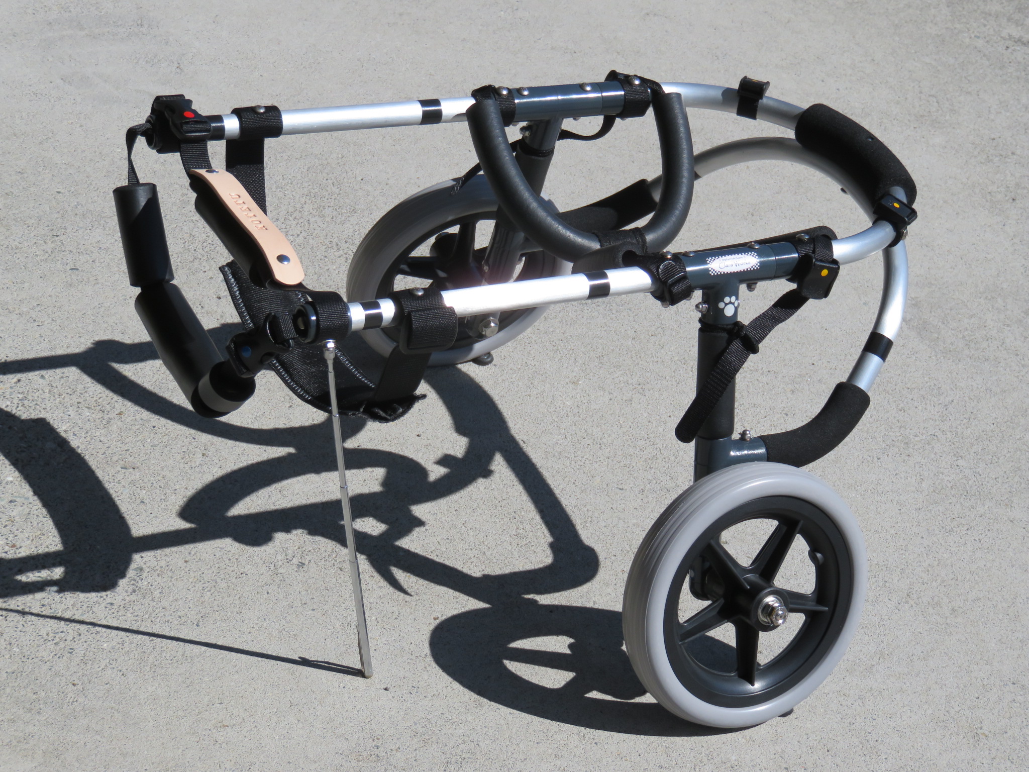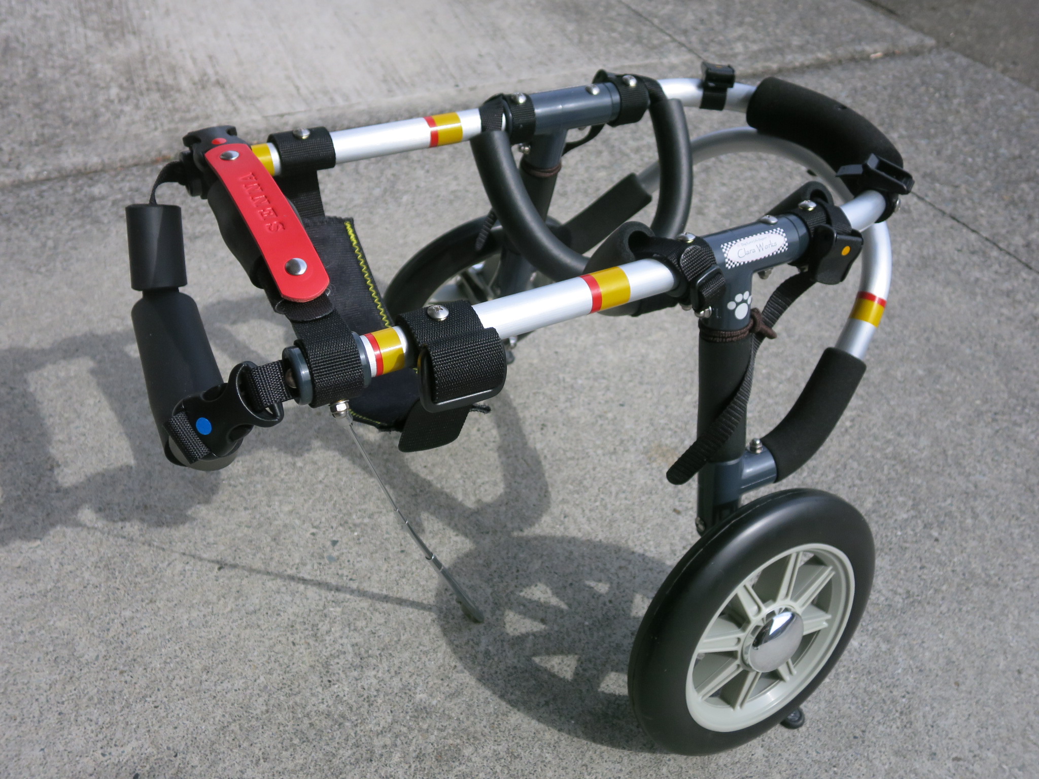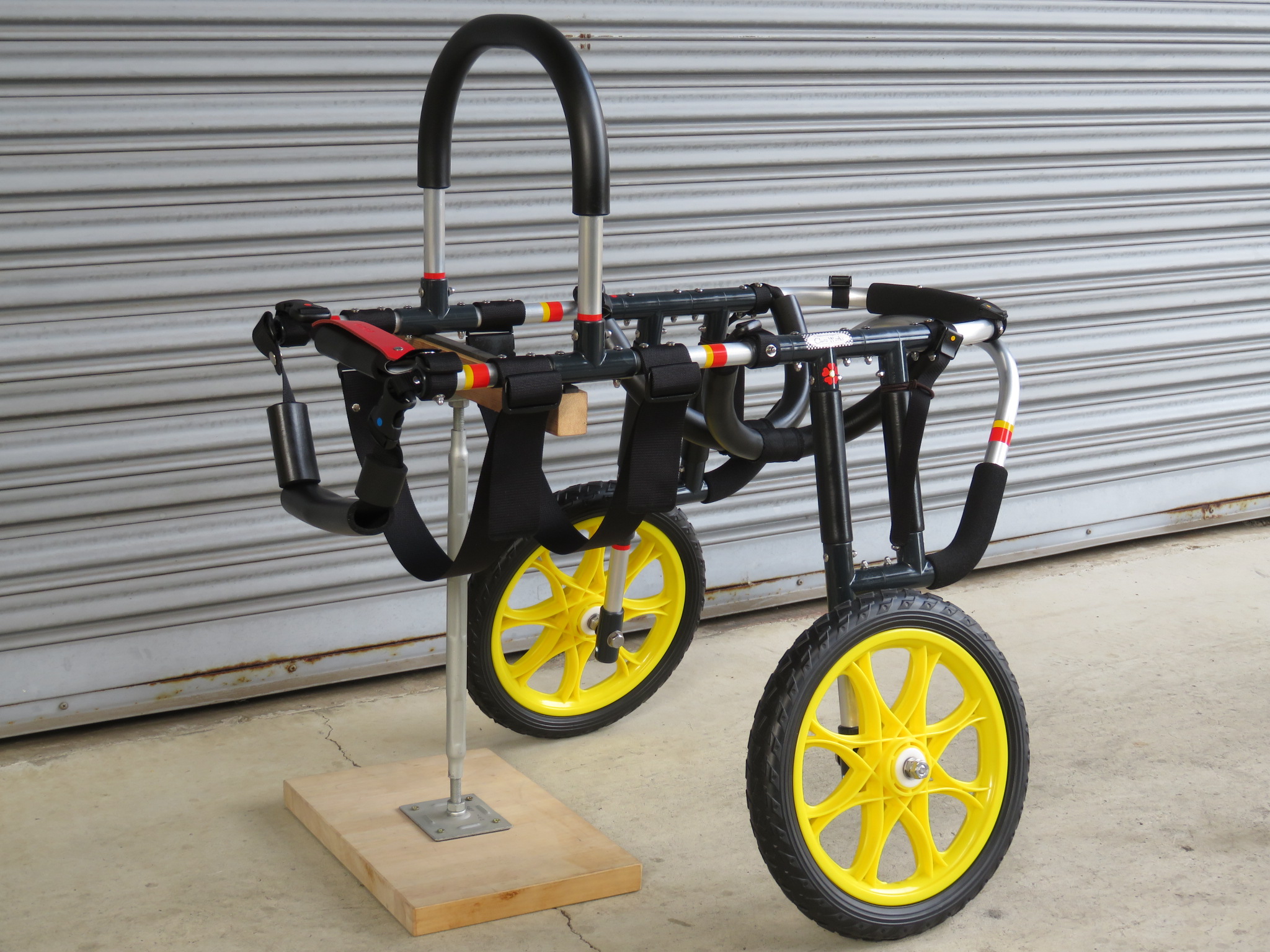 2輪車で歩けそうだけど不安がある、4輪で練習して筋力が戻れば2輪でも歩けそう、そんなワンちゃんのための仕様です