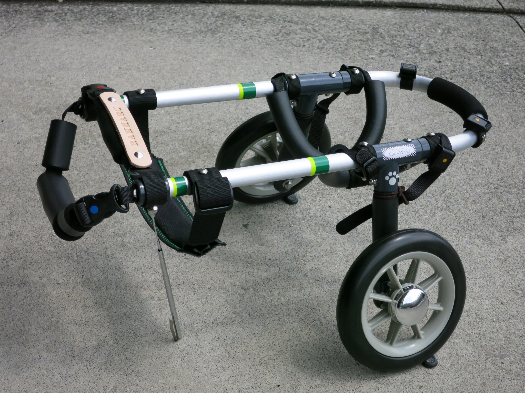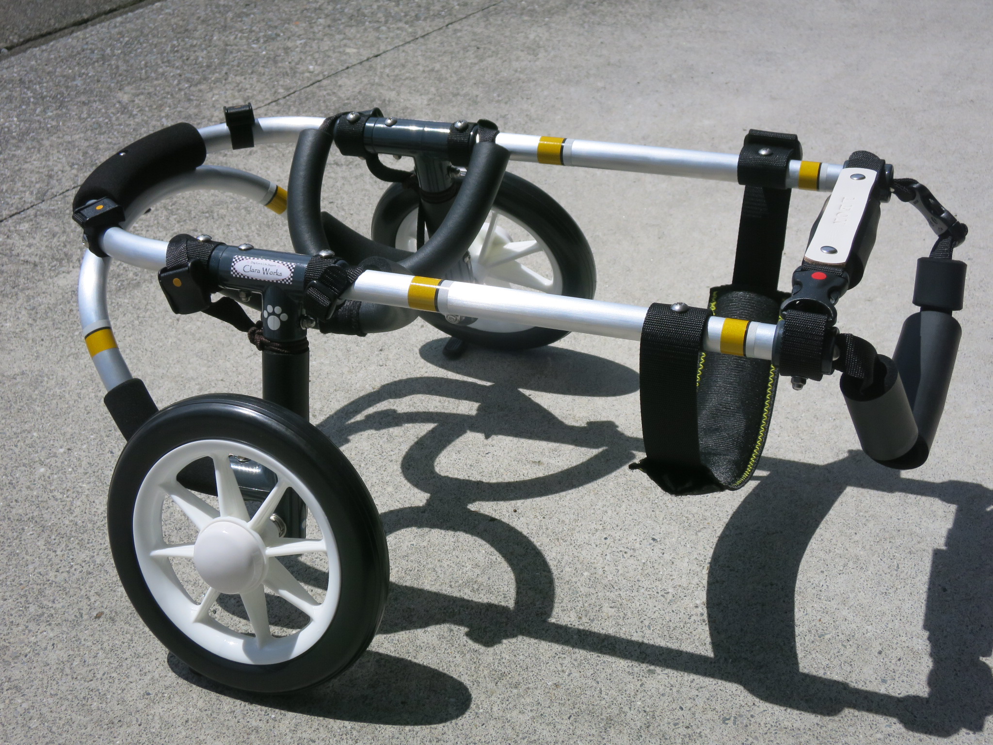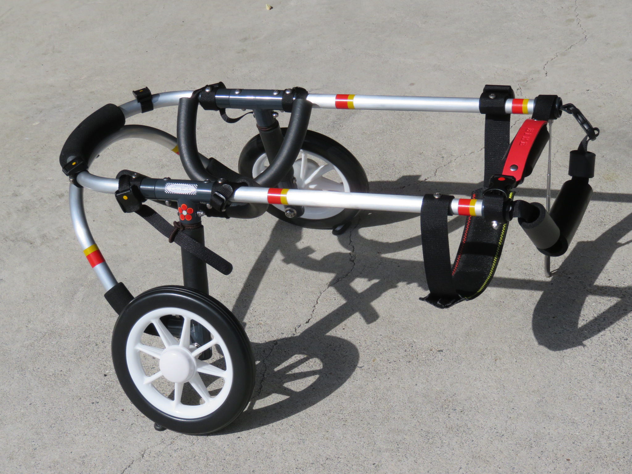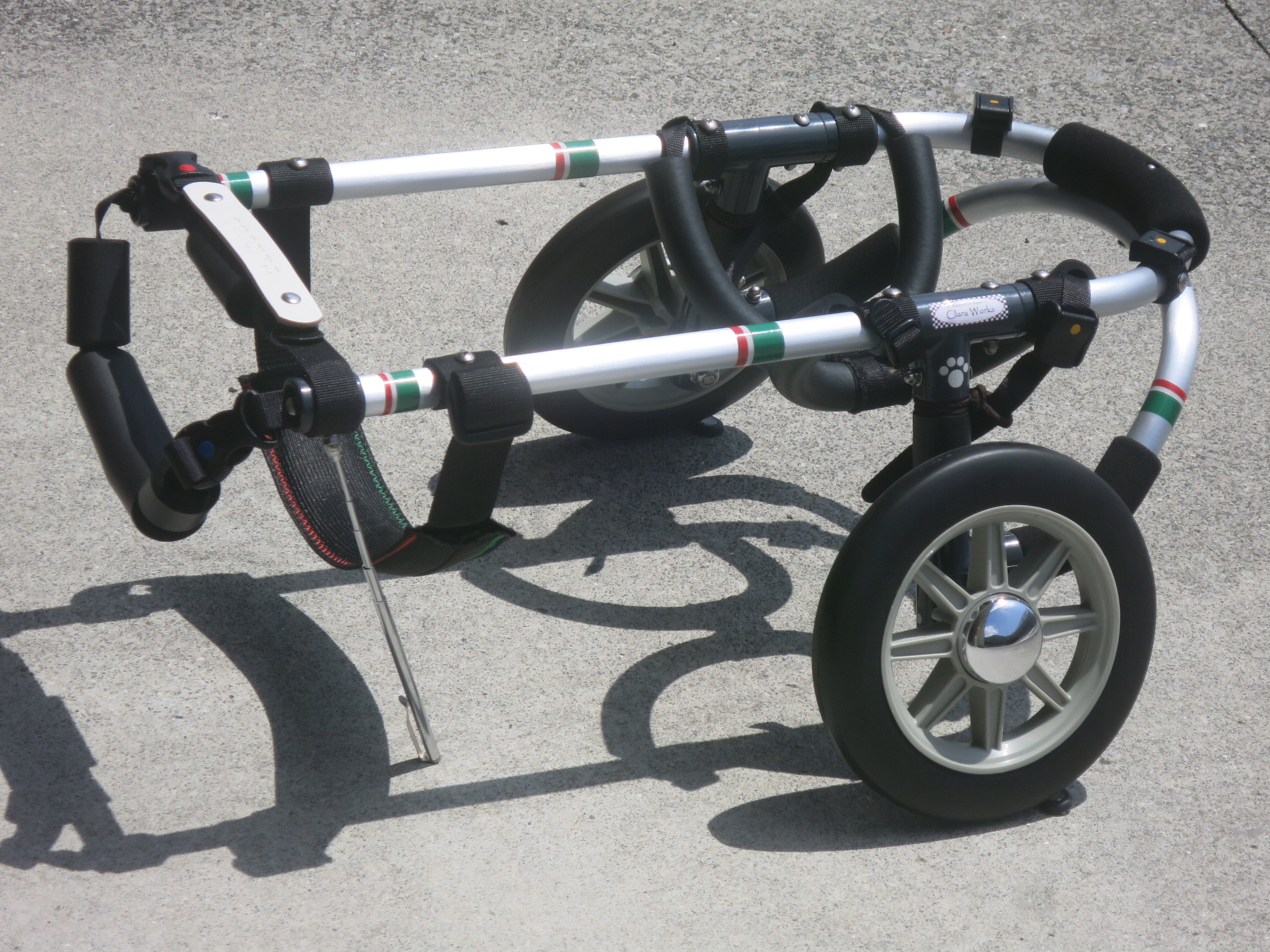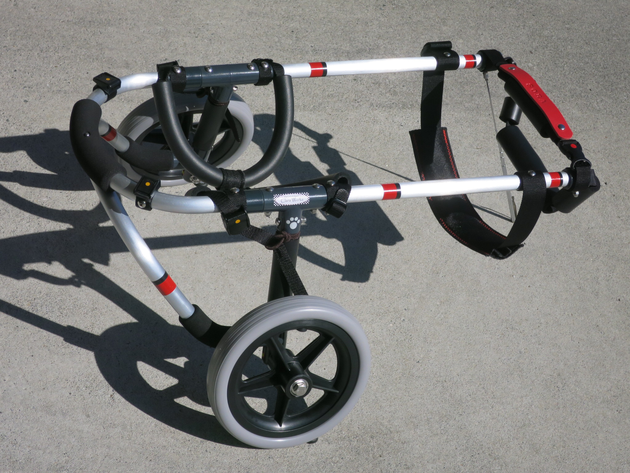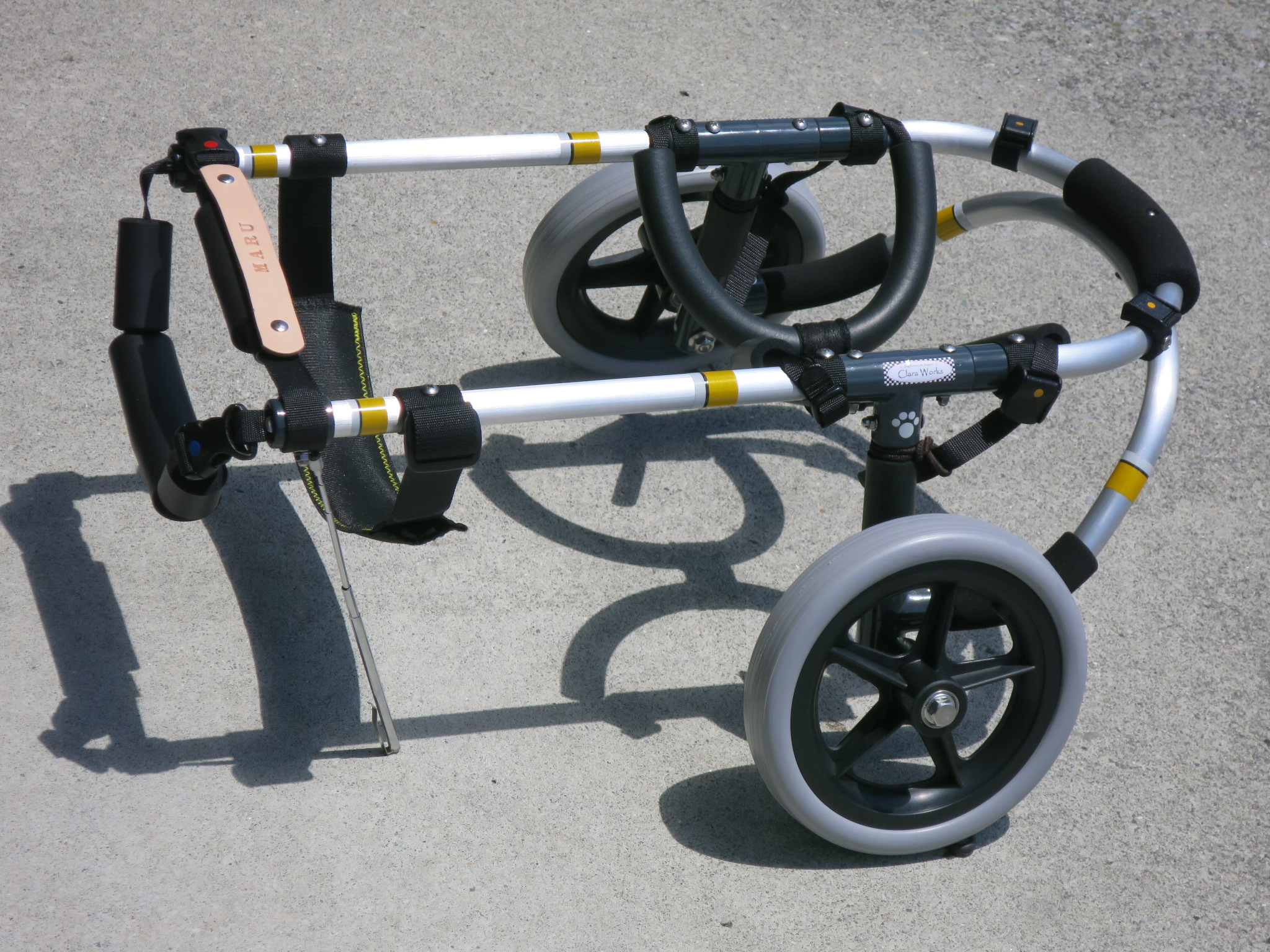 2輪車で歩けそうだけど不安がある、4輪で練習して筋力が戻れば2輪でも歩けそう、そんなワンちゃんのための仕様です