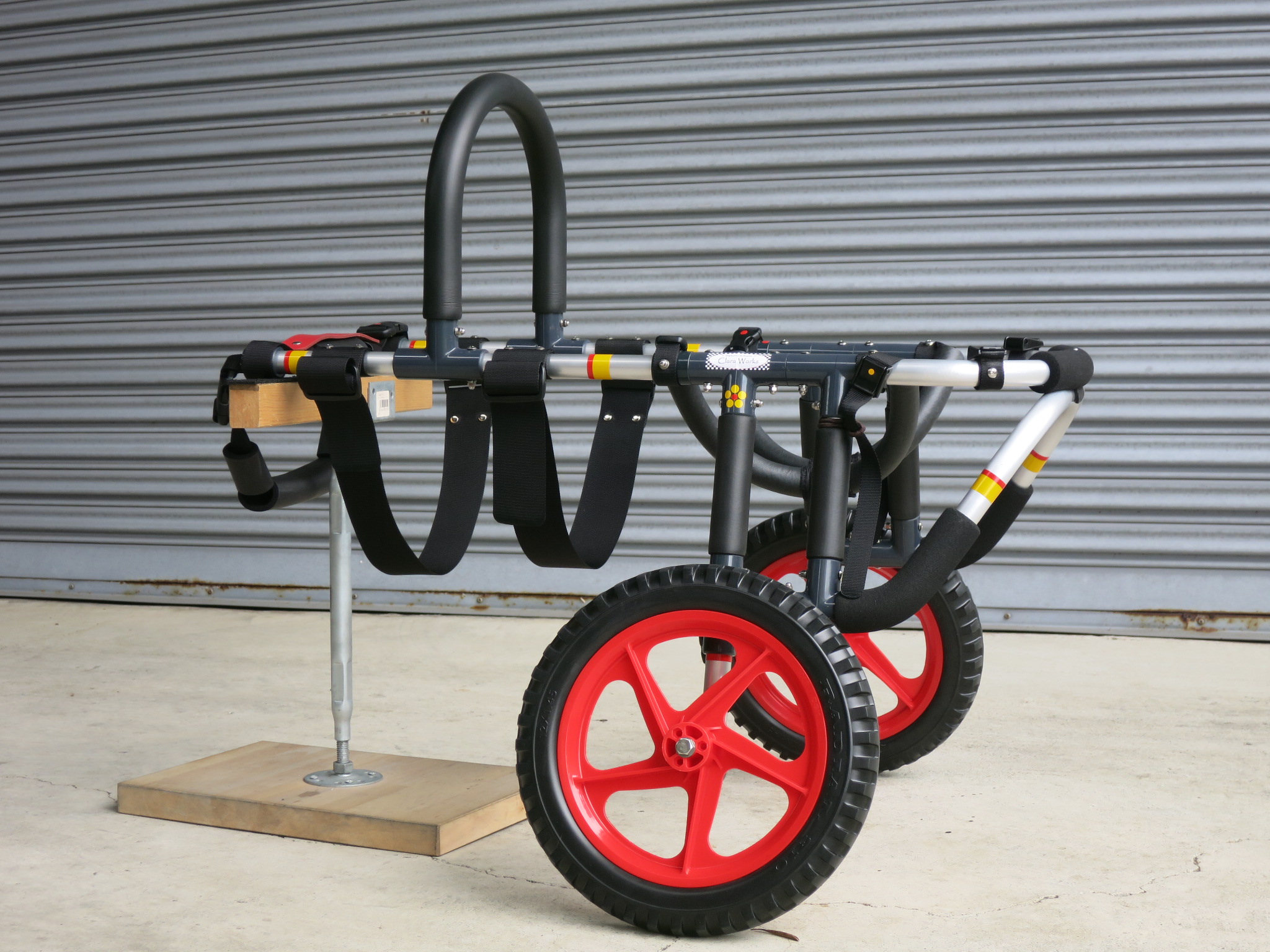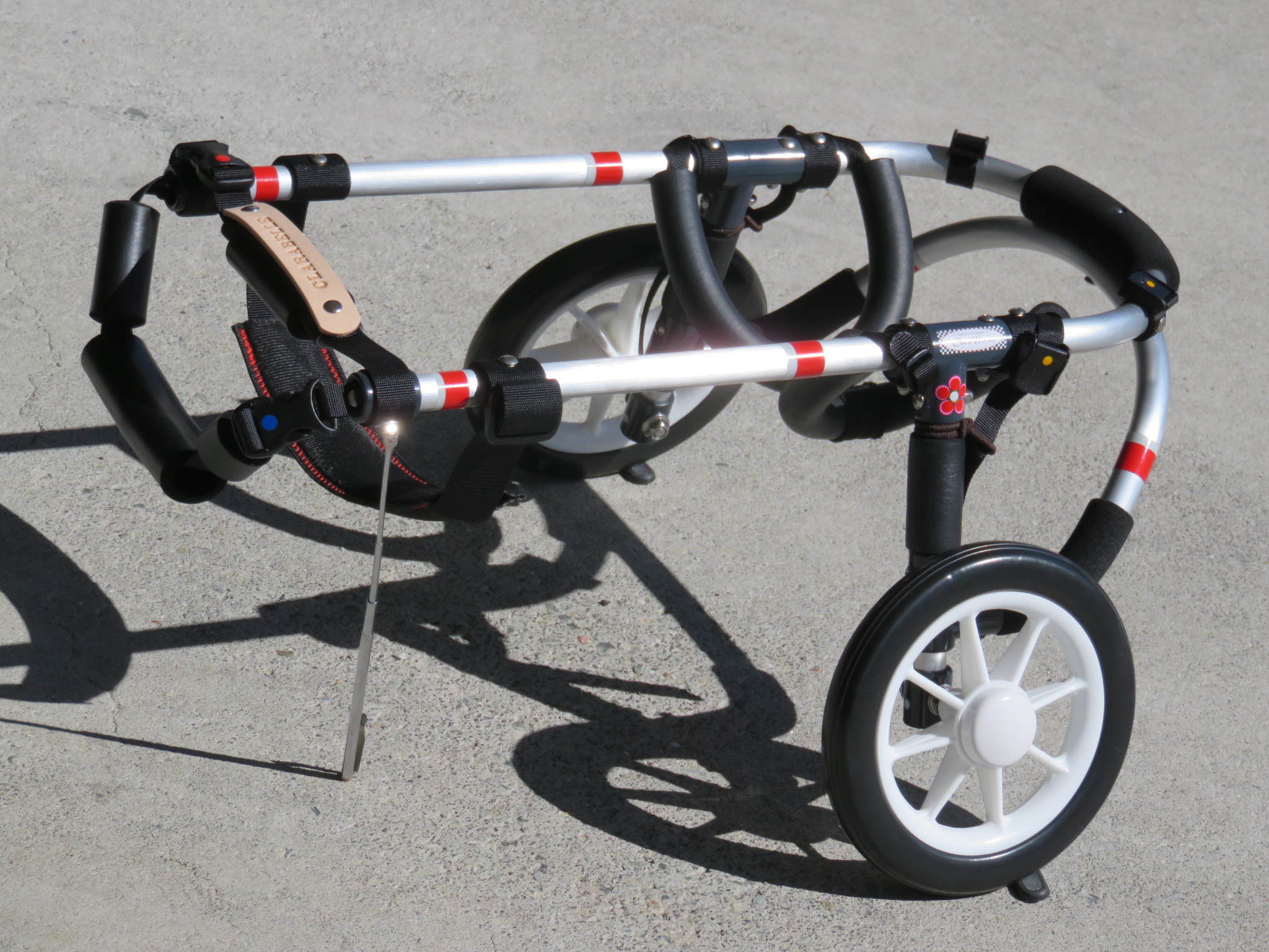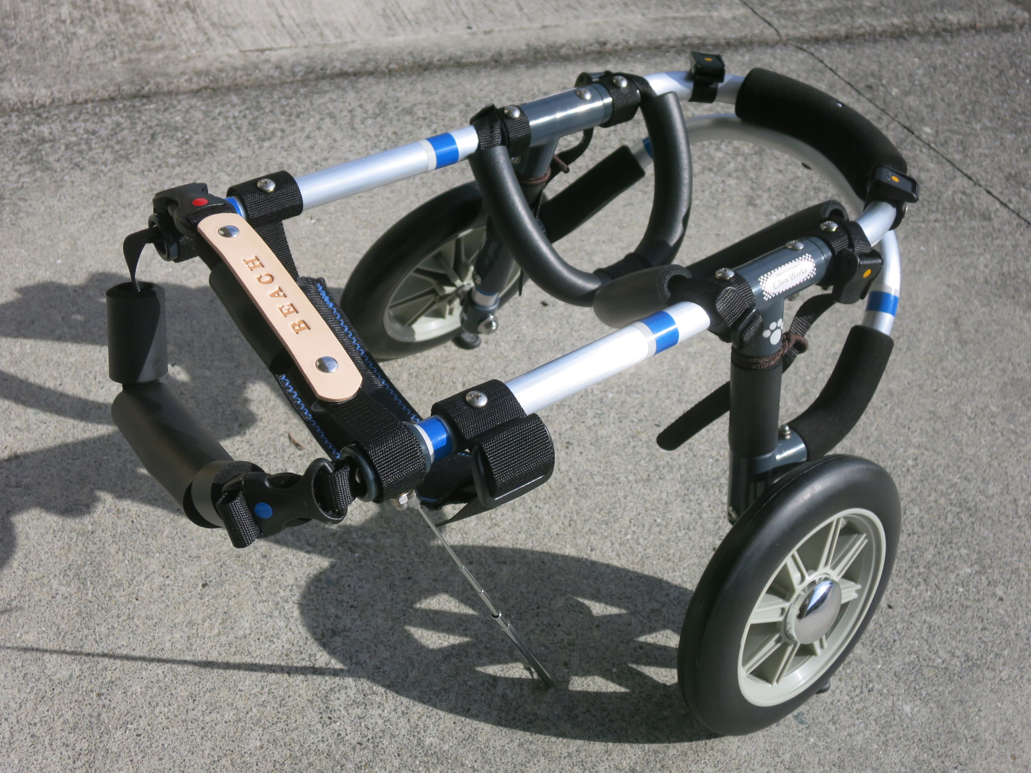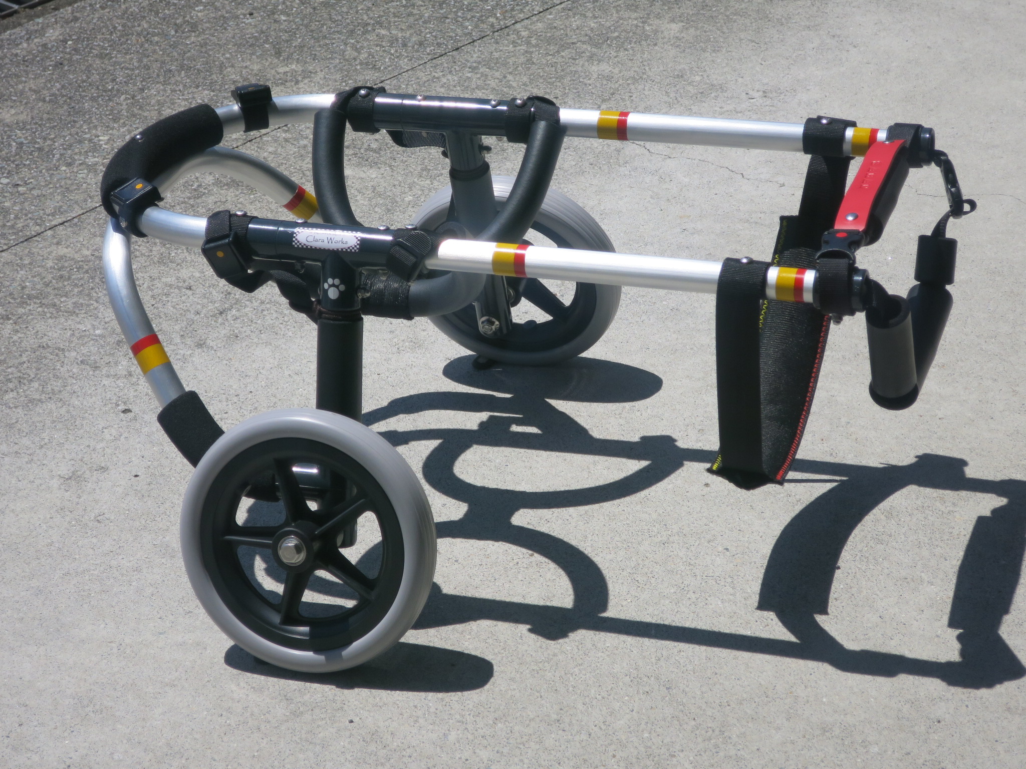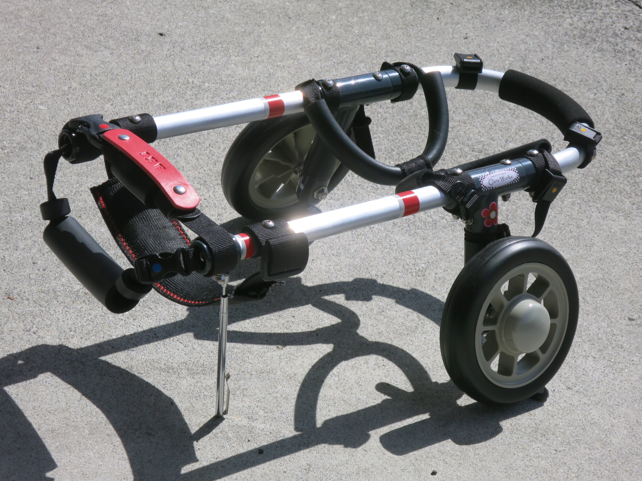 2輪車で歩けそうだけど不安がある、4輪で練習して筋力が戻れば2輪でも歩けそう、そんなワンちゃんのための仕様です