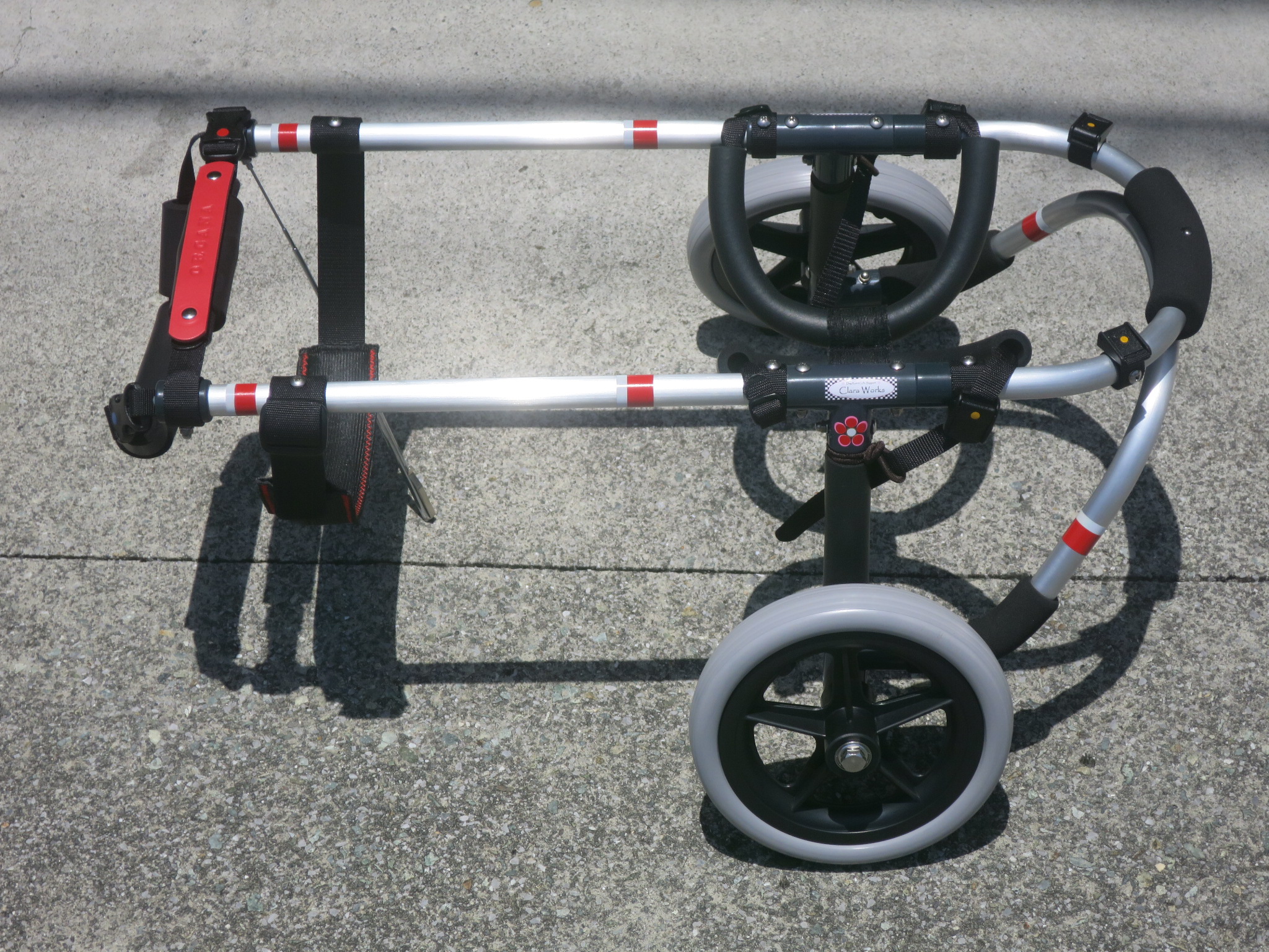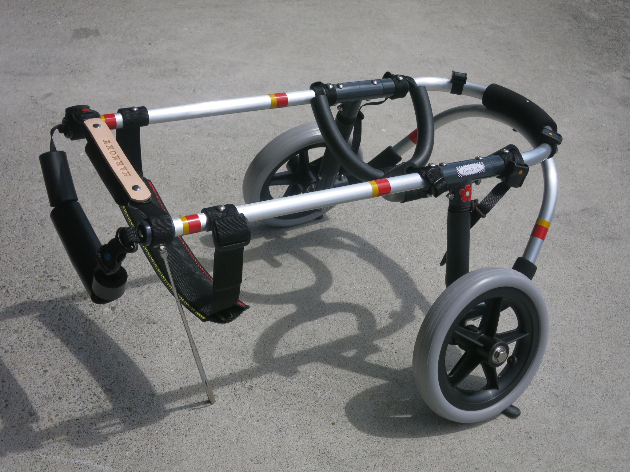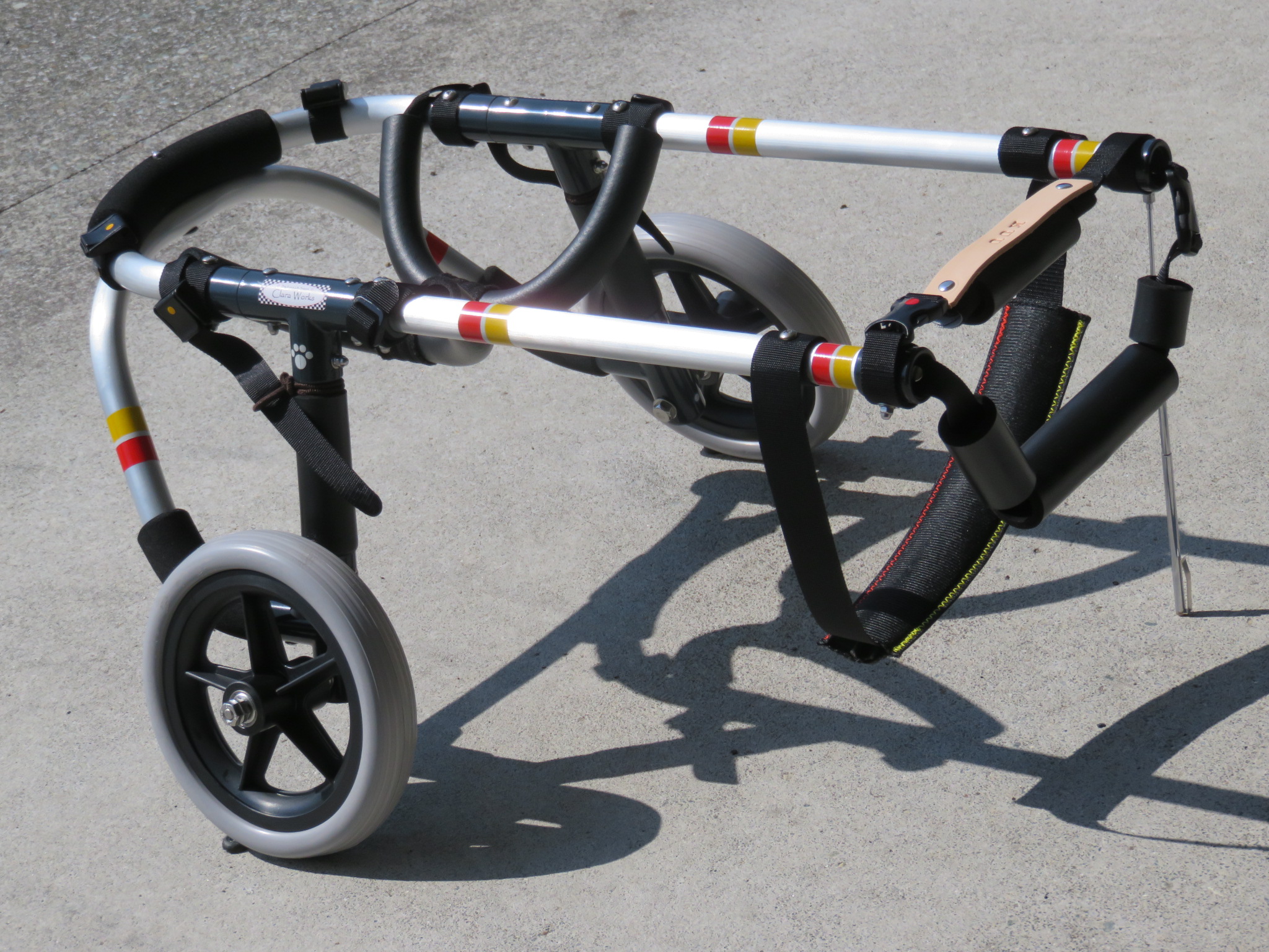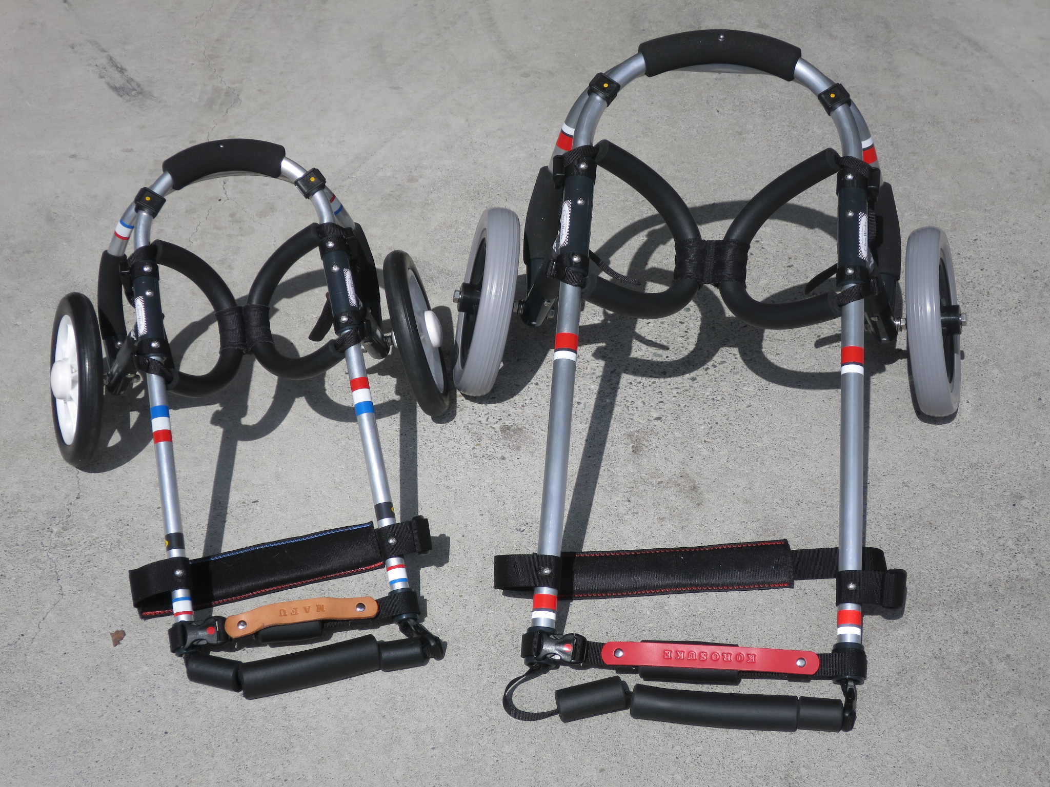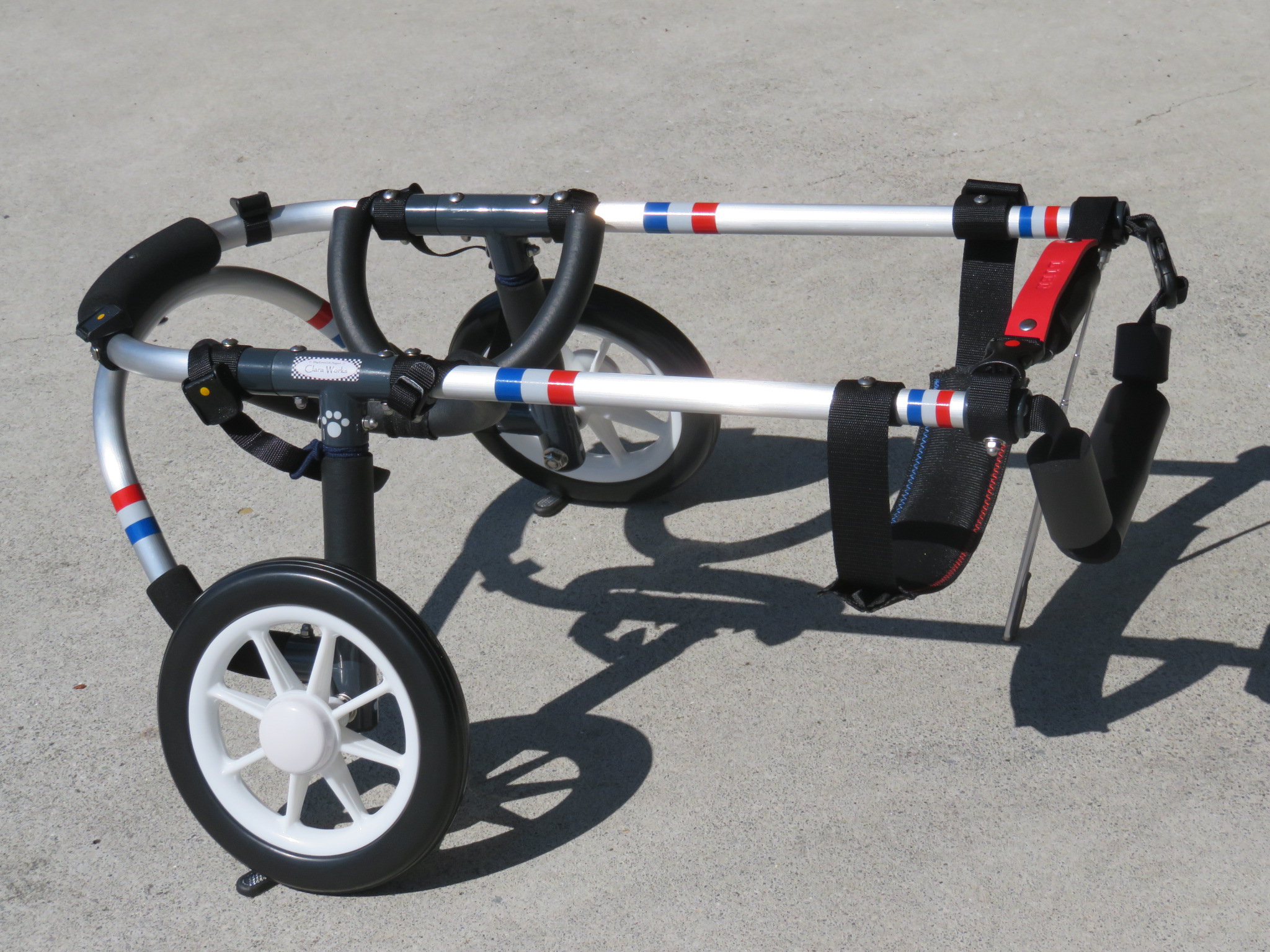 2輪車で歩けそうだけど不安がある、4輪で練習して筋力が戻れば2輪でも歩けそう、そんなワンちゃんのための仕様です
