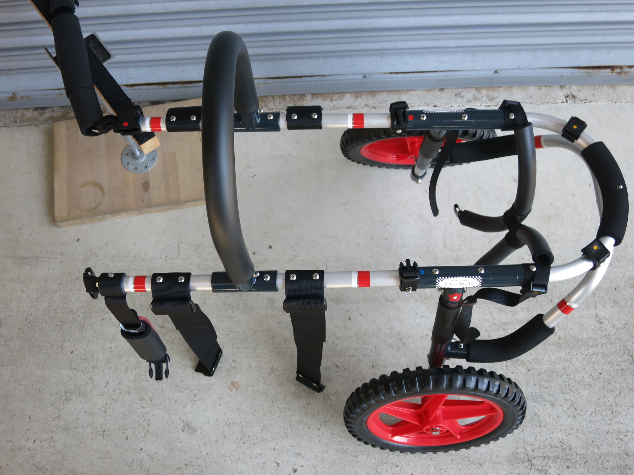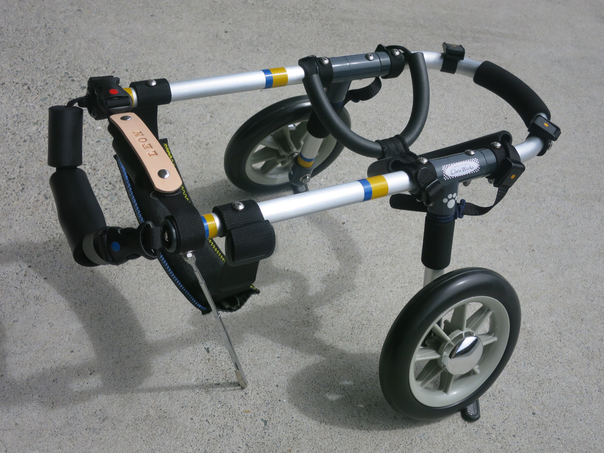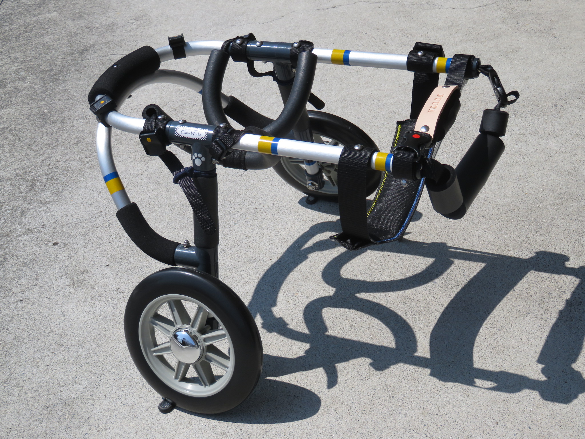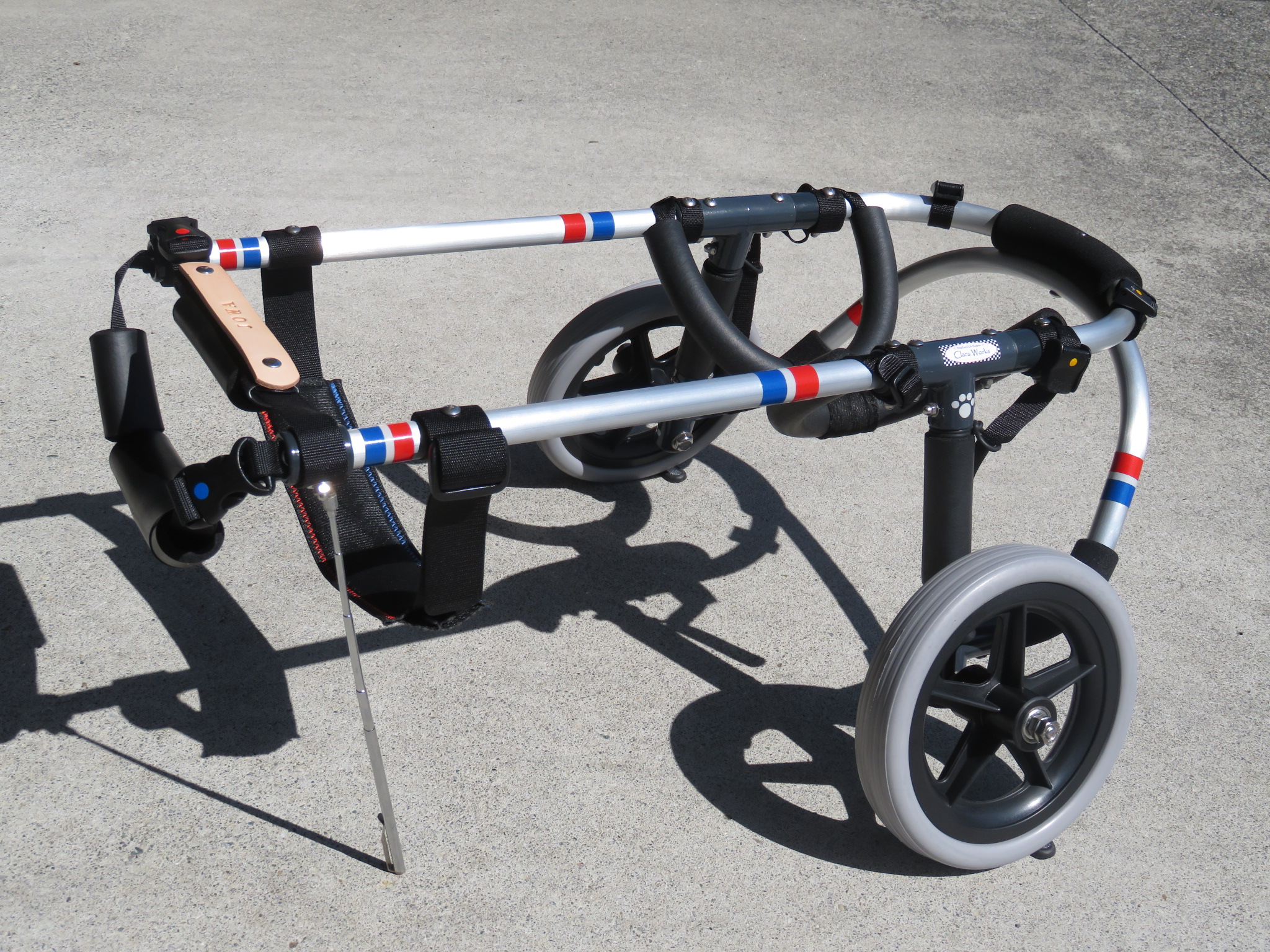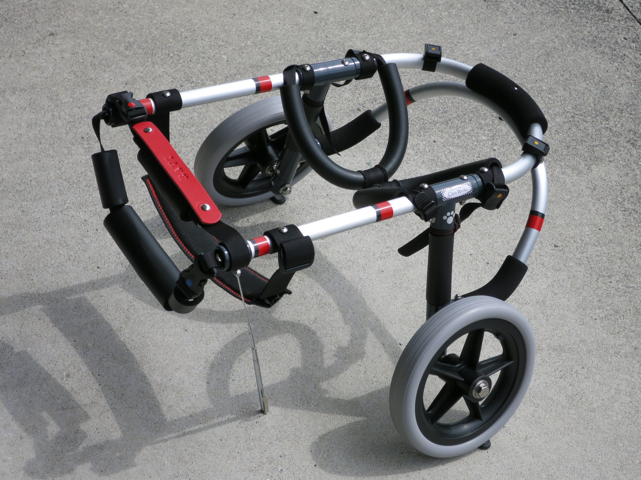 2輪車で歩けそうだけど不安がある、4輪で練習して筋力が戻れば2輪でも歩けそう、そんなワンちゃんのための仕様です