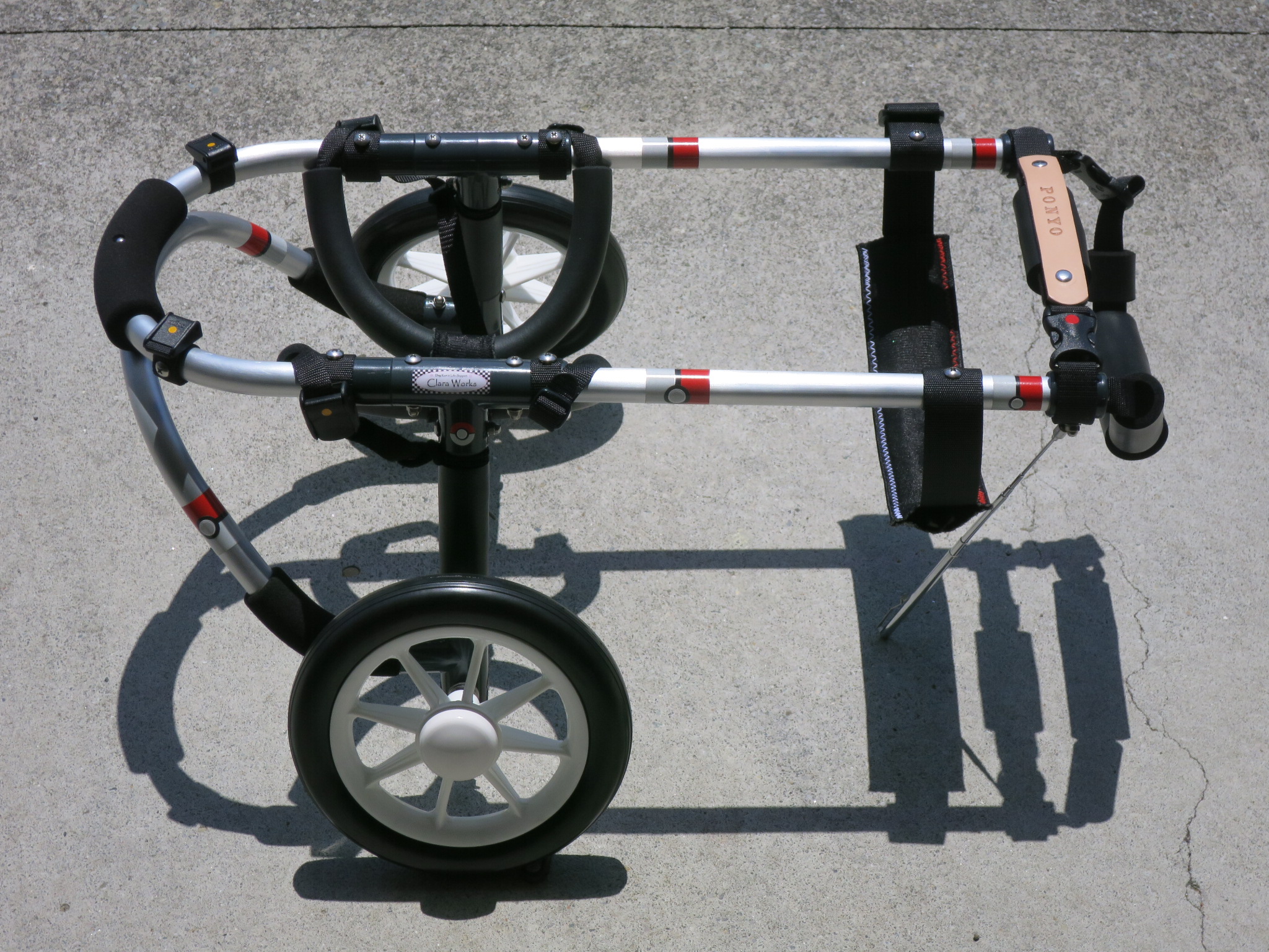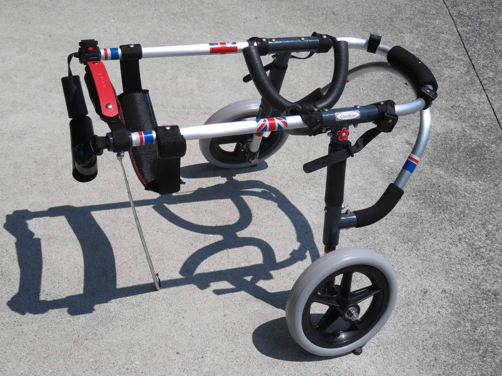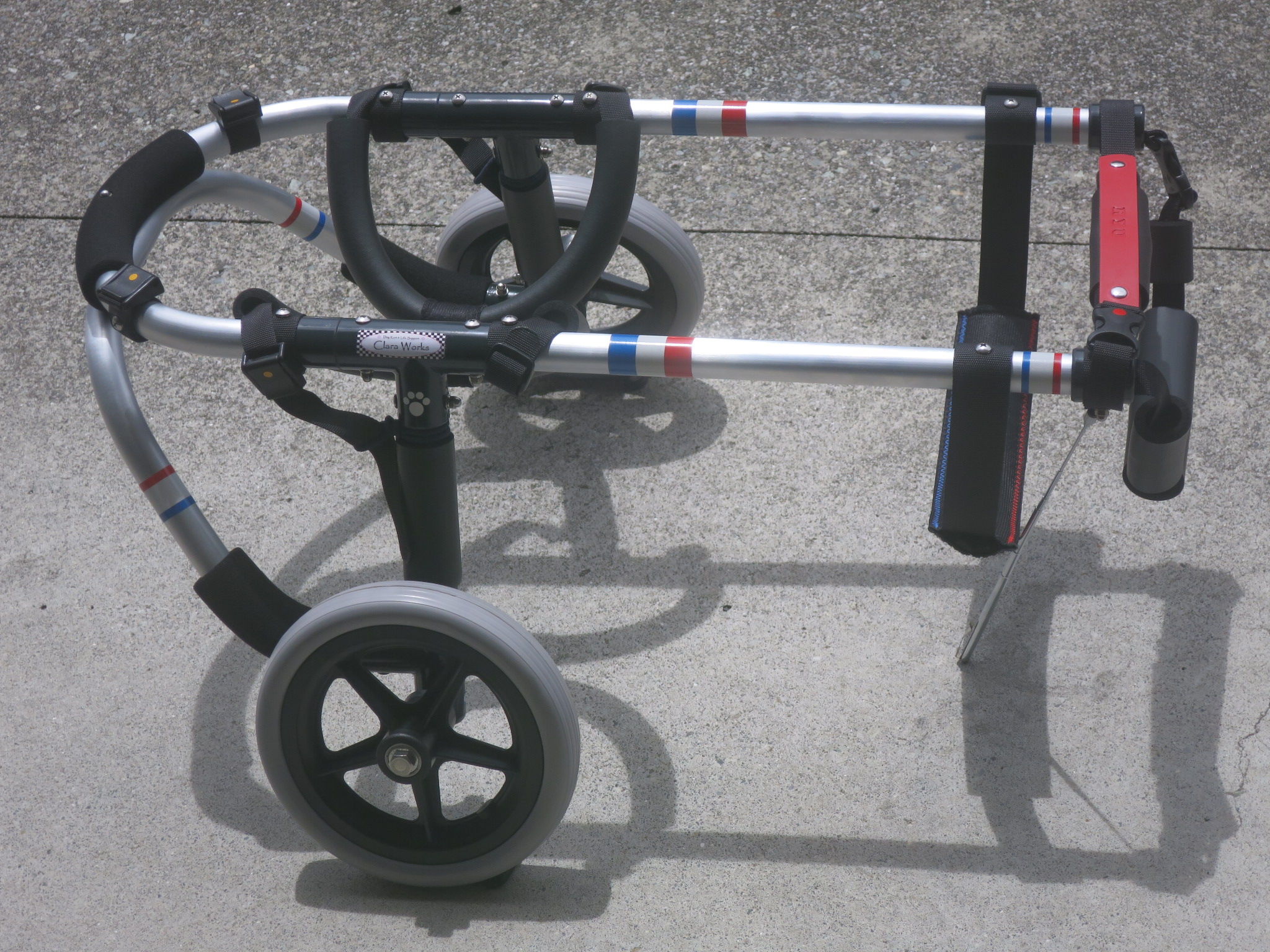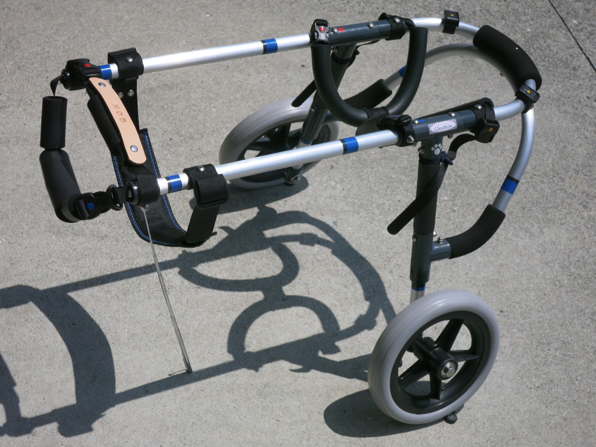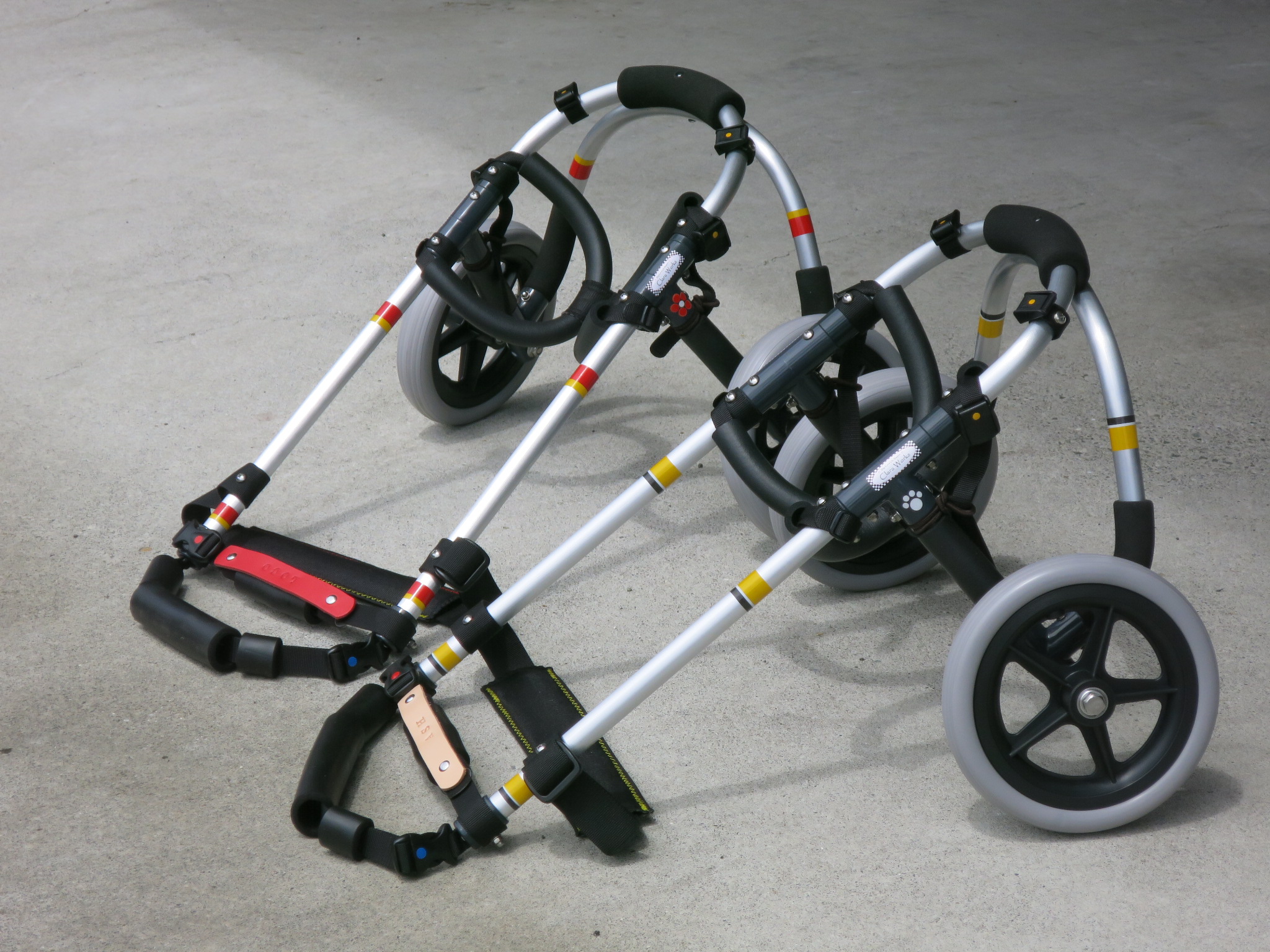 2輪車で歩けそうだけど不安がある、4輪で練習して筋力が戻れば2輪でも歩けそう、そんなワンちゃんのための仕様です