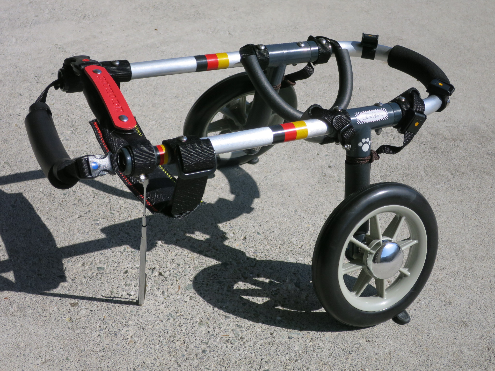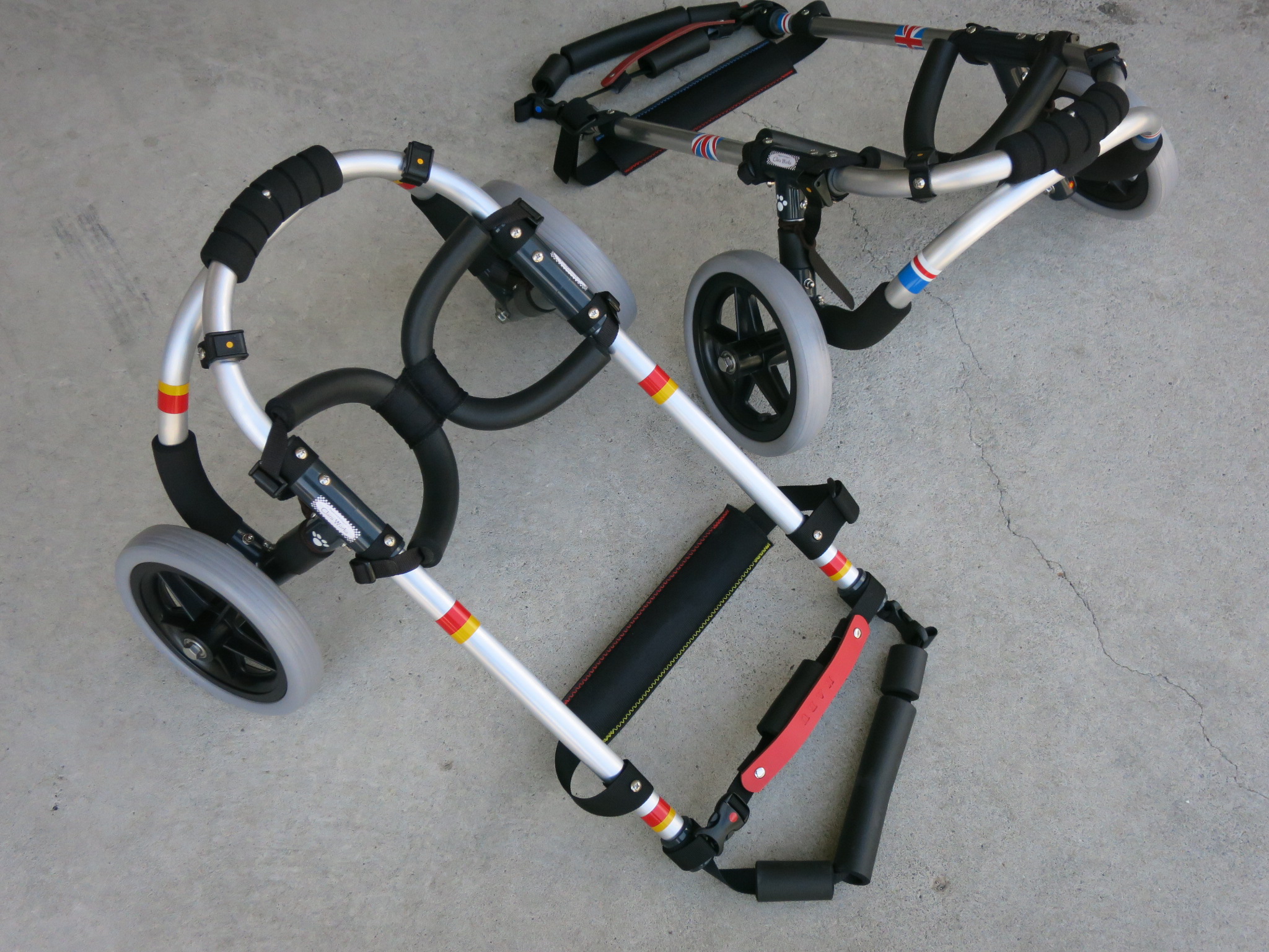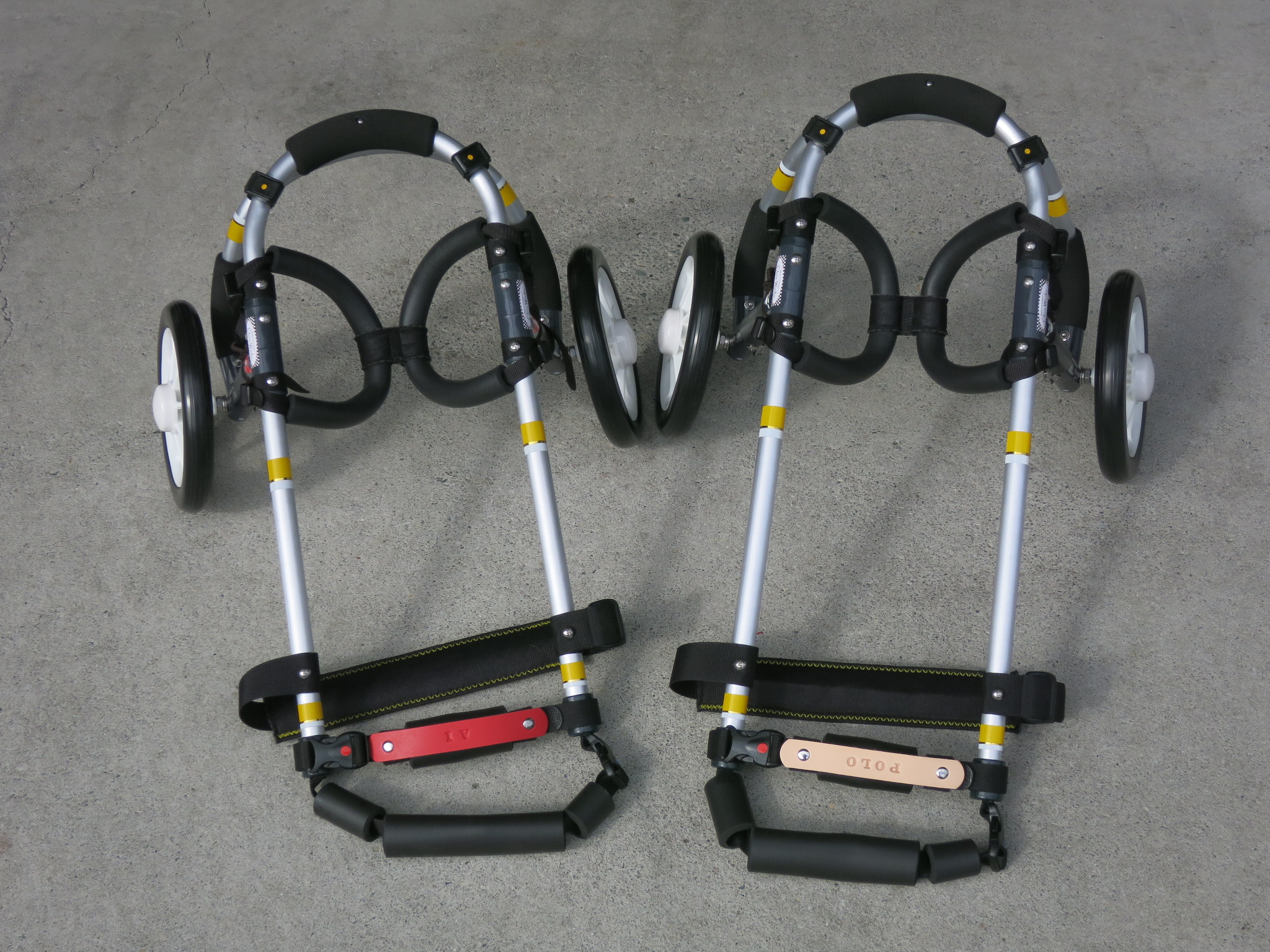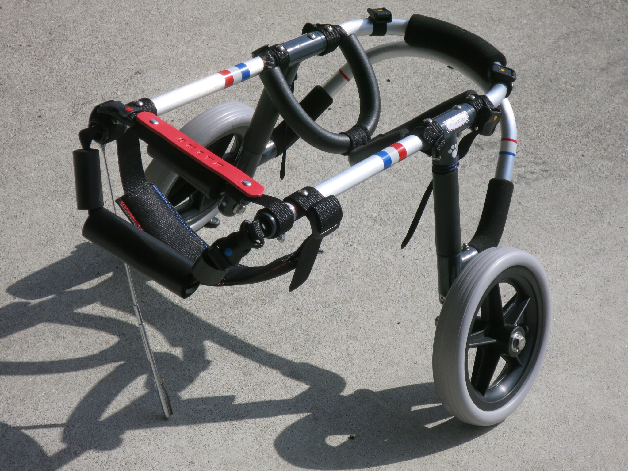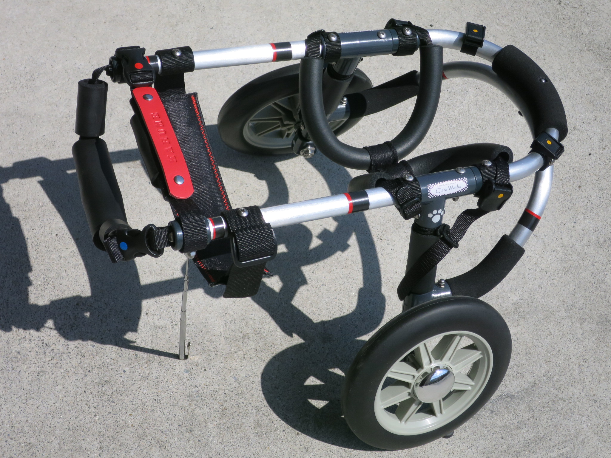 2輪車で歩けそうだけど不安がある、4輪で練習して筋力が戻れば2輪でも歩けそう、そんなワンちゃんのための仕様です