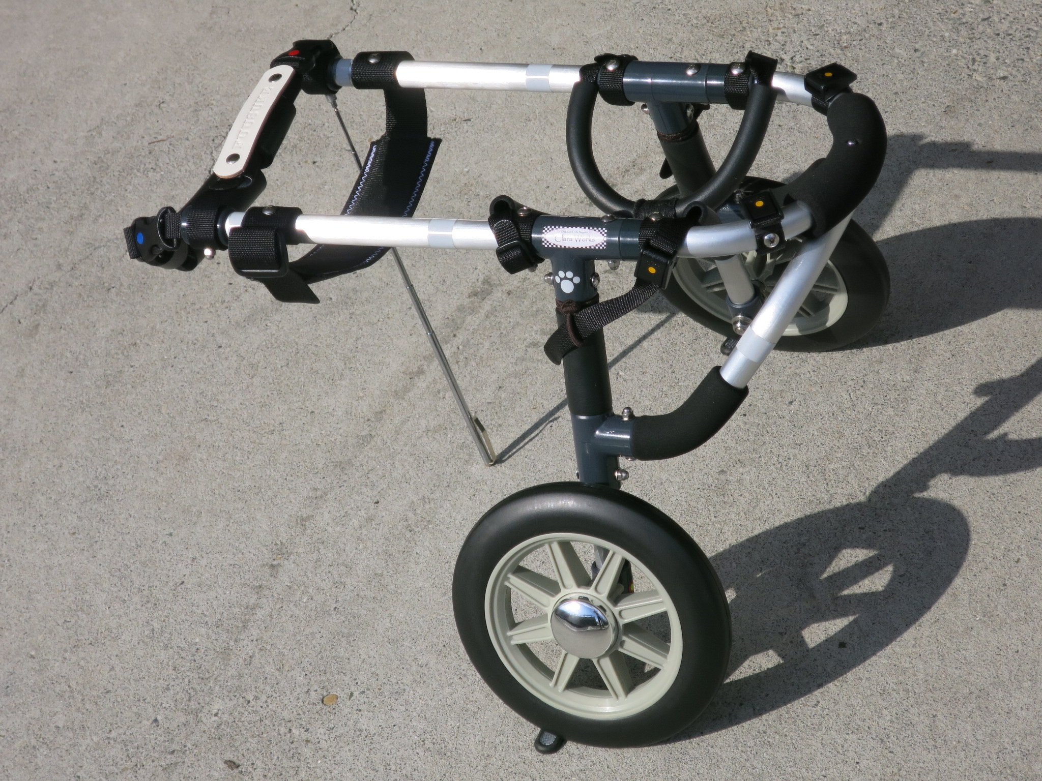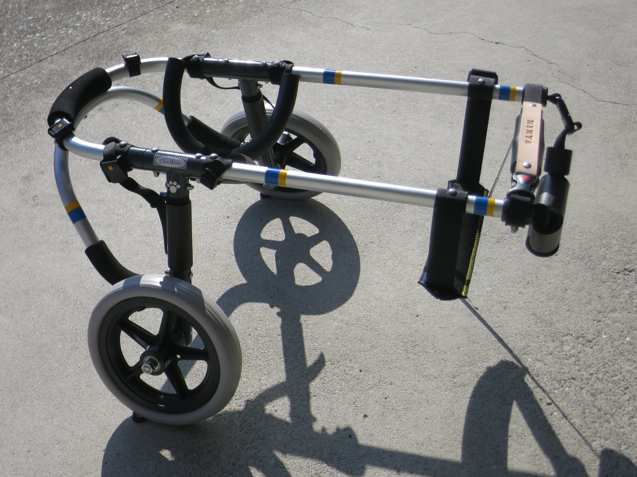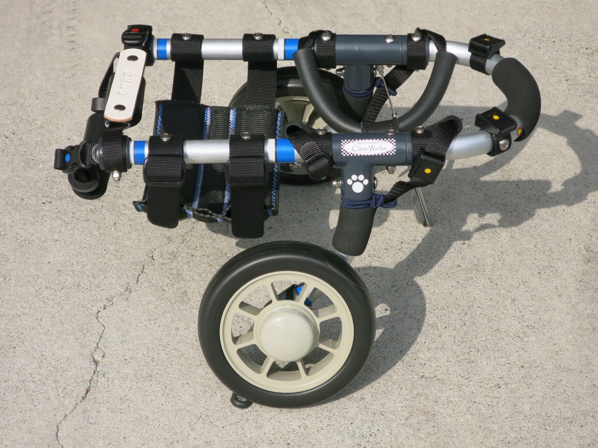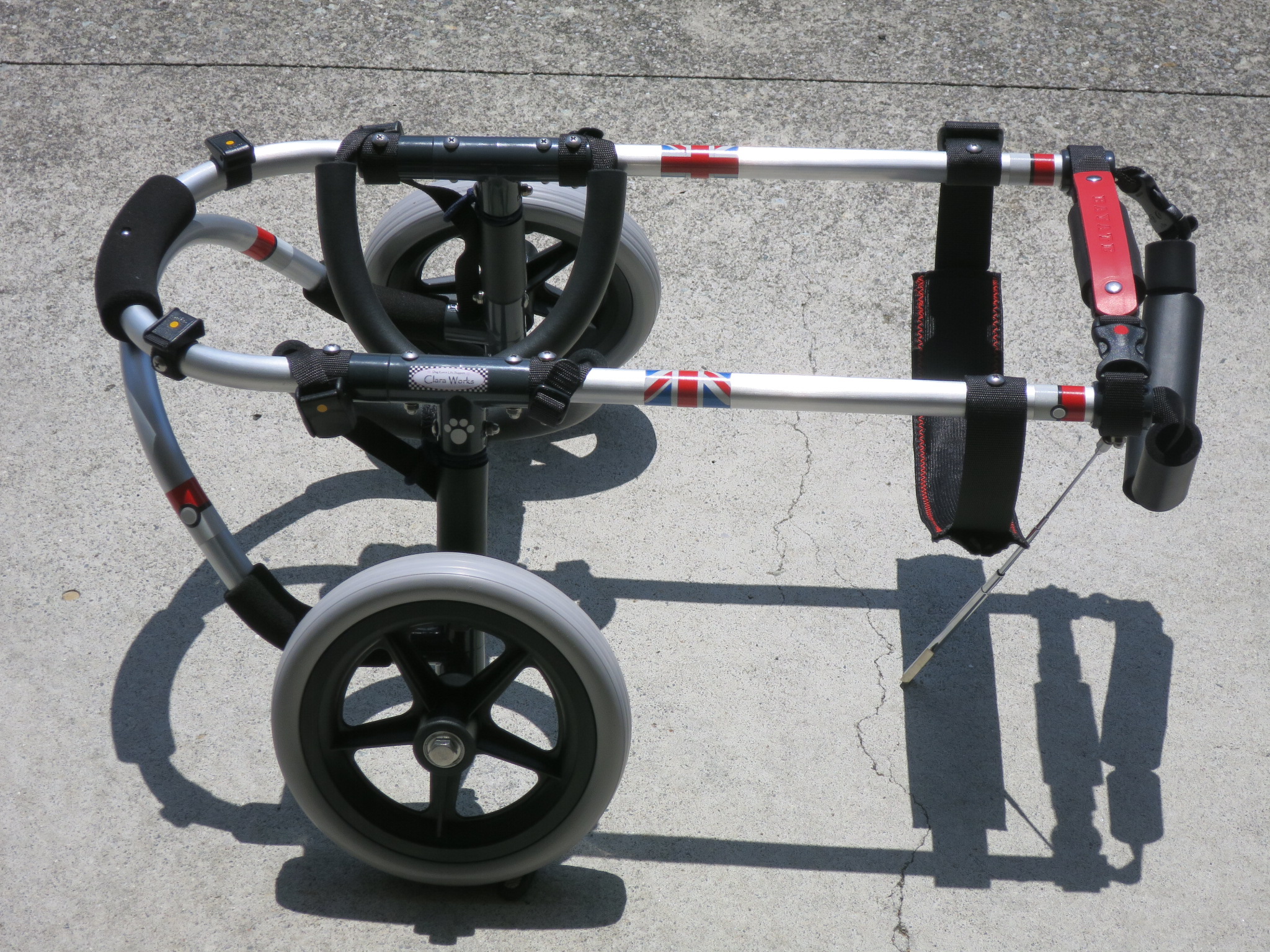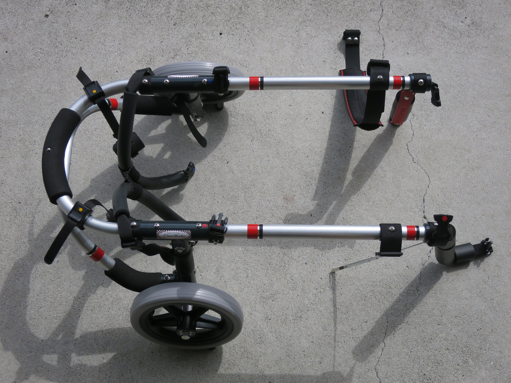 2輪車で歩けそうだけど不安がある、4輪で練習して筋力が戻れば2輪でも歩けそう、そんなワンちゃんのための仕様です