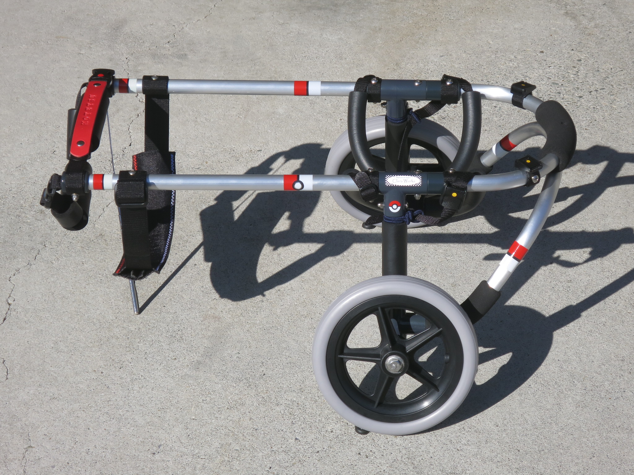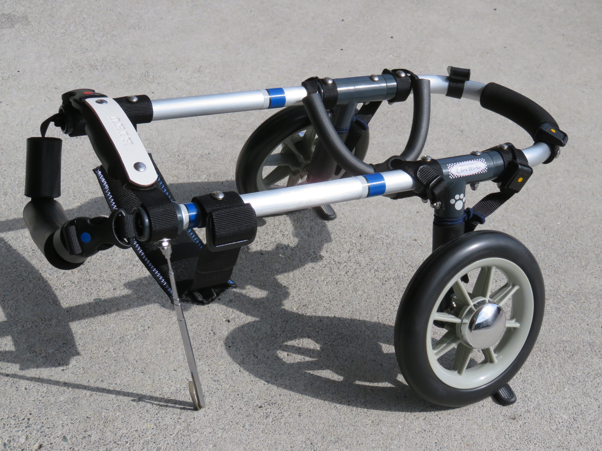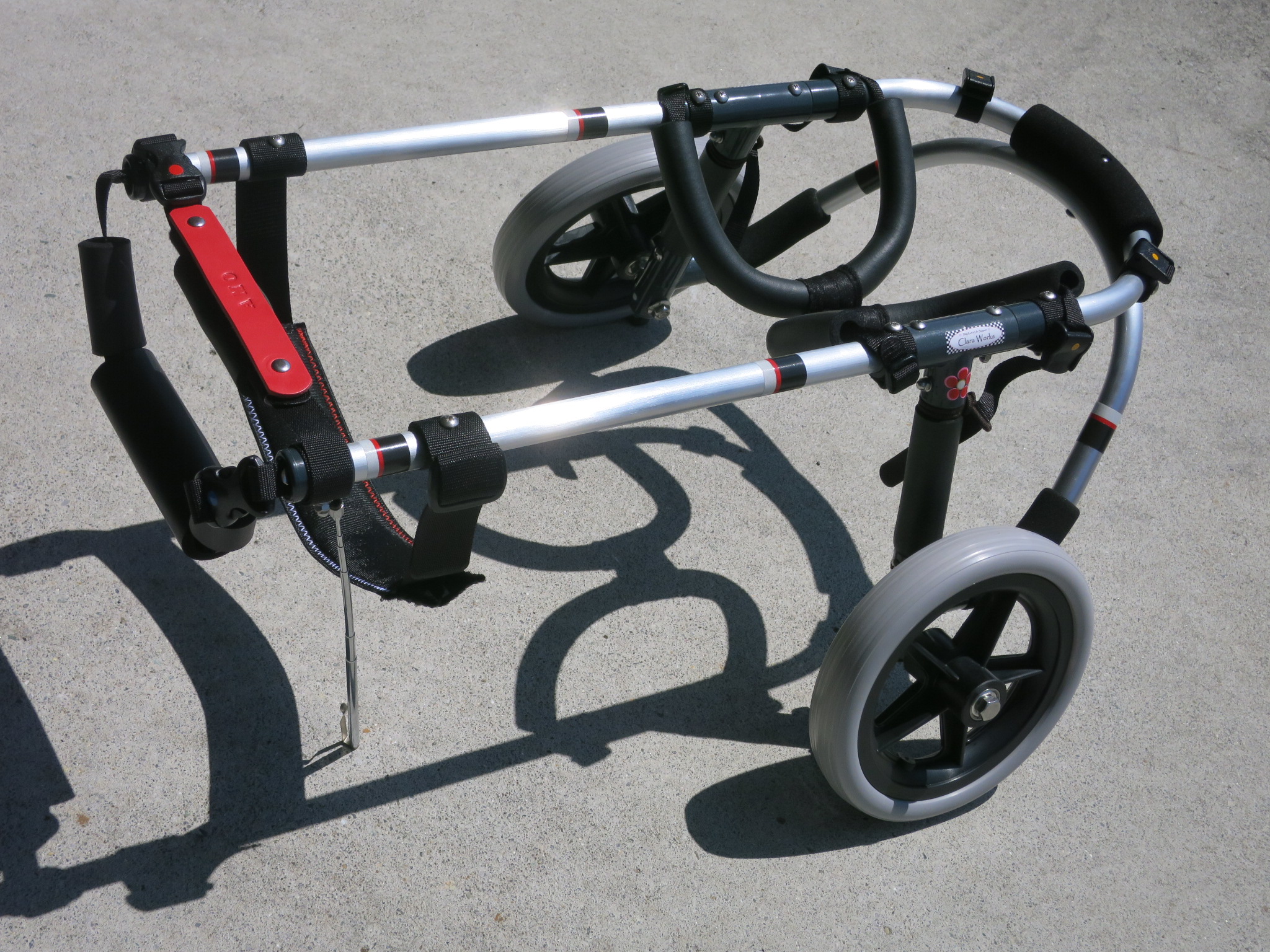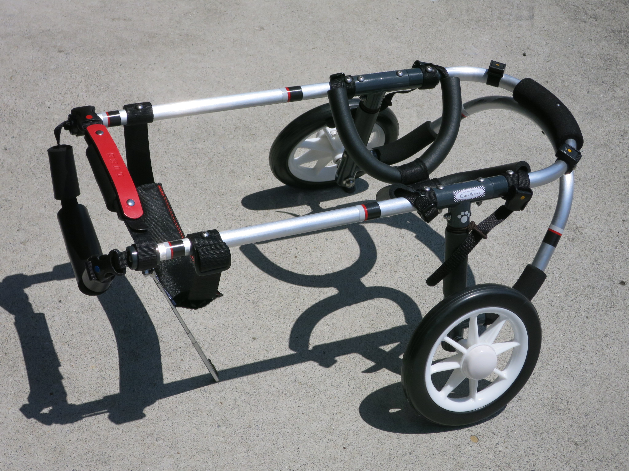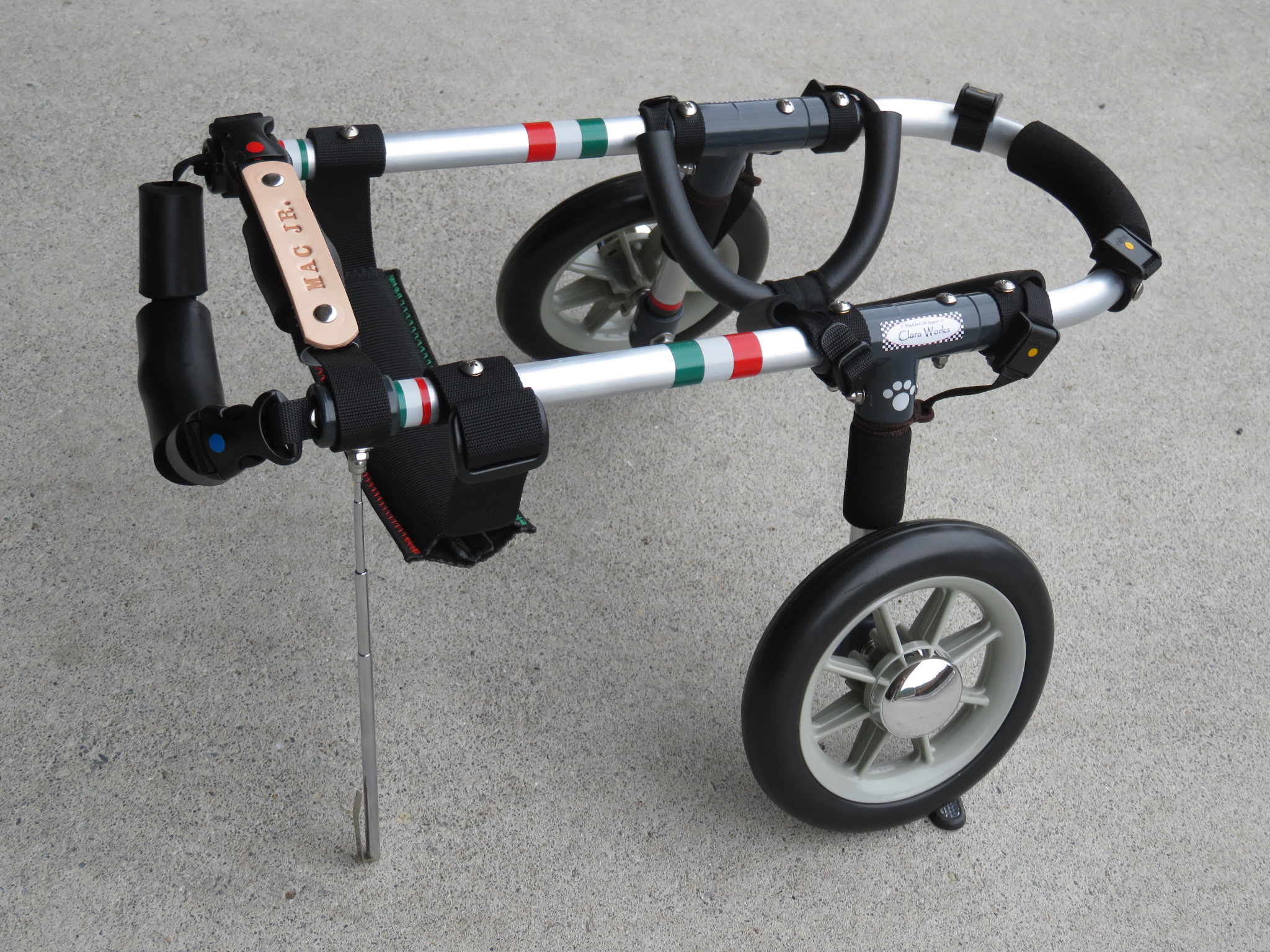 2輪車で歩けそうだけど不安がある、4輪で練習して筋力が戻れば2輪でも歩けそう、そんなワンちゃんのための仕様です