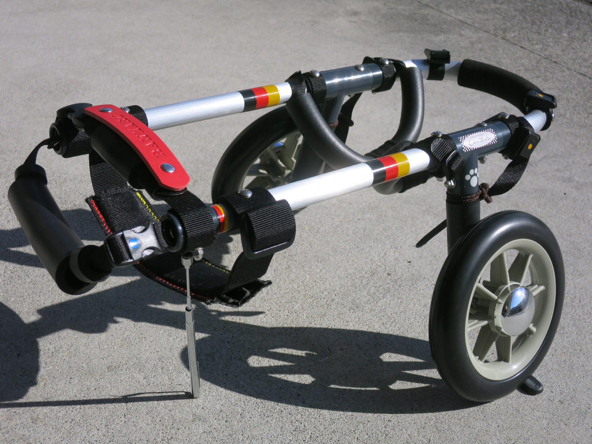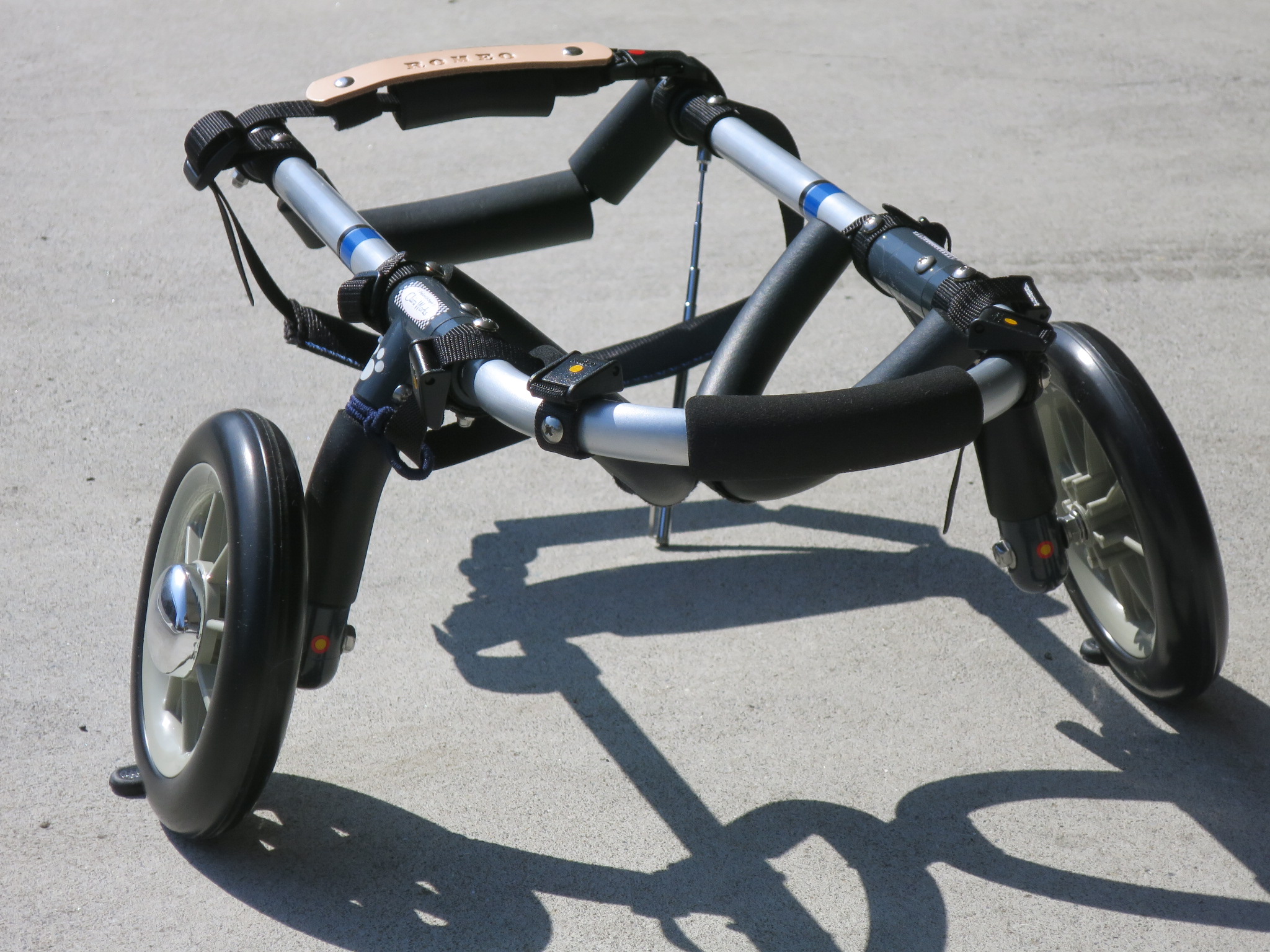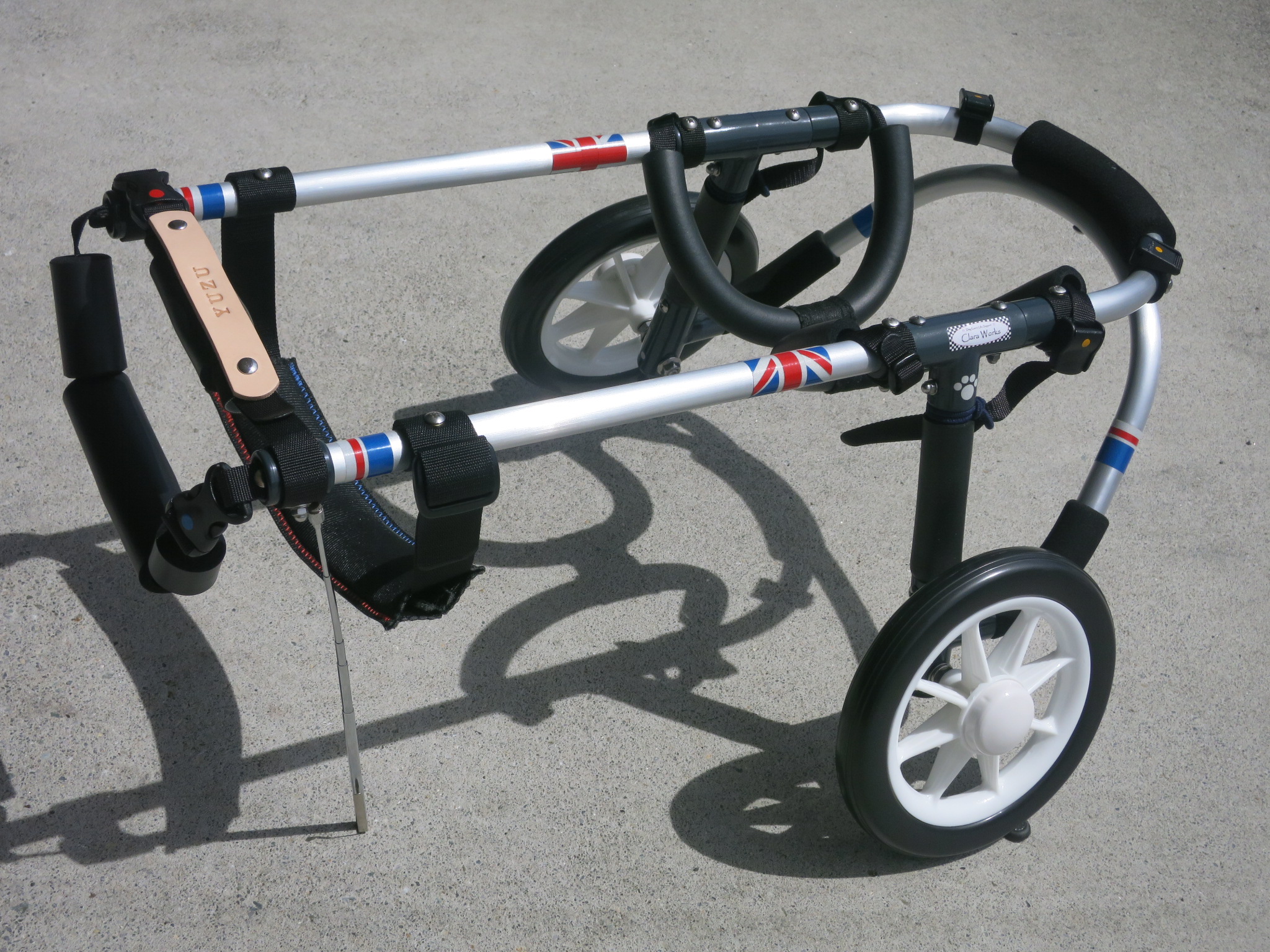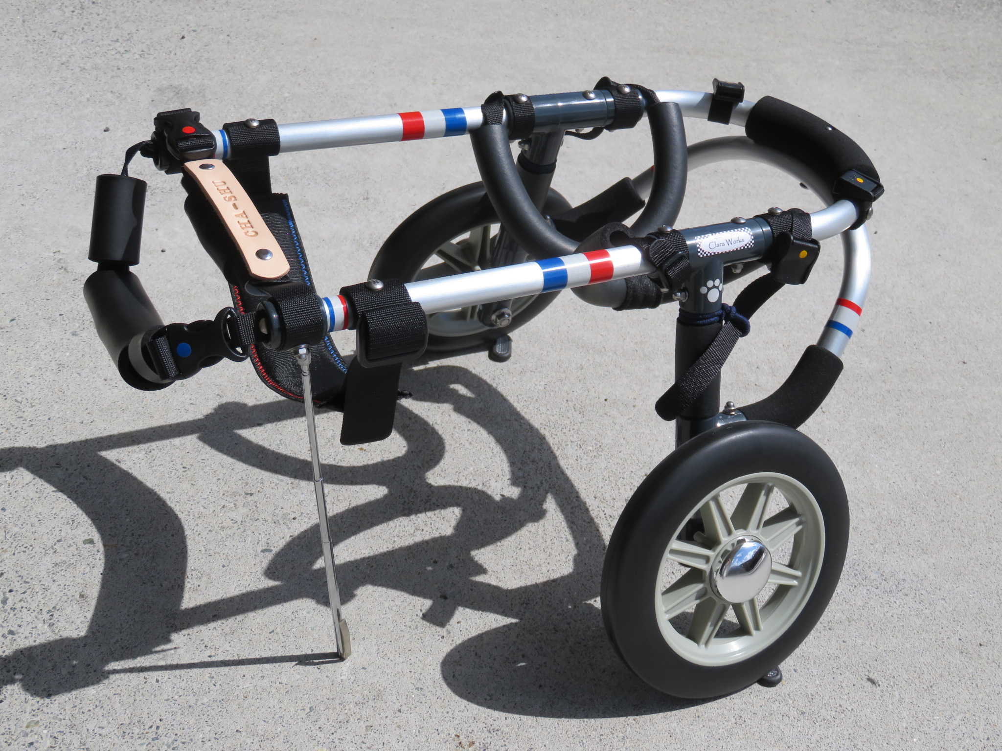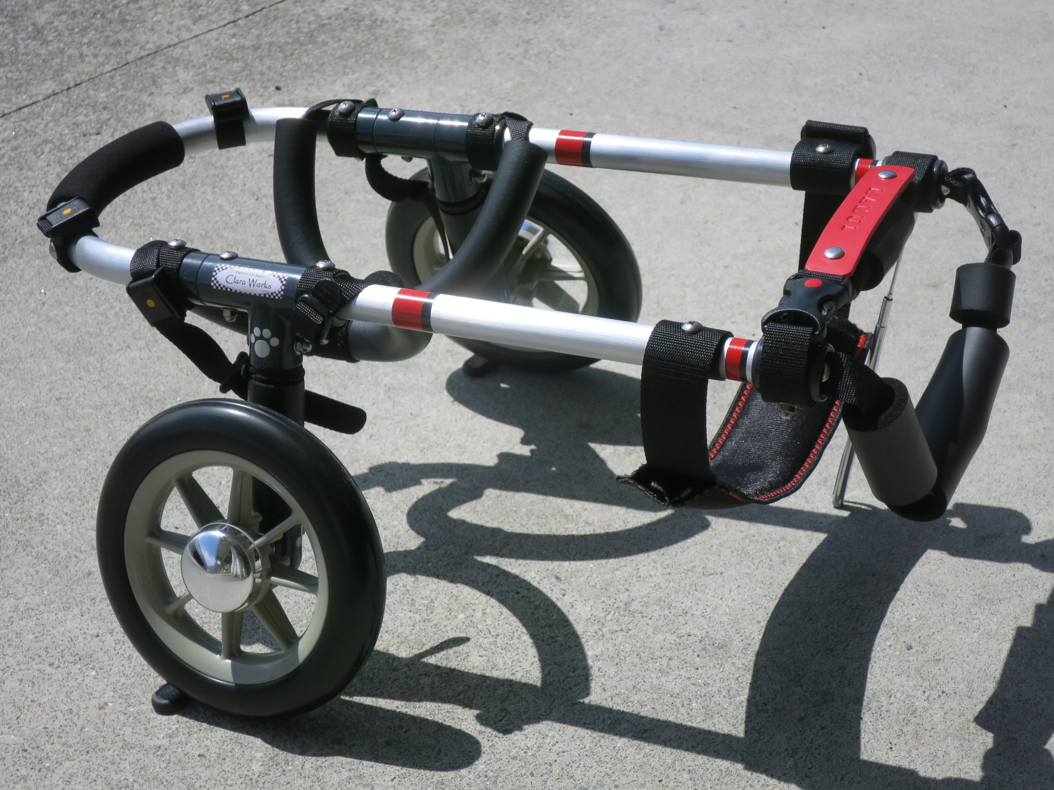 2輪車で歩けそうだけど不安がある、4輪で練習して筋力が戻れば2輪でも歩けそう、そんなワンちゃんのための仕様です
