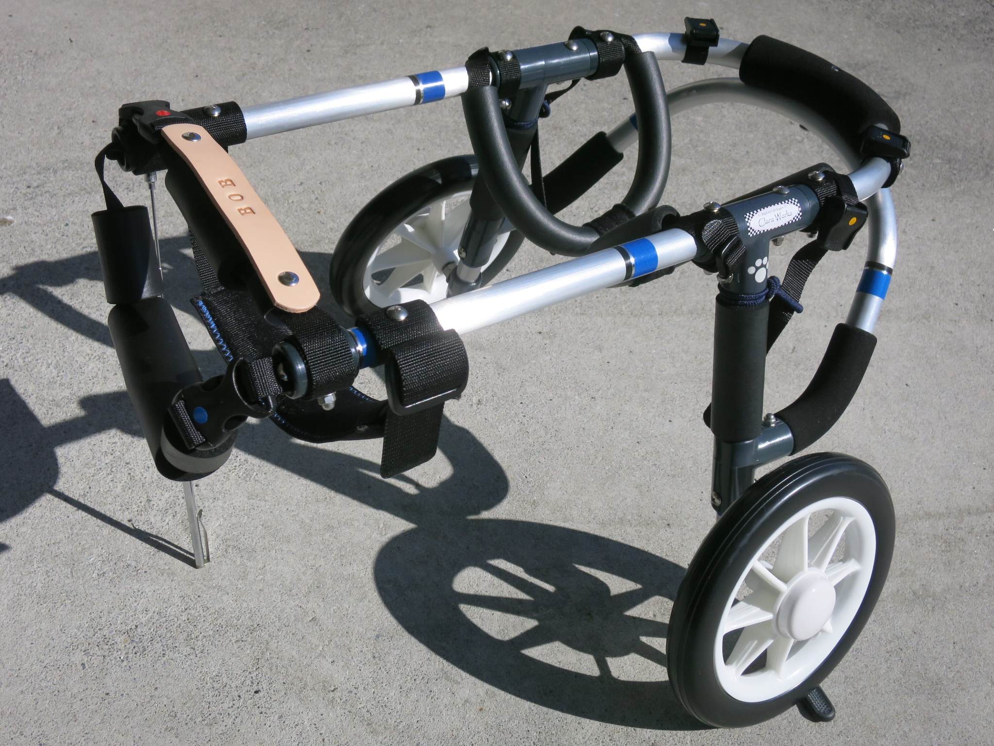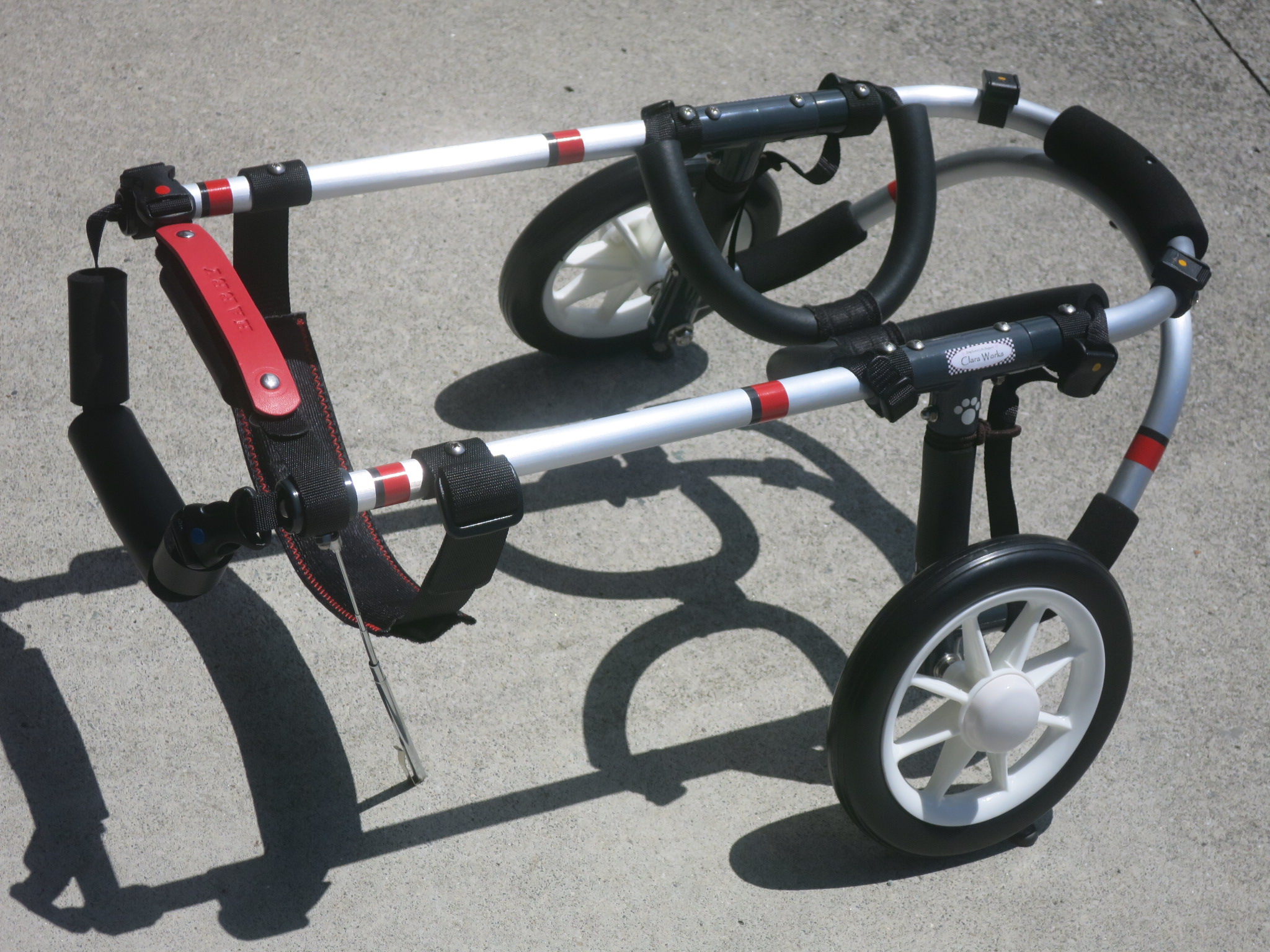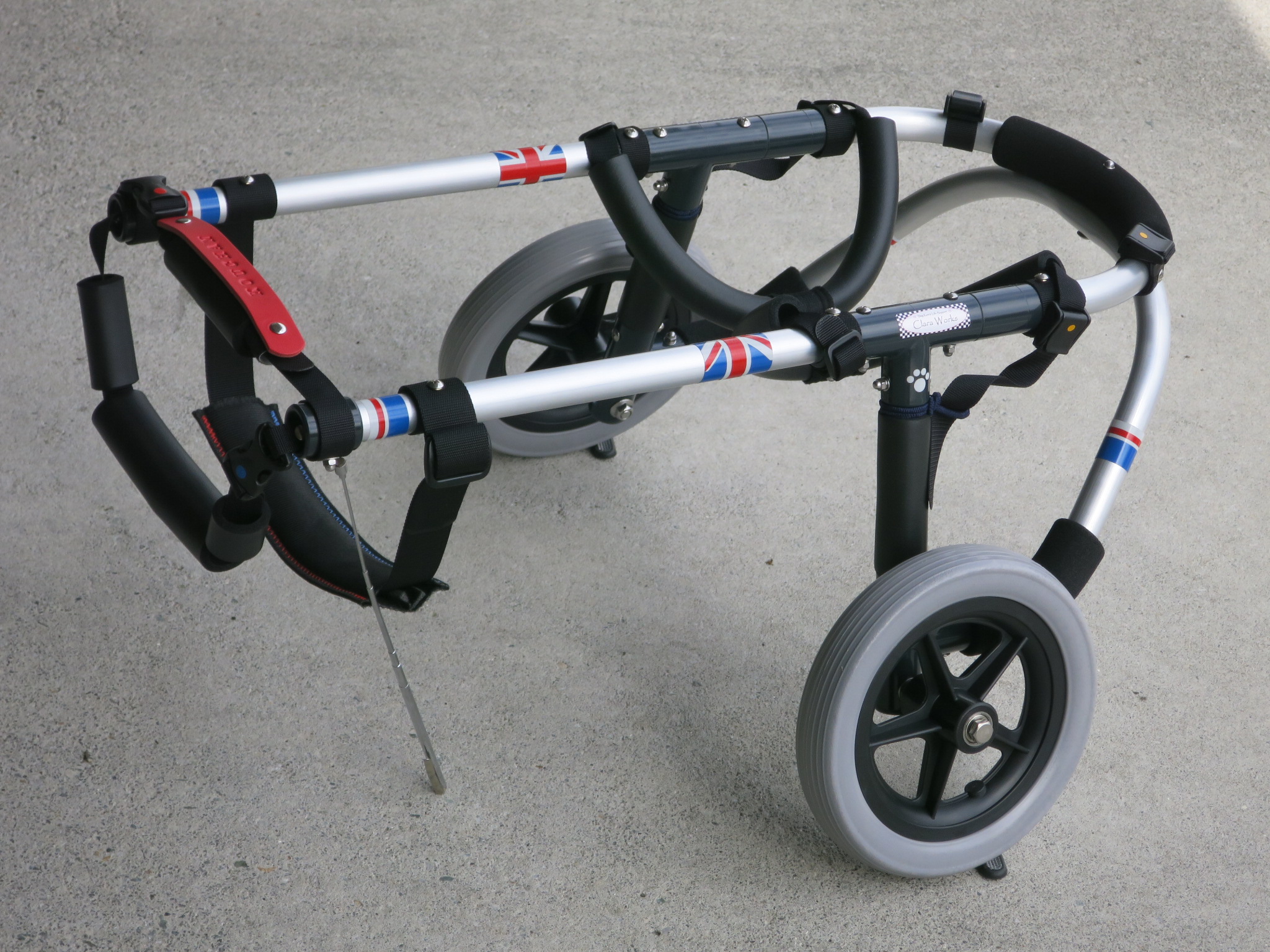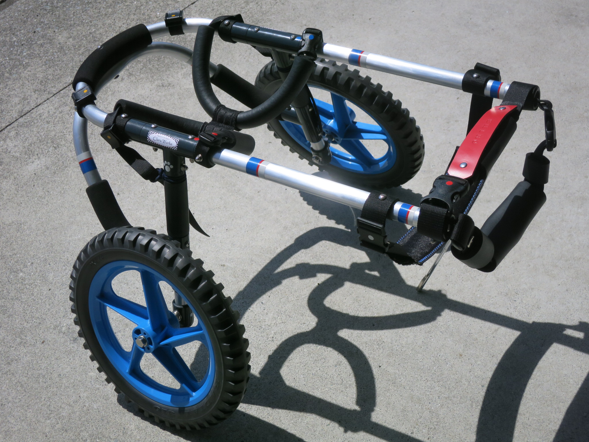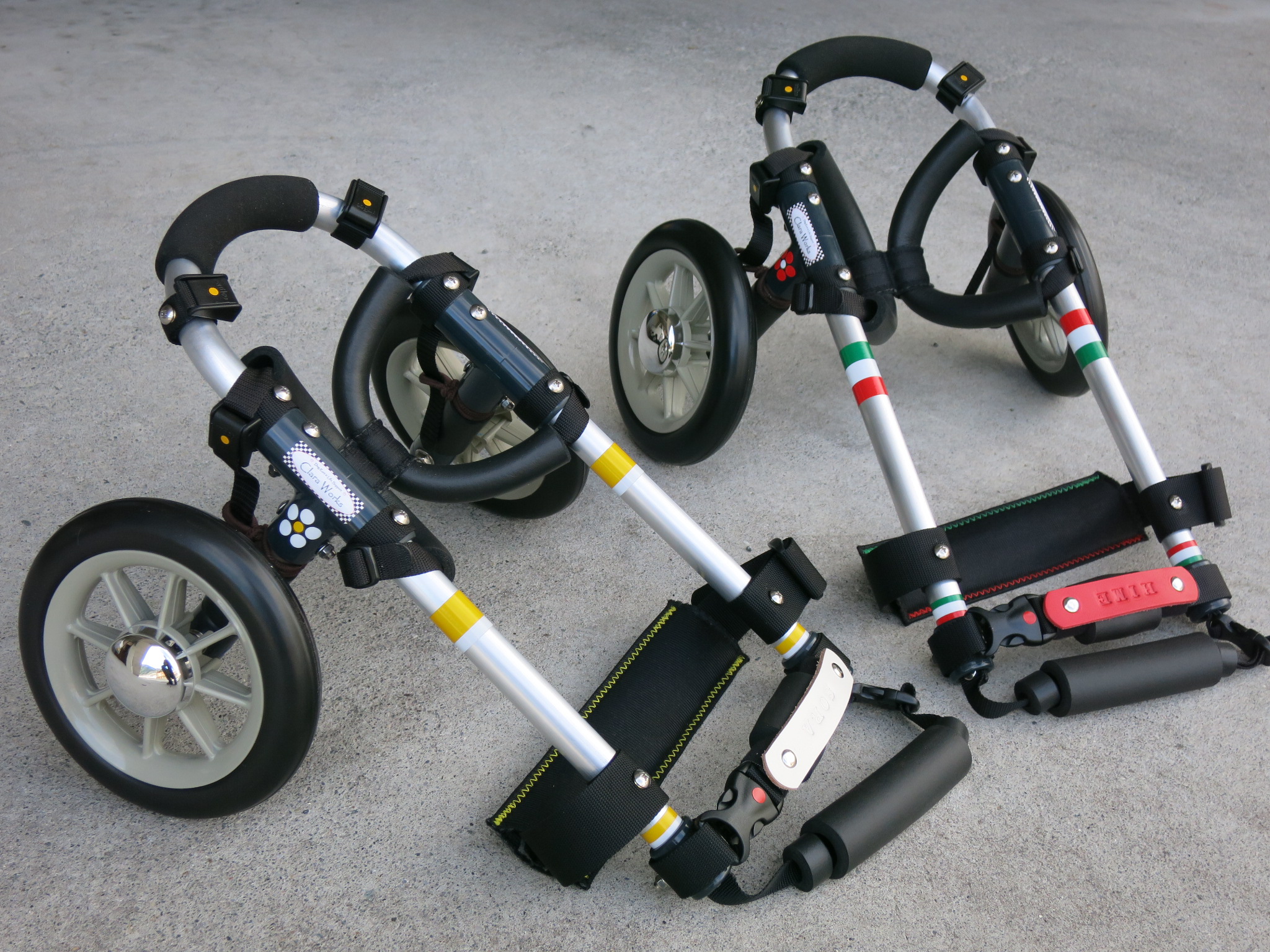 2輪車で歩けそうだけど不安がある、4輪で練習して筋力が戻れば2輪でも歩けそう、そんなワンちゃんのための仕様です