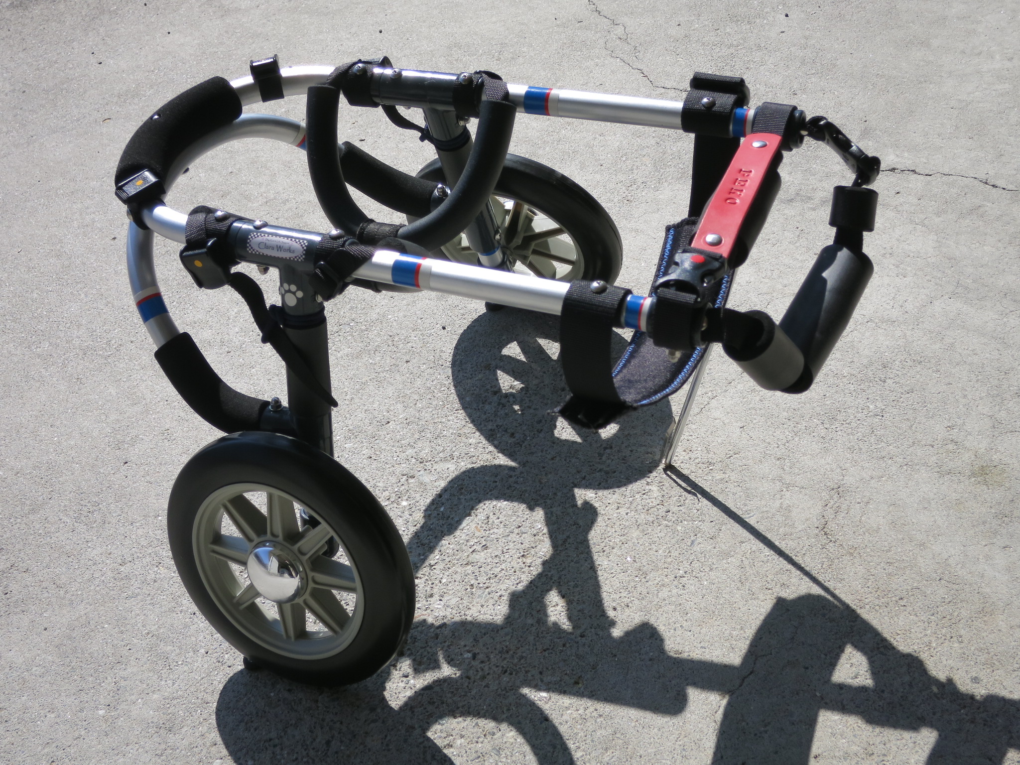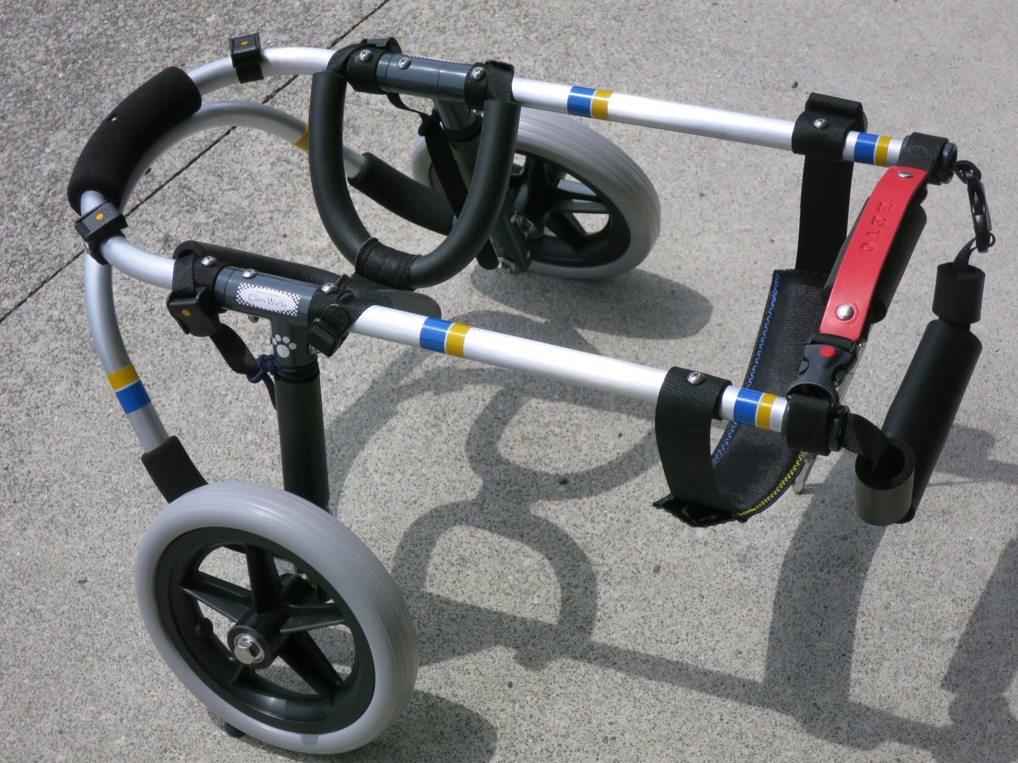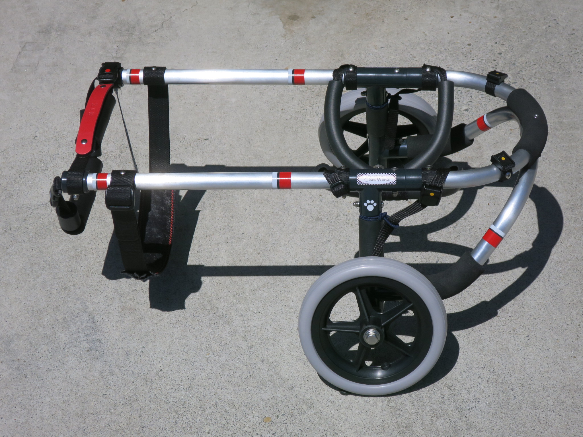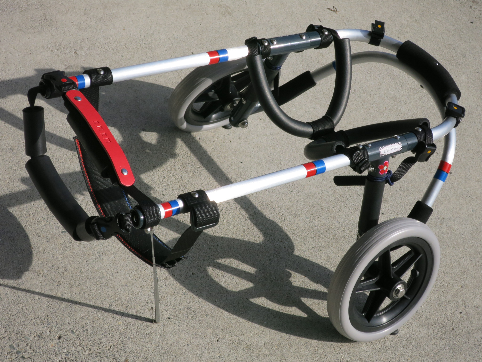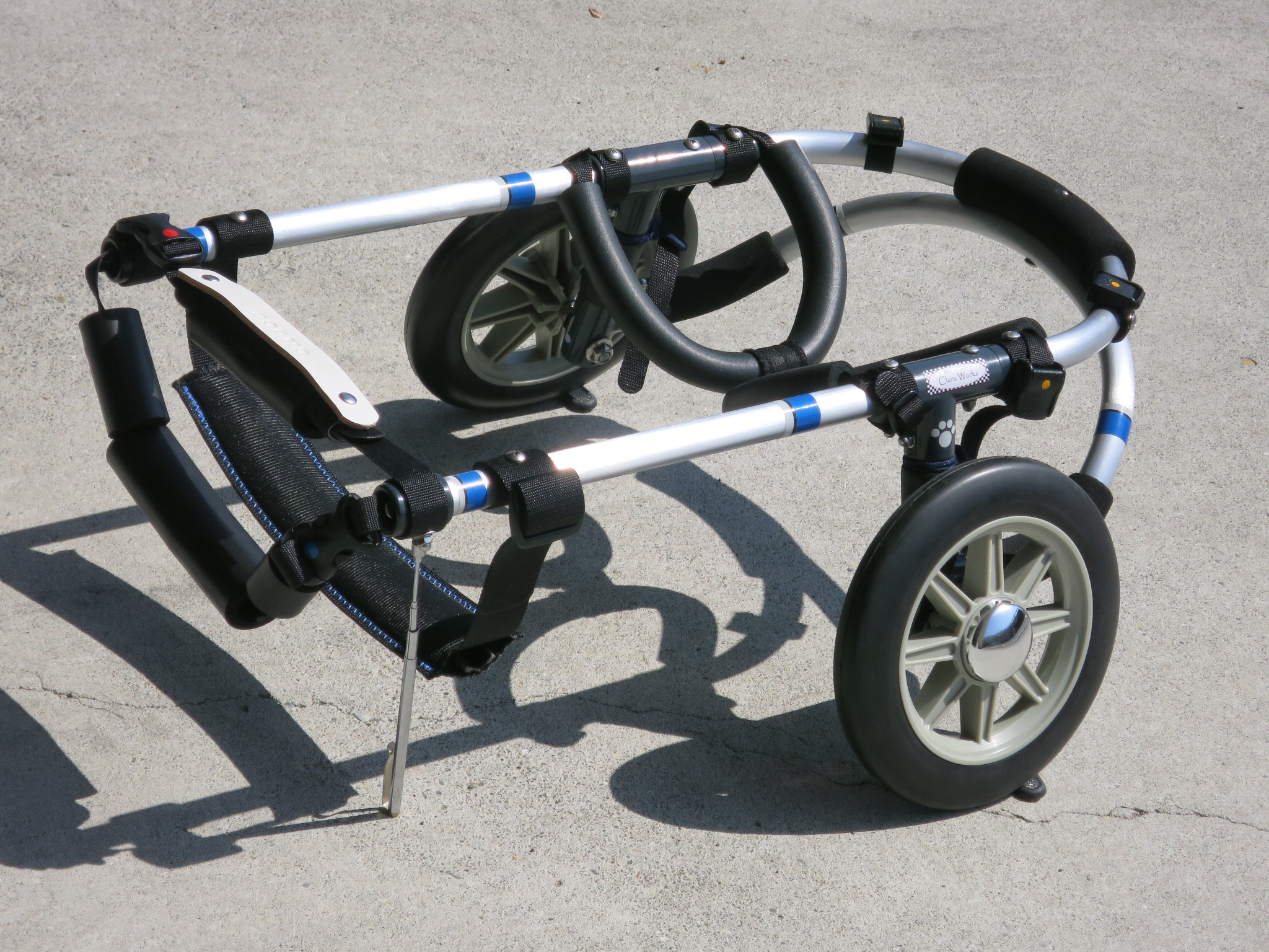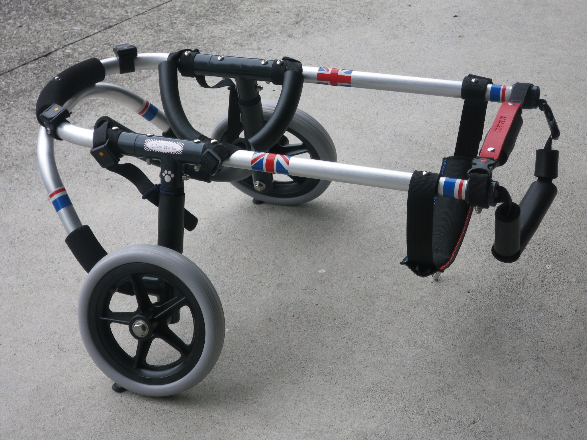 2輪車で歩けそうだけど不安がある、4輪で練習して筋力が戻れば2輪でも歩けそう、そんなワンちゃんのための仕様です