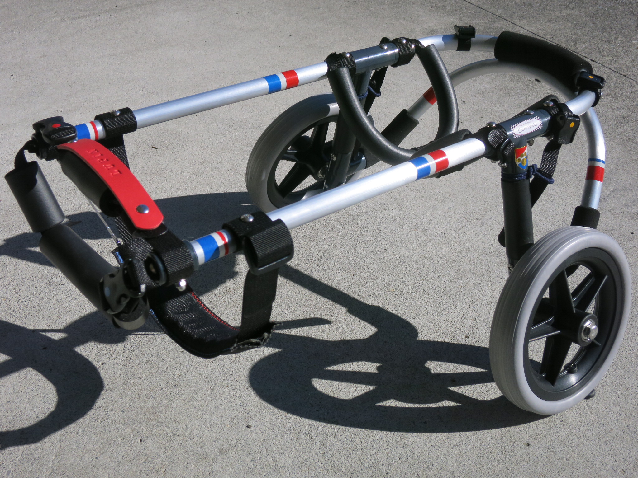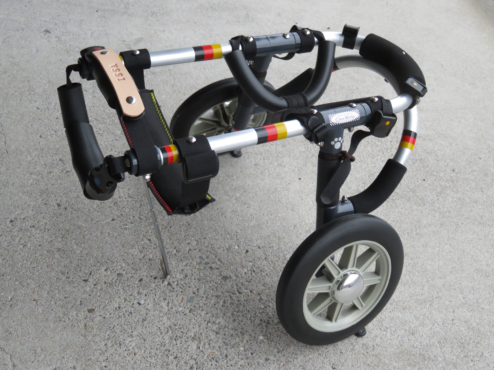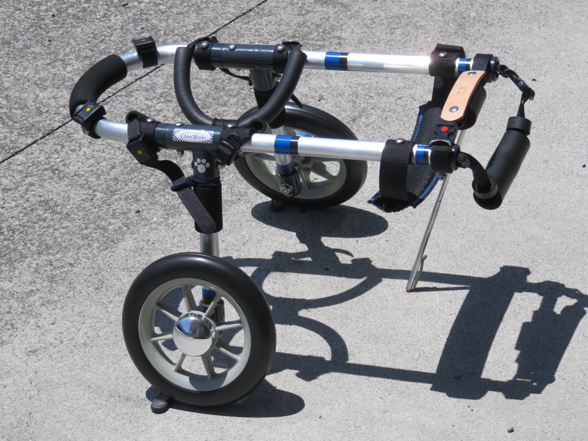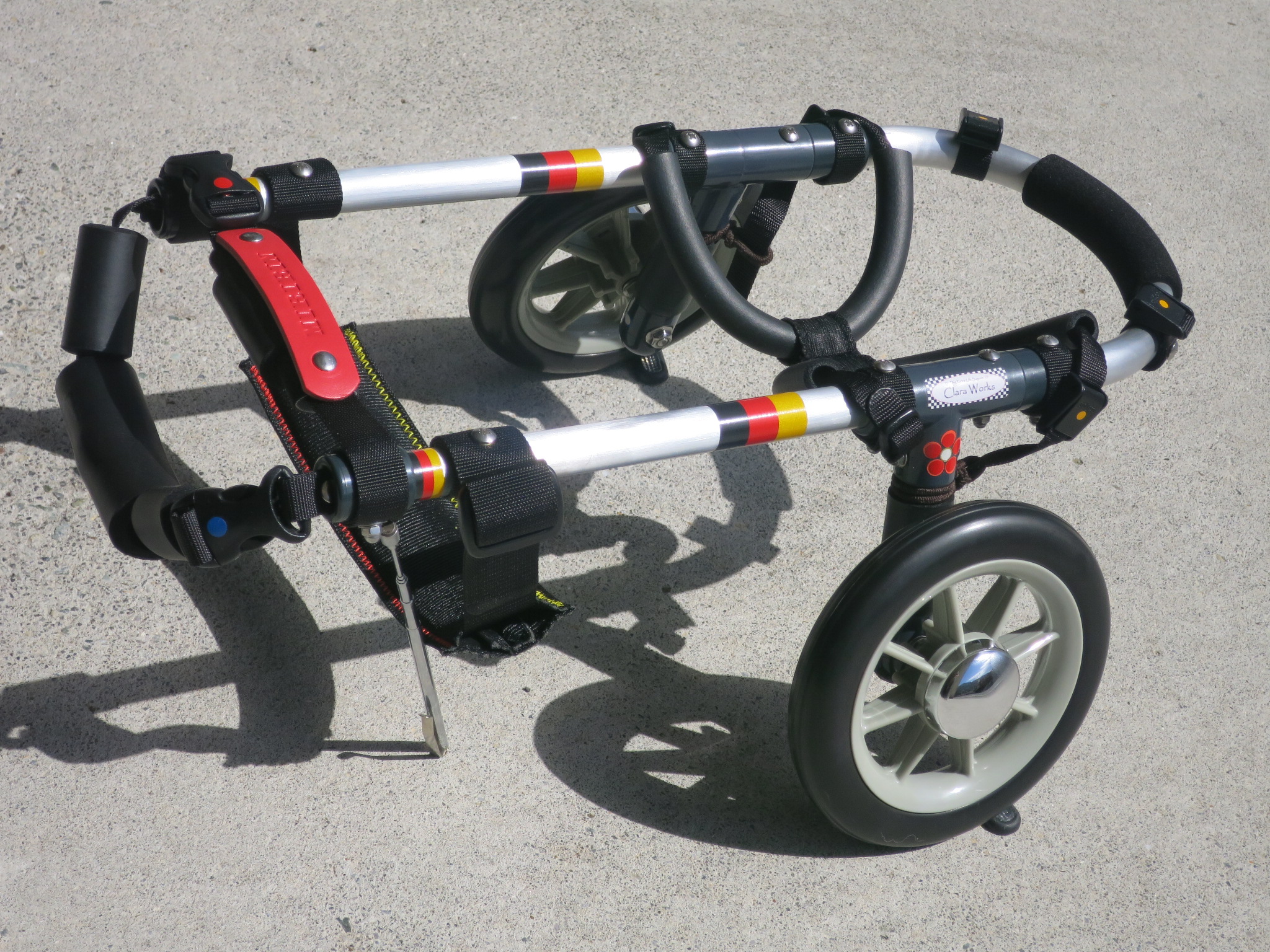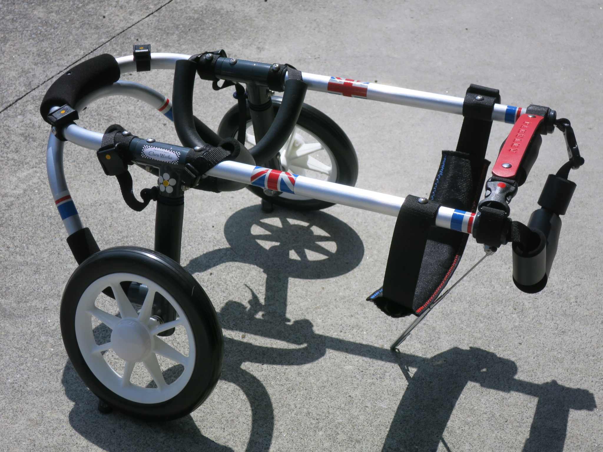 2輪車で歩けそうだけど不安がある、4輪で練習して筋力が戻れば2輪でも歩けそう、そんなワンちゃんのための仕様です