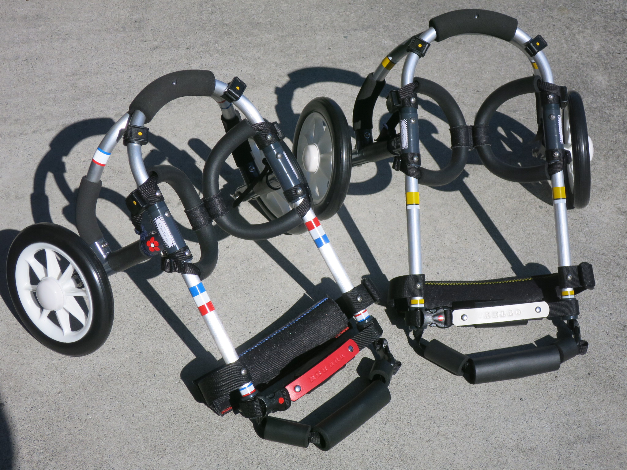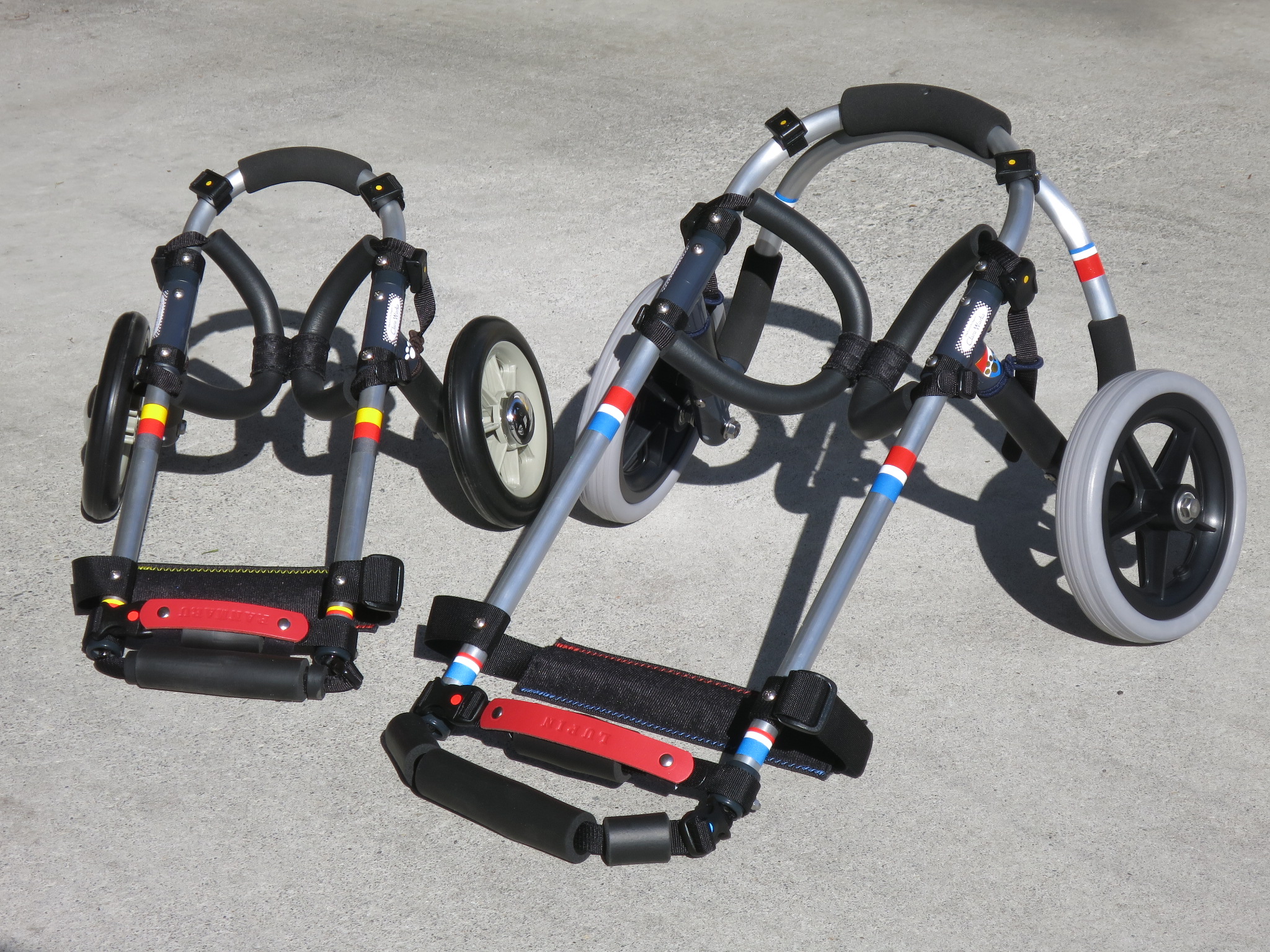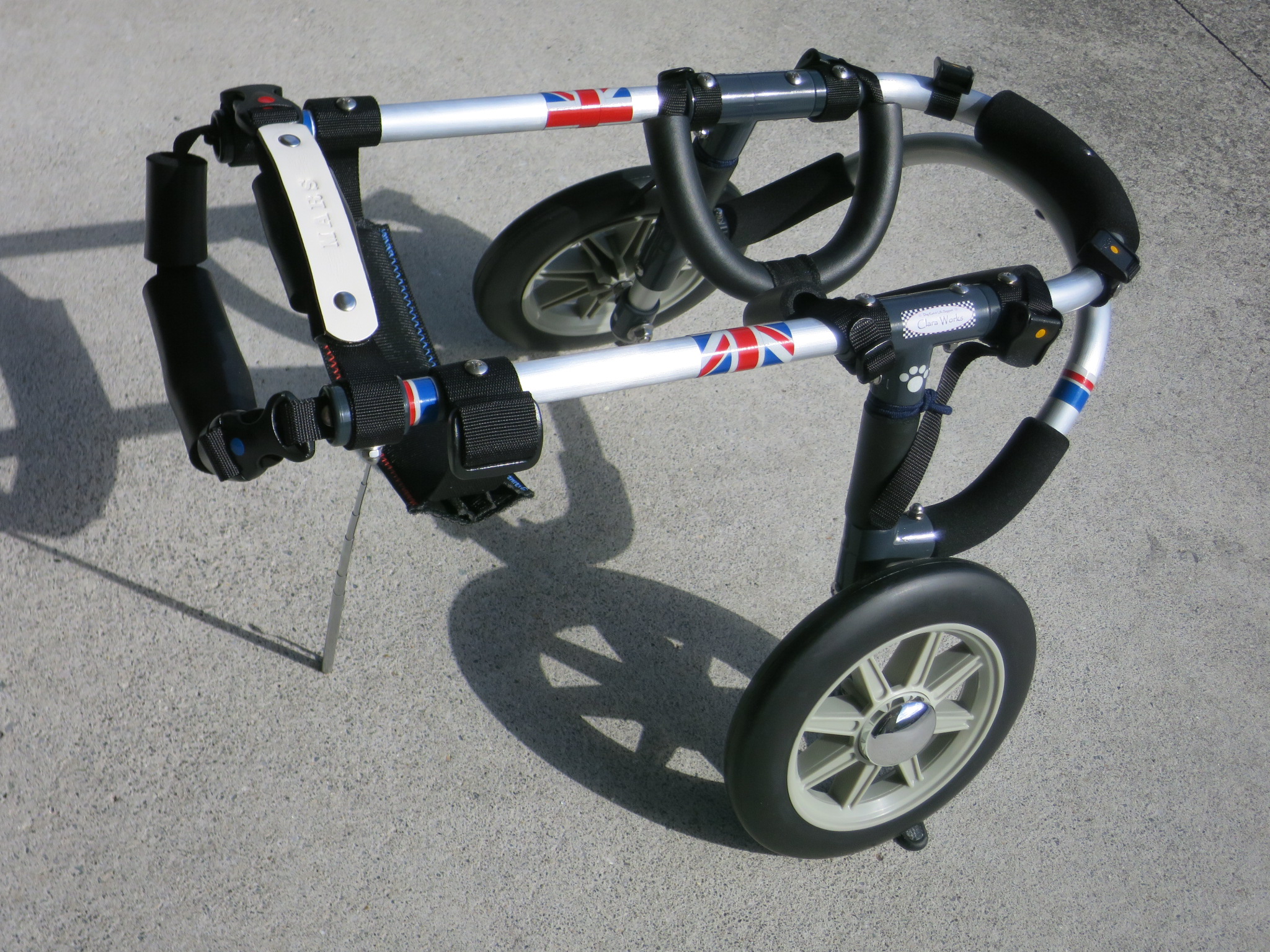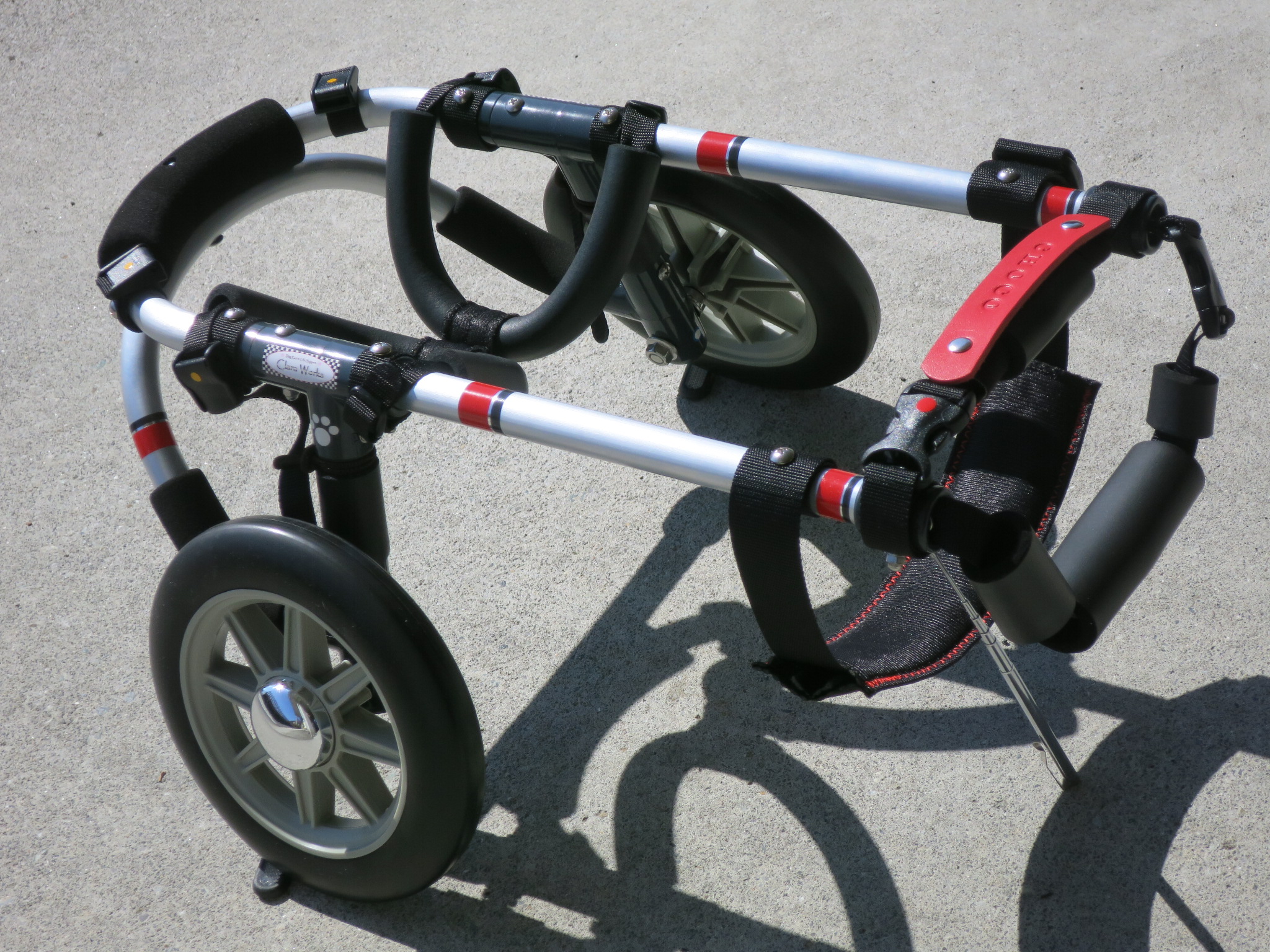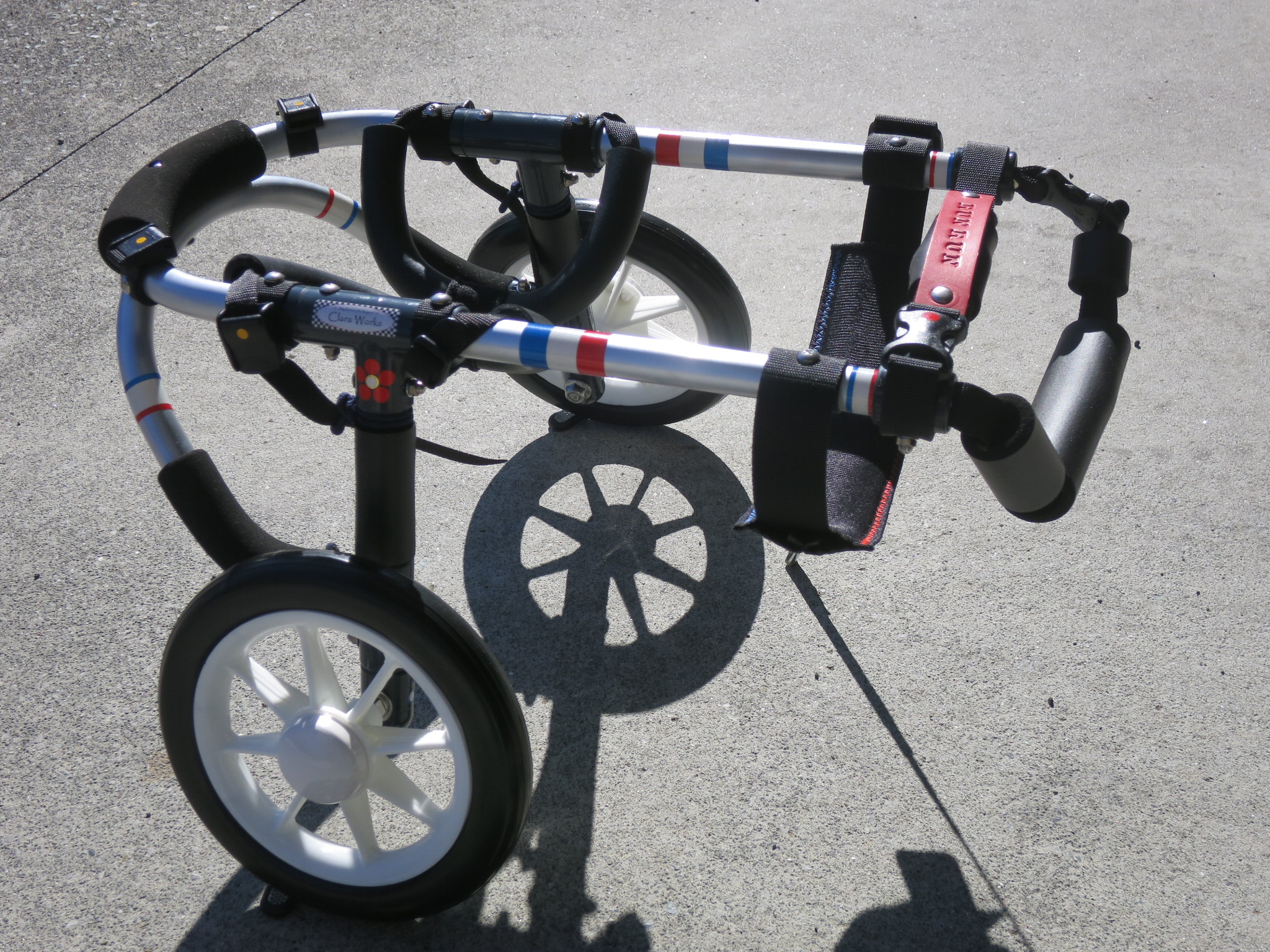 2輪車で歩けそうだけど不安がある、4輪で練習して筋力が戻れば2輪でも歩けそう、そんなワンちゃんのための仕様です