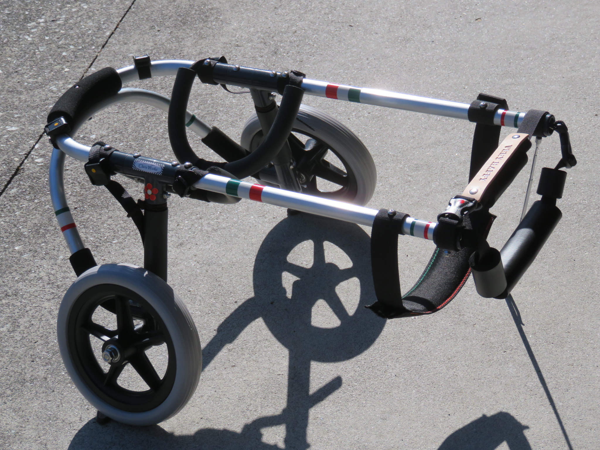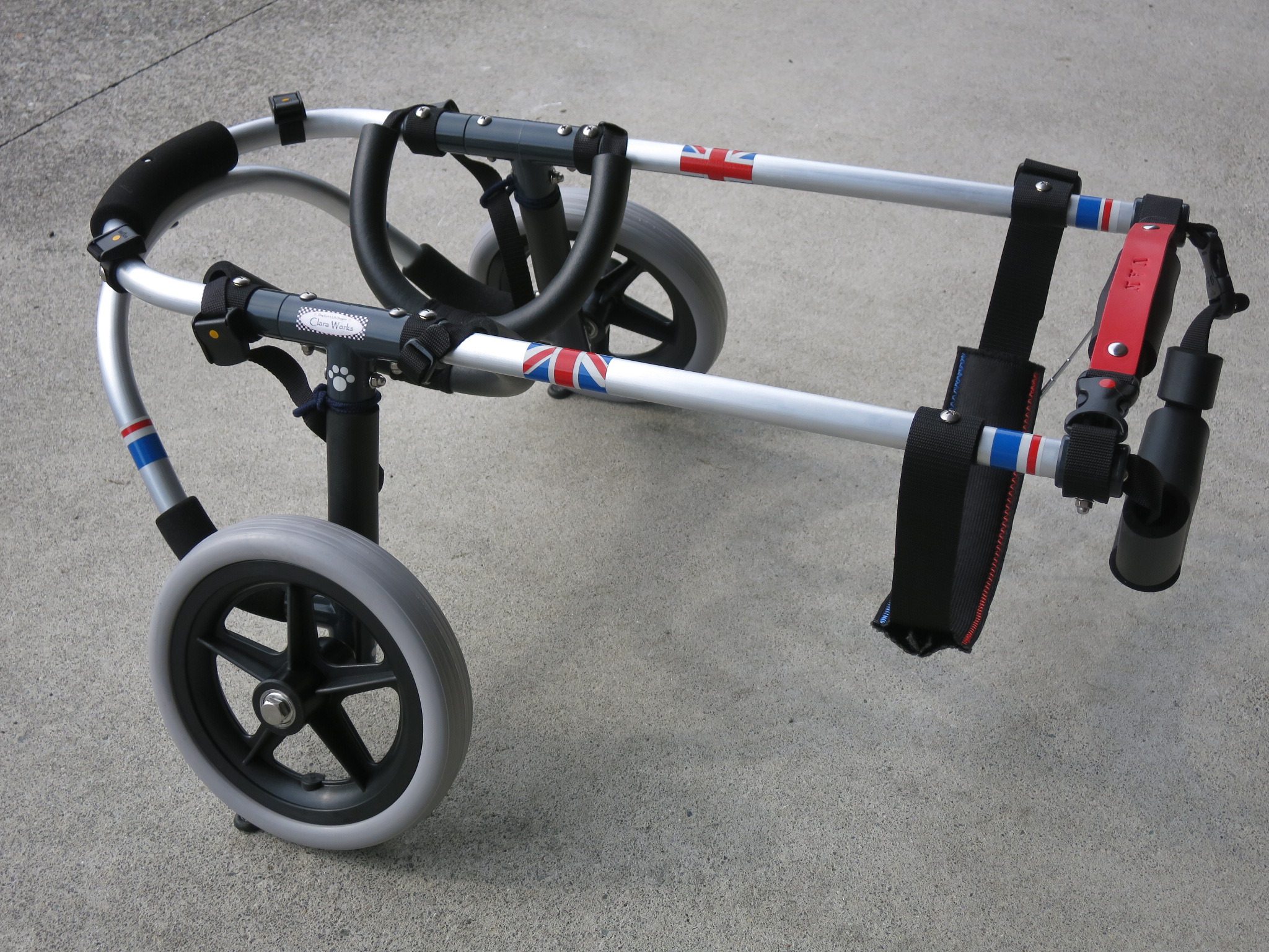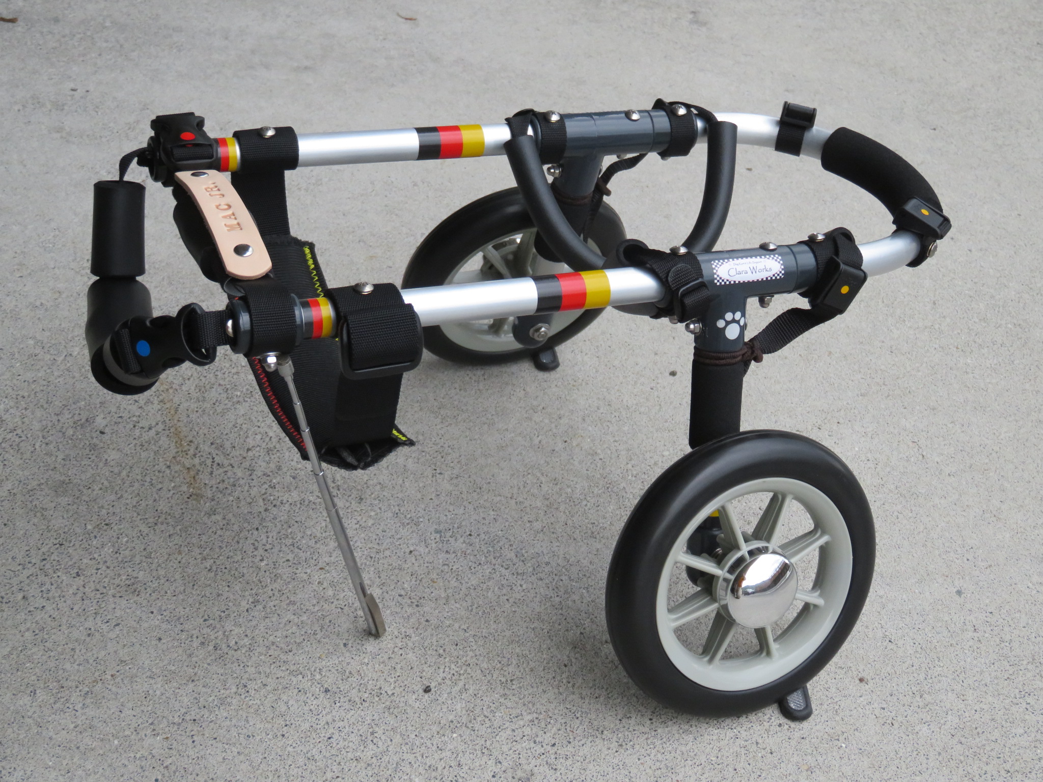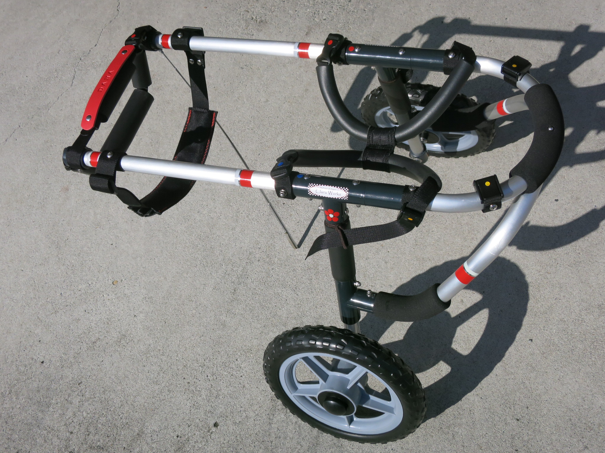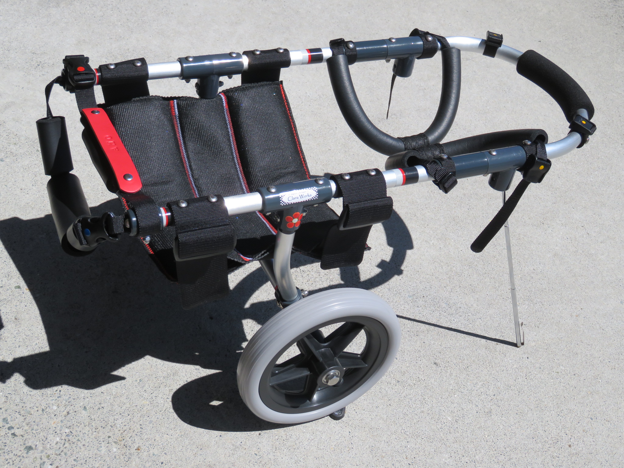 2輪車で歩けそうだけど不安がある、4輪で練習して筋力が戻れば2輪でも歩けそう、そんなワンちゃんのための仕様です