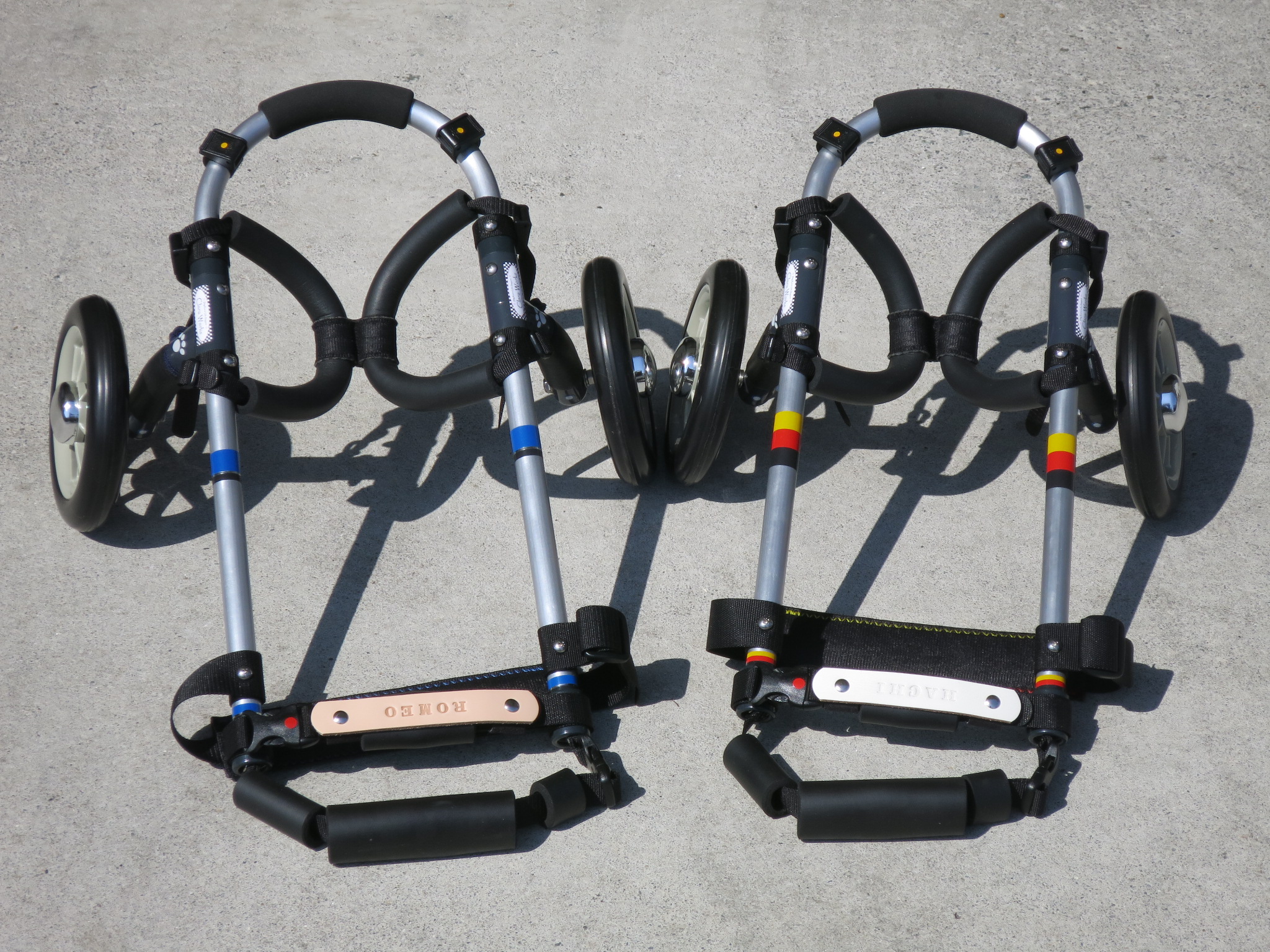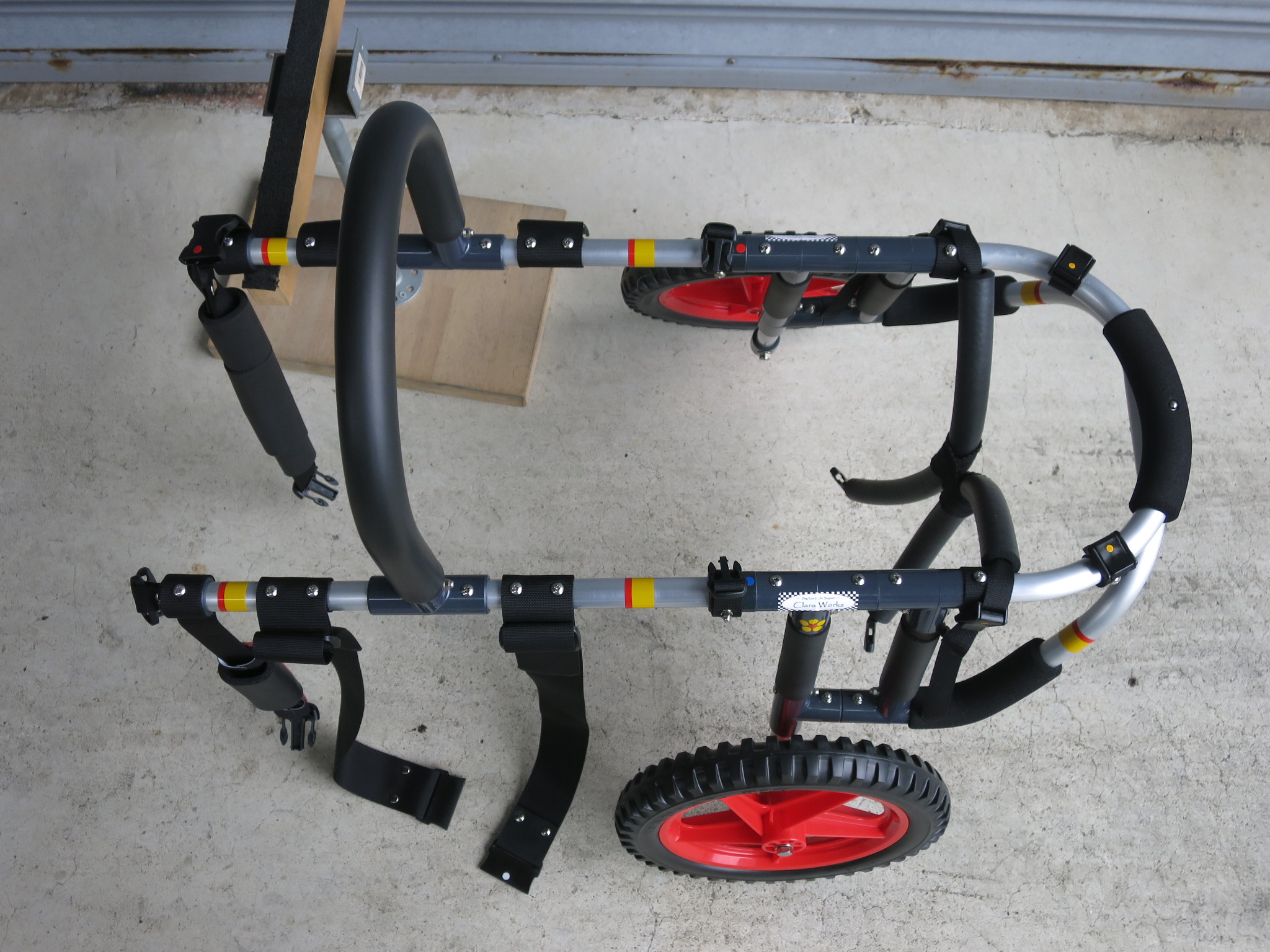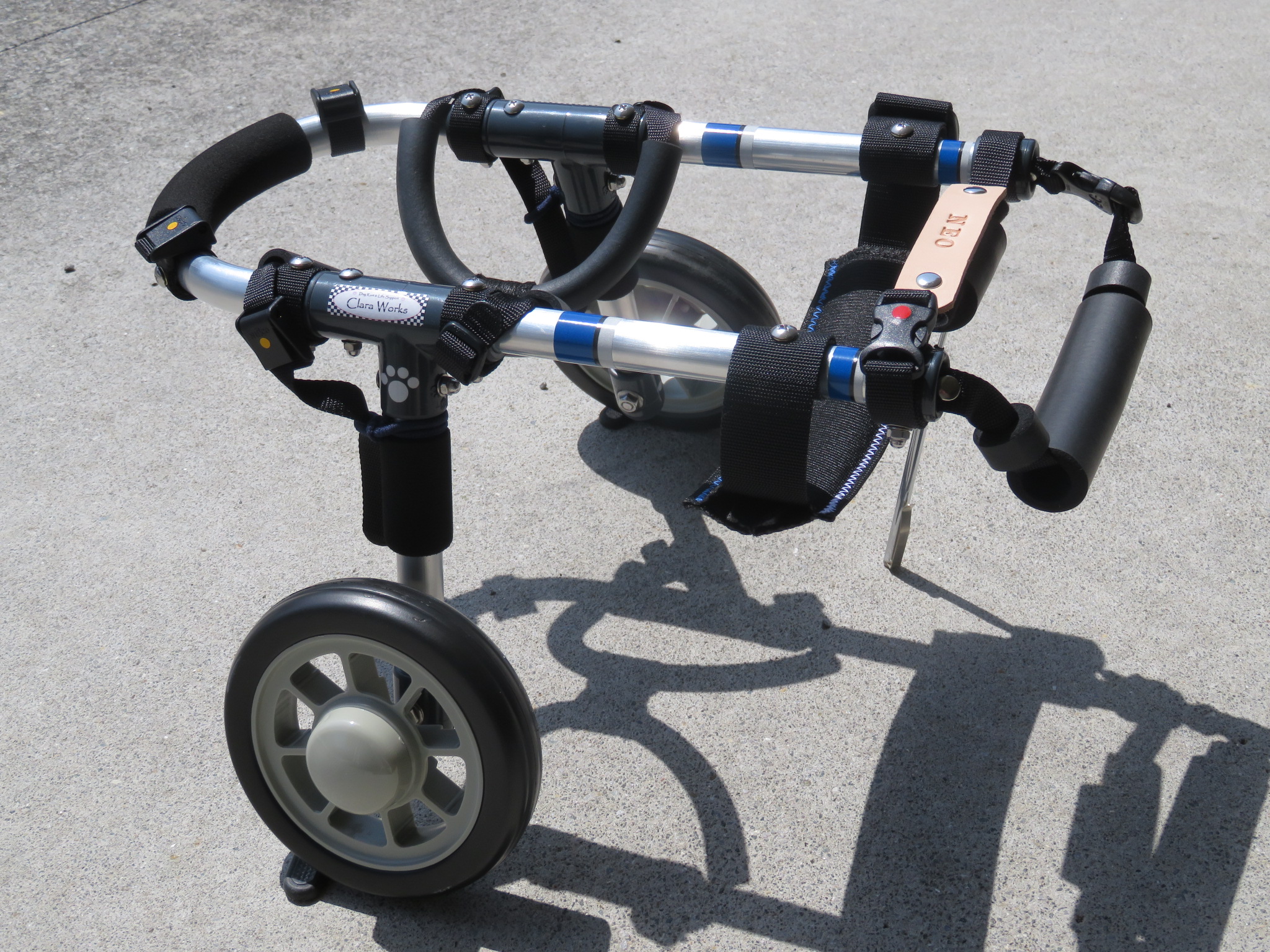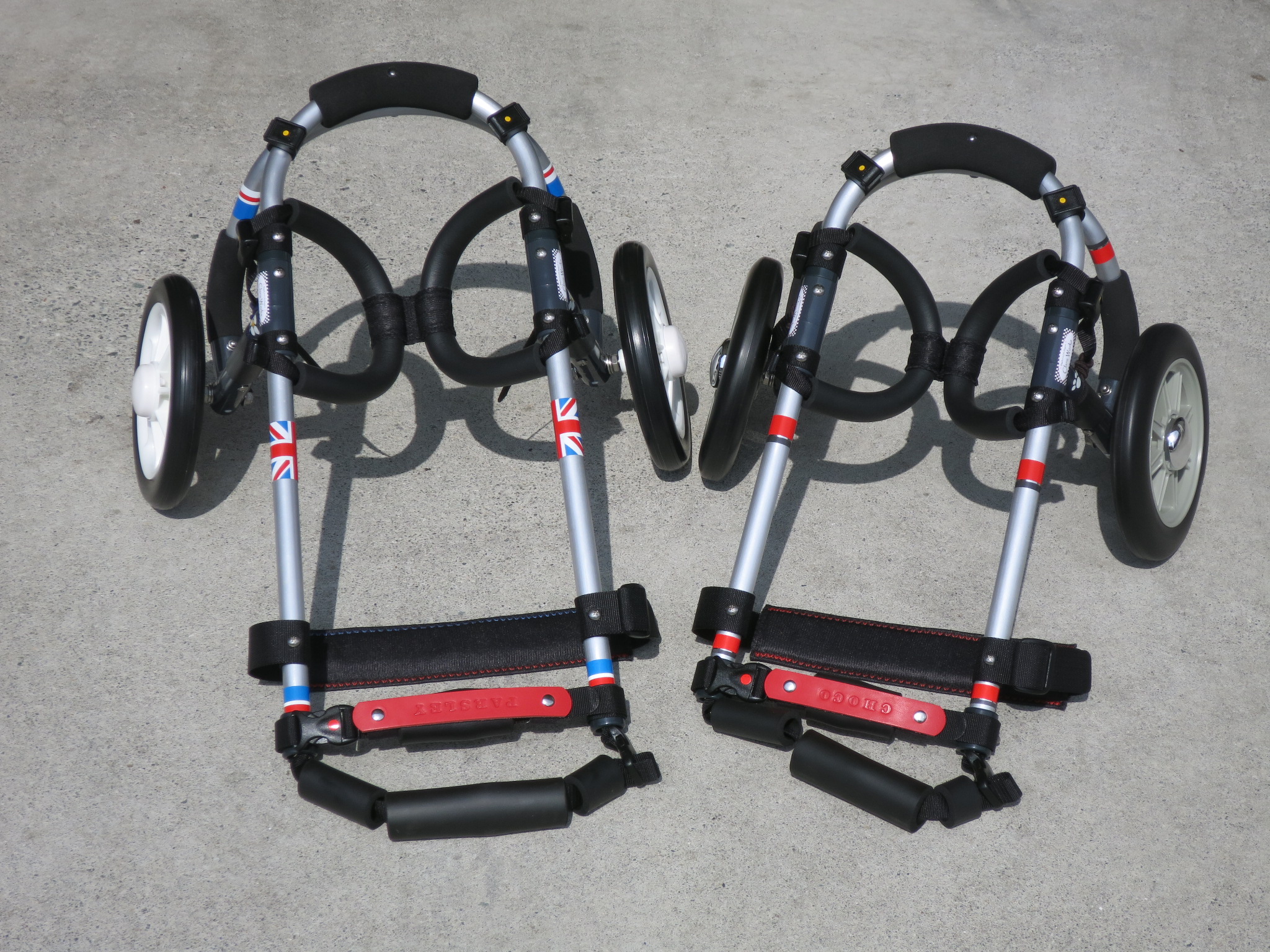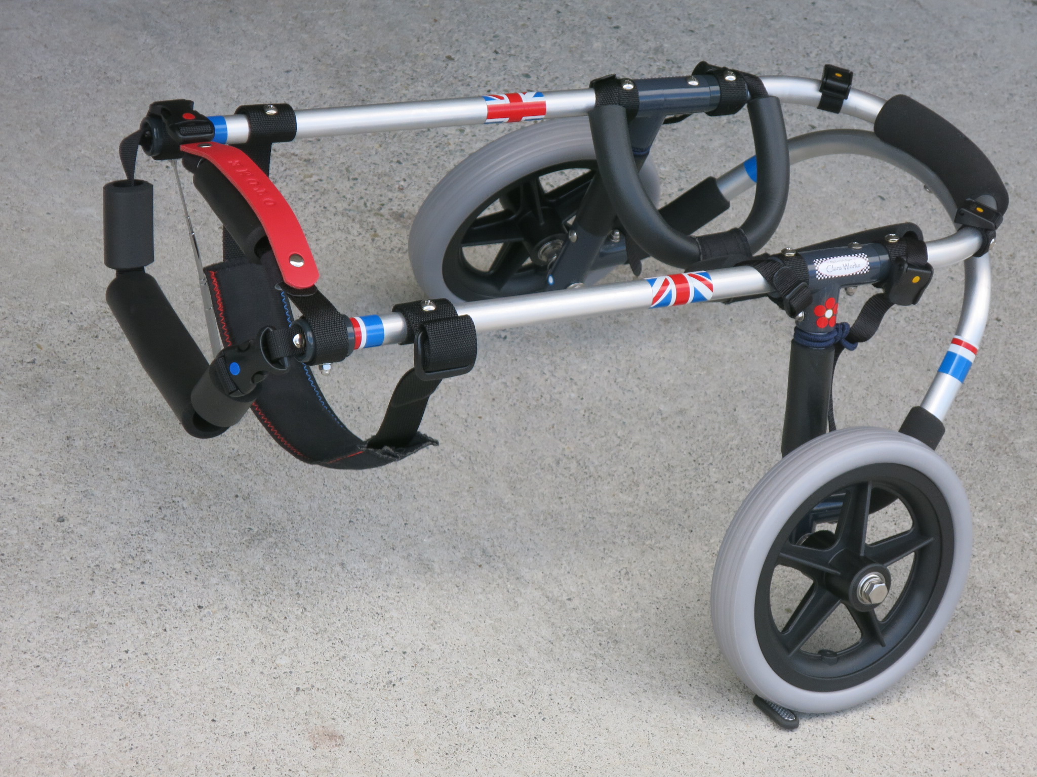 2輪車で歩けそうだけど不安がある、4輪で練習して筋力が戻れば2輪でも歩けそう、そんなワンちゃんのための仕様です